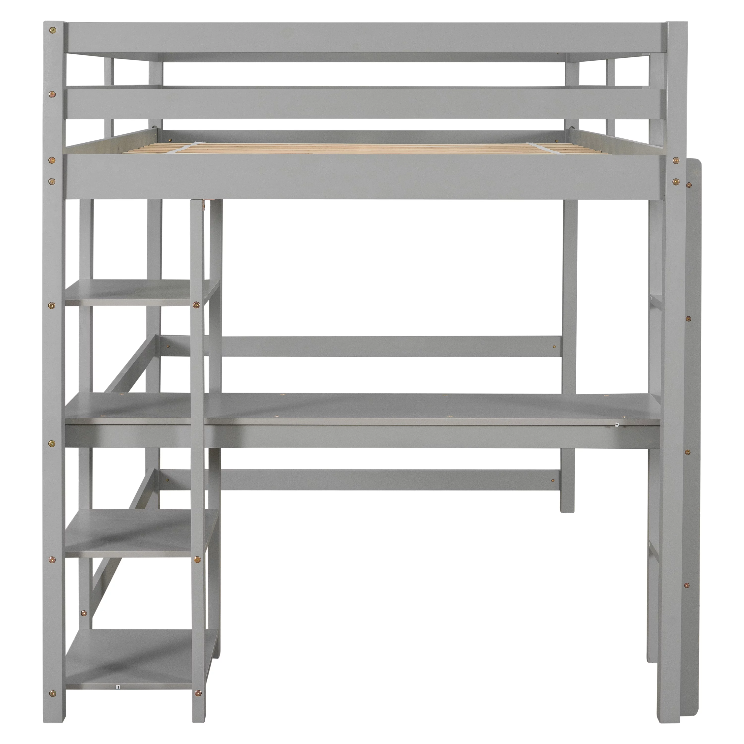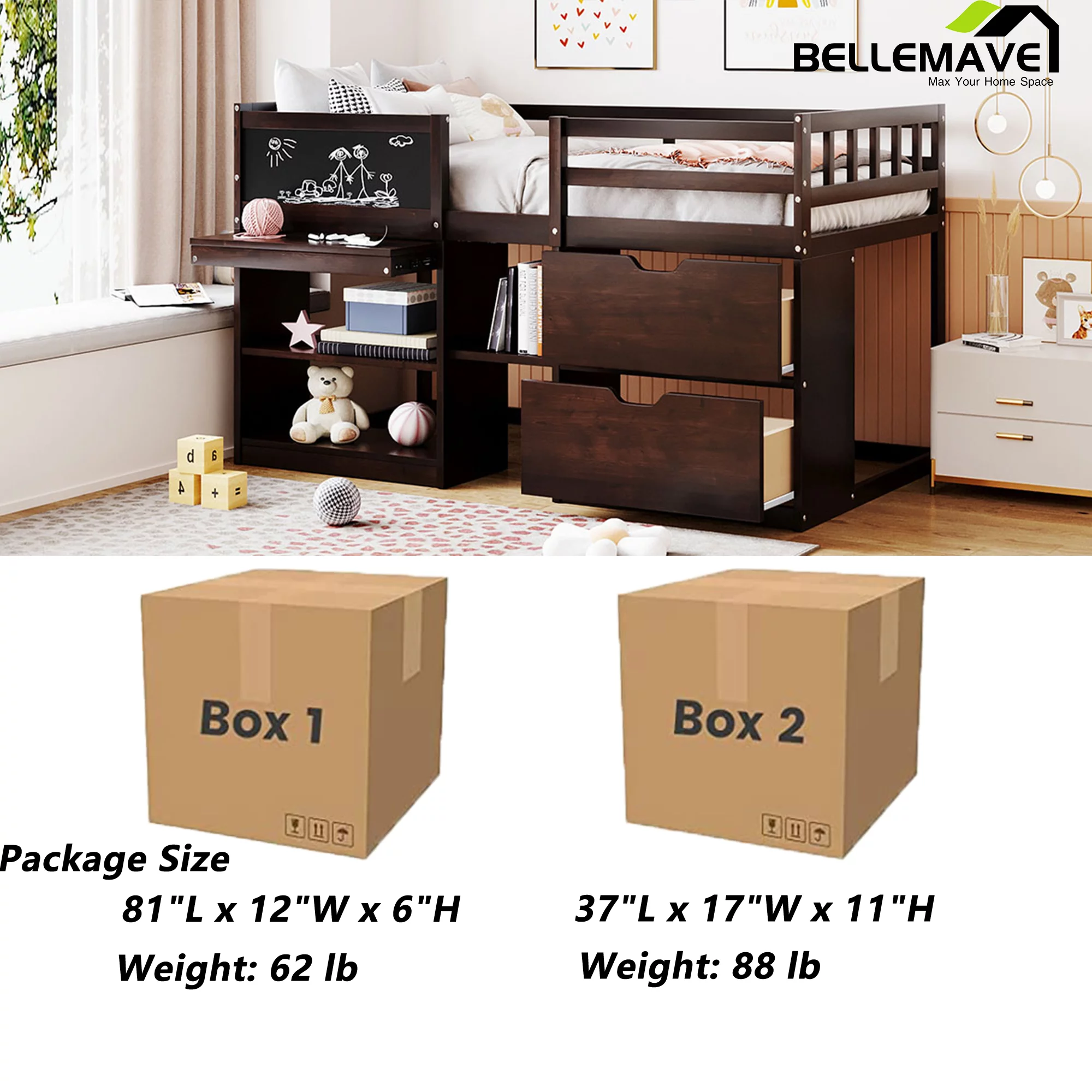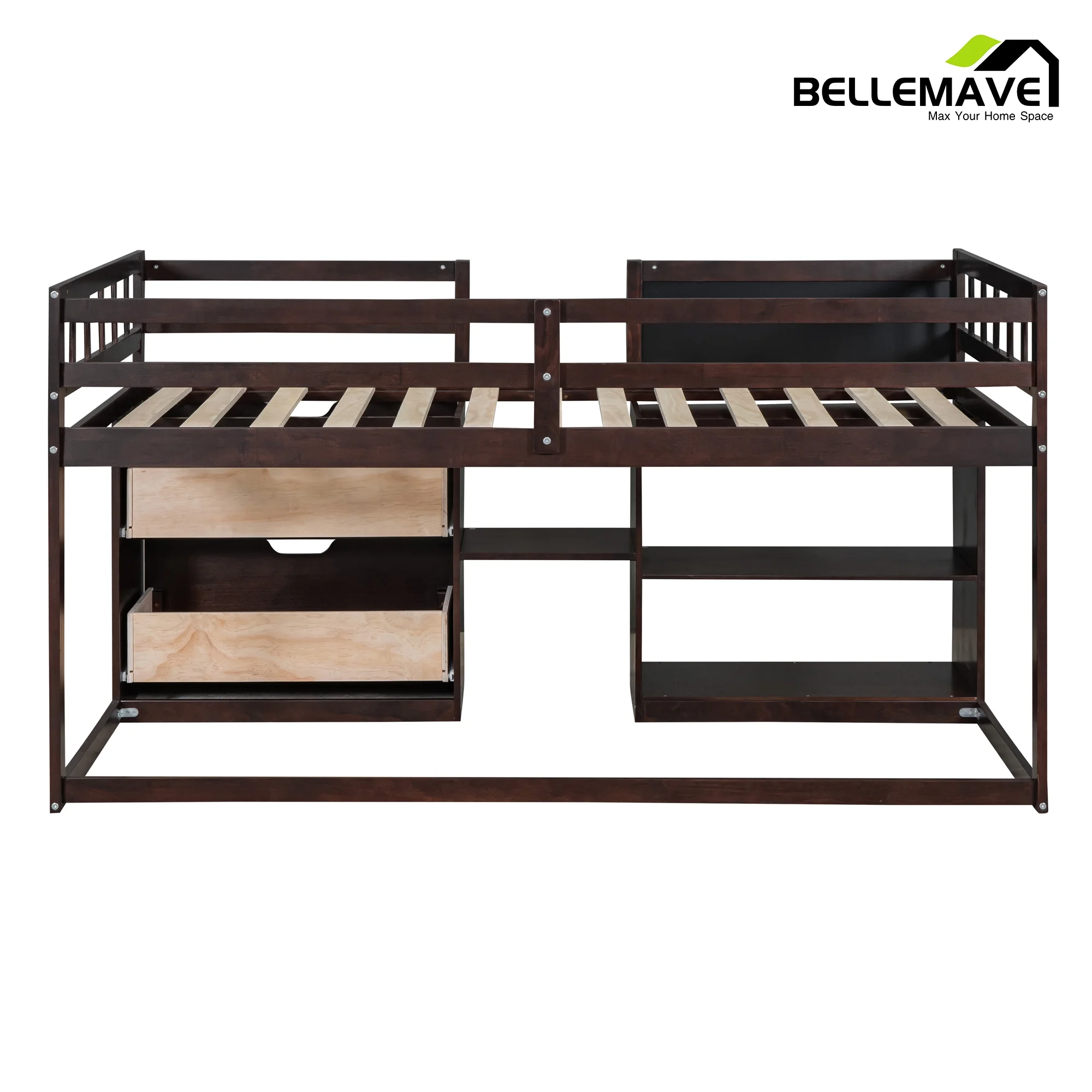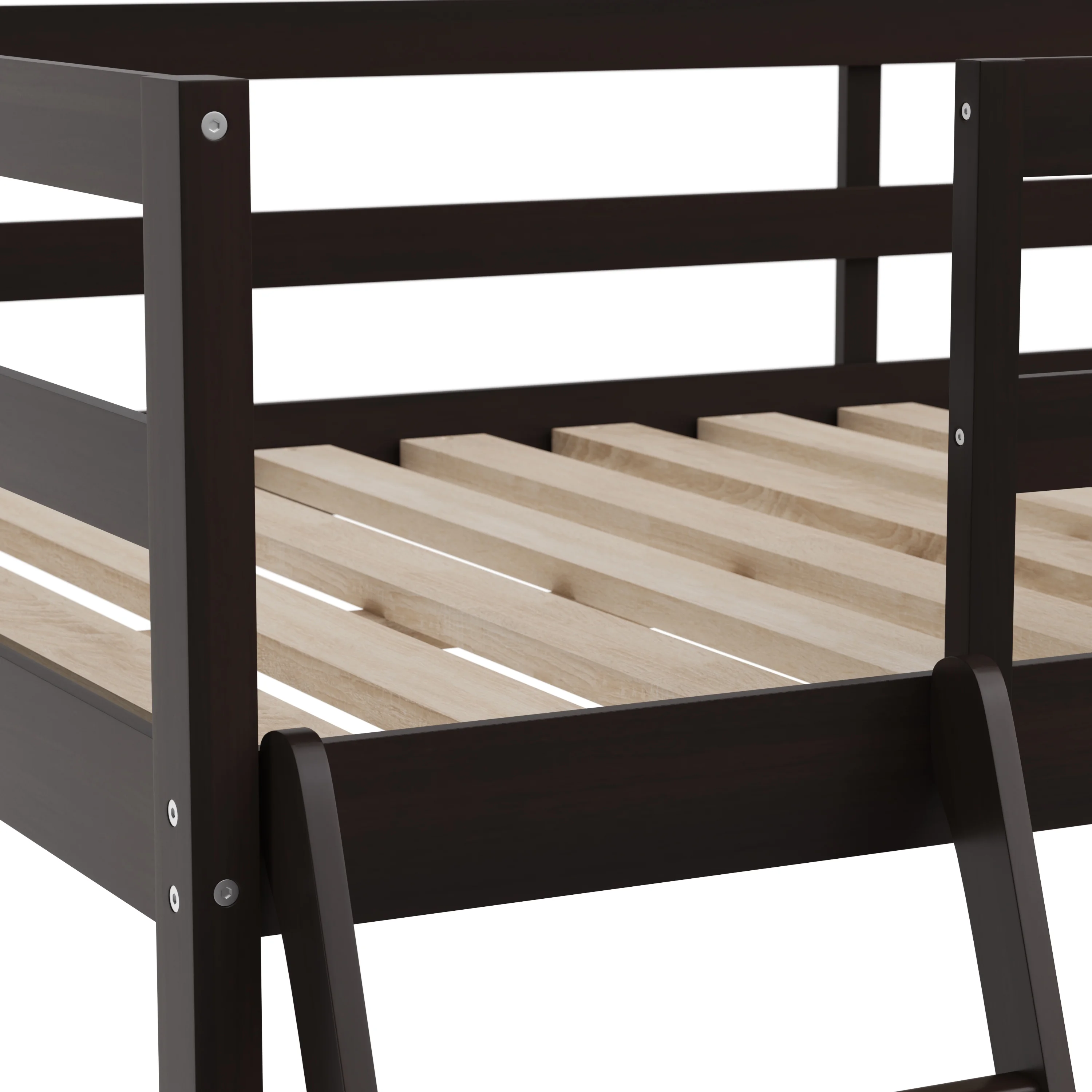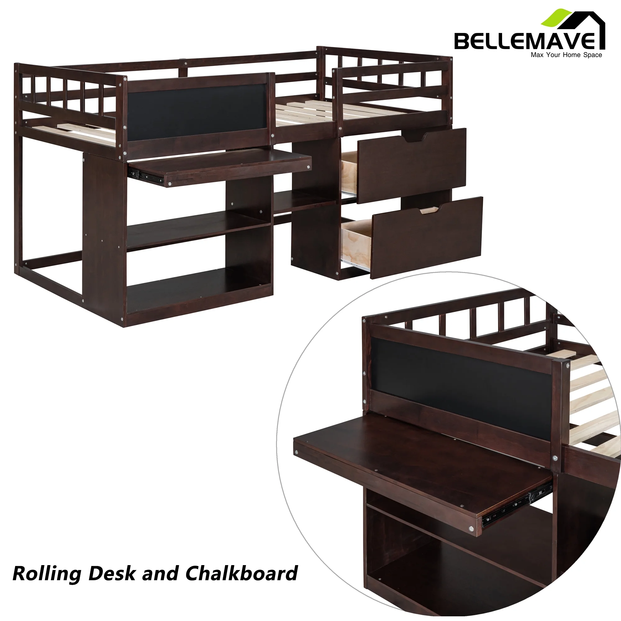 Euroco Wood Twin Loft Bed with Desk & Storage Shelves for Kids Bedroom, Espresso