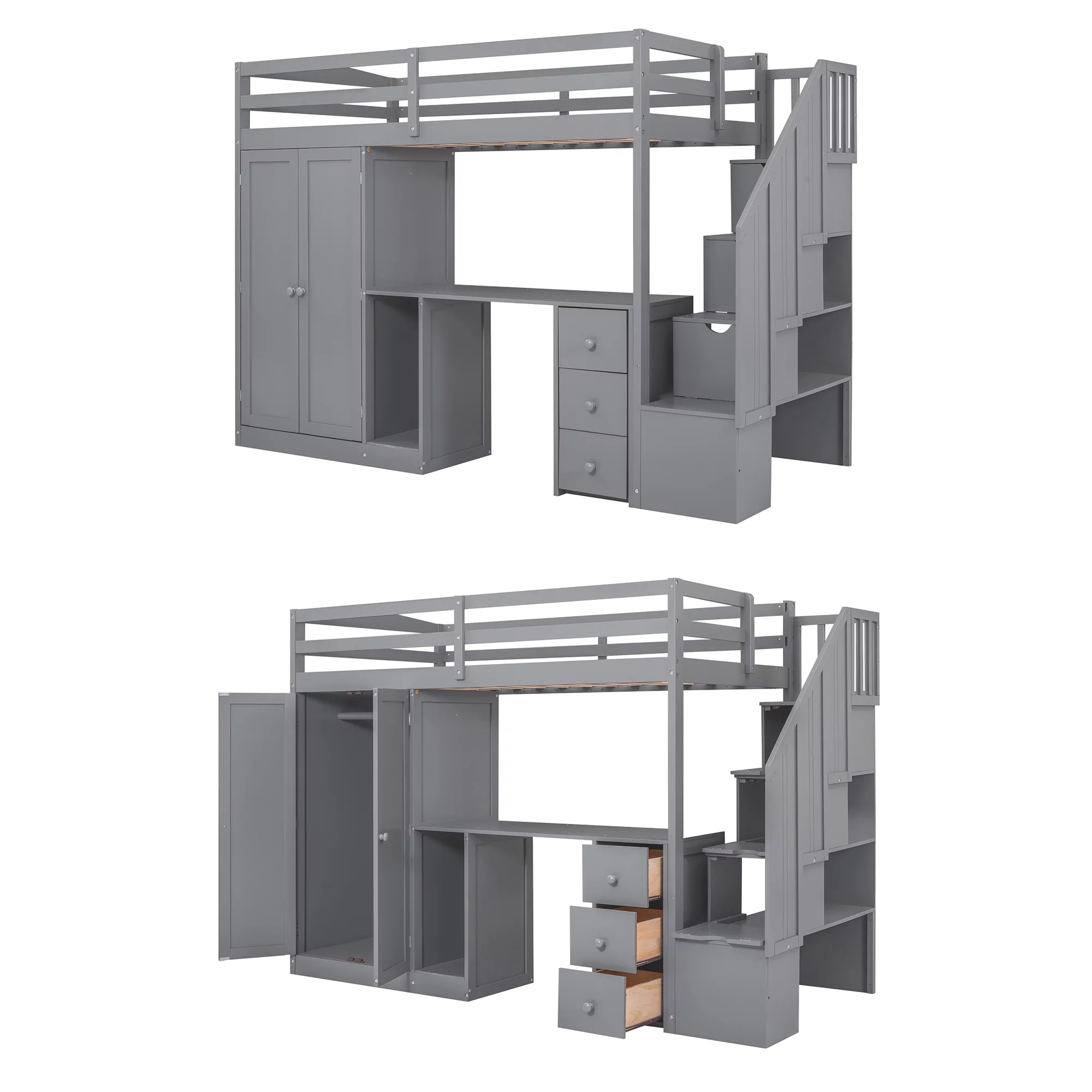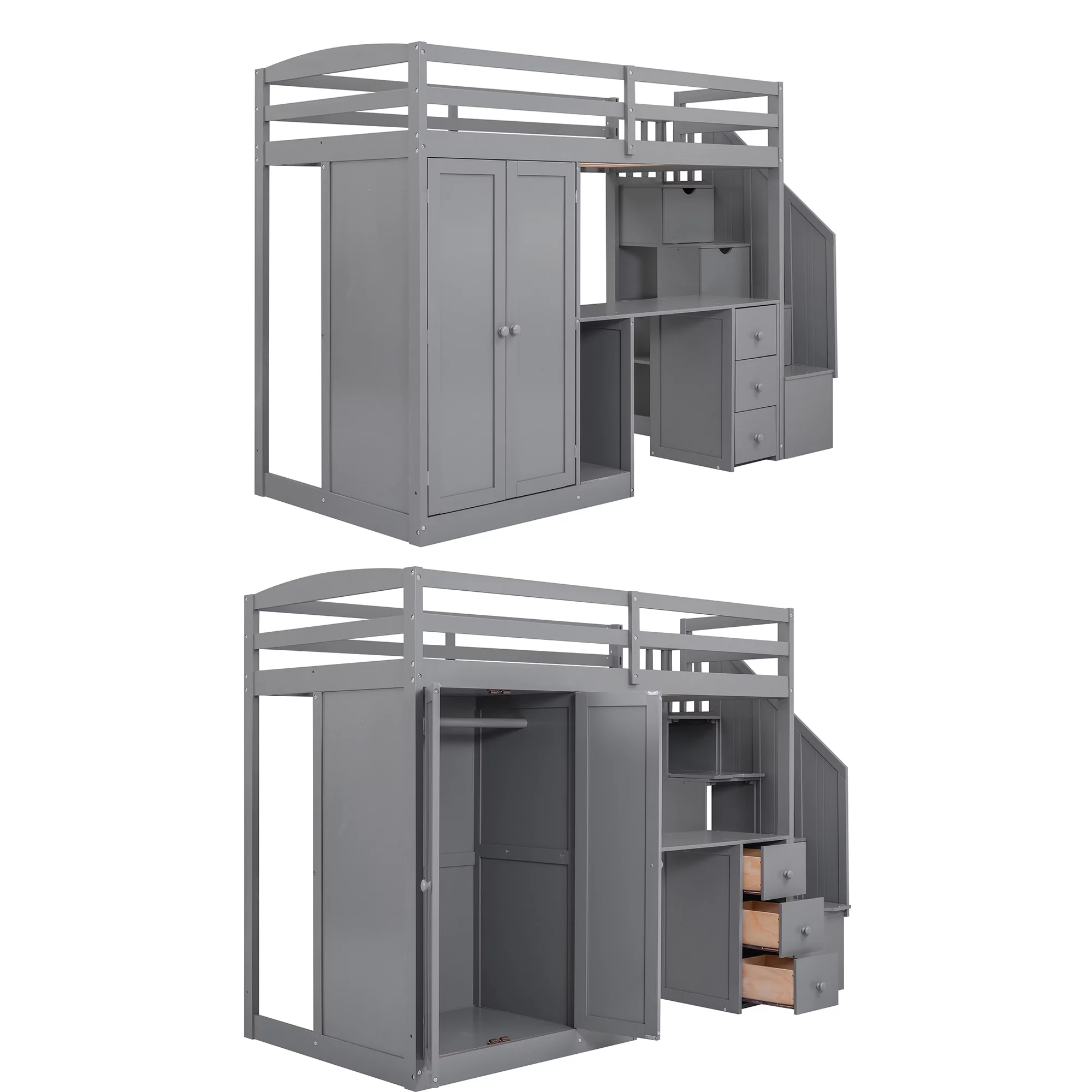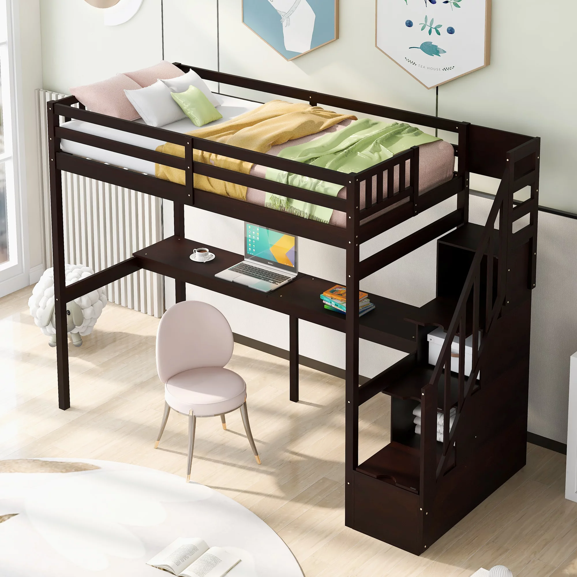 EUROCO Twin Size Loft Bed with Storage Staircase and Desk for Kids Bedroom, Espresso