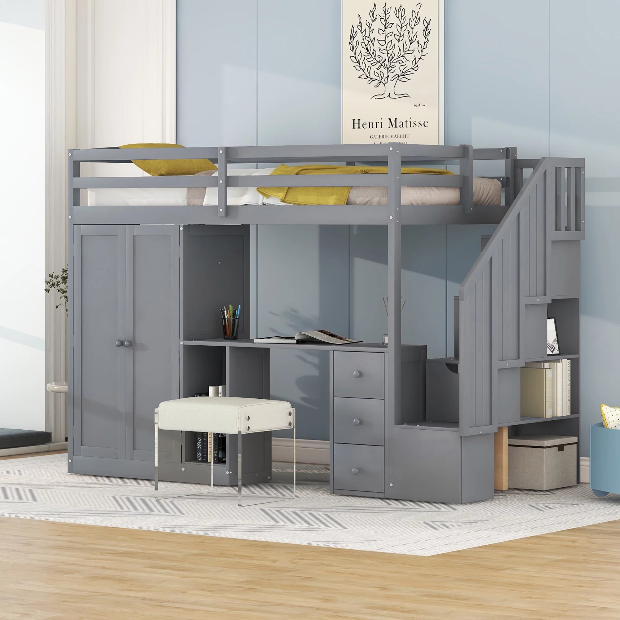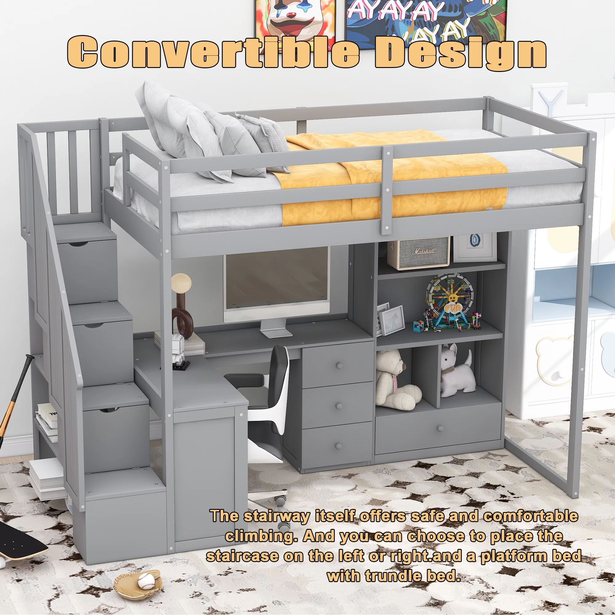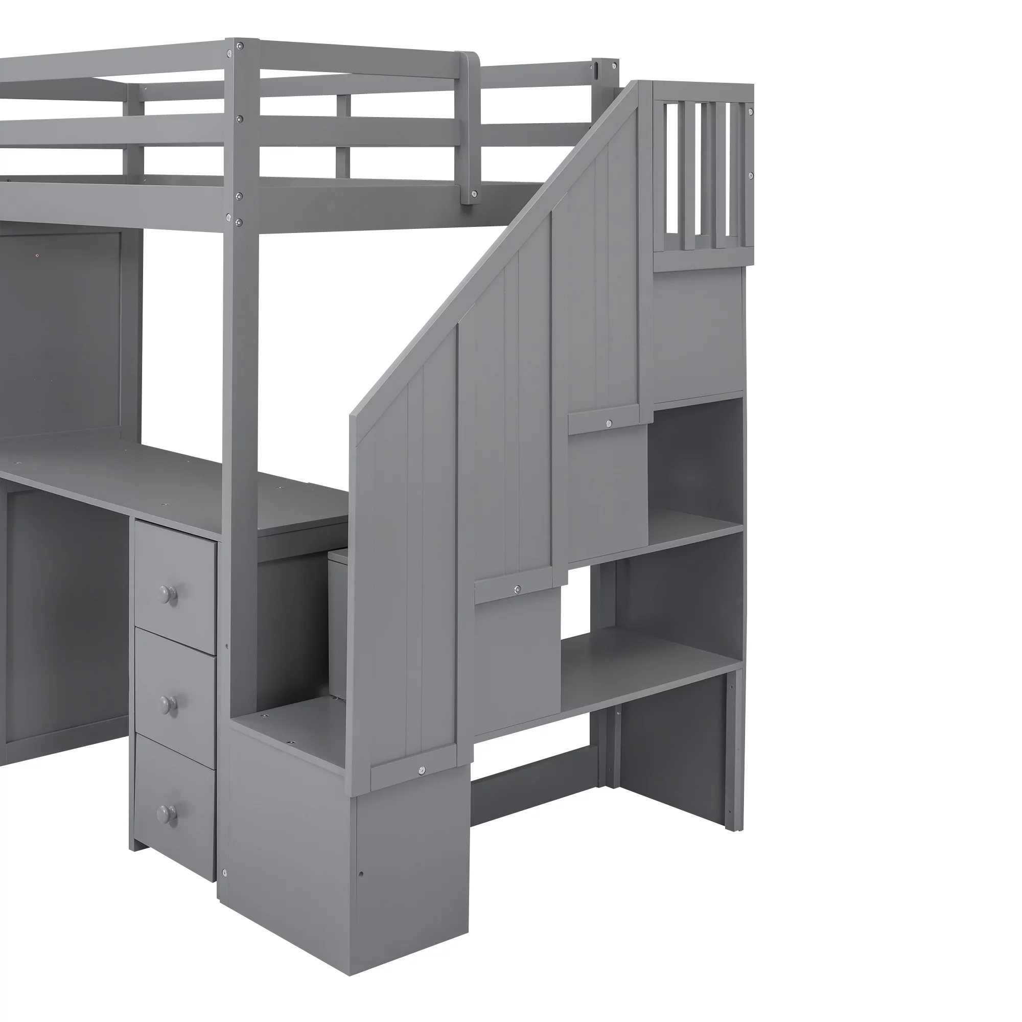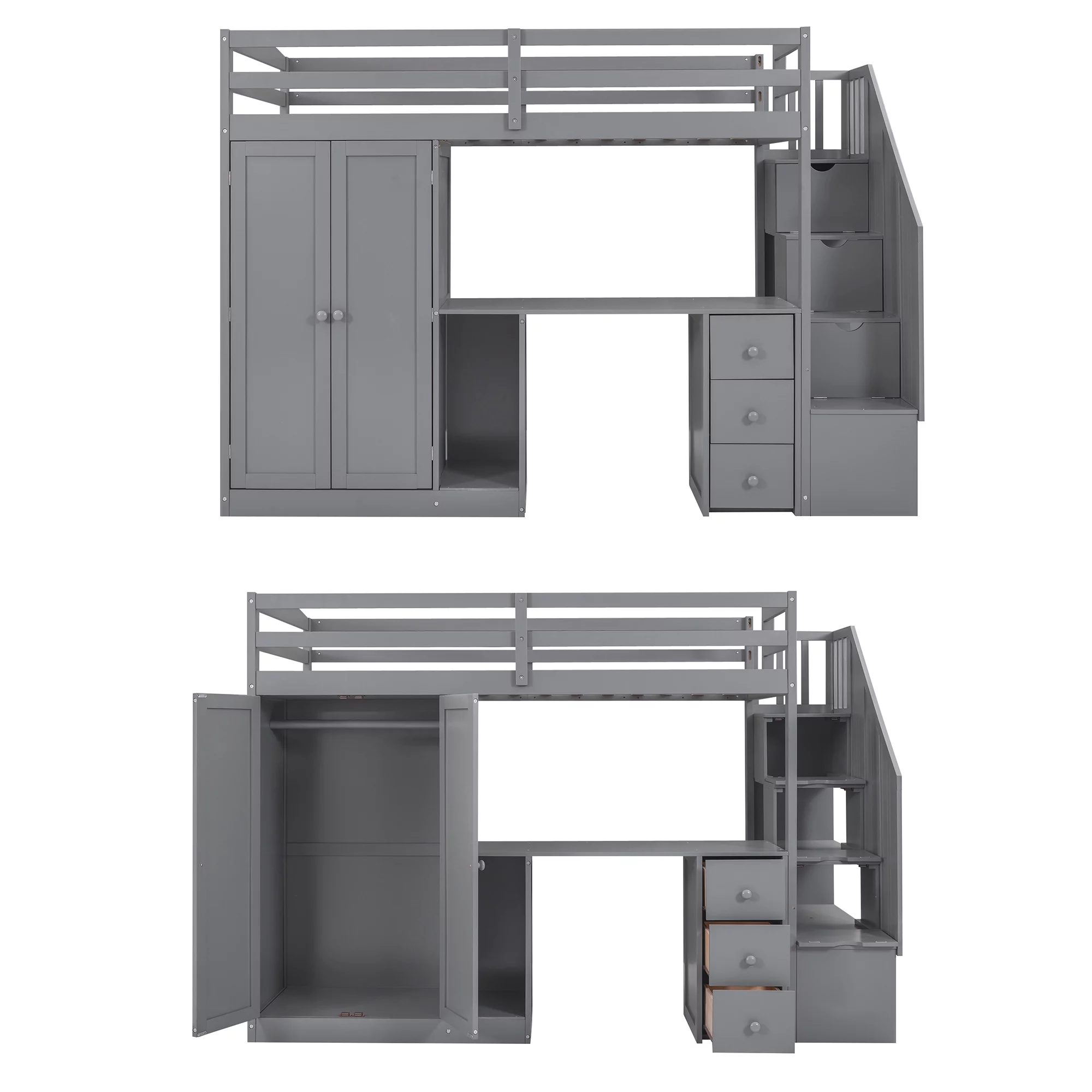 EUROCO Twin Size Loft Bed with Storage Staircase and Desk for Kids Bedroom, Espresso