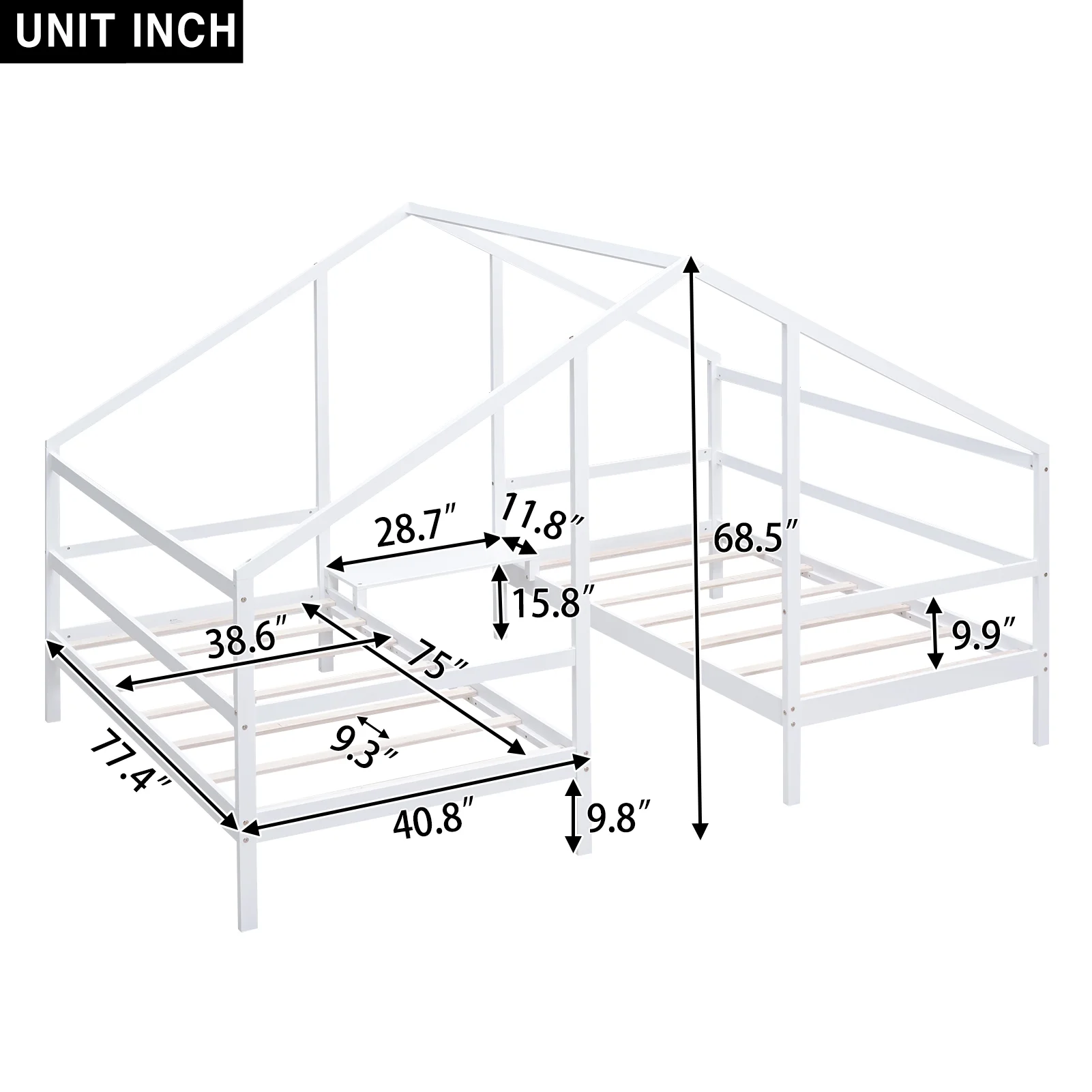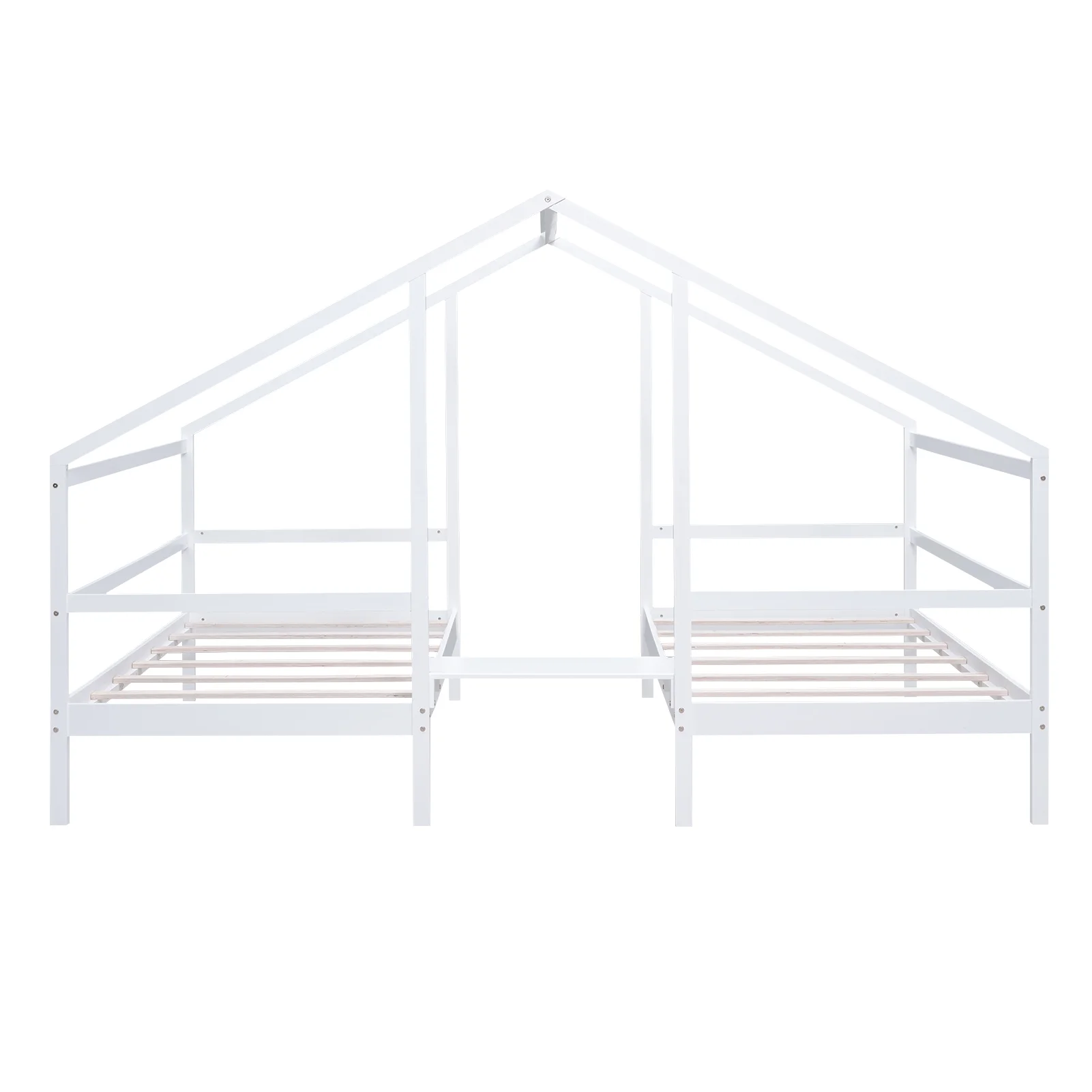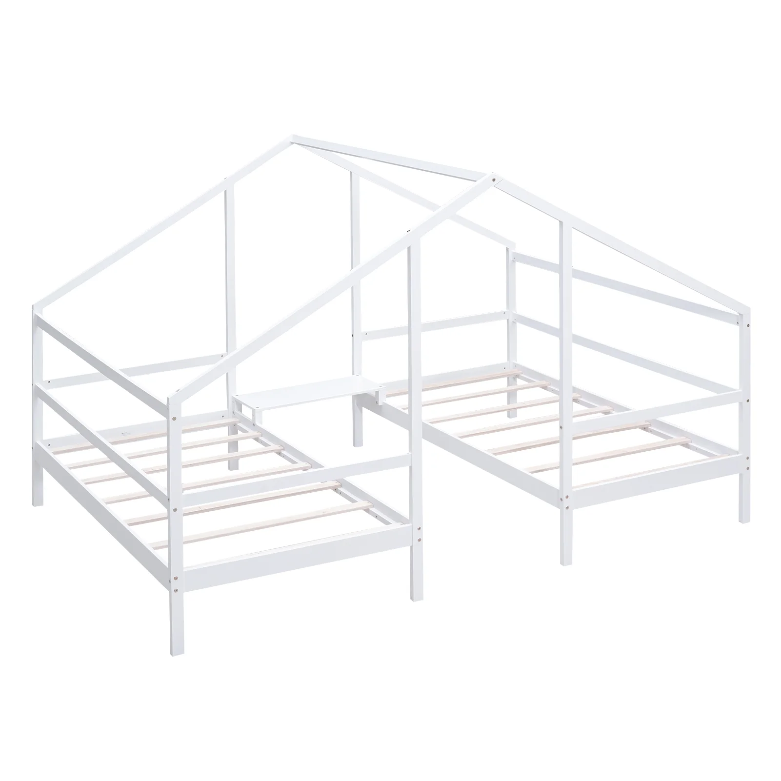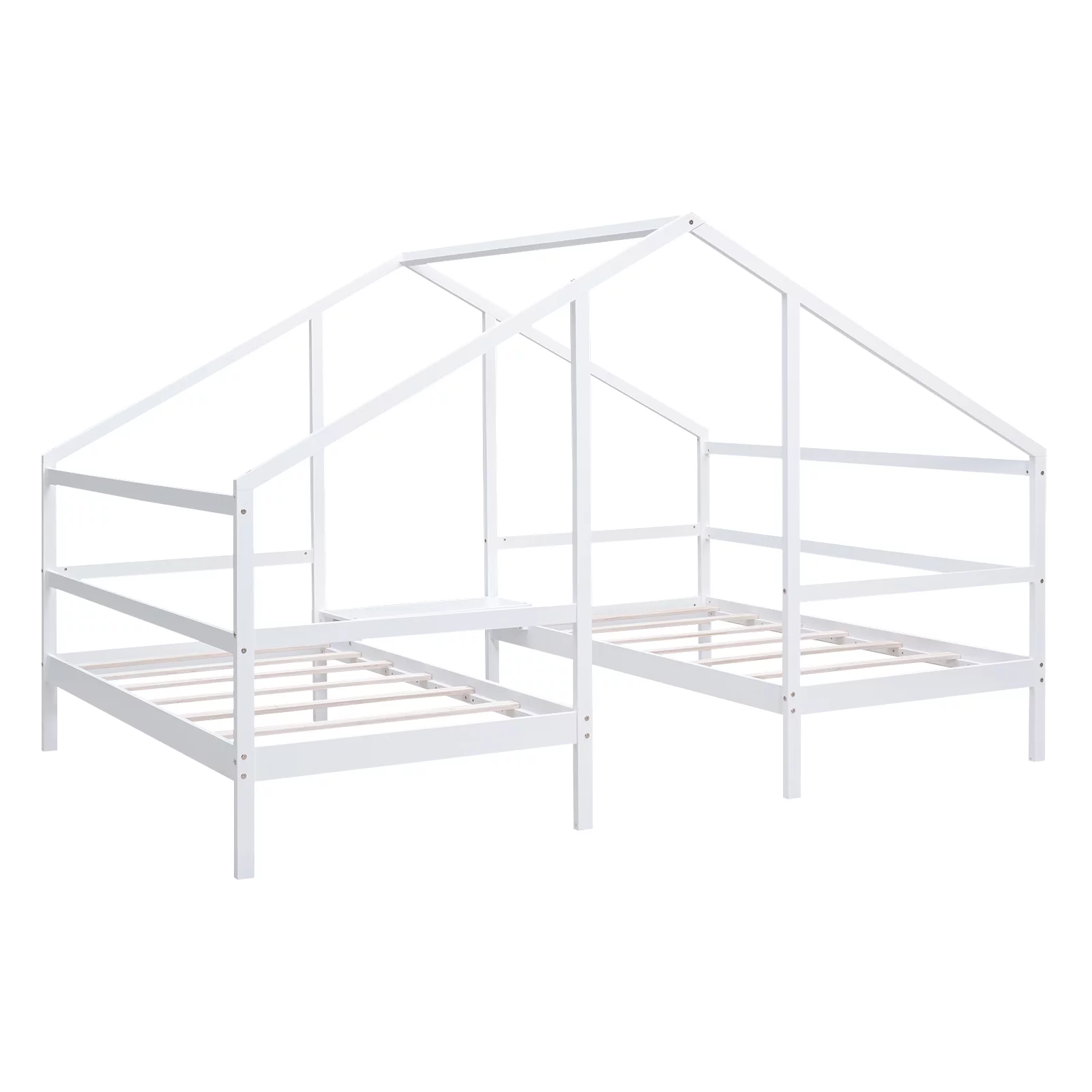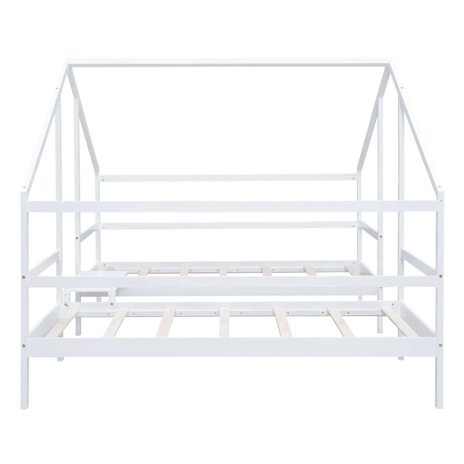 Euroco Wood Twin House Two Beds in One with Movable Desk for Kids Bedroom, White