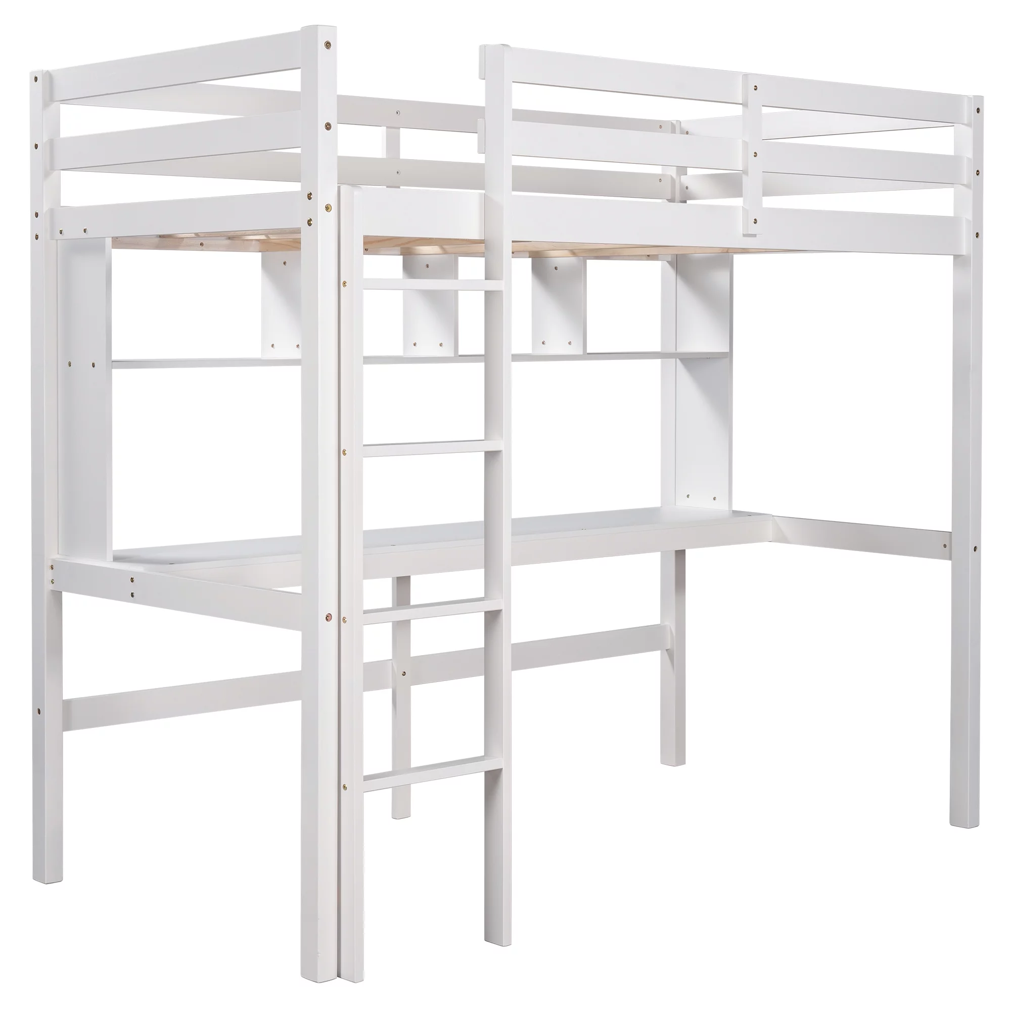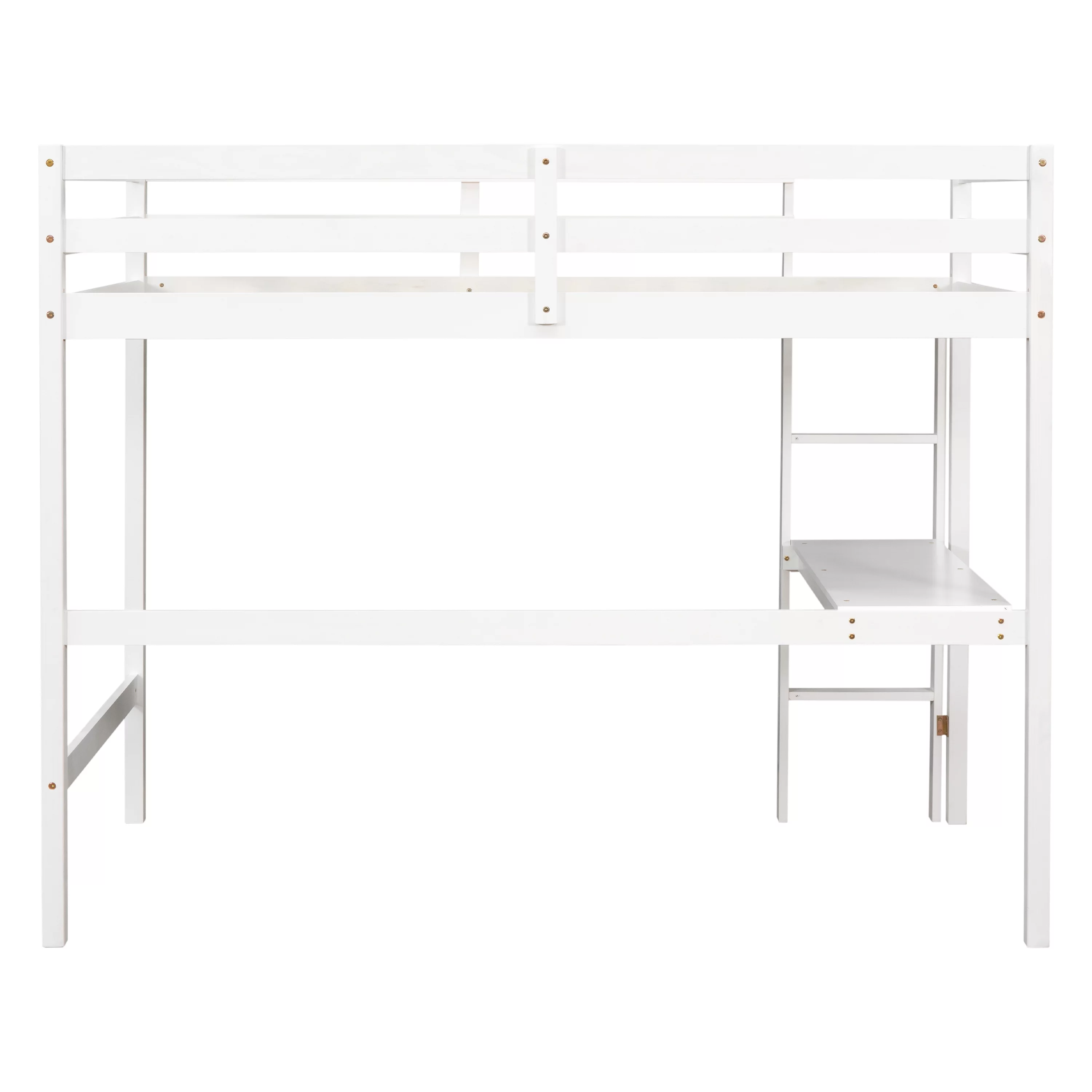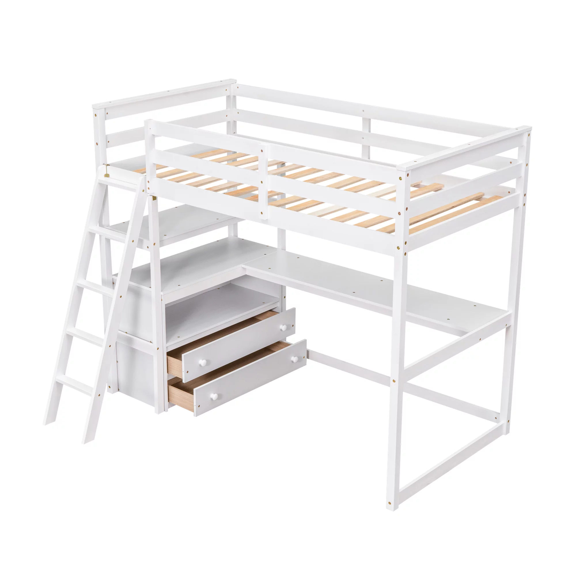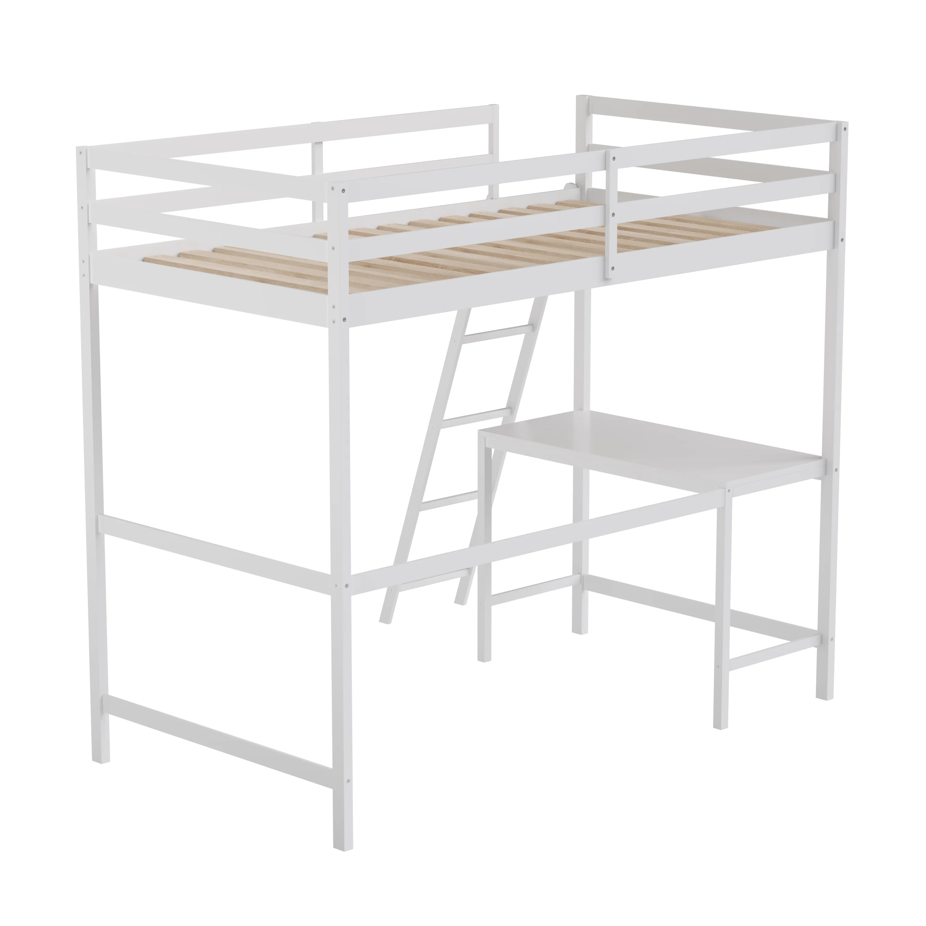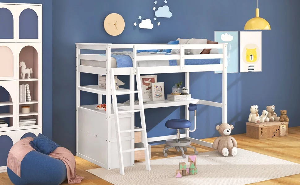 Gewnee Pine Wood Twin Size Loft Bed with Built-in Desk and Ladder for Kids Room,White