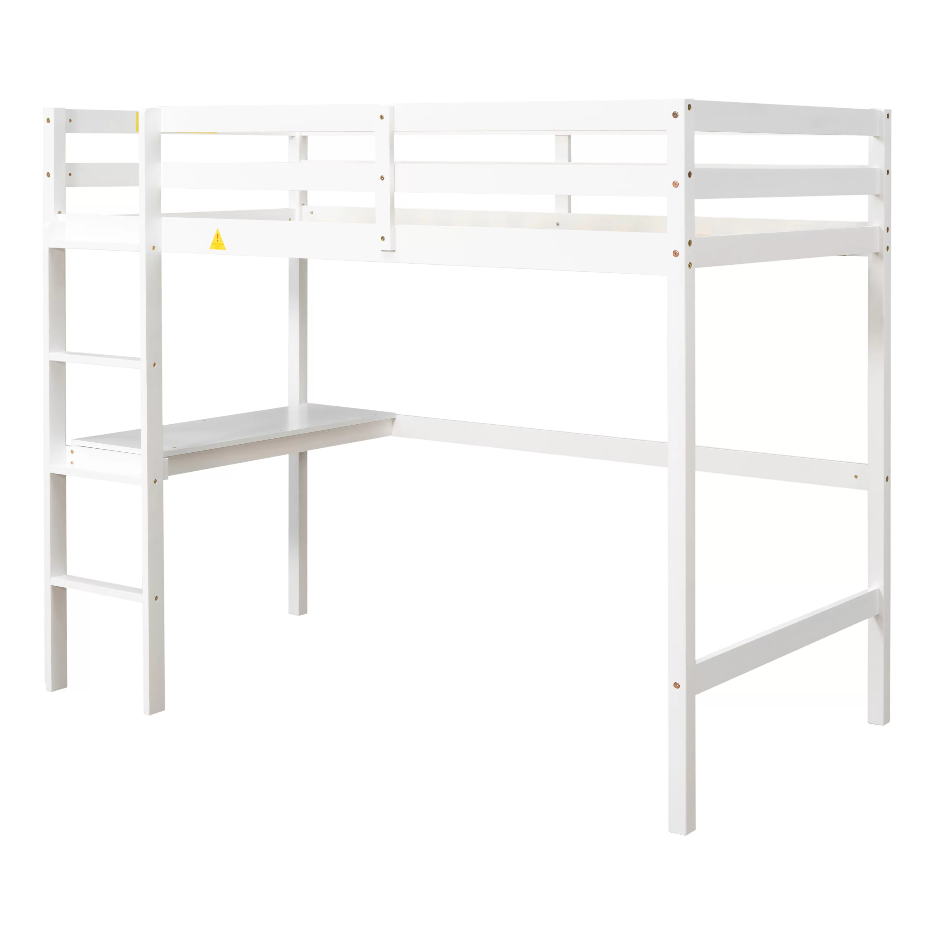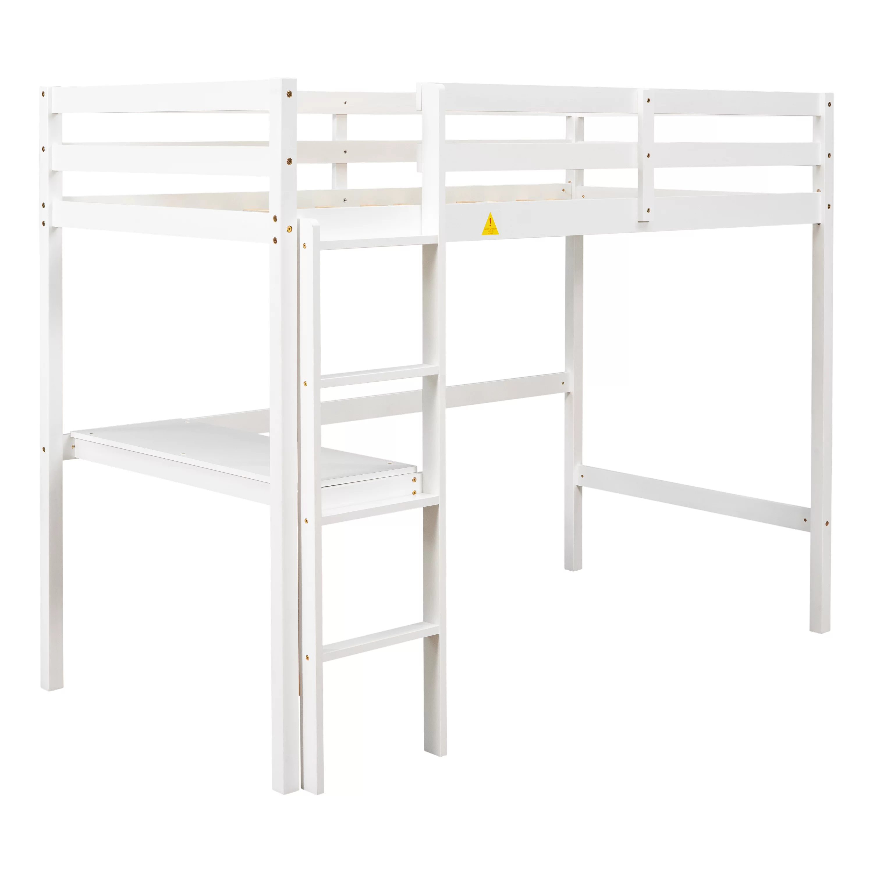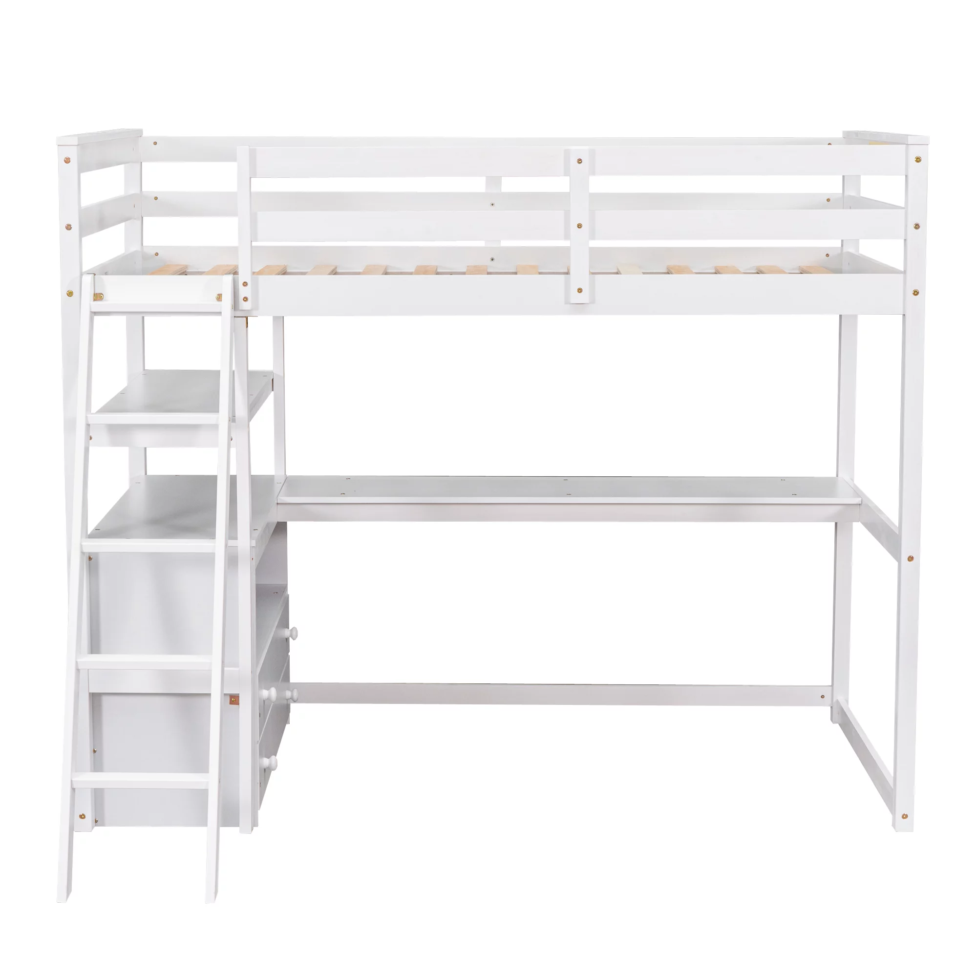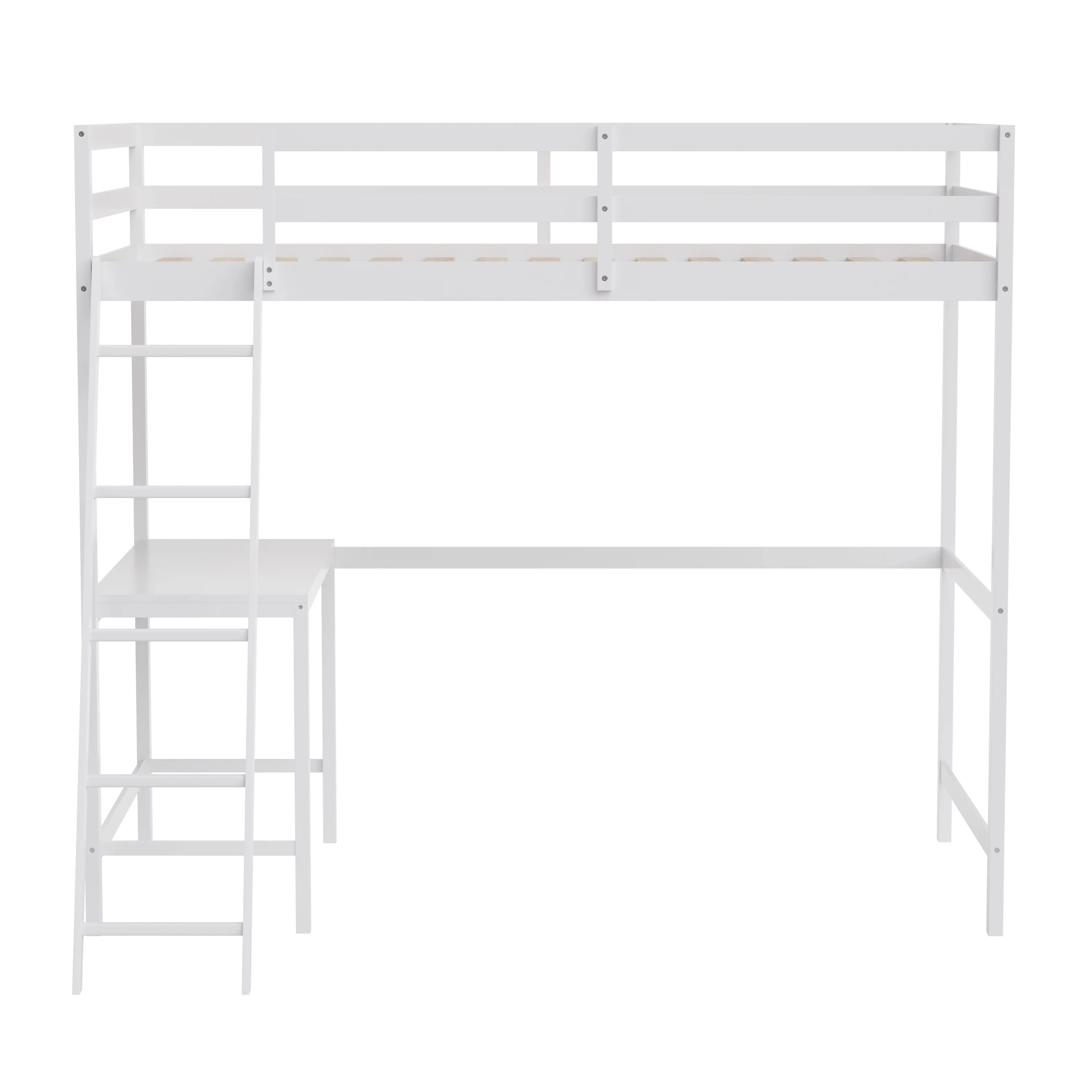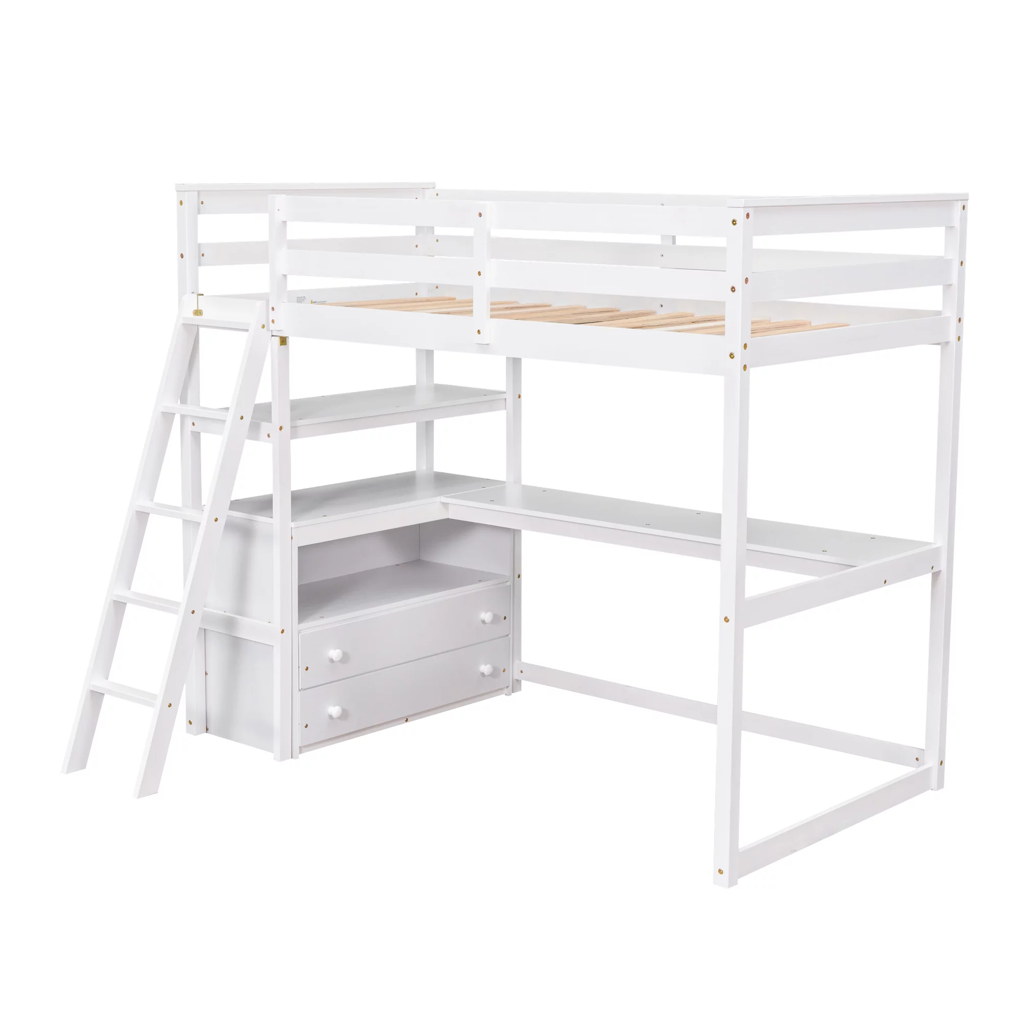 Gewnee Pine Wood Twin Size Loft Bed with Built-in Desk and Ladder for Kids Room,White