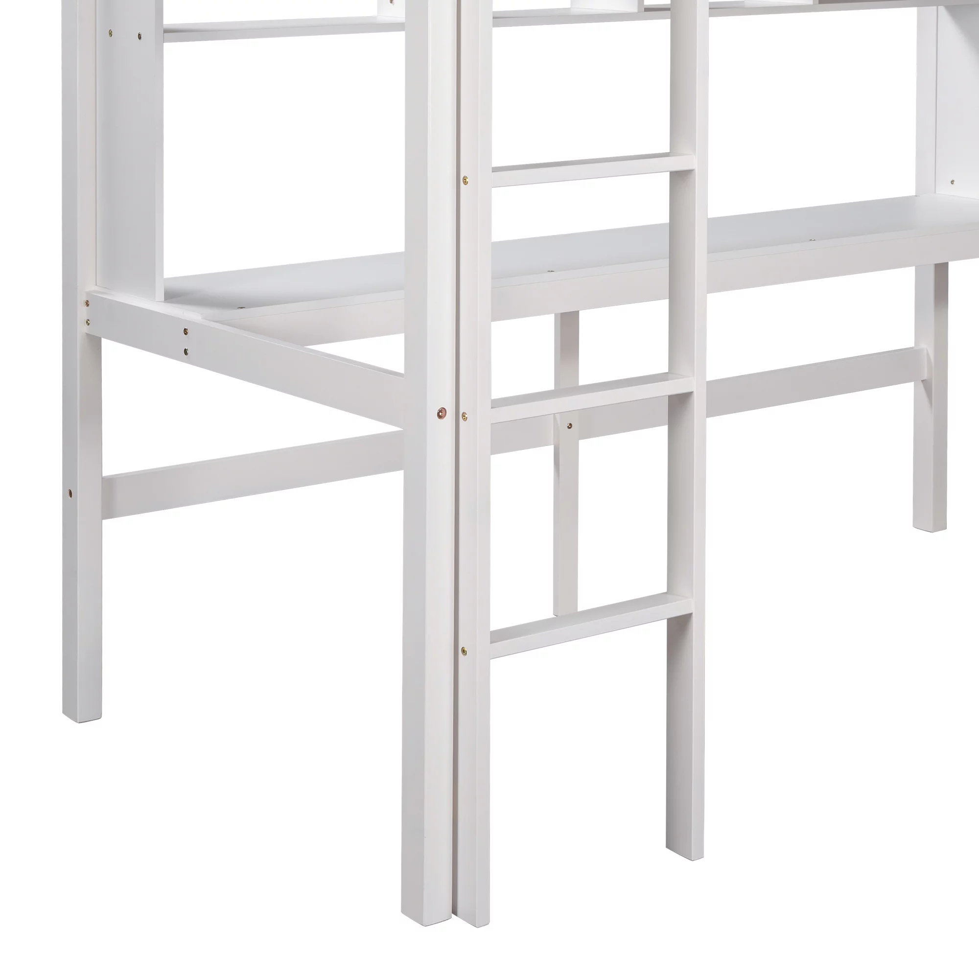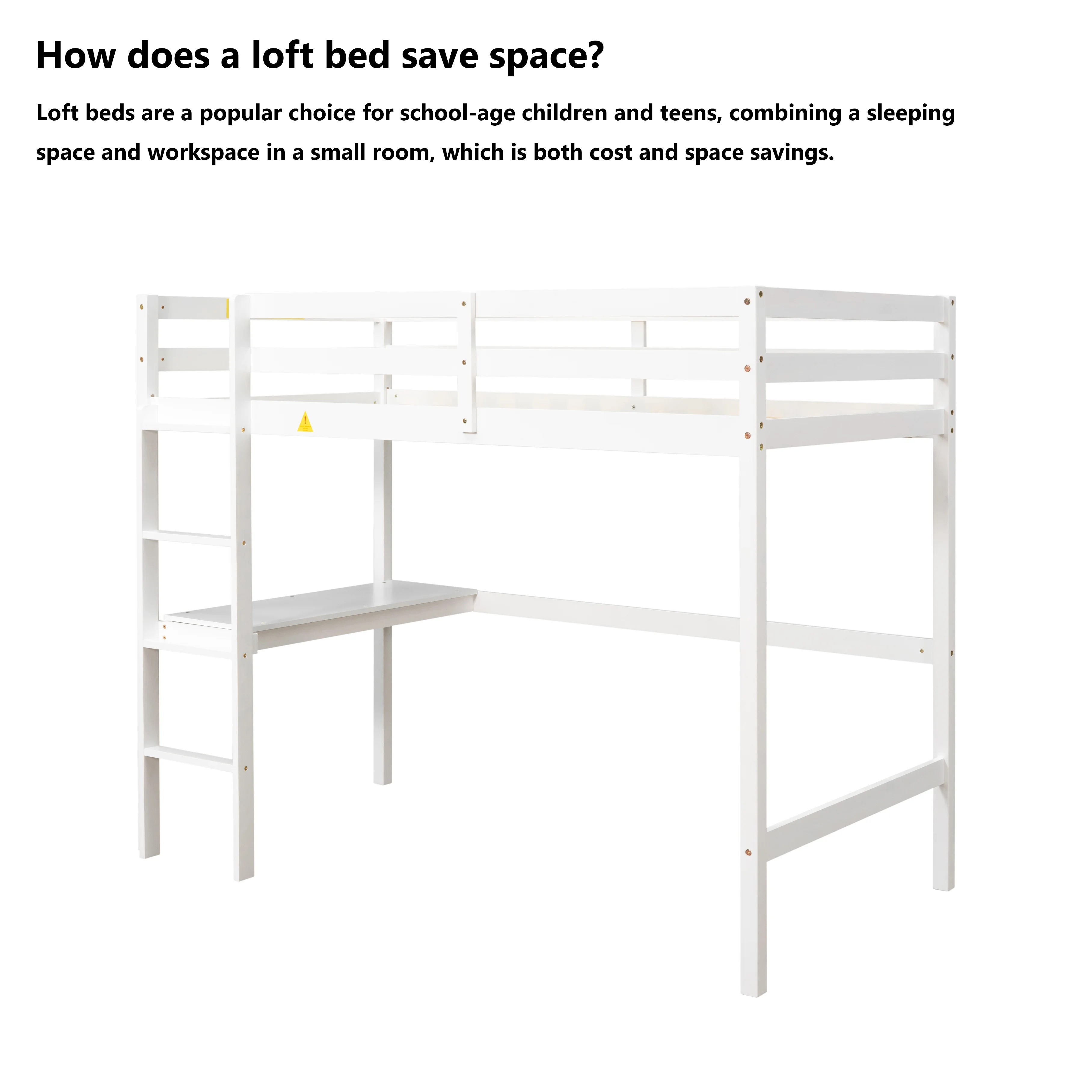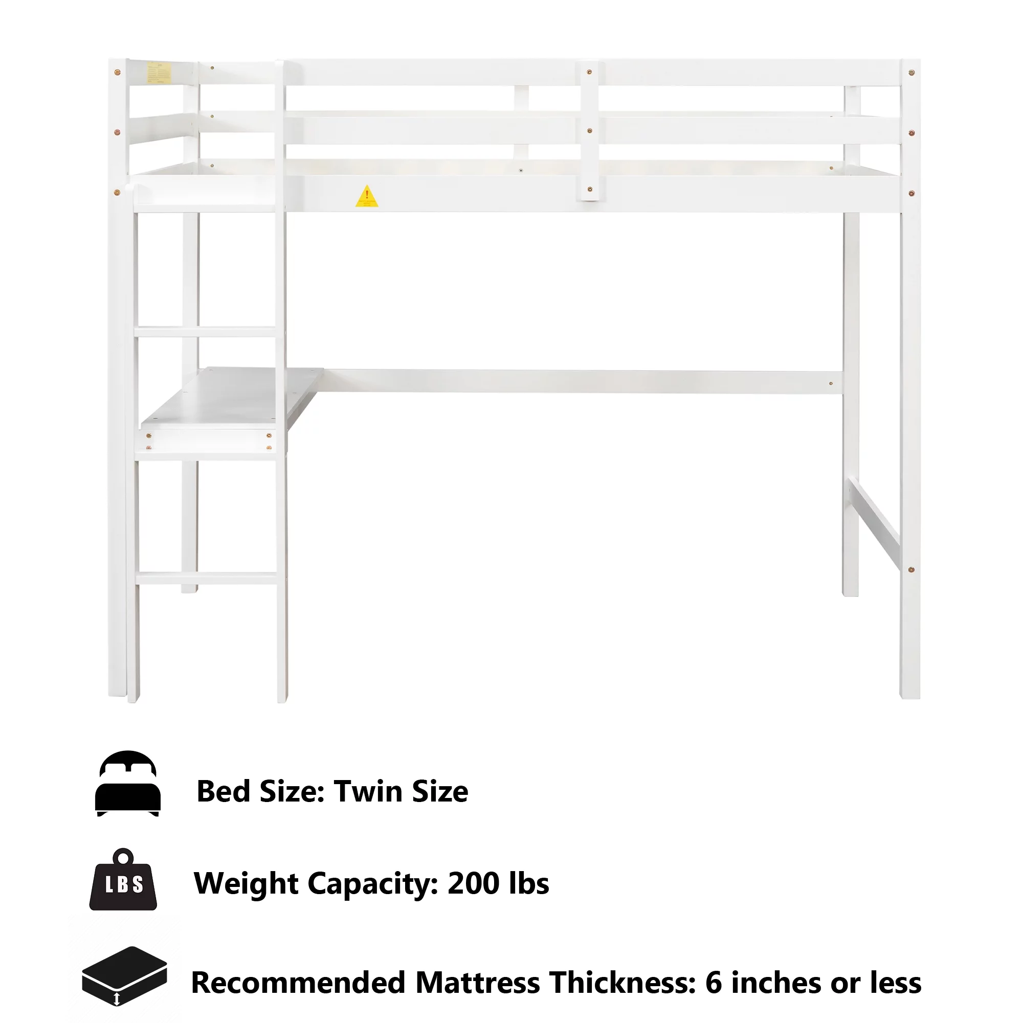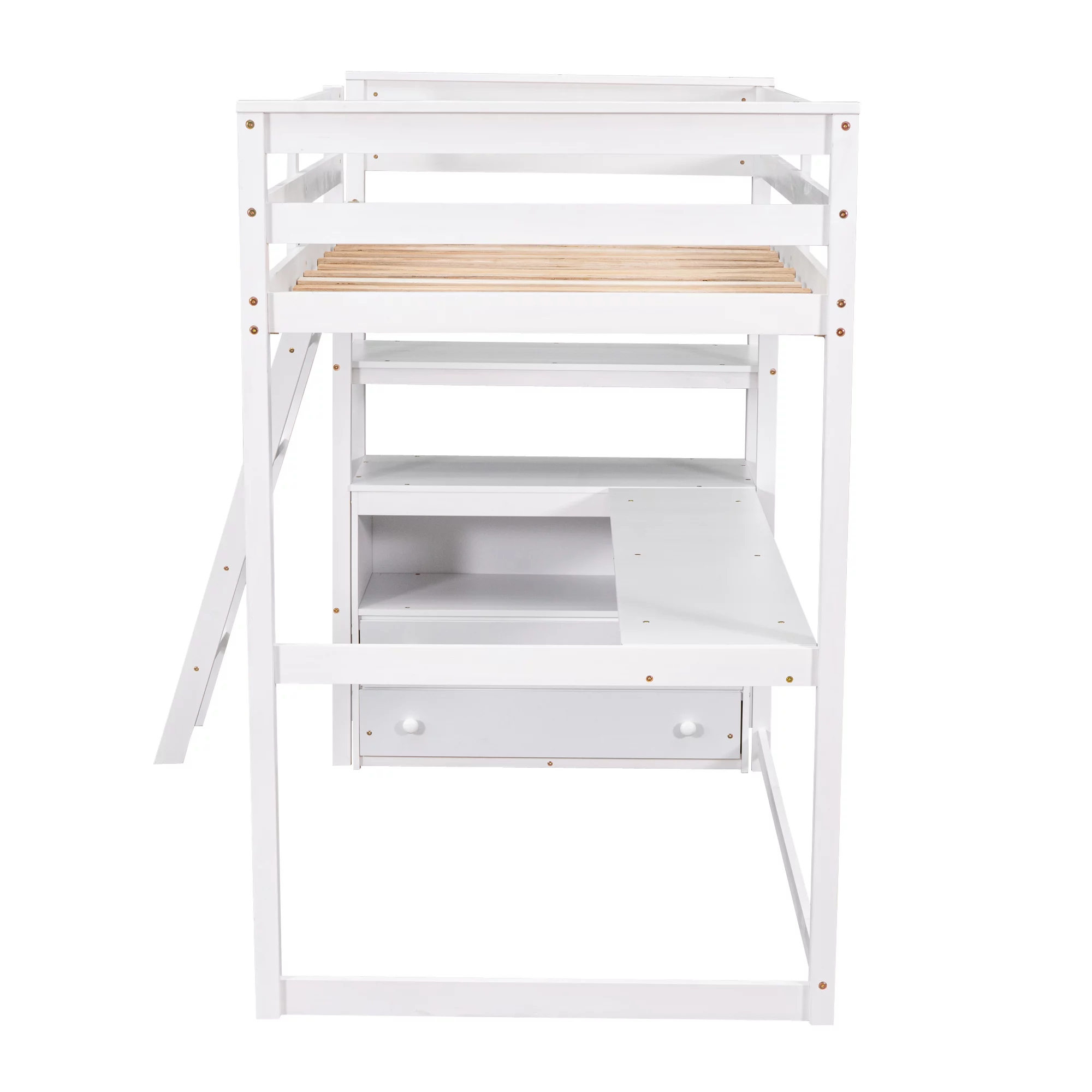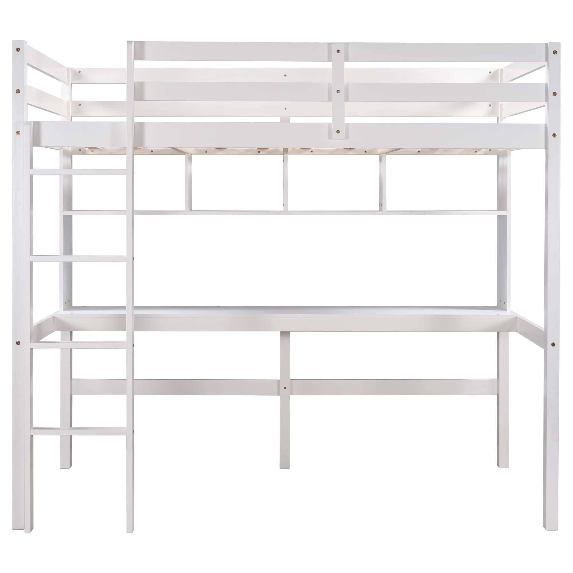Gewnee Pine Wood Twin Size Loft Bed with Built-in Desk and Ladder for Kids Room,White