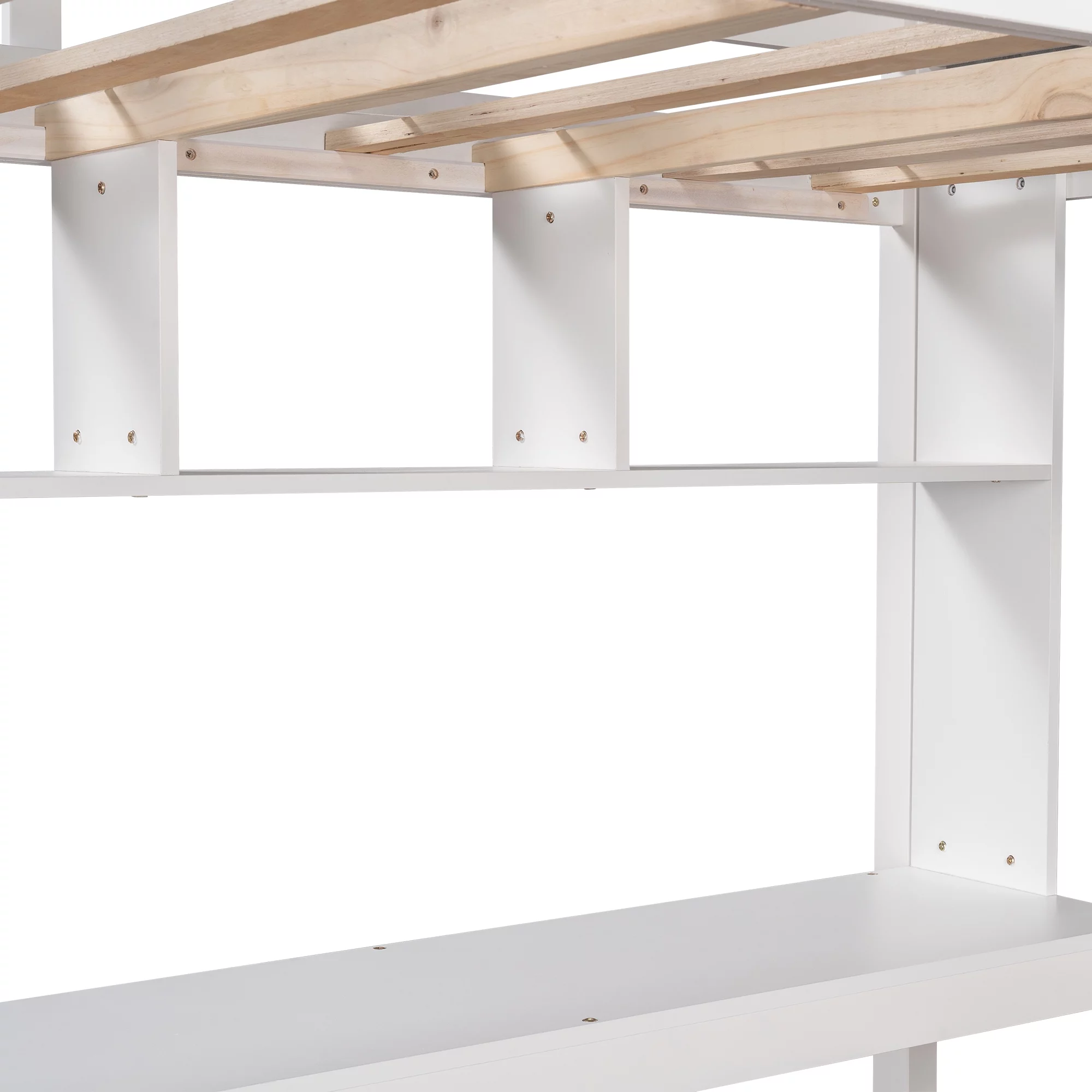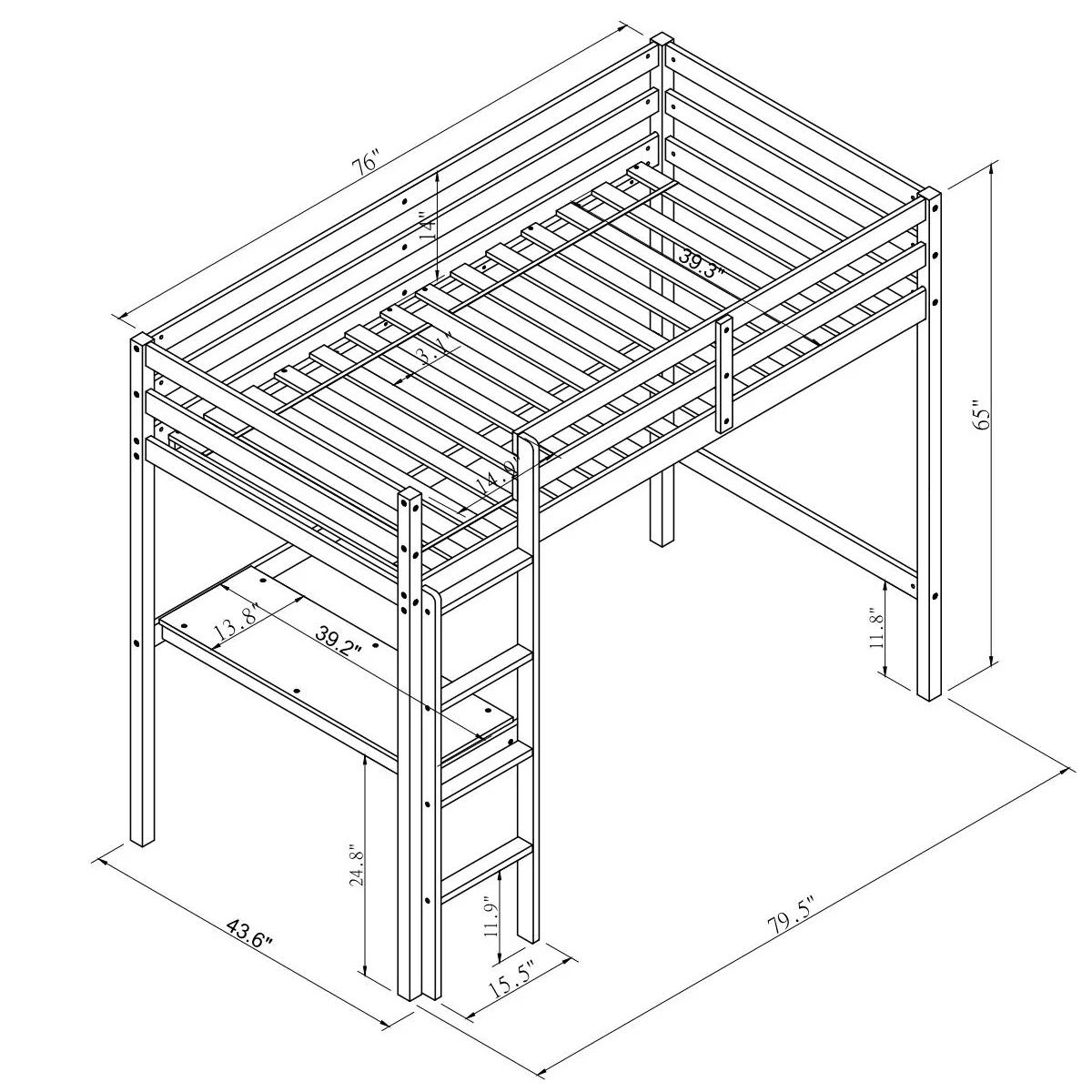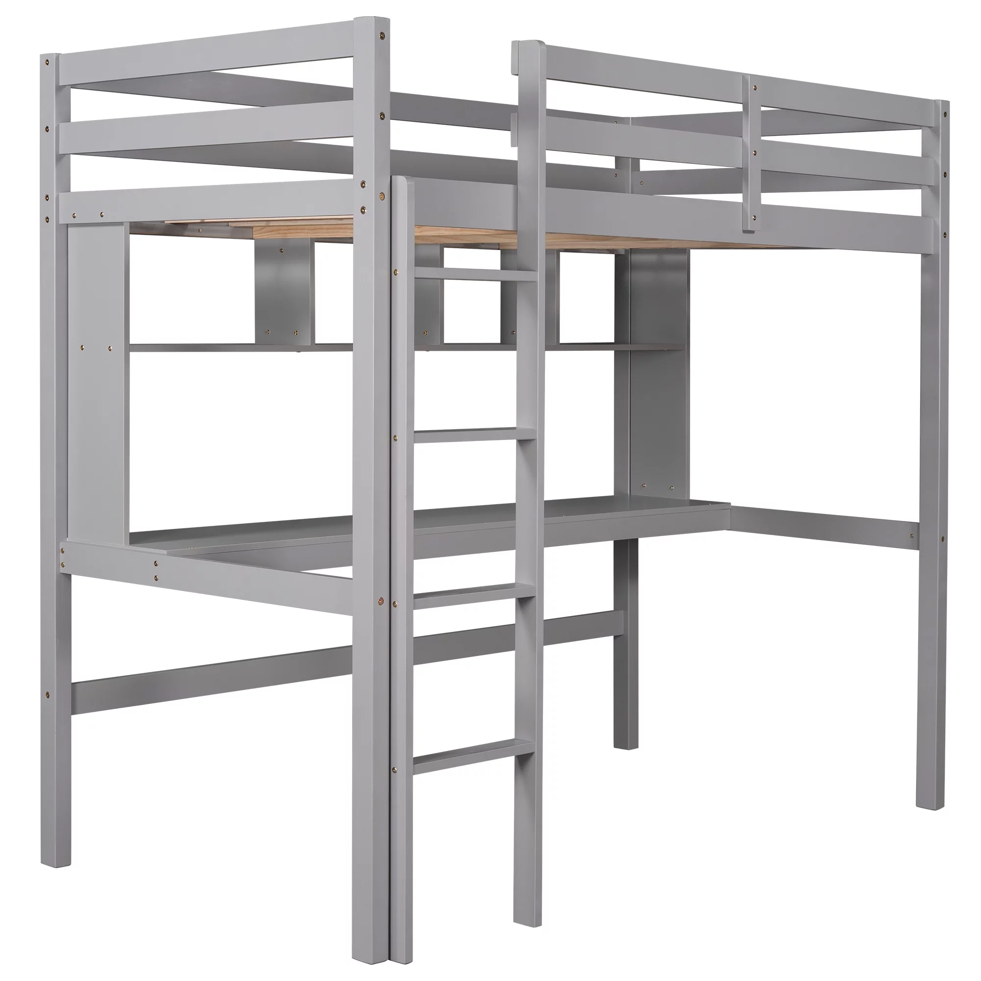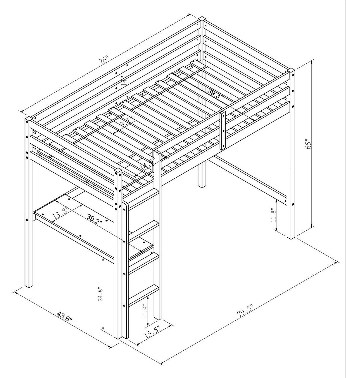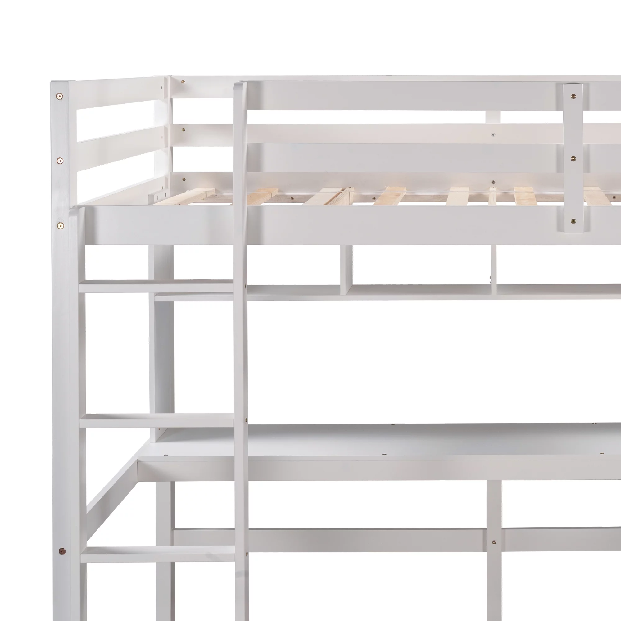 Gewnee Pine Wood Twin Size Loft Bed with Built-in Desk and Ladder for Kids Room,White