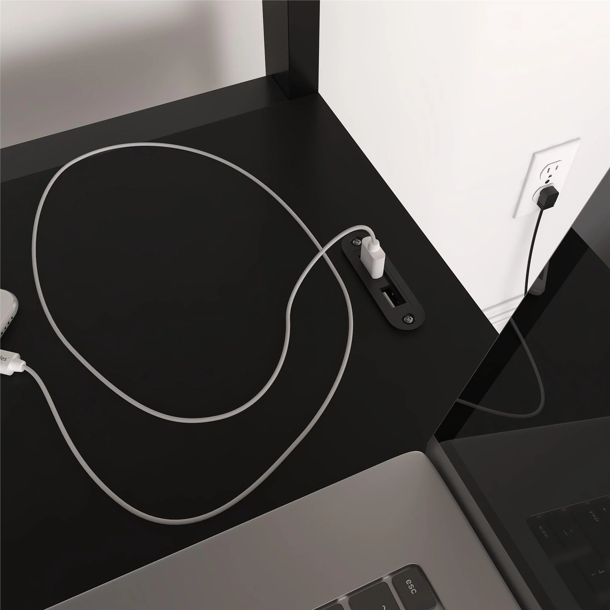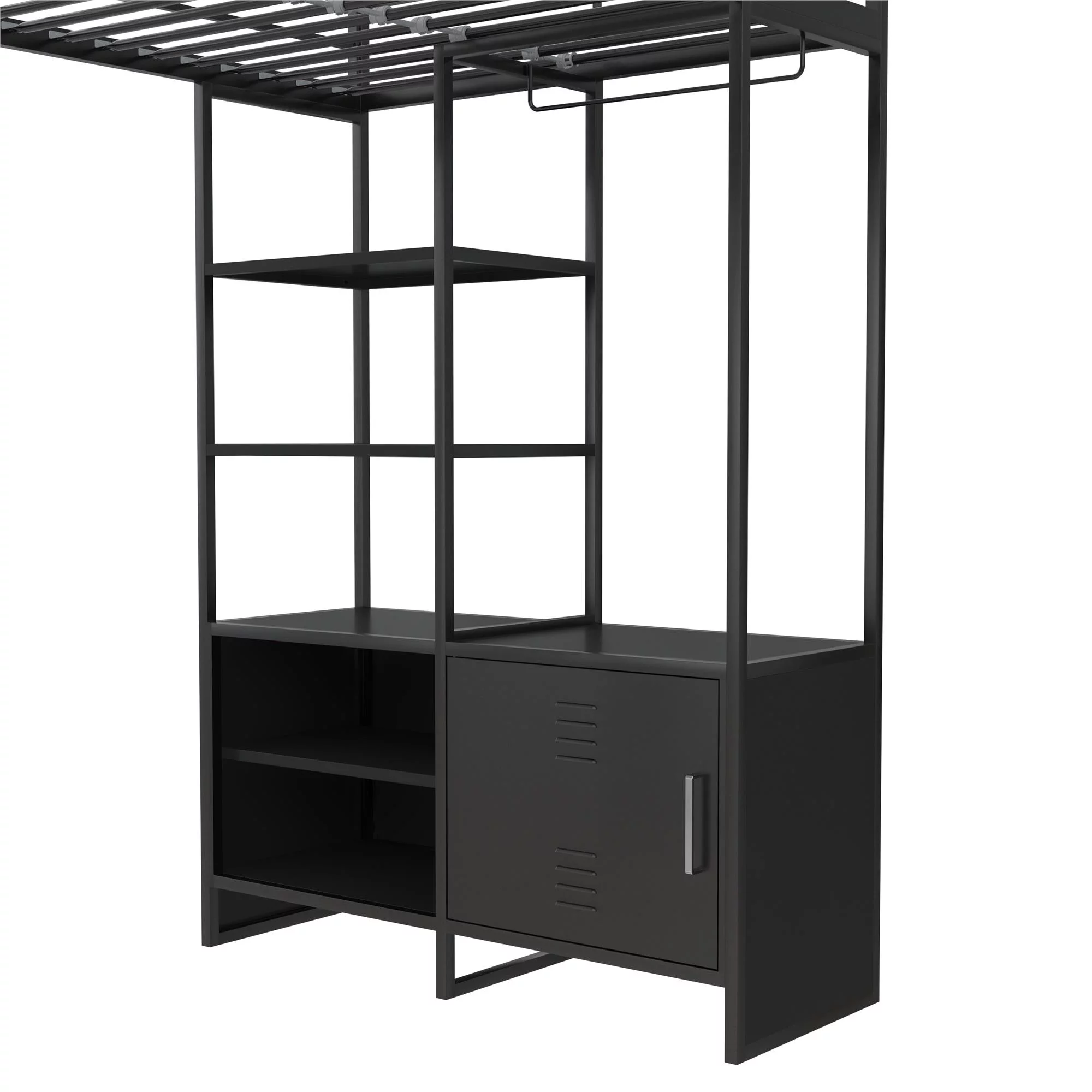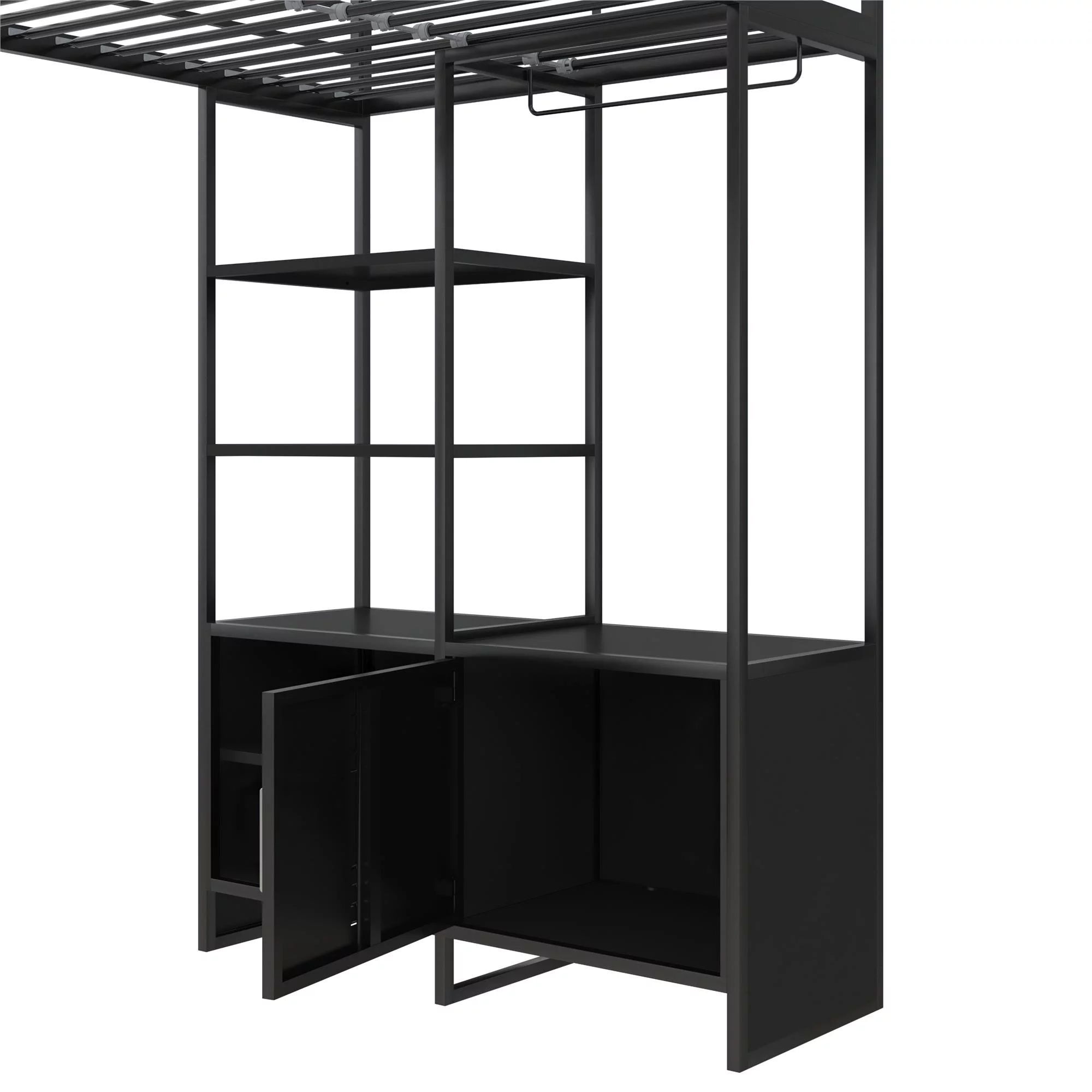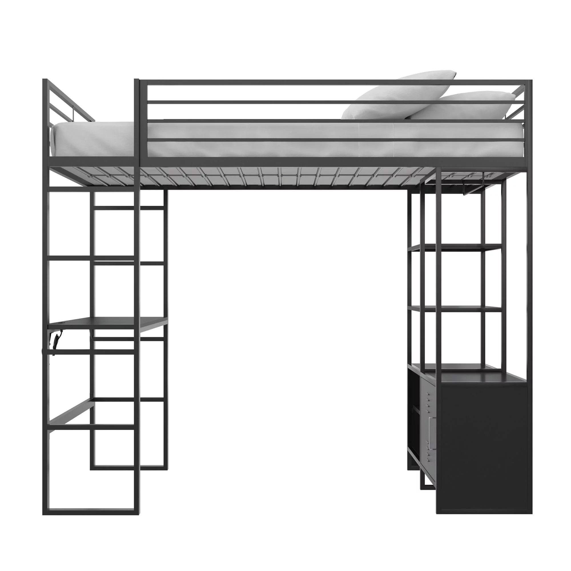 DHP Lanis Metal Storage Loft Bed with Desk, Shelves, Cabinet and USB Port, Twin, Black