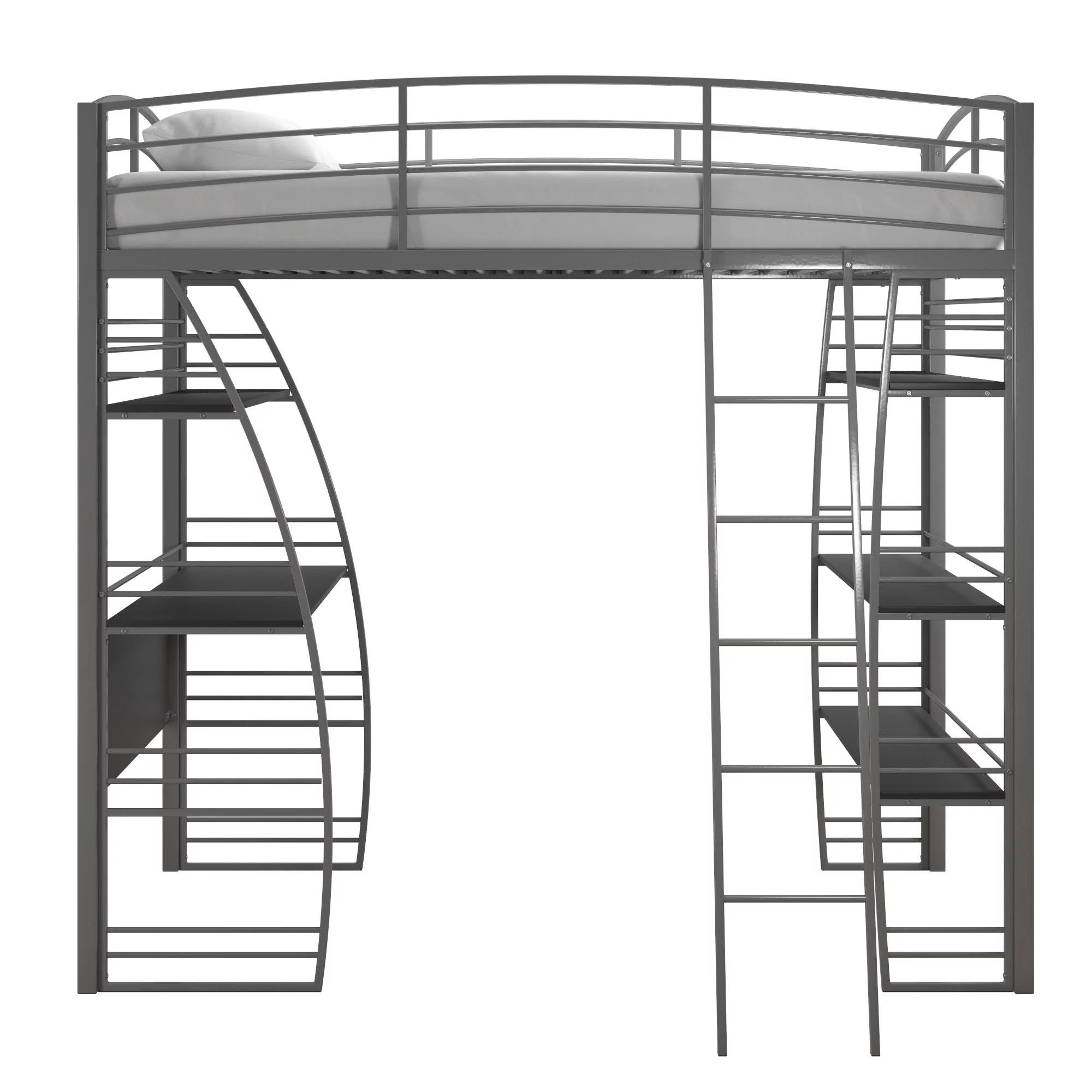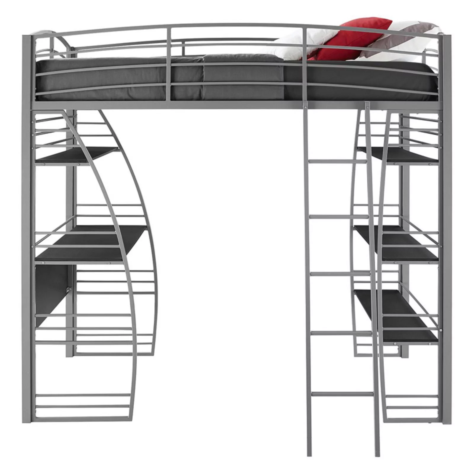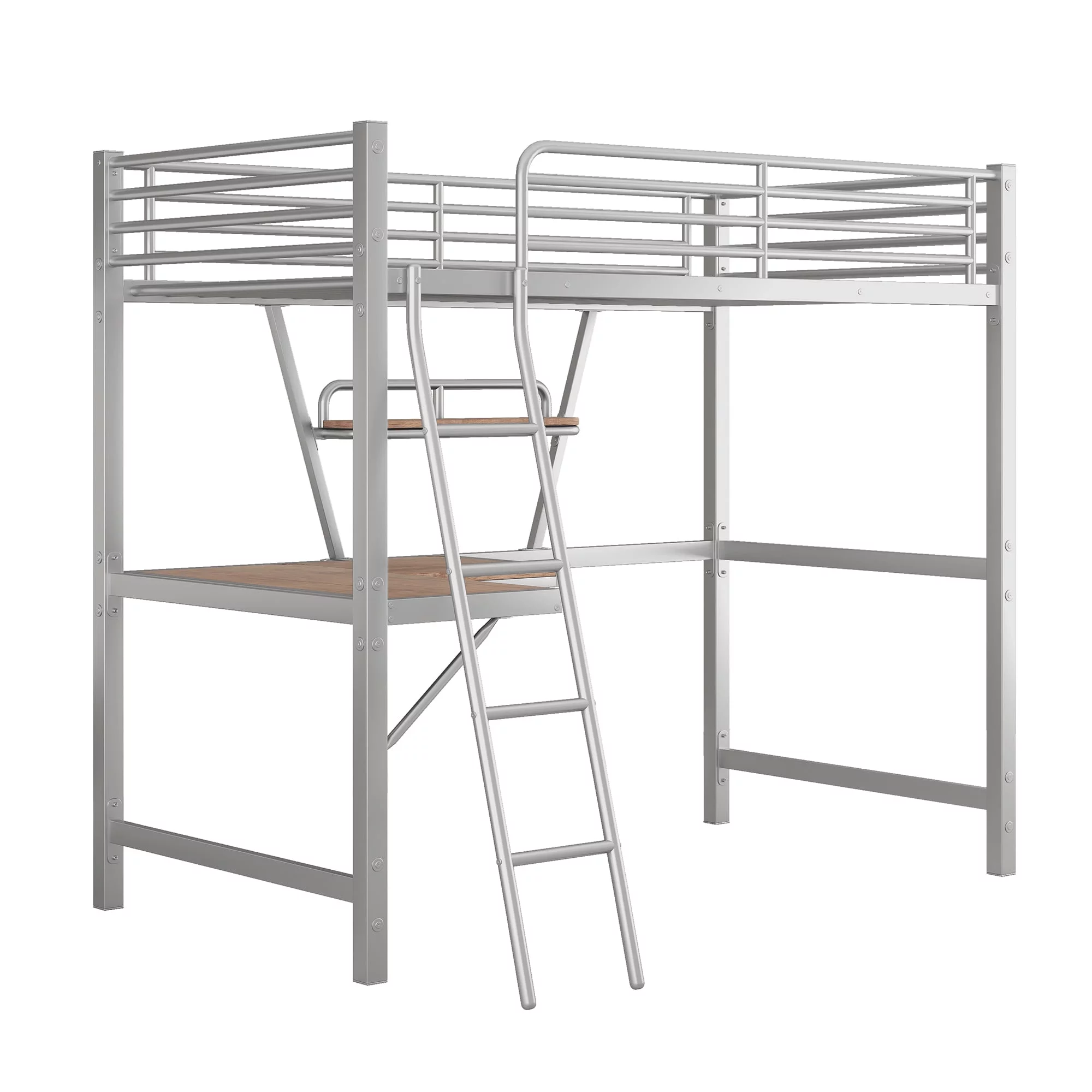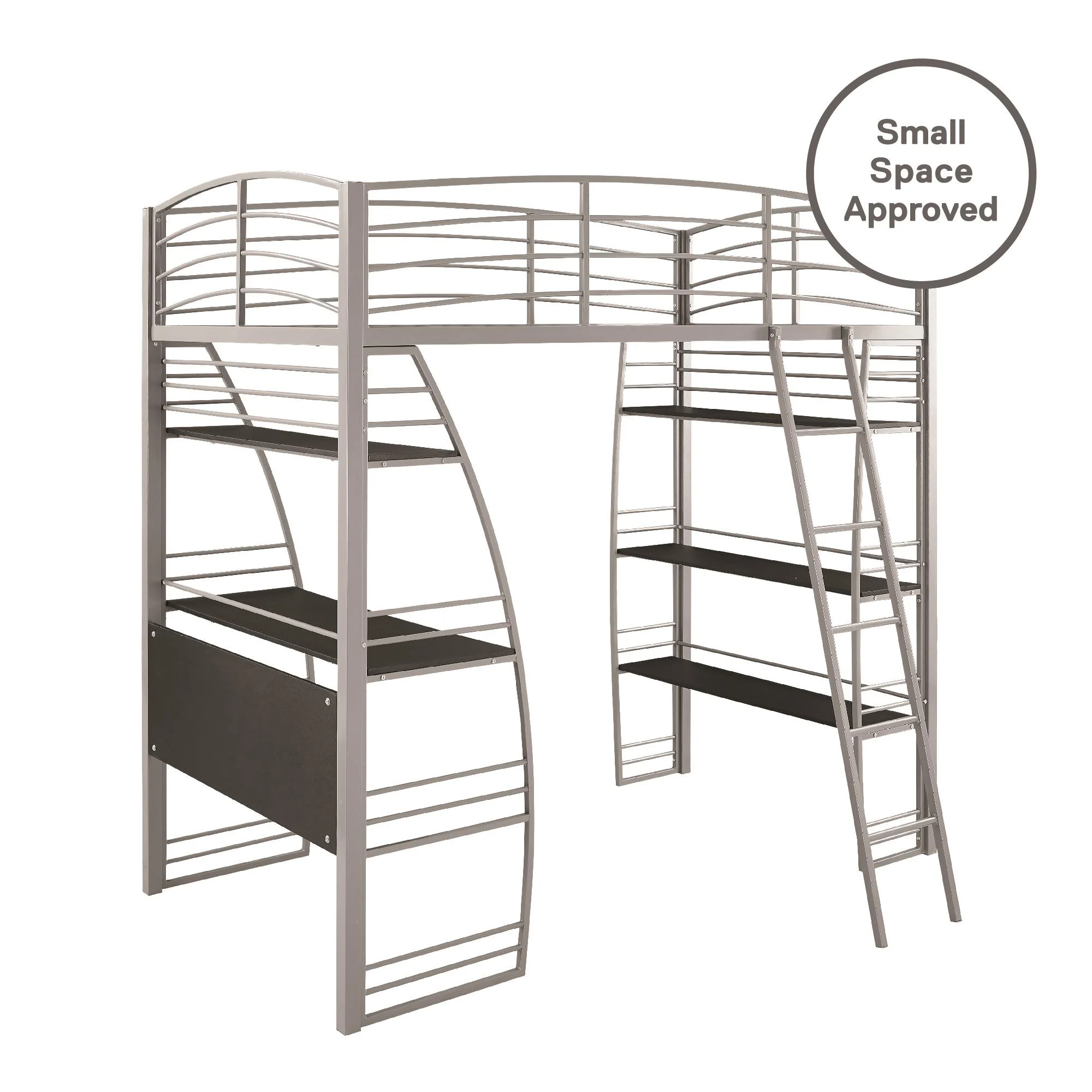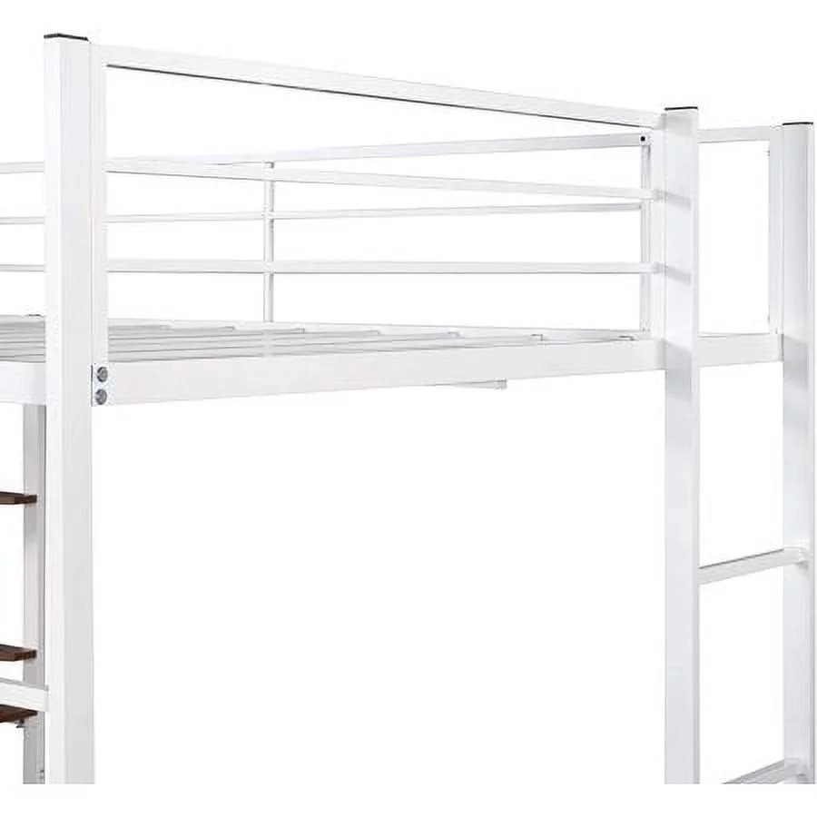 DHP Sage Studio Twin Metal Loft Bed with Integrated Desk and Shelves, Silver