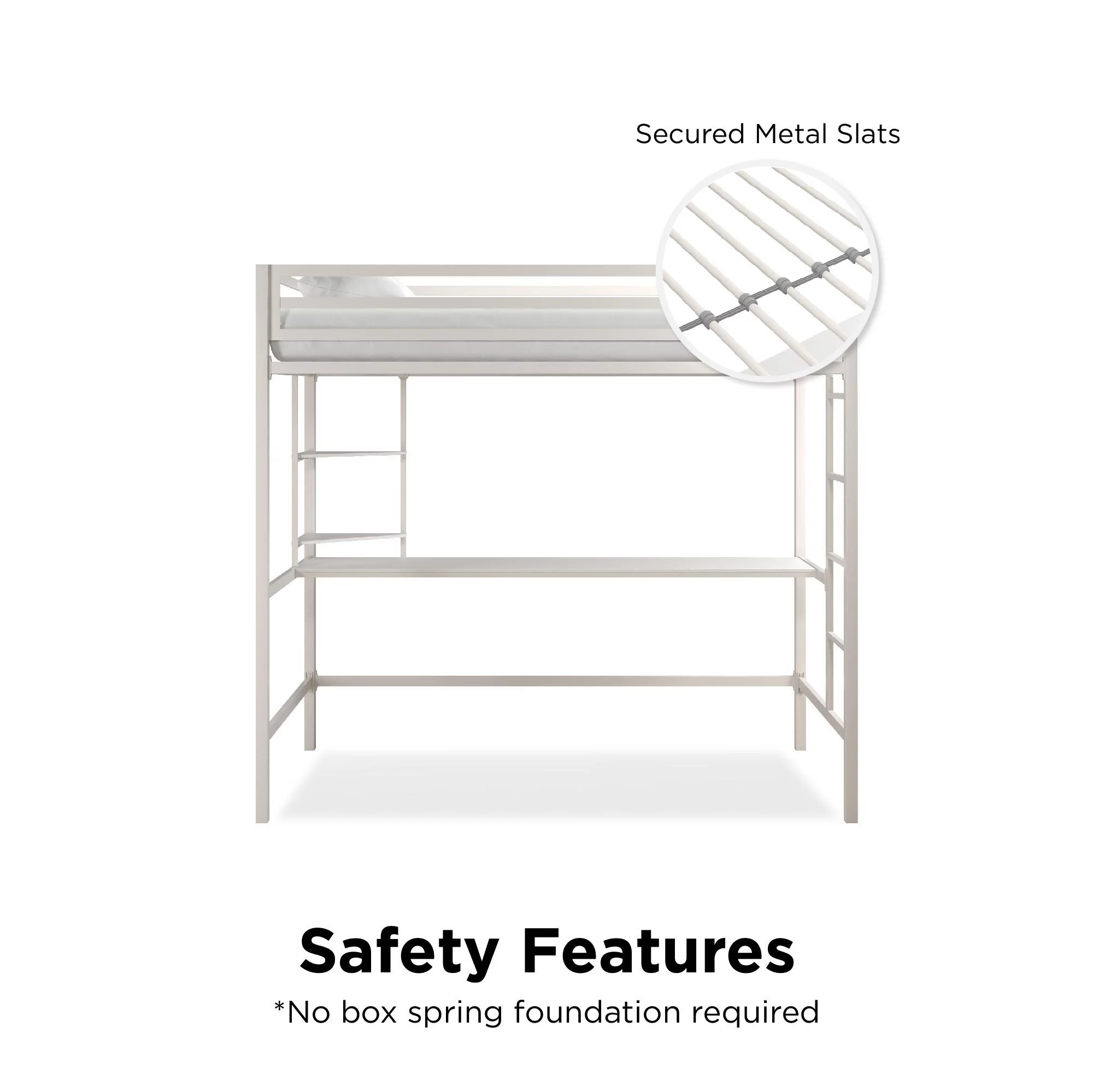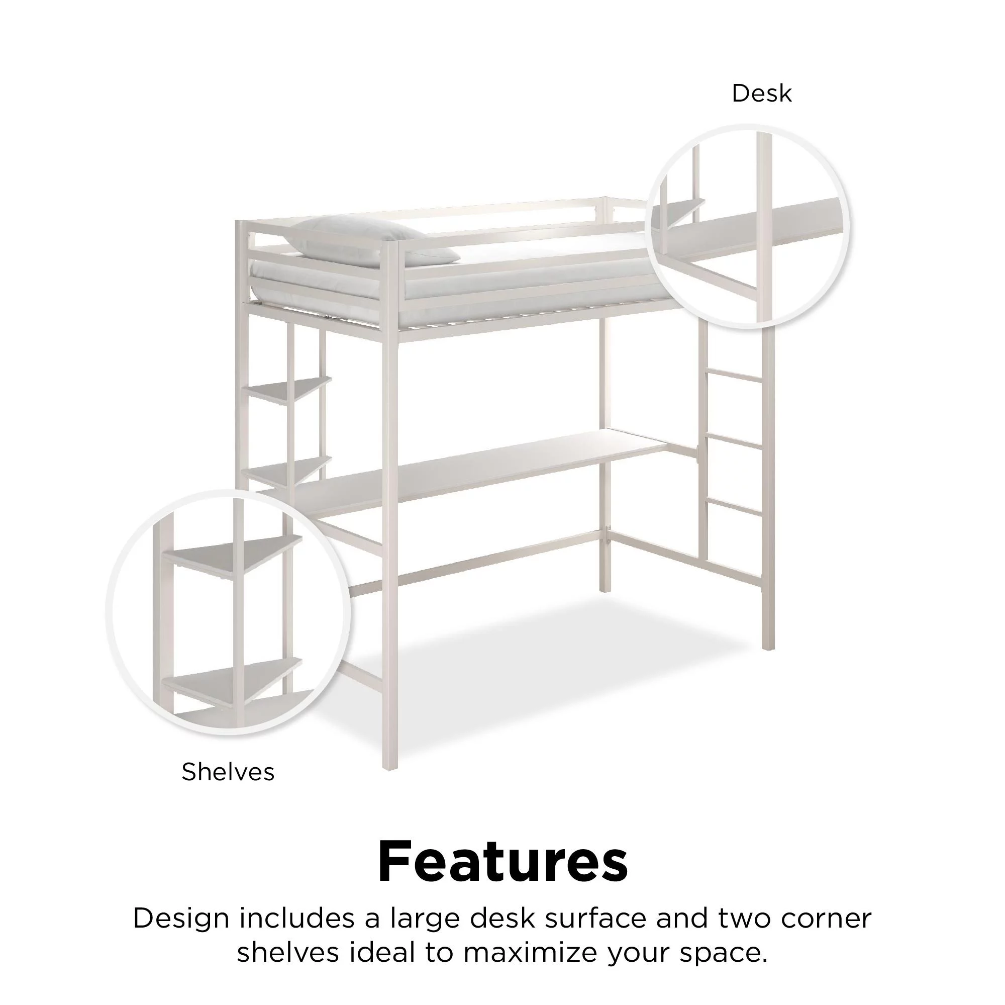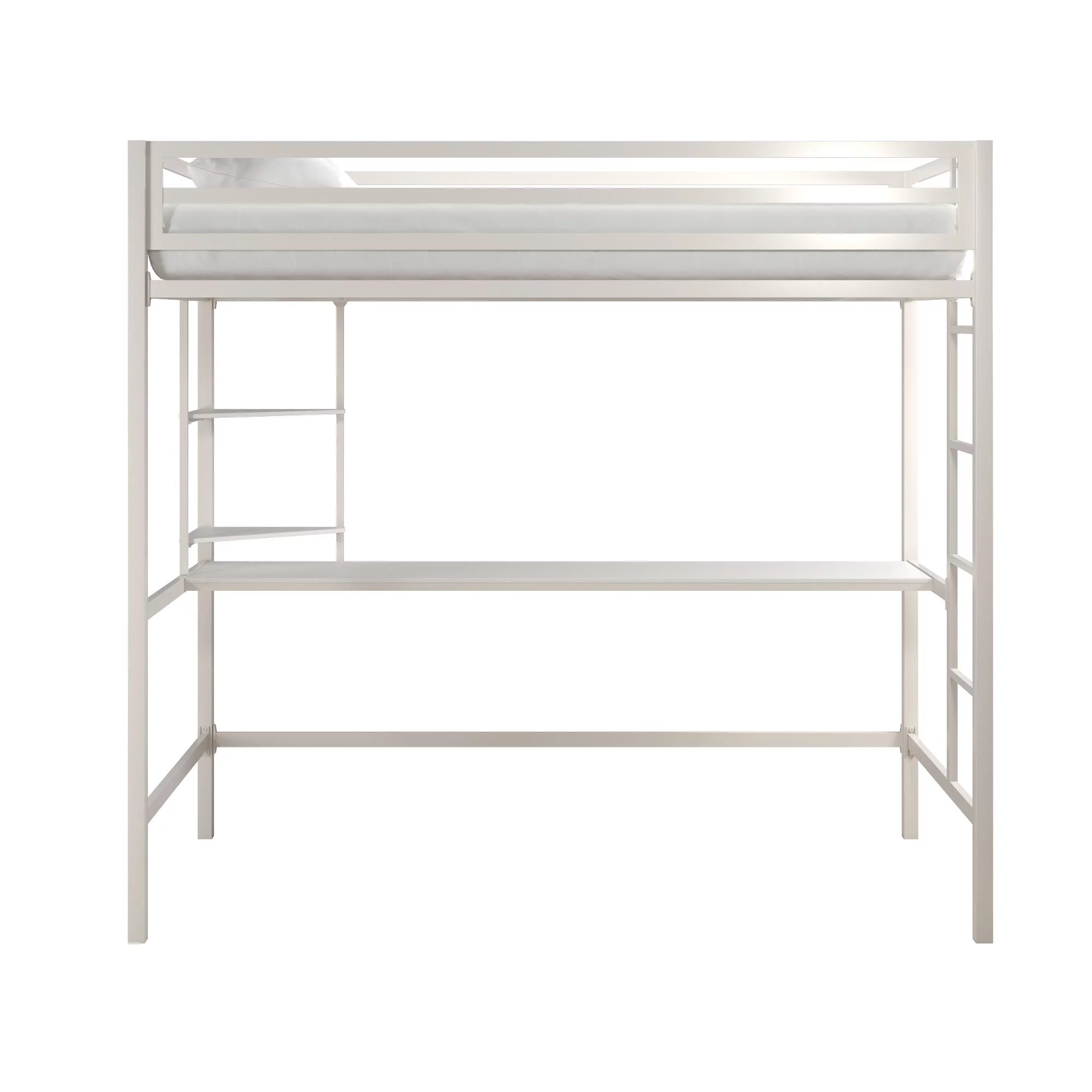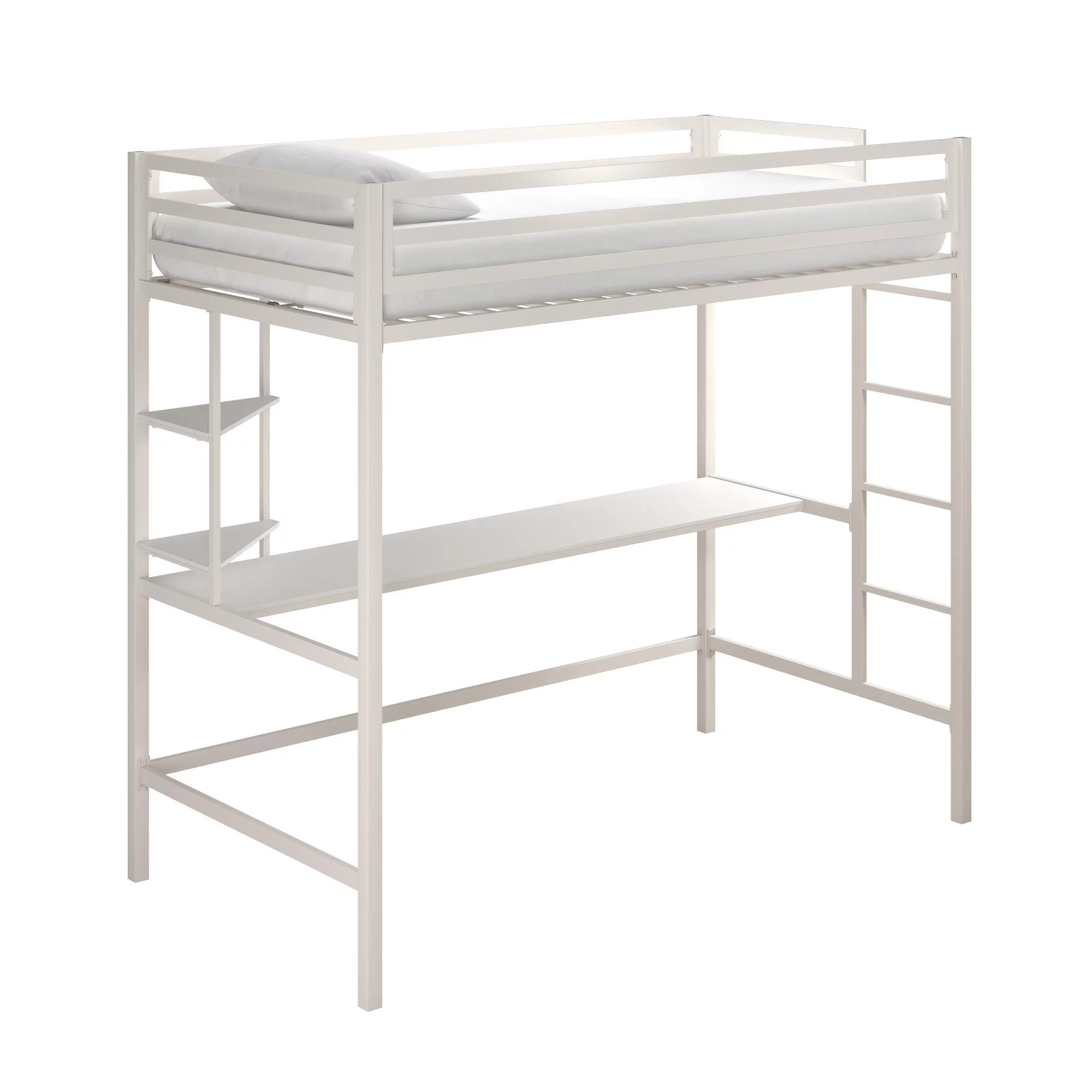 Novogratz Maxwell Metal Twin Loft Bed with Desk & Shelves, Off White/Off White