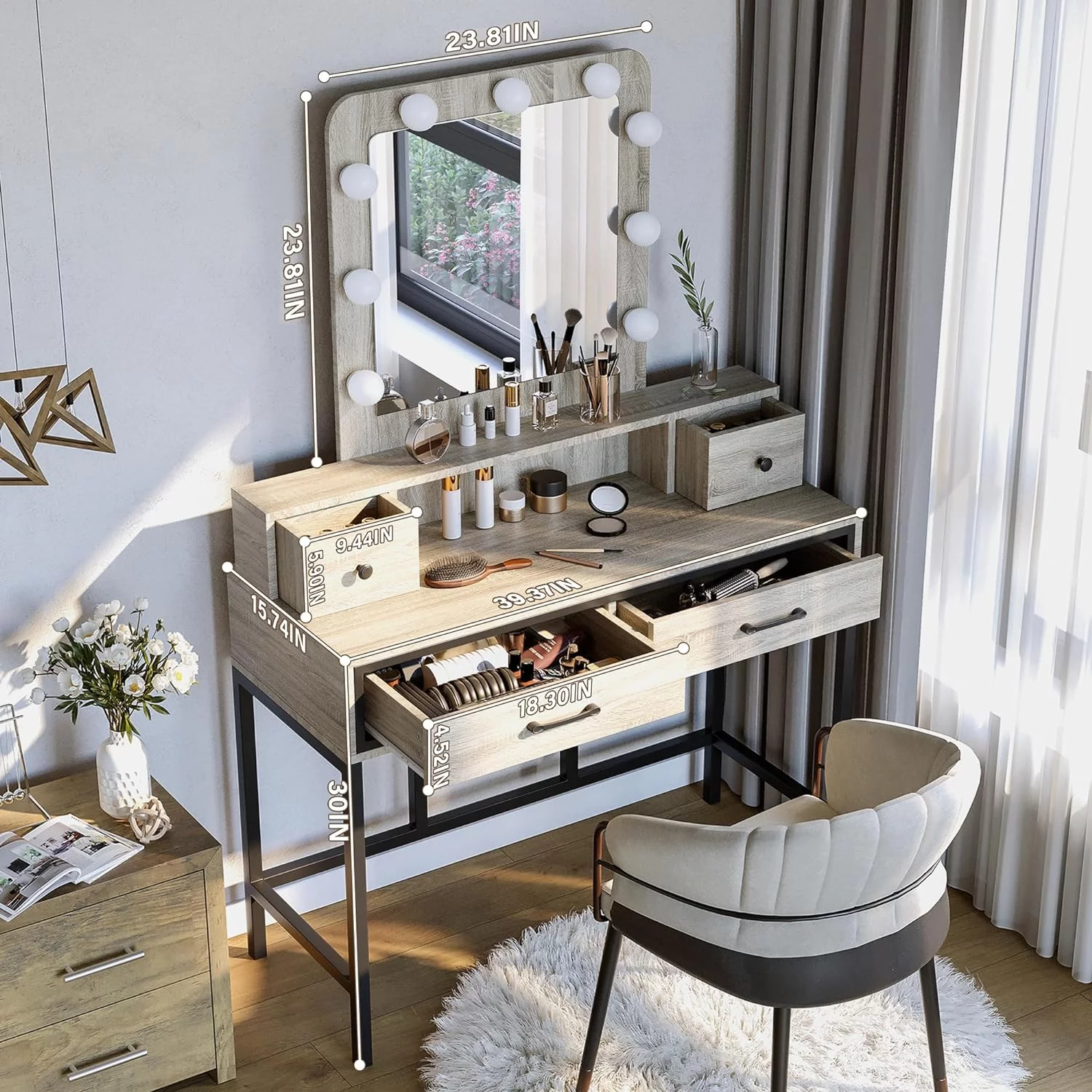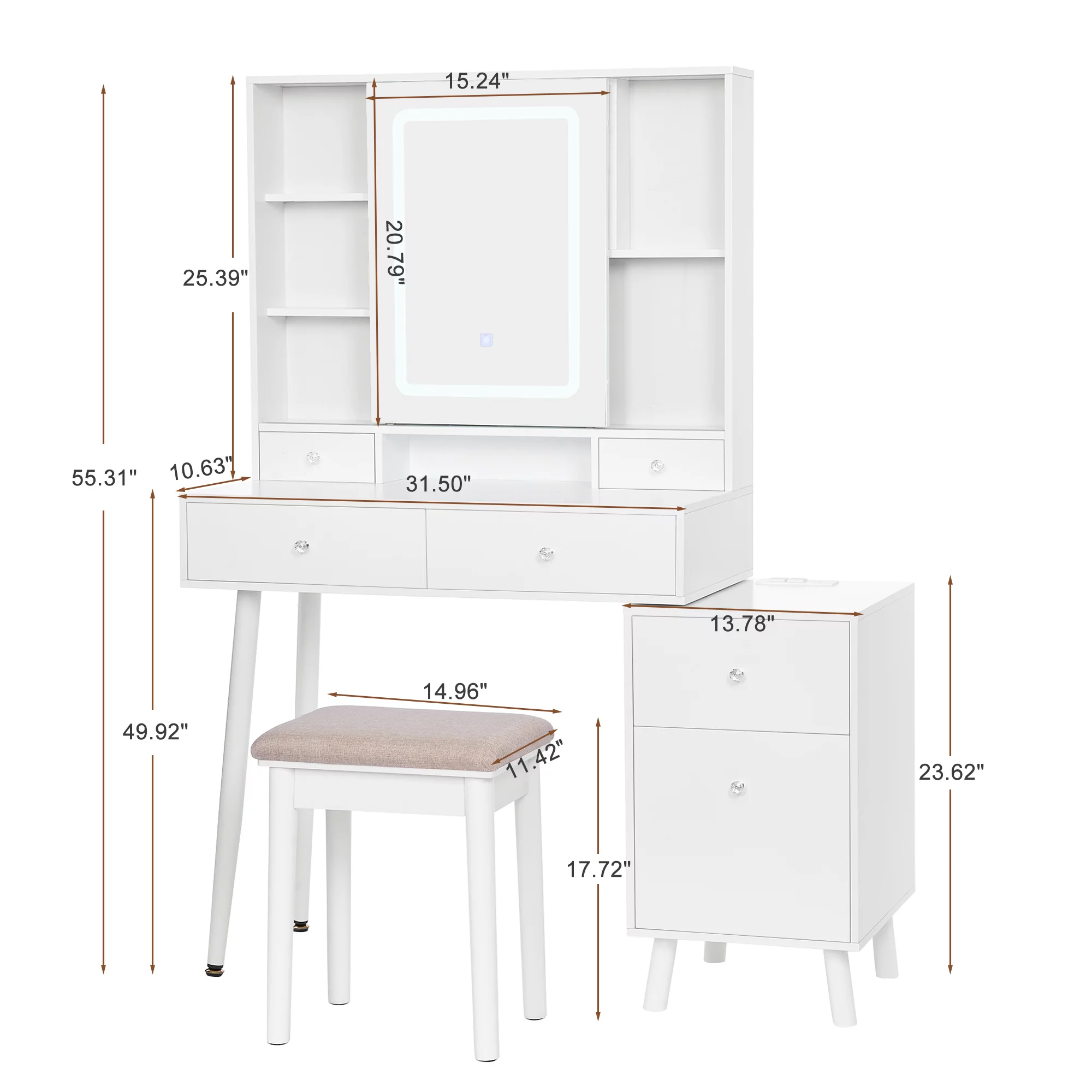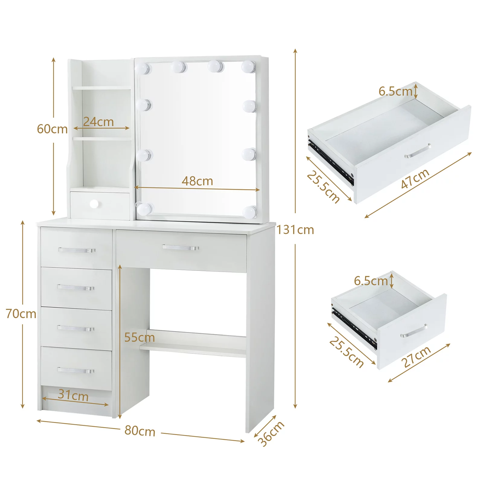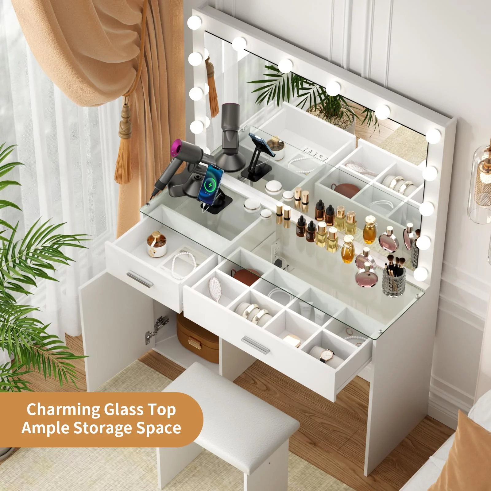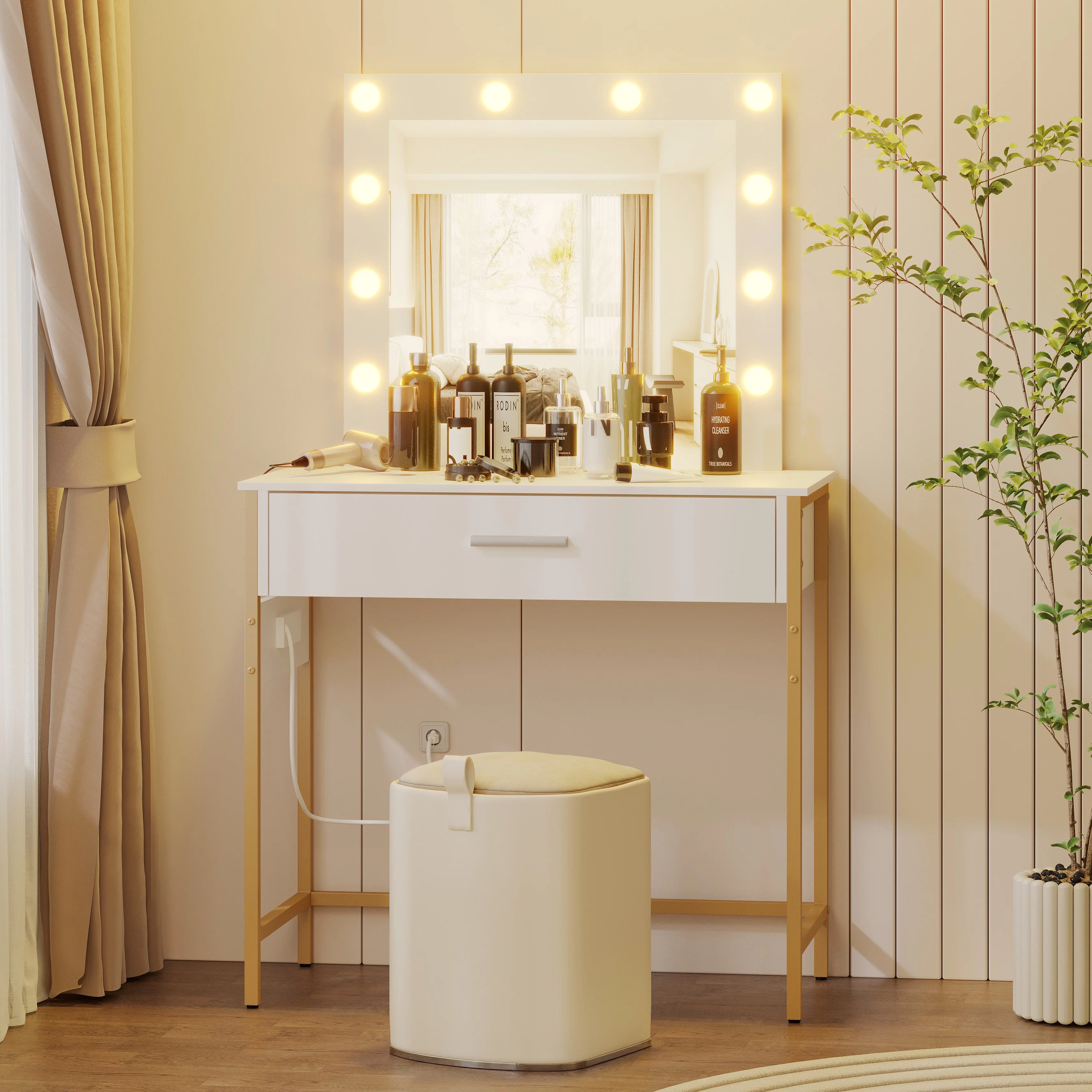 JBLCC Modern Vanity Set with Lighted Mirror, Makeup Table with Drawers, Dressing Table Makeup Desk with Stool, White