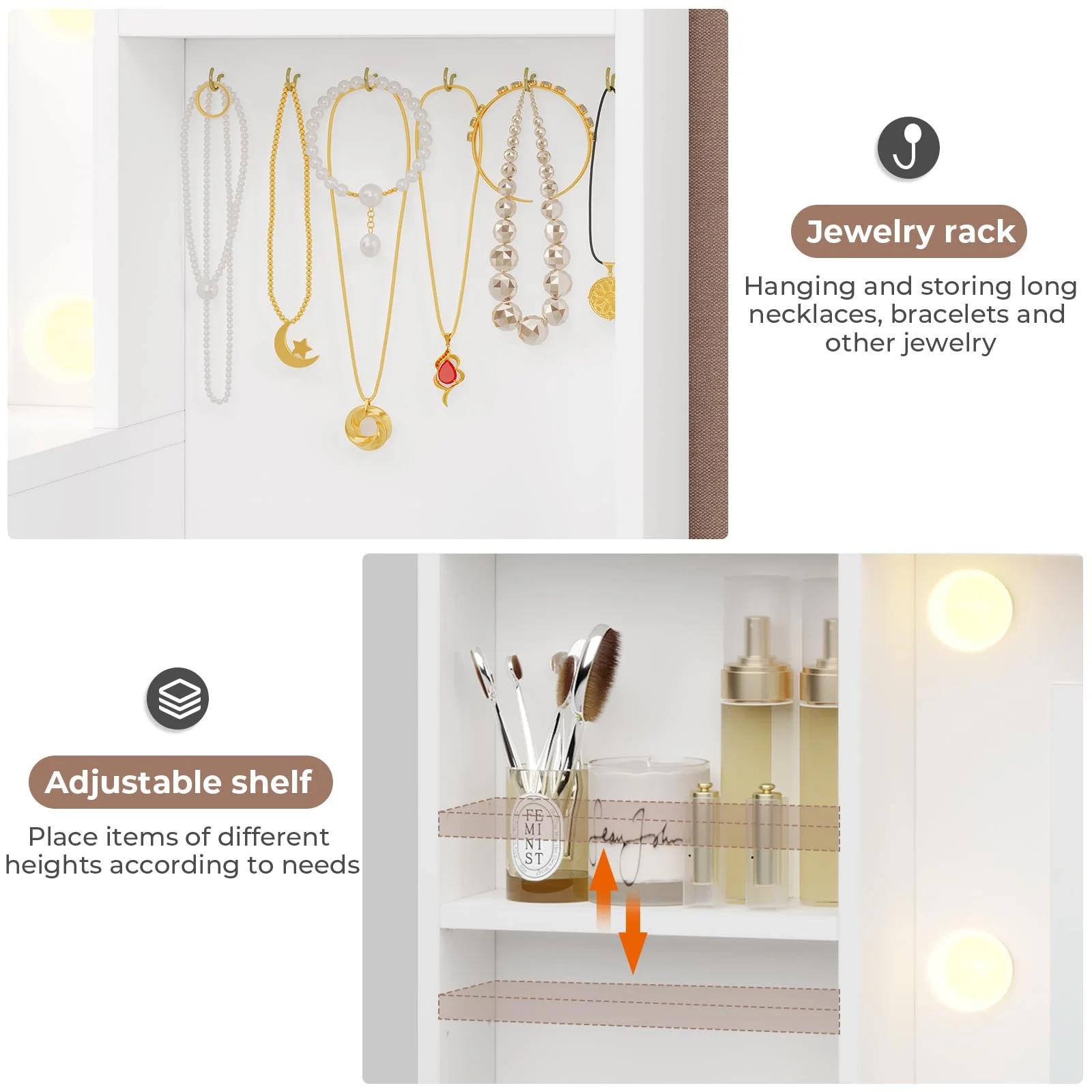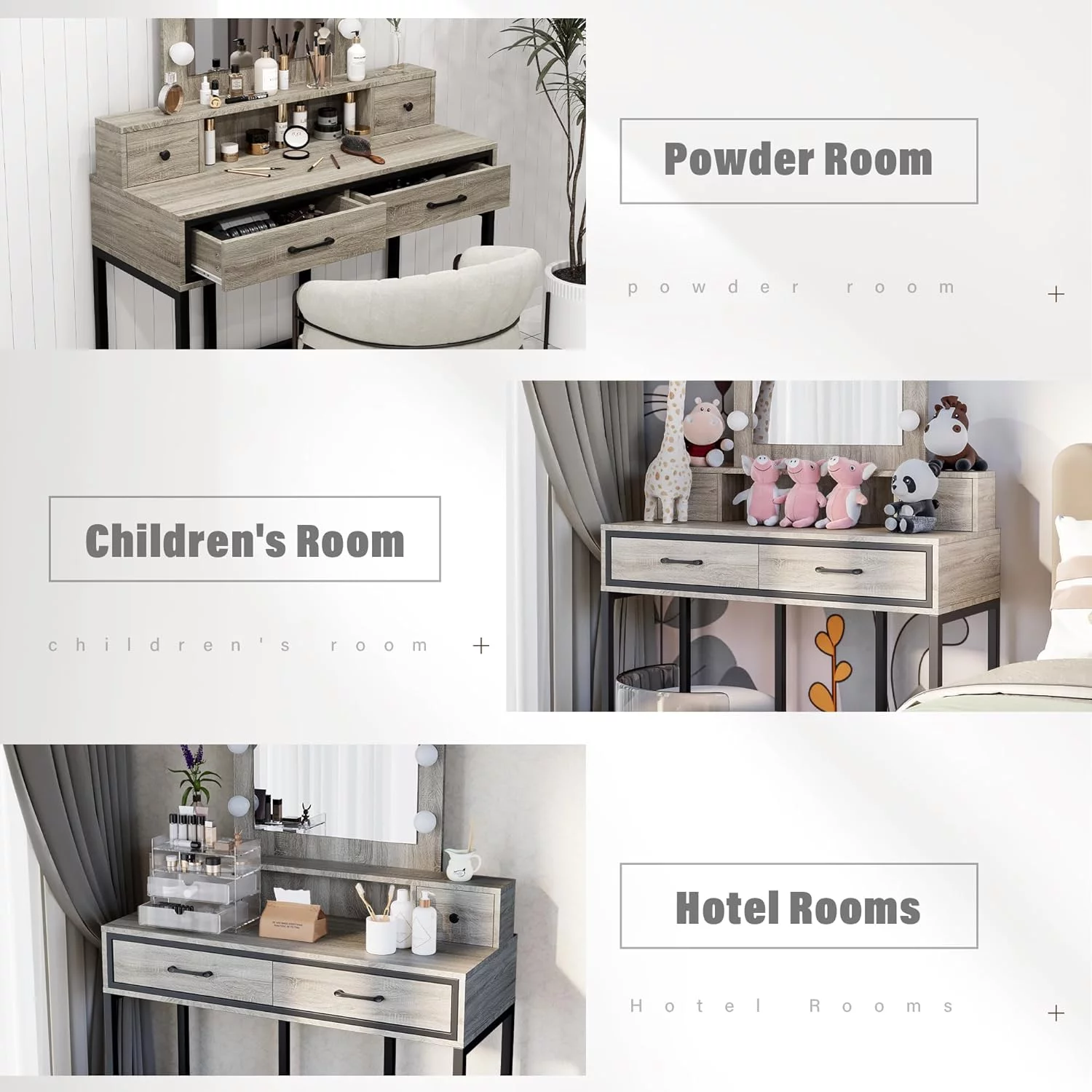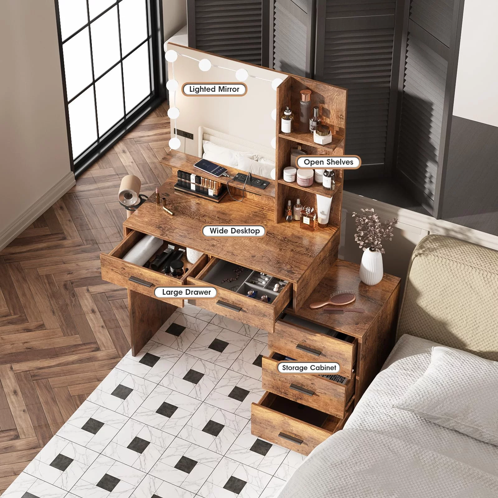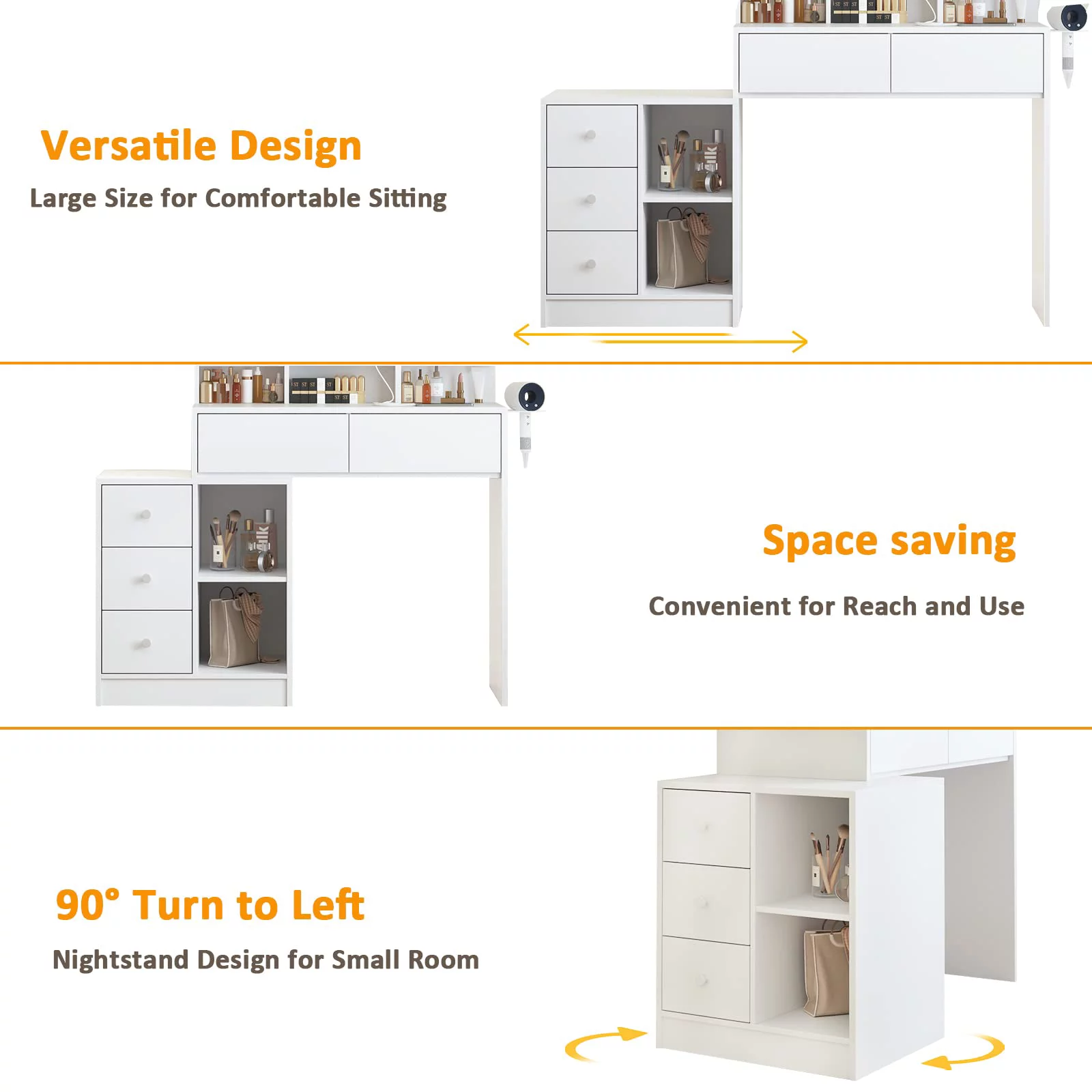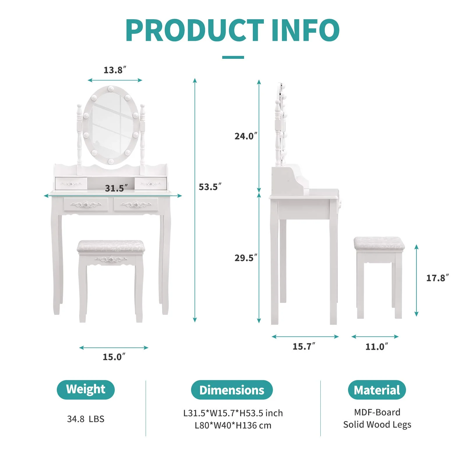 JBLCC Modern Vanity Set with Lighted Mirror, Makeup Table with Drawers, Dressing Table Makeup Desk with Stool, White
