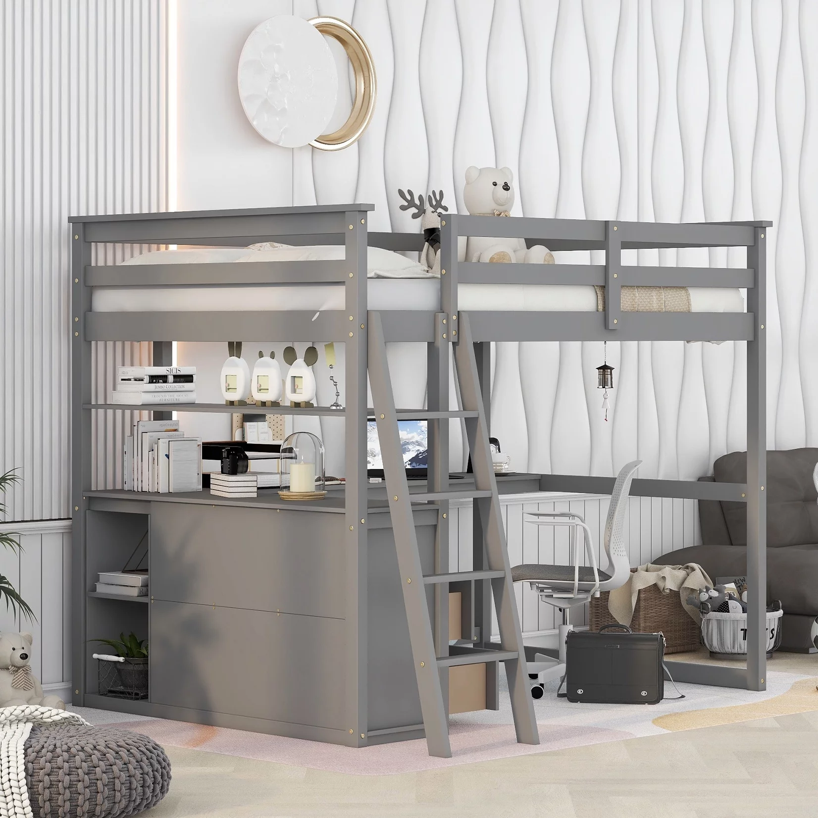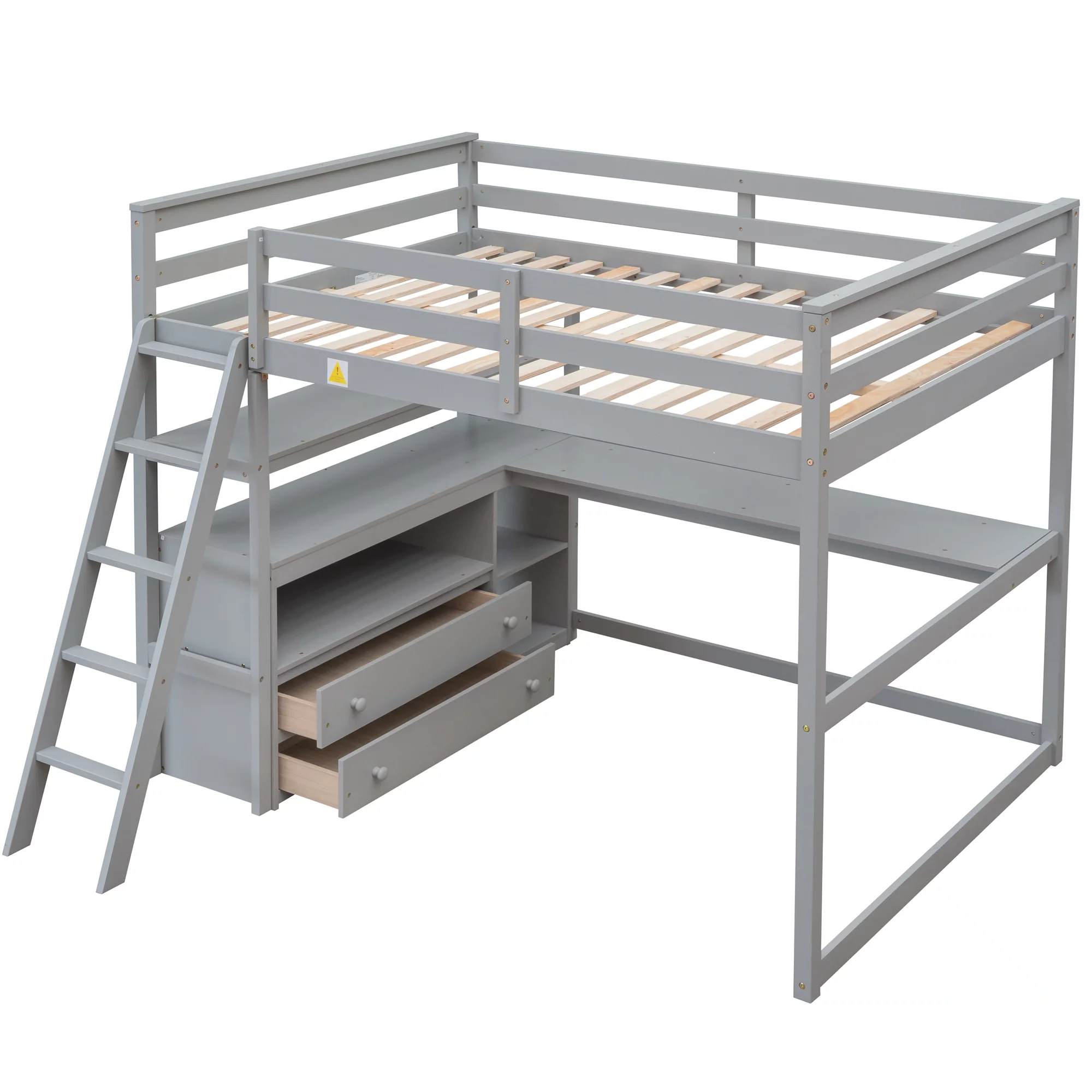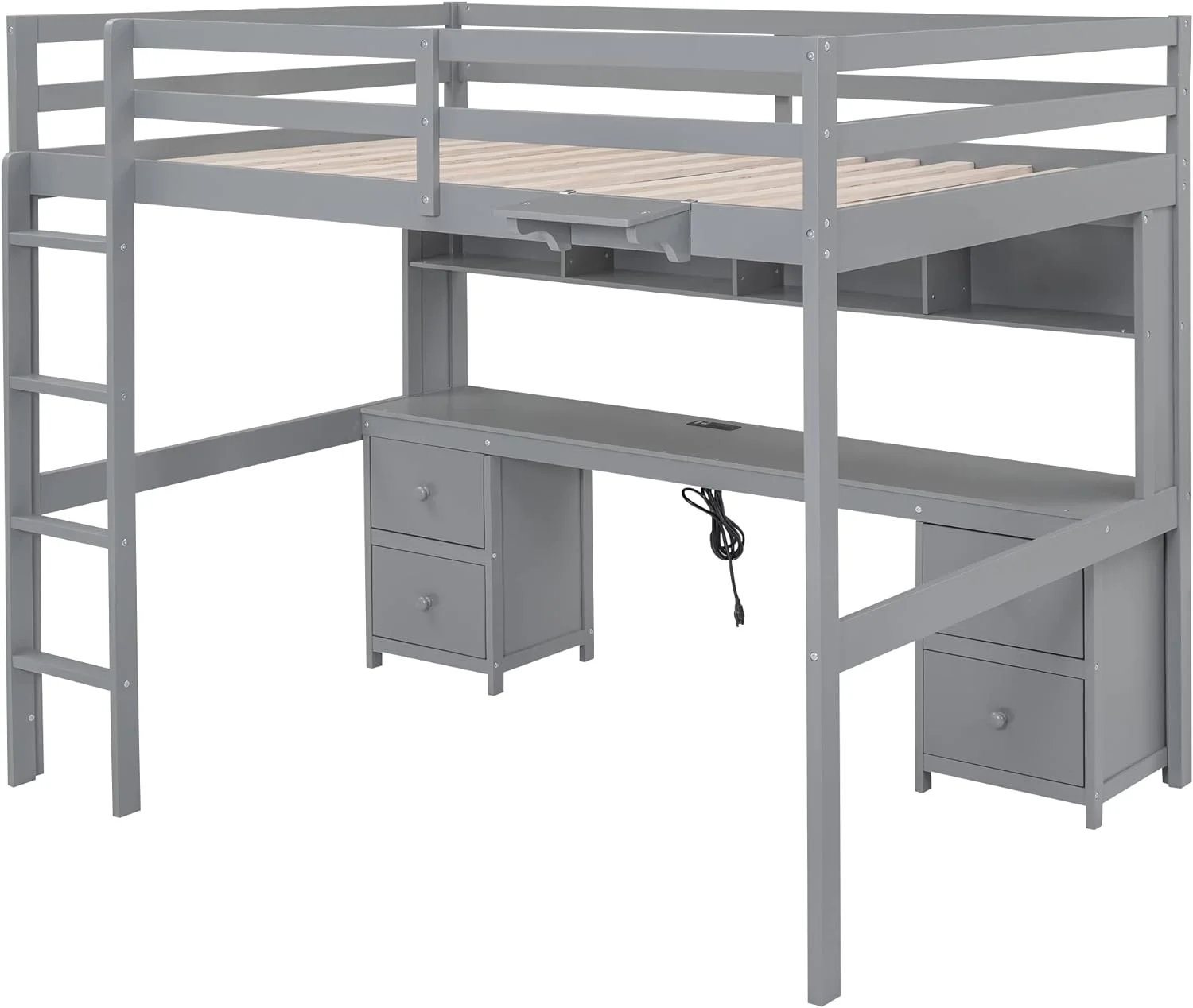 Loft Bed with Drawers and Desk, Loft Beds Full Size with Full-Length Safety Bed, Shelves for Kids, Teens, Adults Boys & Girls