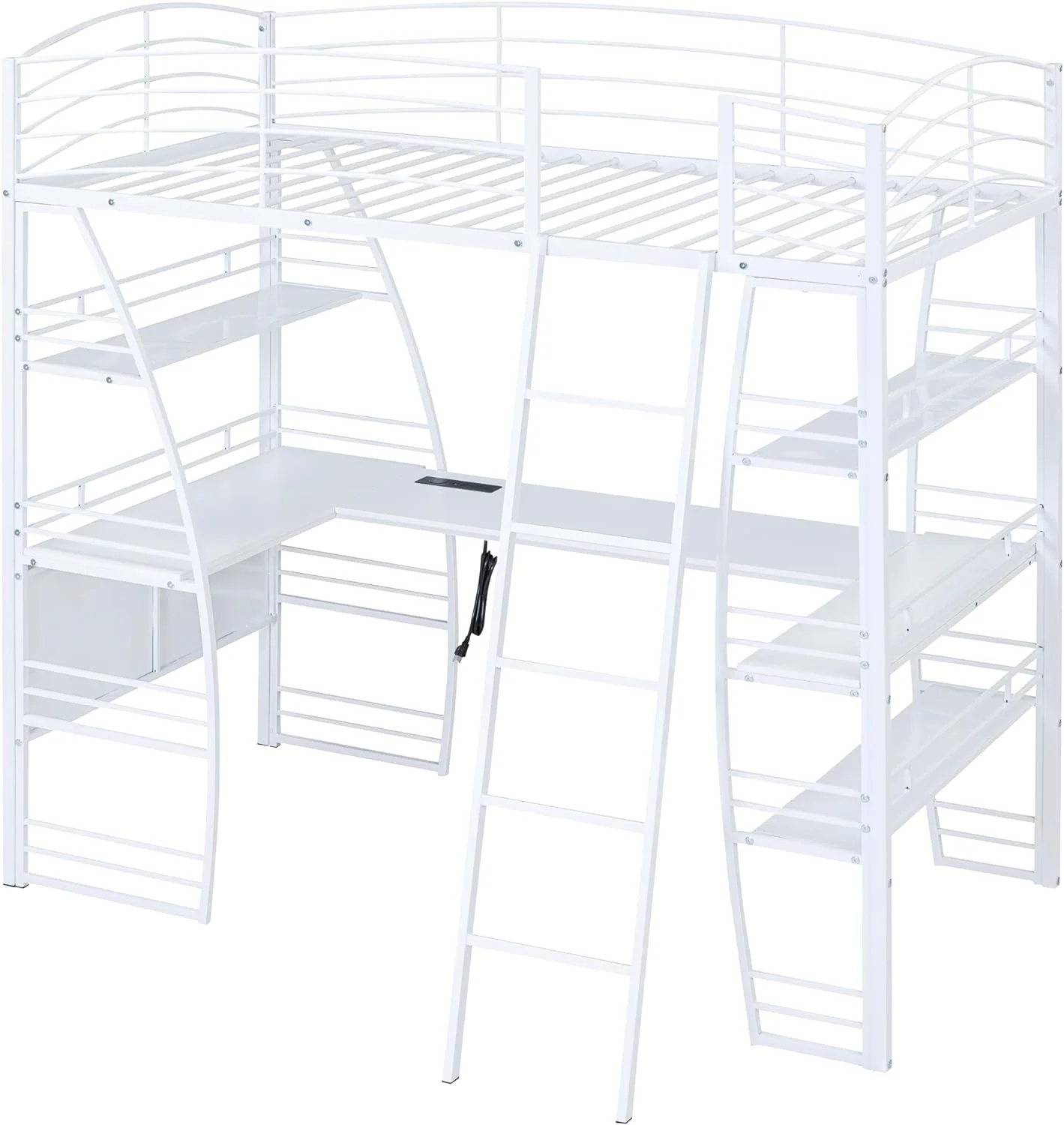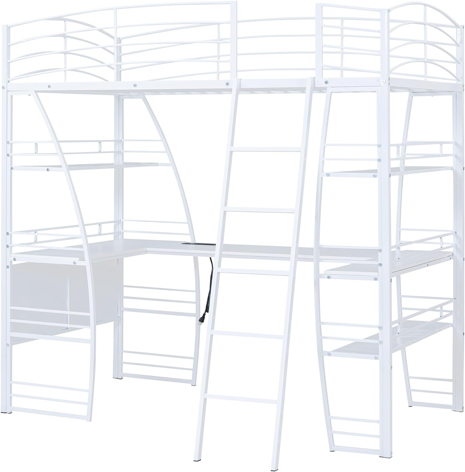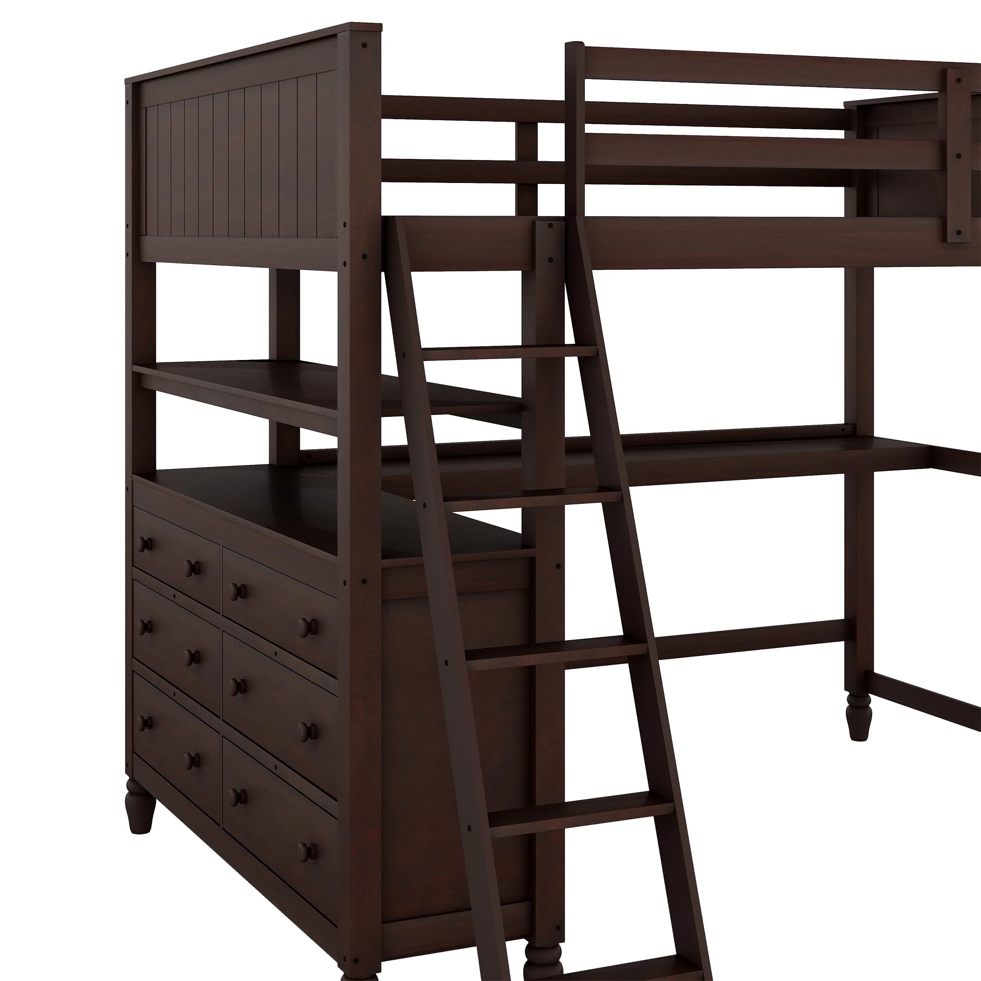 Loft Bed with Drawers and Desk, Loft Beds Full Size with Full-Length Safety Bed, Shelves for Kids, Teens, Adults Boys & Girls