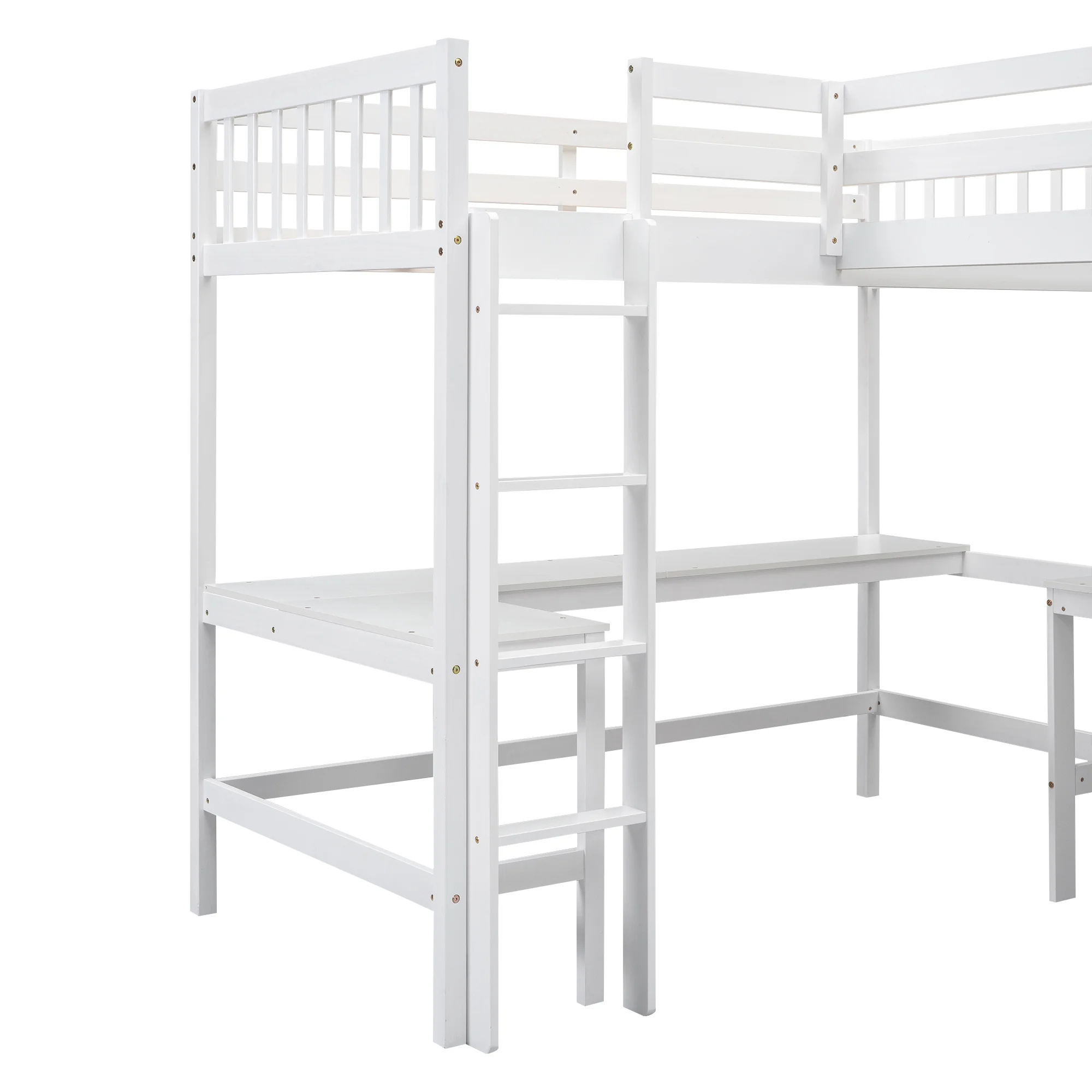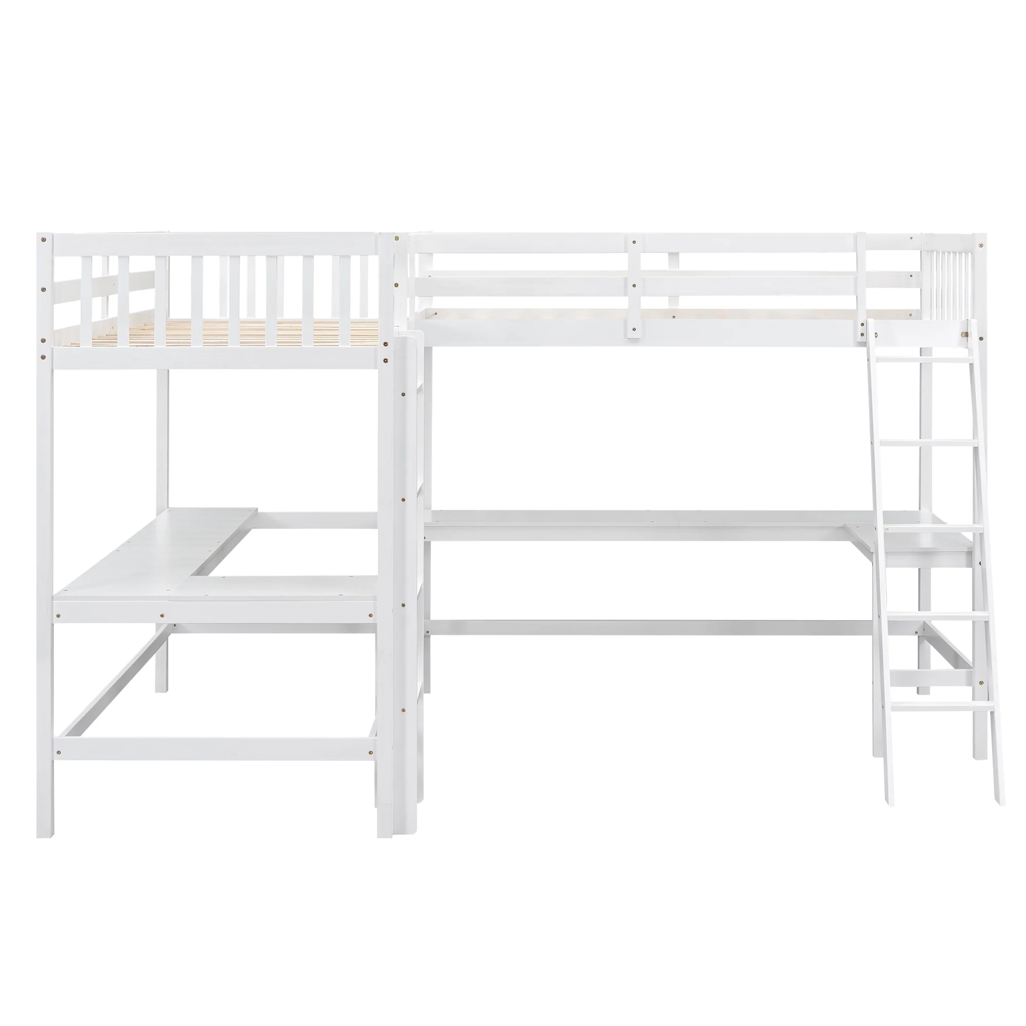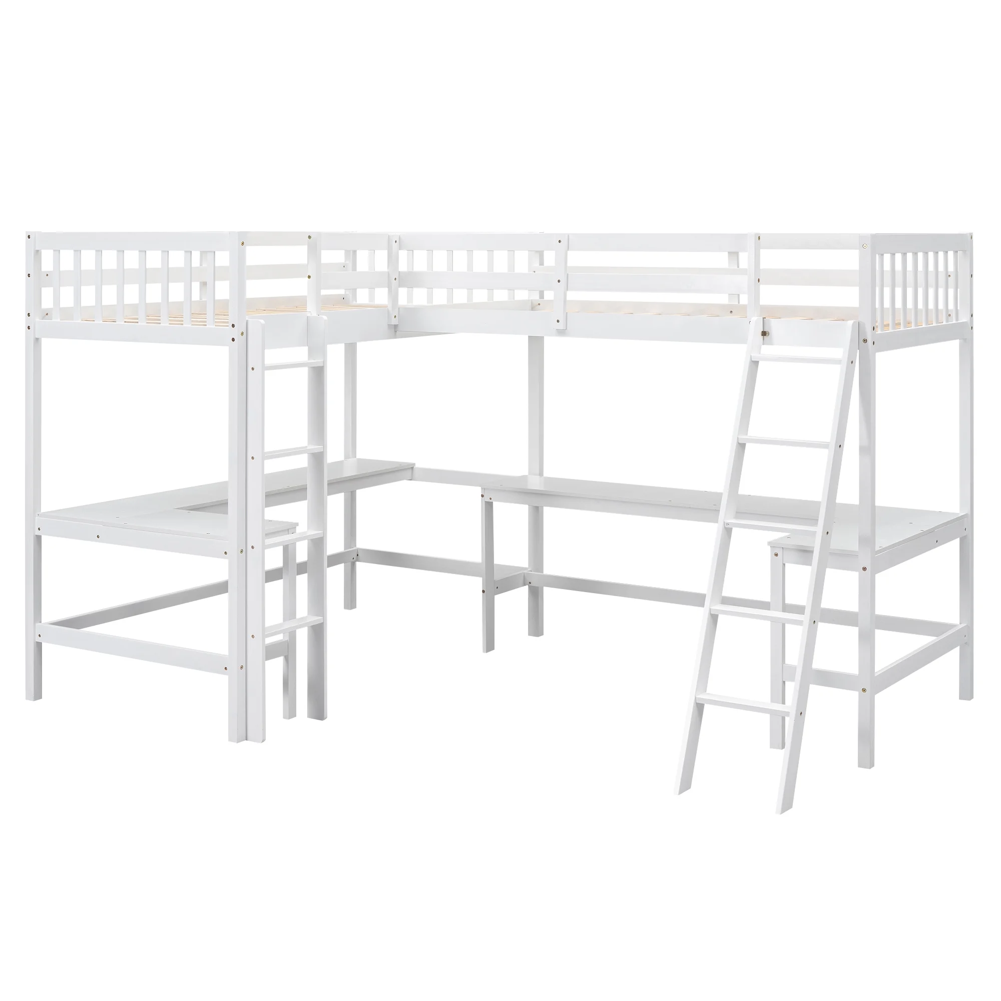 Euroco Twin Size L-Shaped Wood Loft Bed with Built-in Desks, 2-in-1 Loft Bed for Kids Teens Adults, White