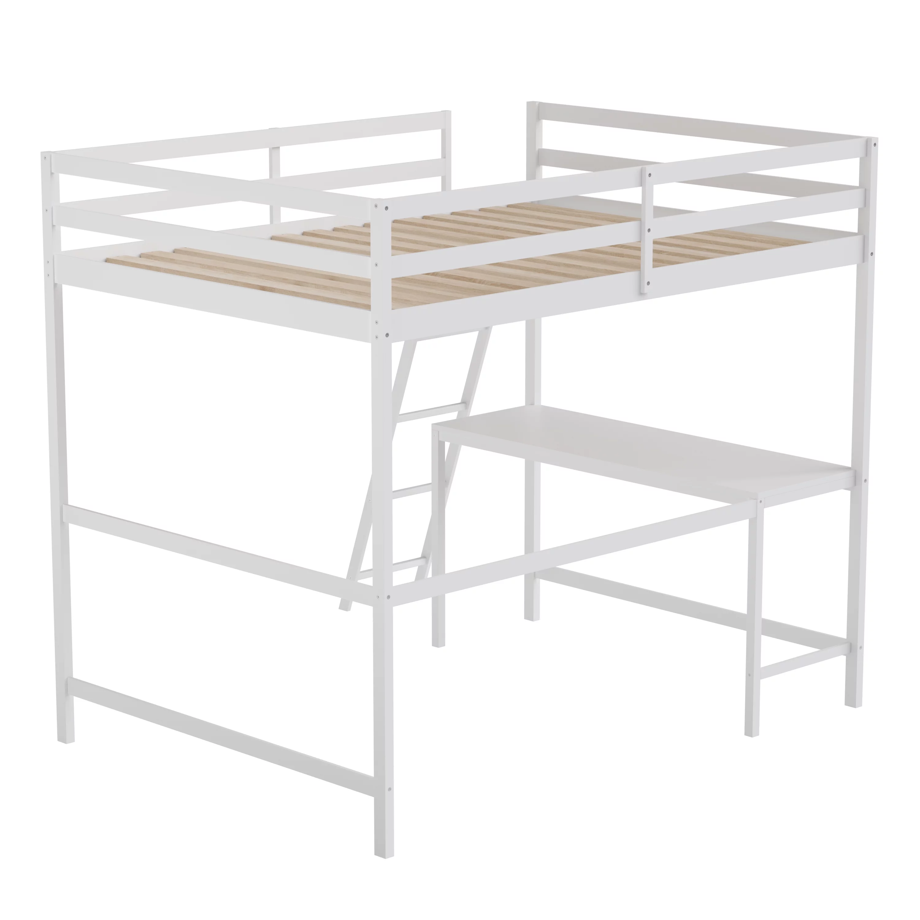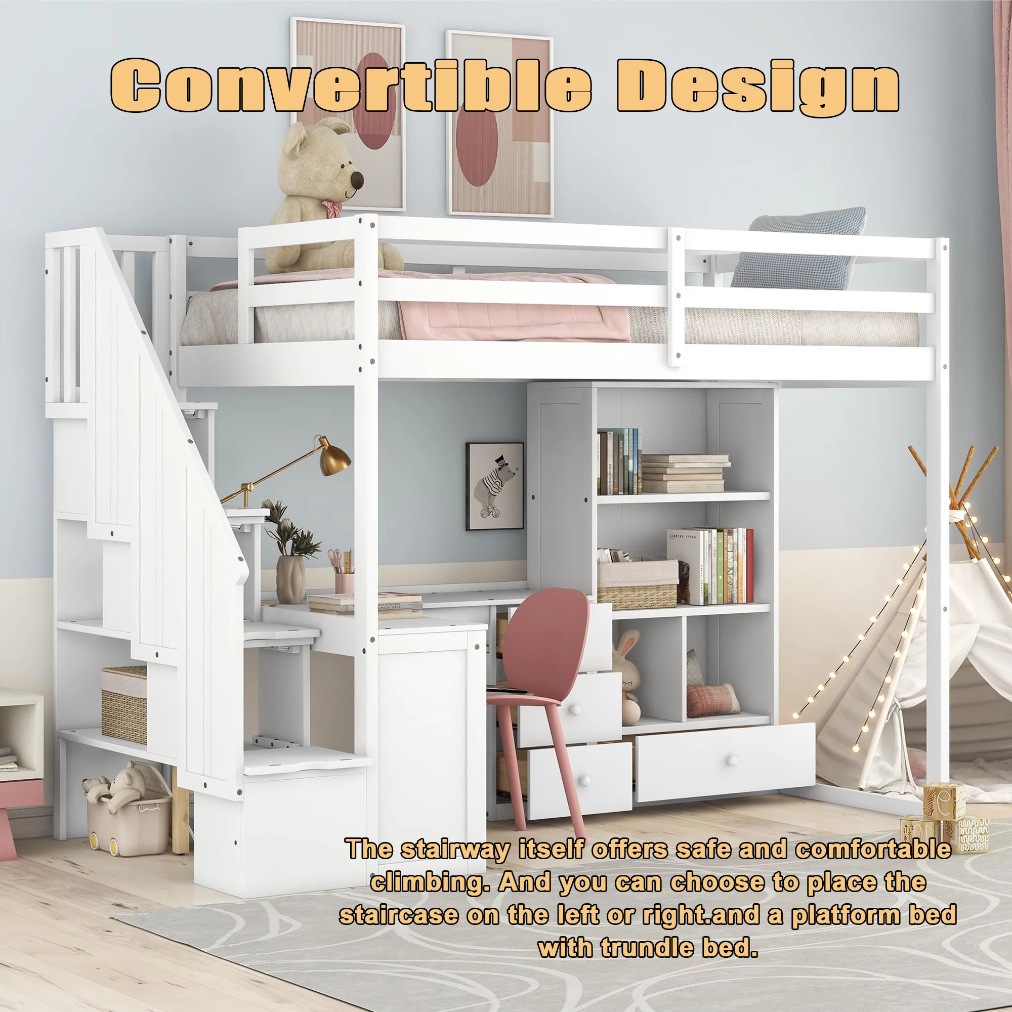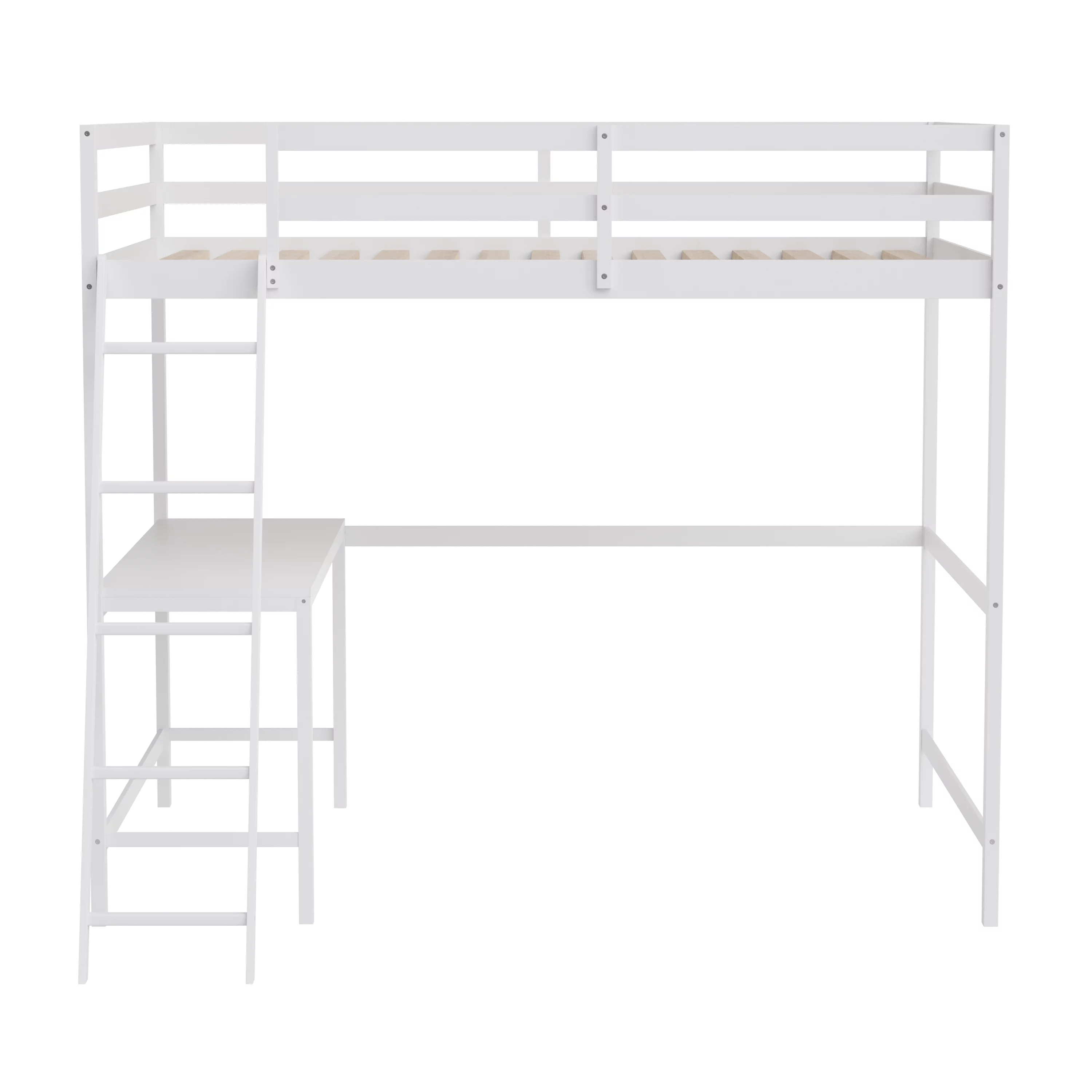 ikayaa Functional Loft Bed (turn into upper bed and down desk,cushion sets are free),Twin Size,White