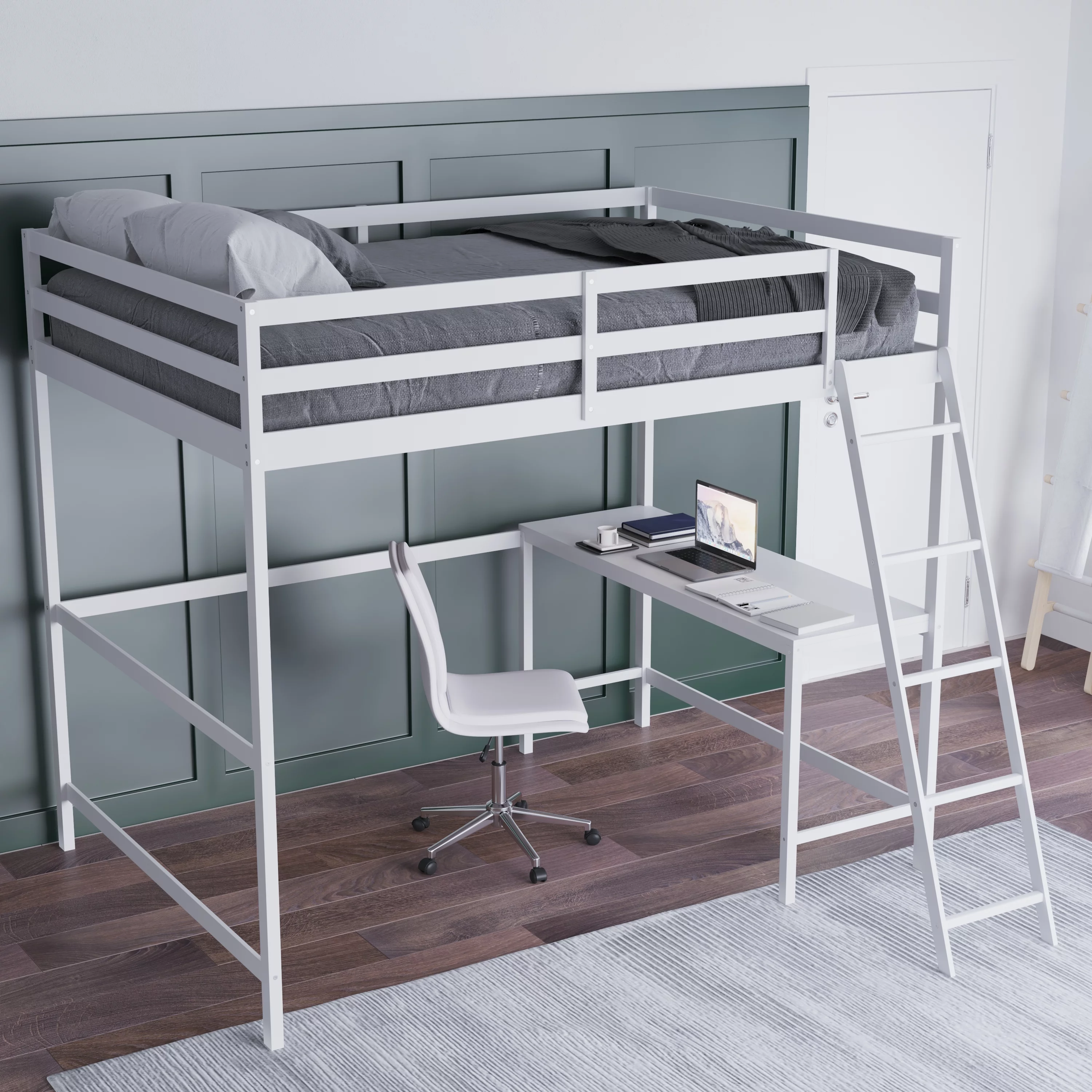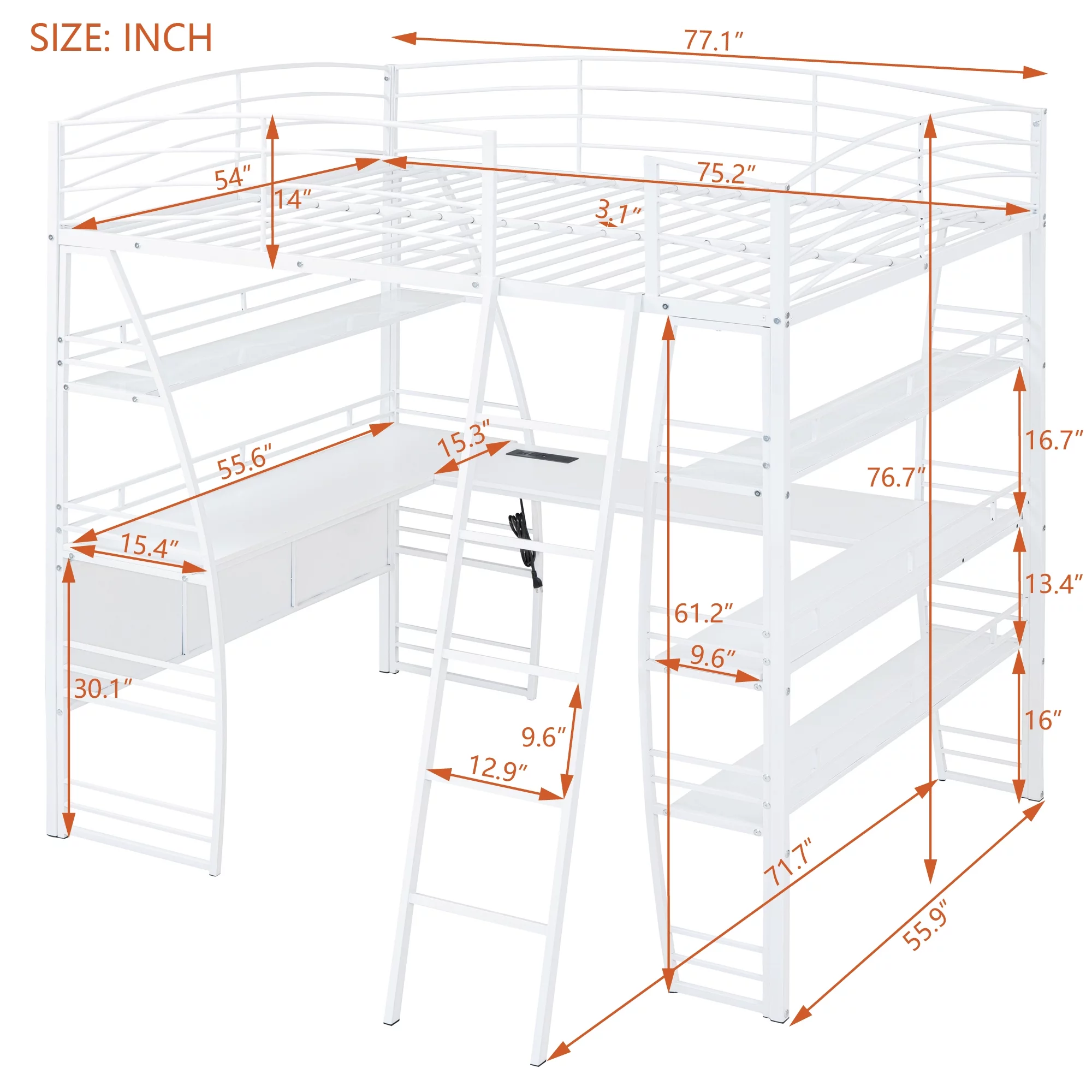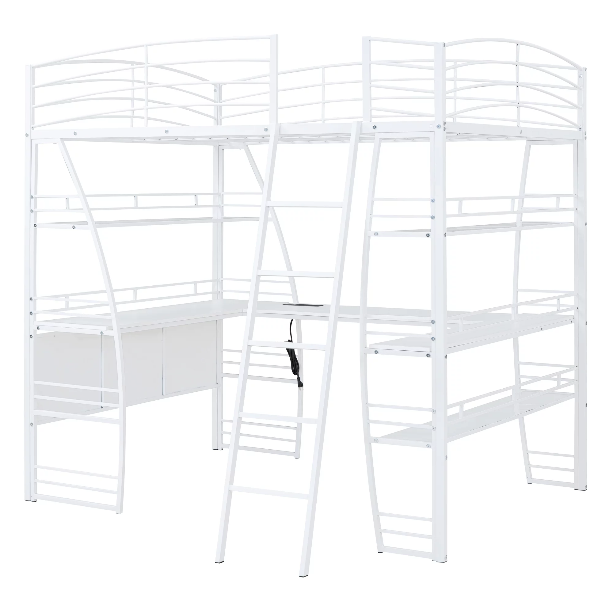 ikayaa Functional Loft Bed (turn into upper bed and down desk,cushion sets are free),Twin Size,White