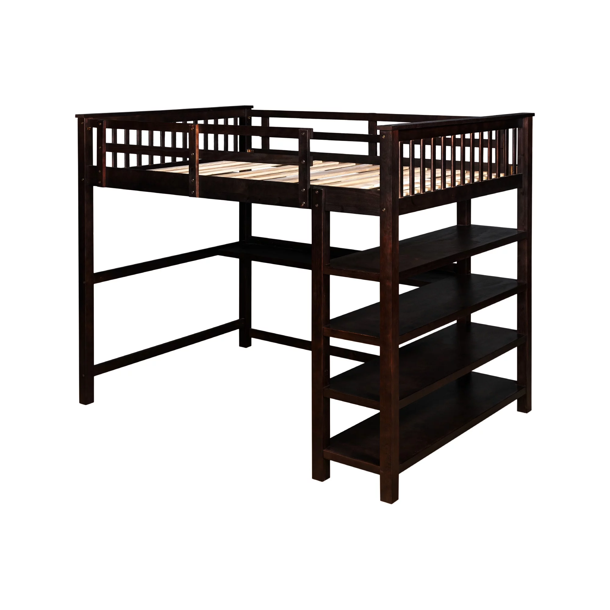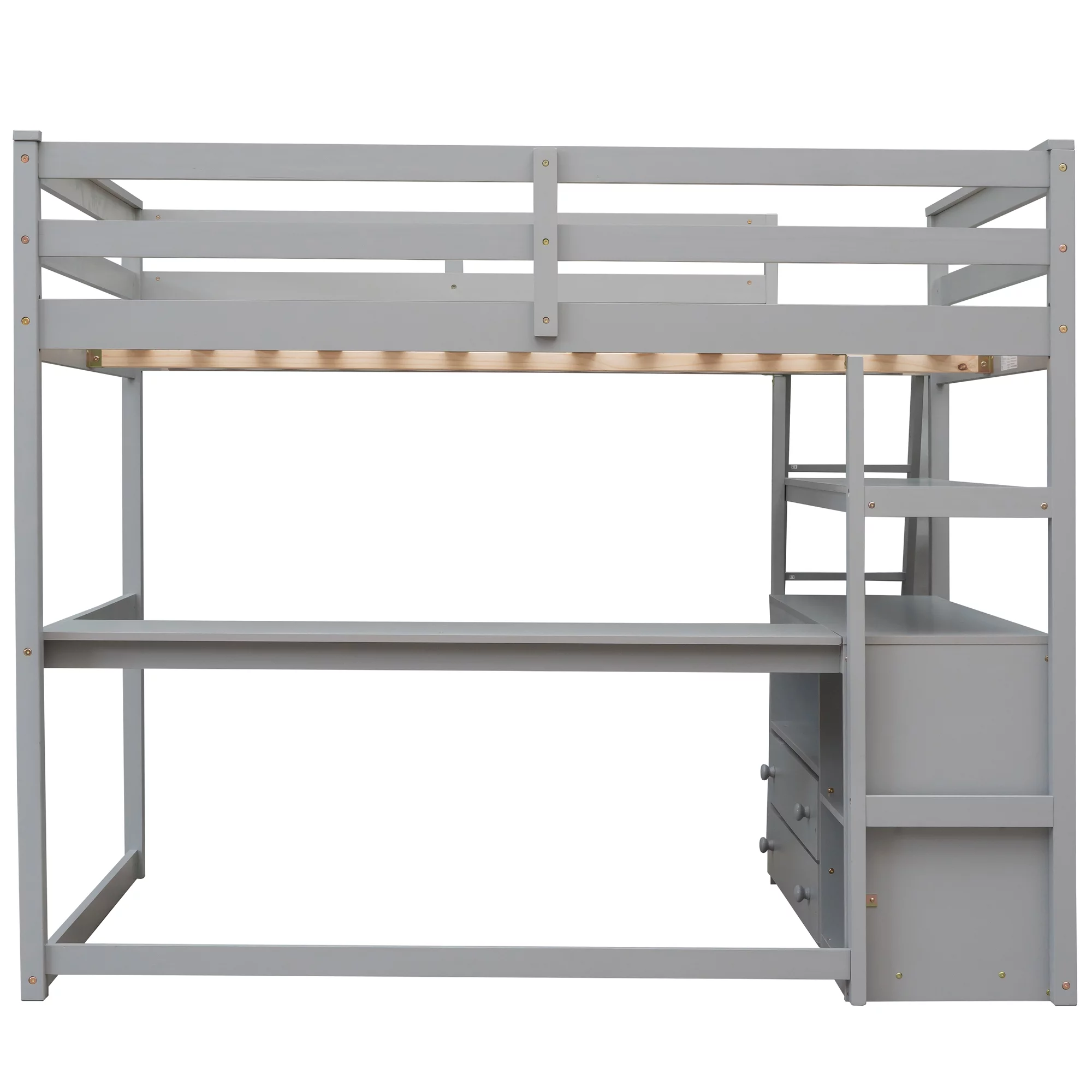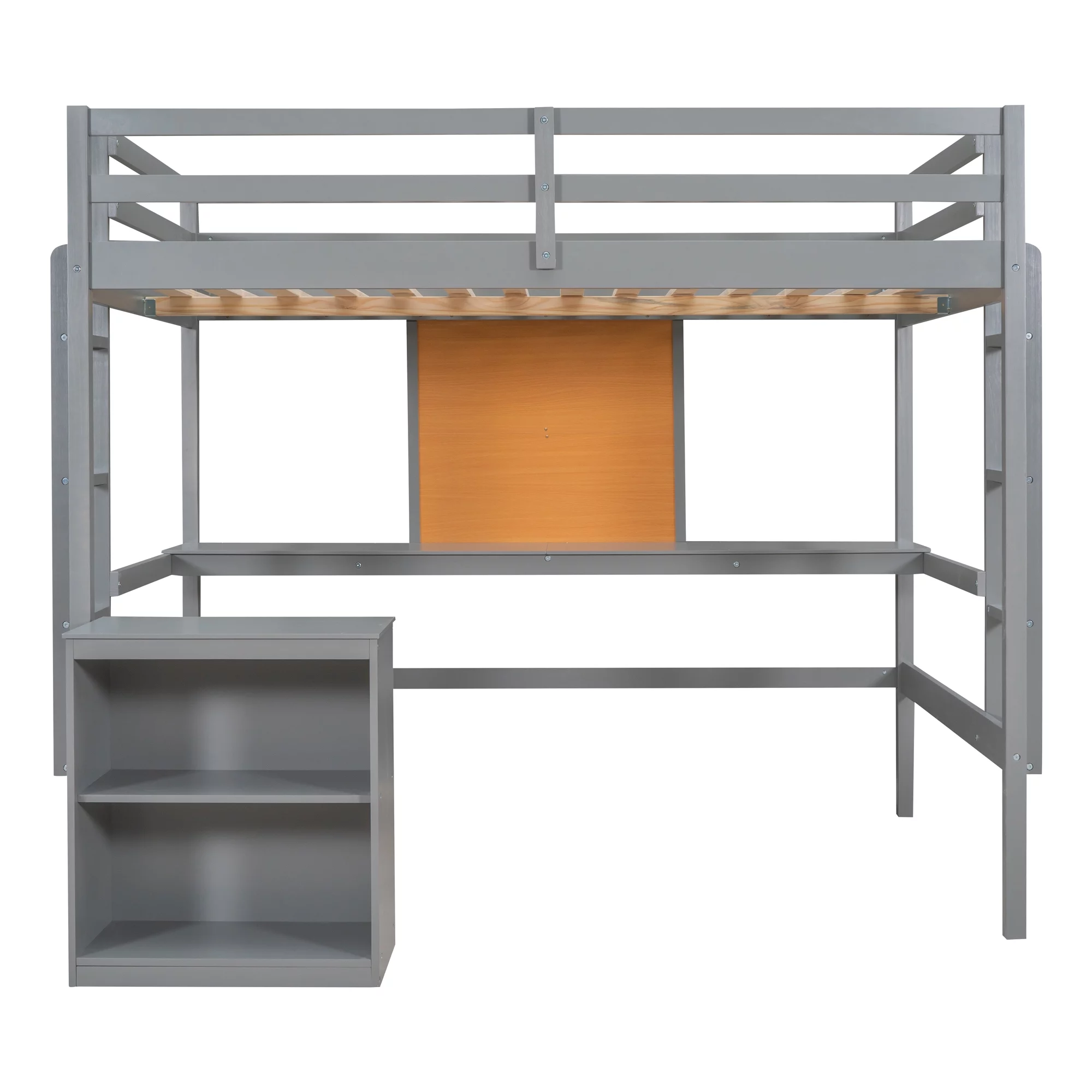 Full Loft Bed with Desk Bookcase Storage Cabinet, Solid Wood Slat Bed Frame with Writing Board Ladder for Child Kids Teens