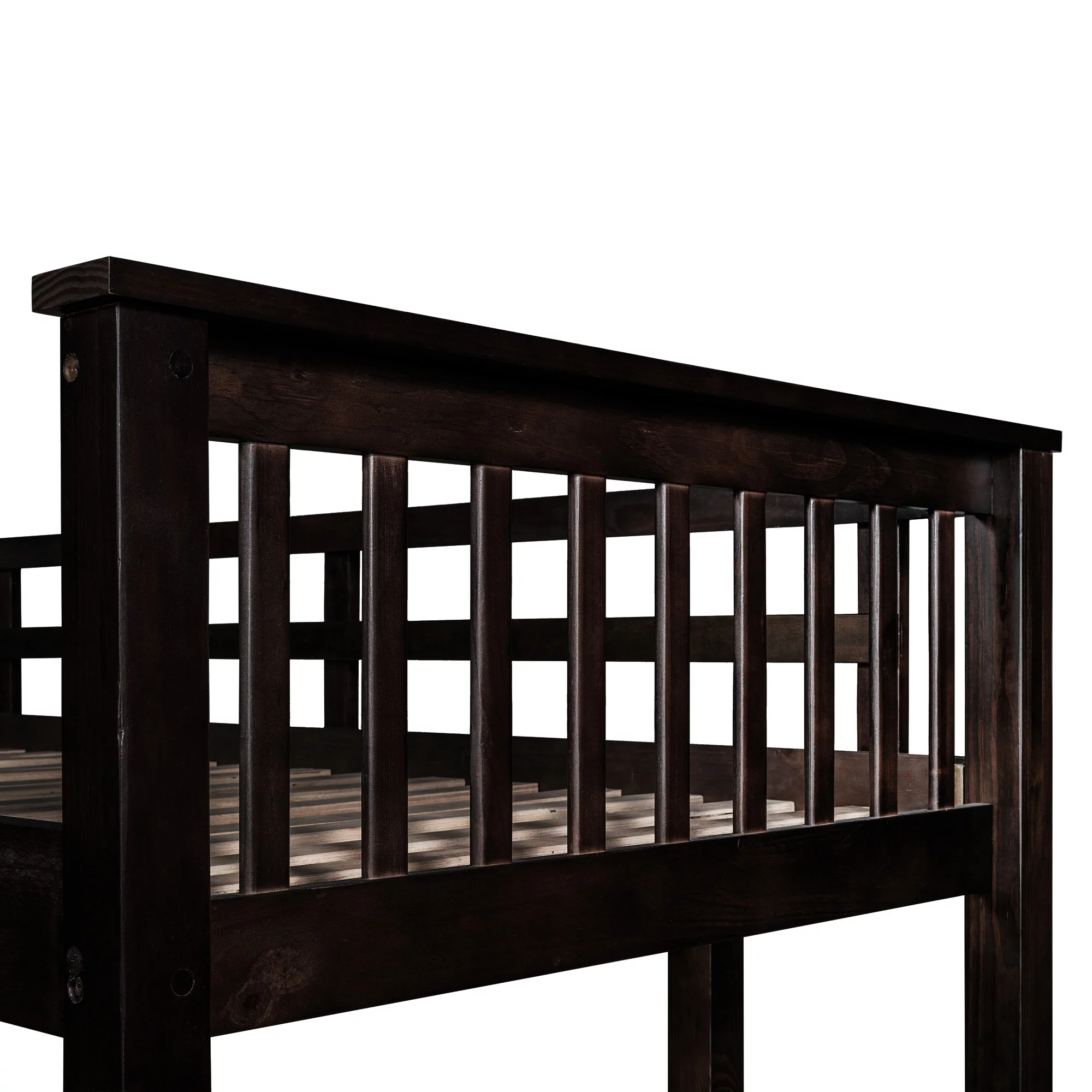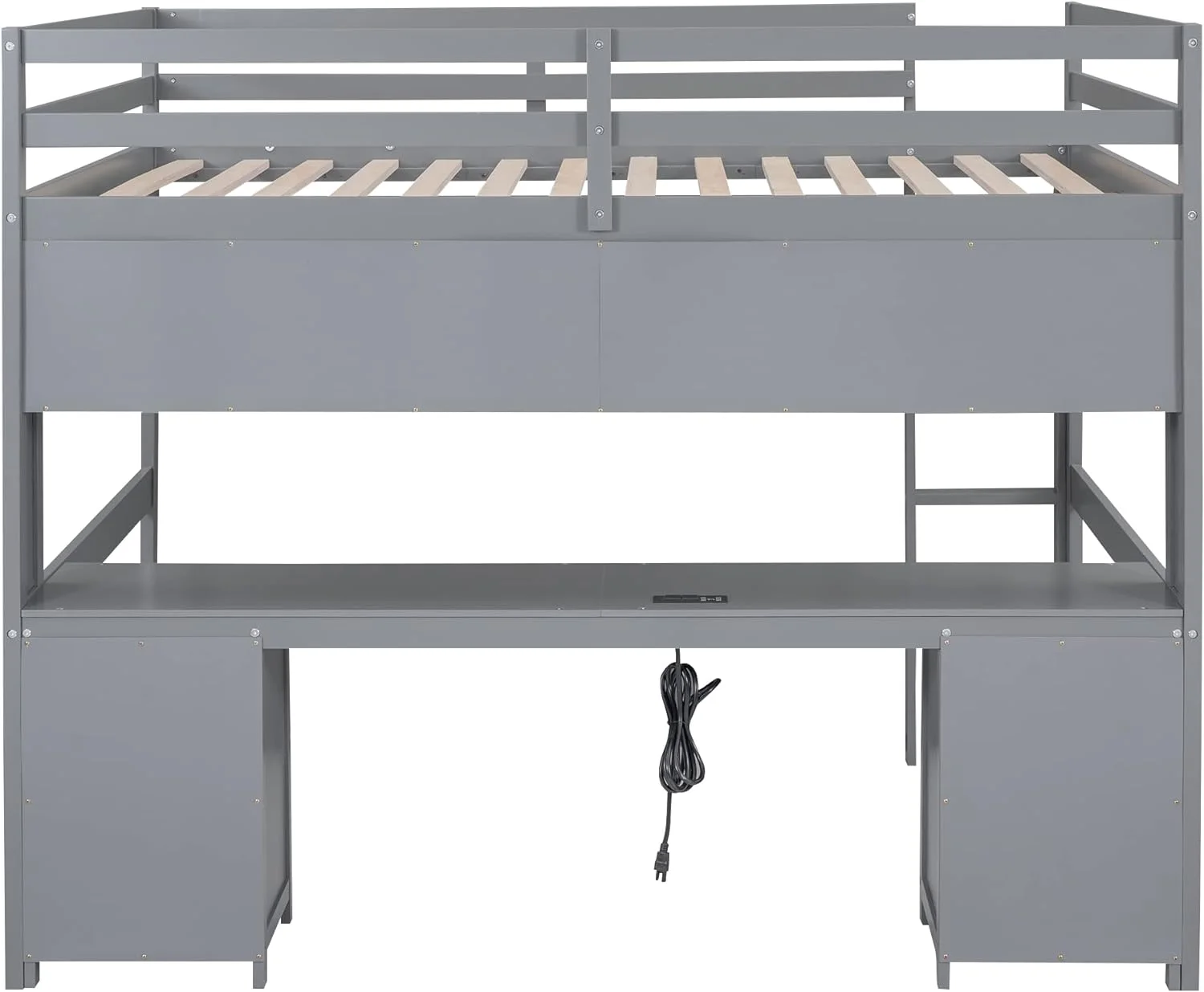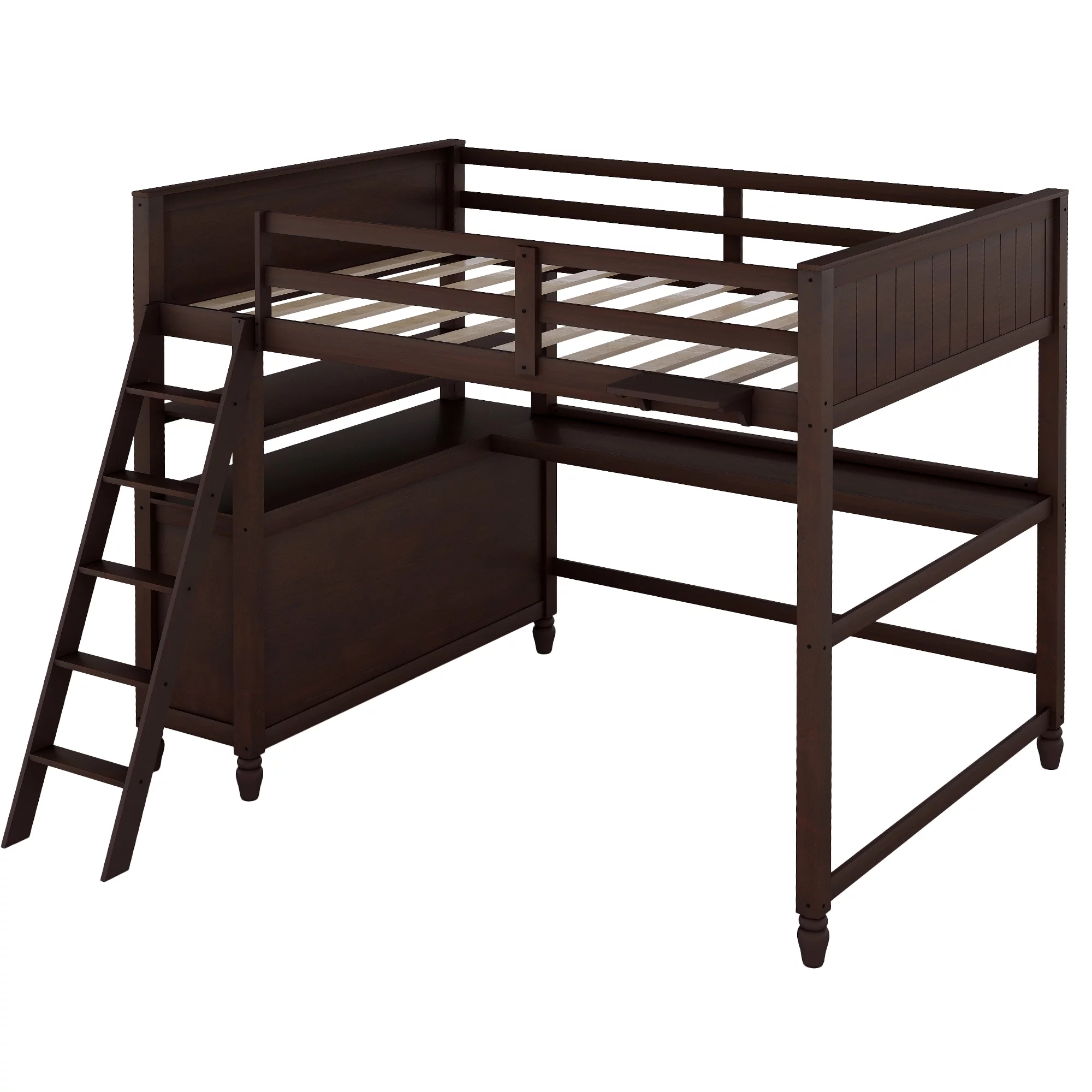 Full Loft Bed with Desk Bookcase Storage Cabinet, Solid Wood Slat Bed Frame with Writing Board Ladder for Child Kids Teens