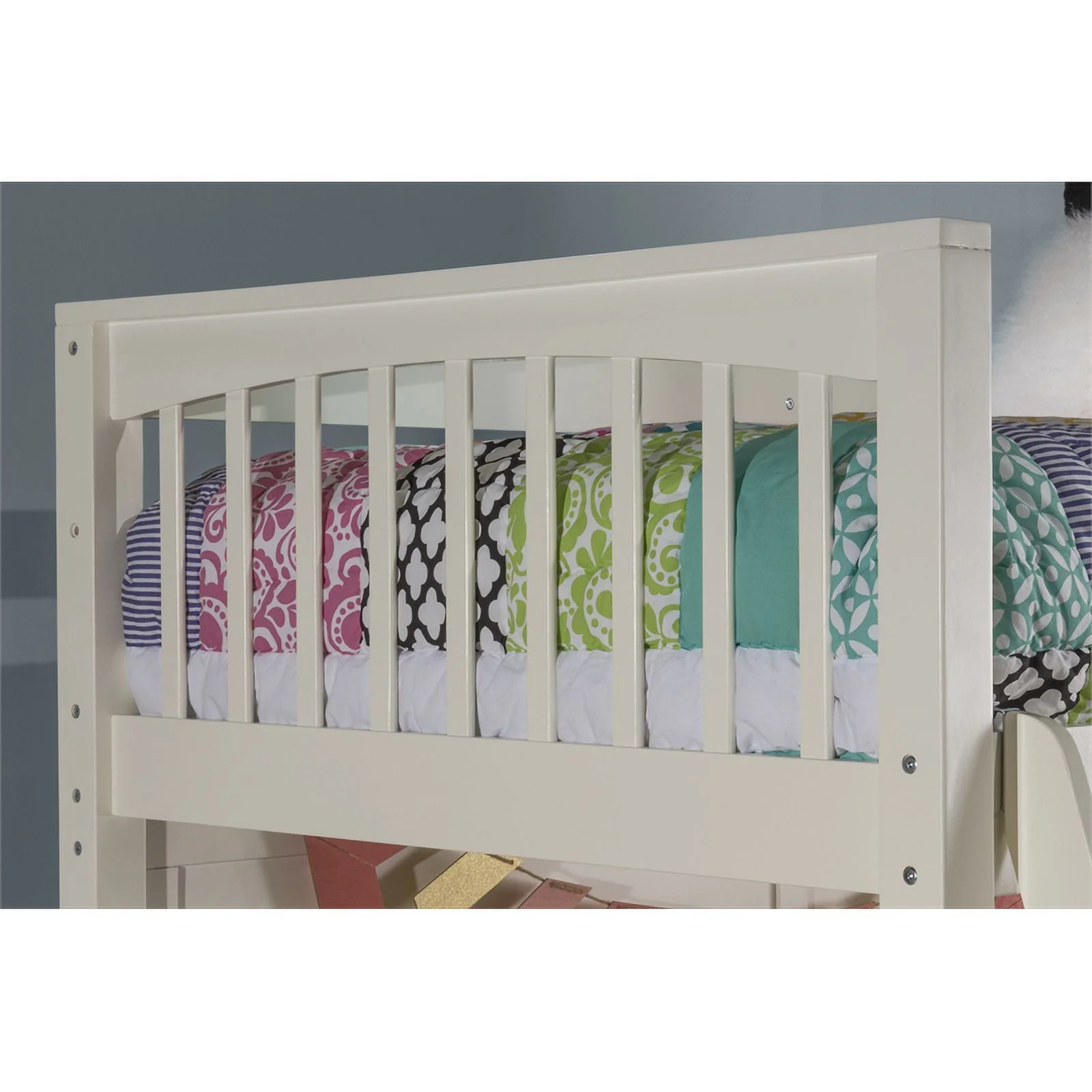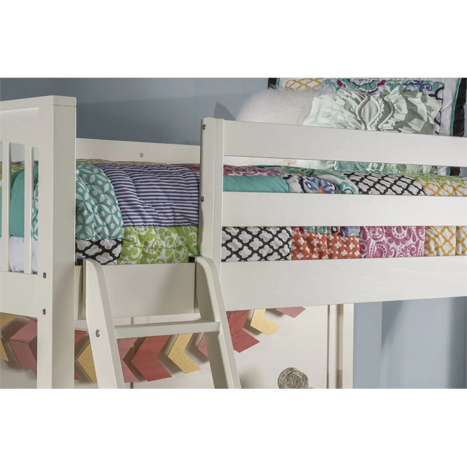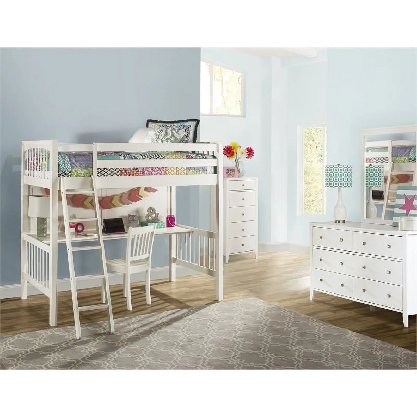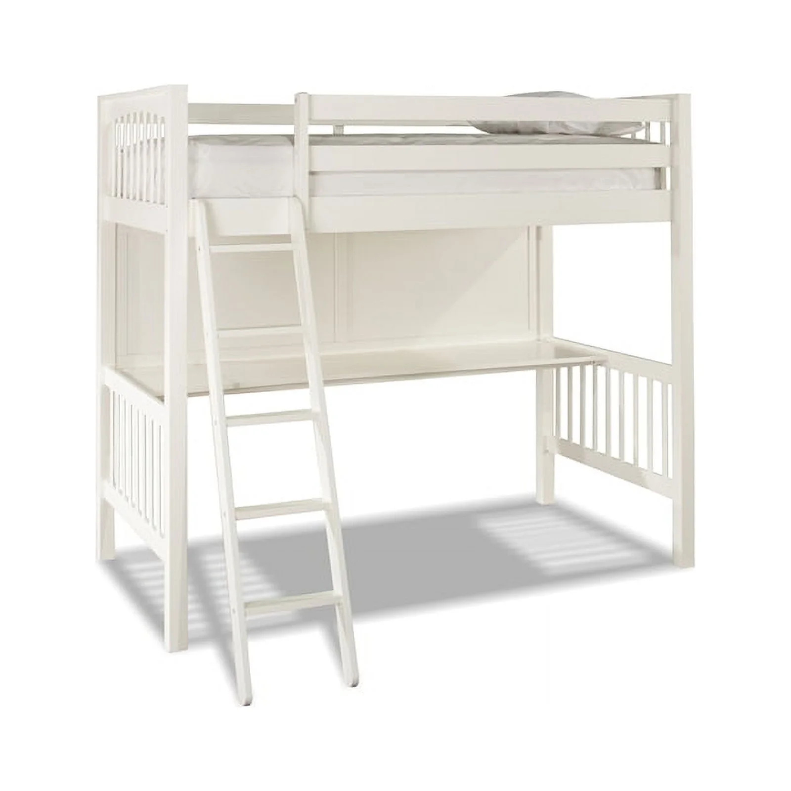 Pemberly Row Twin Wooden Loft Bed with Desk and Hanging Nightstand in White