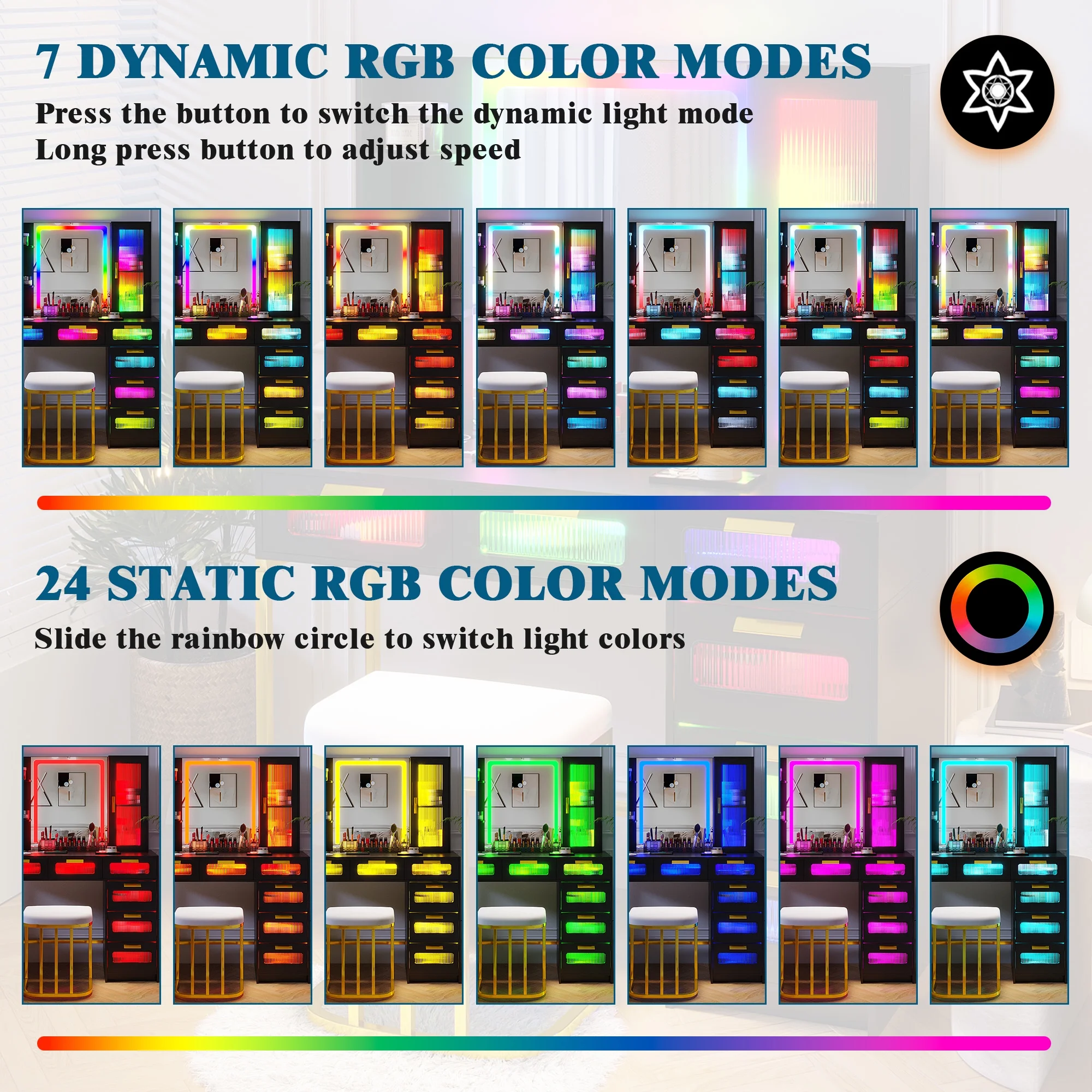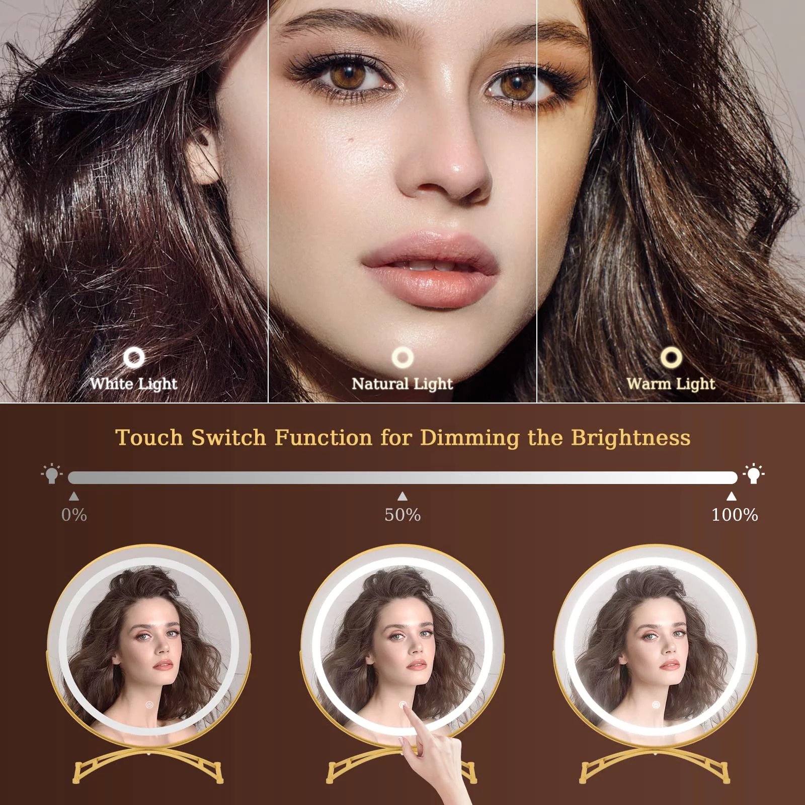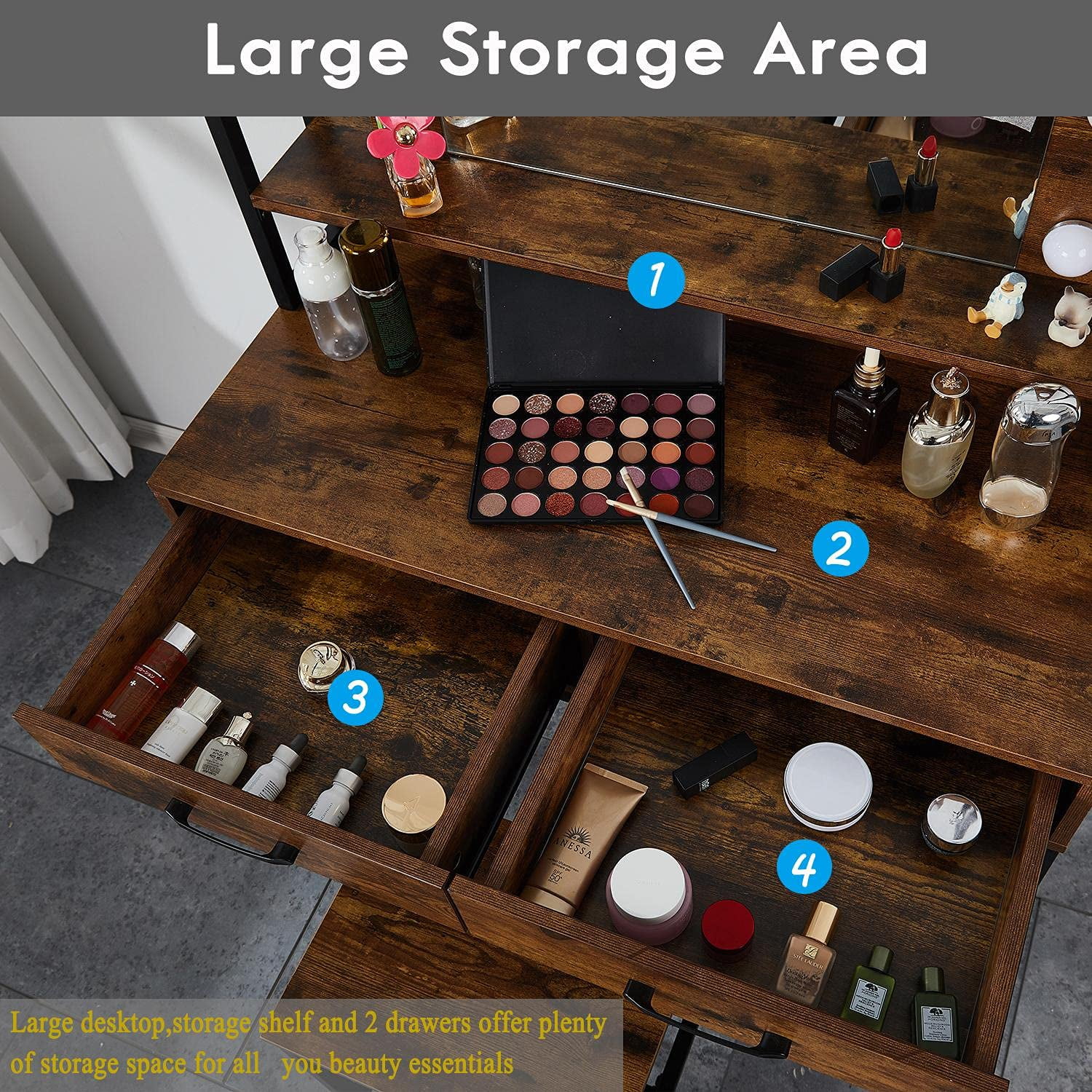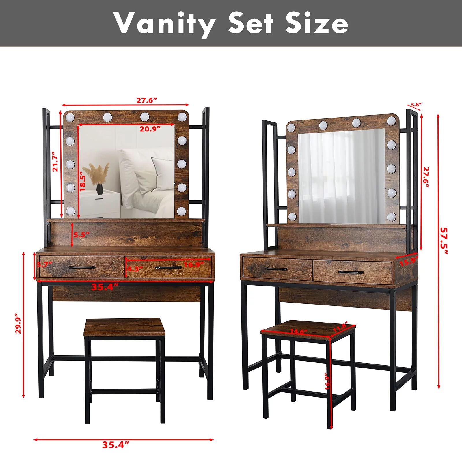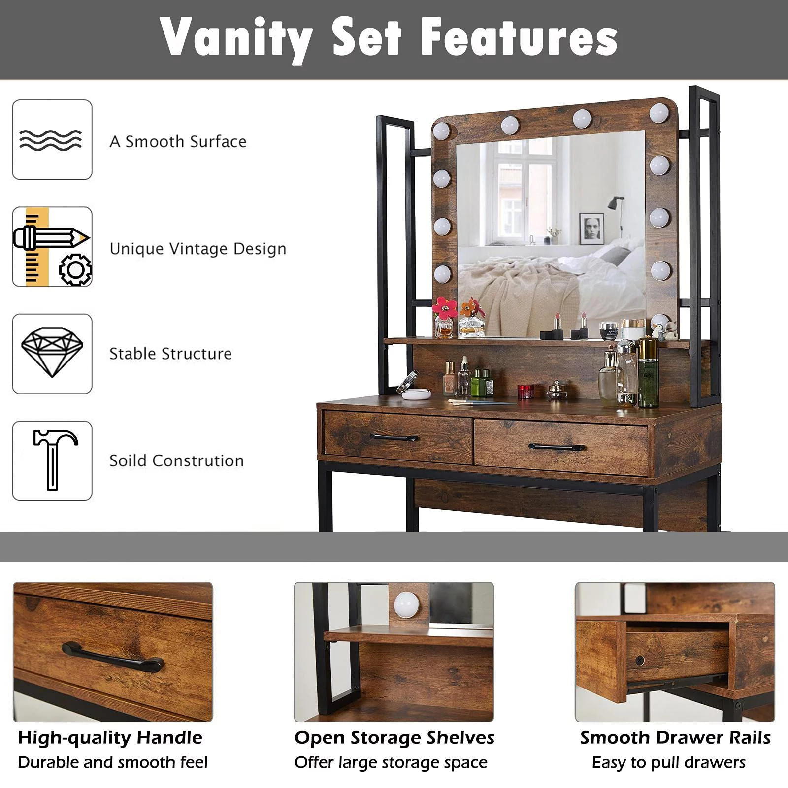 Veanerwood Rustic Vanity Set with Adjustable Lights, Makeup Vanity Table Desk for Bedroom, 3 Drawers, Brown