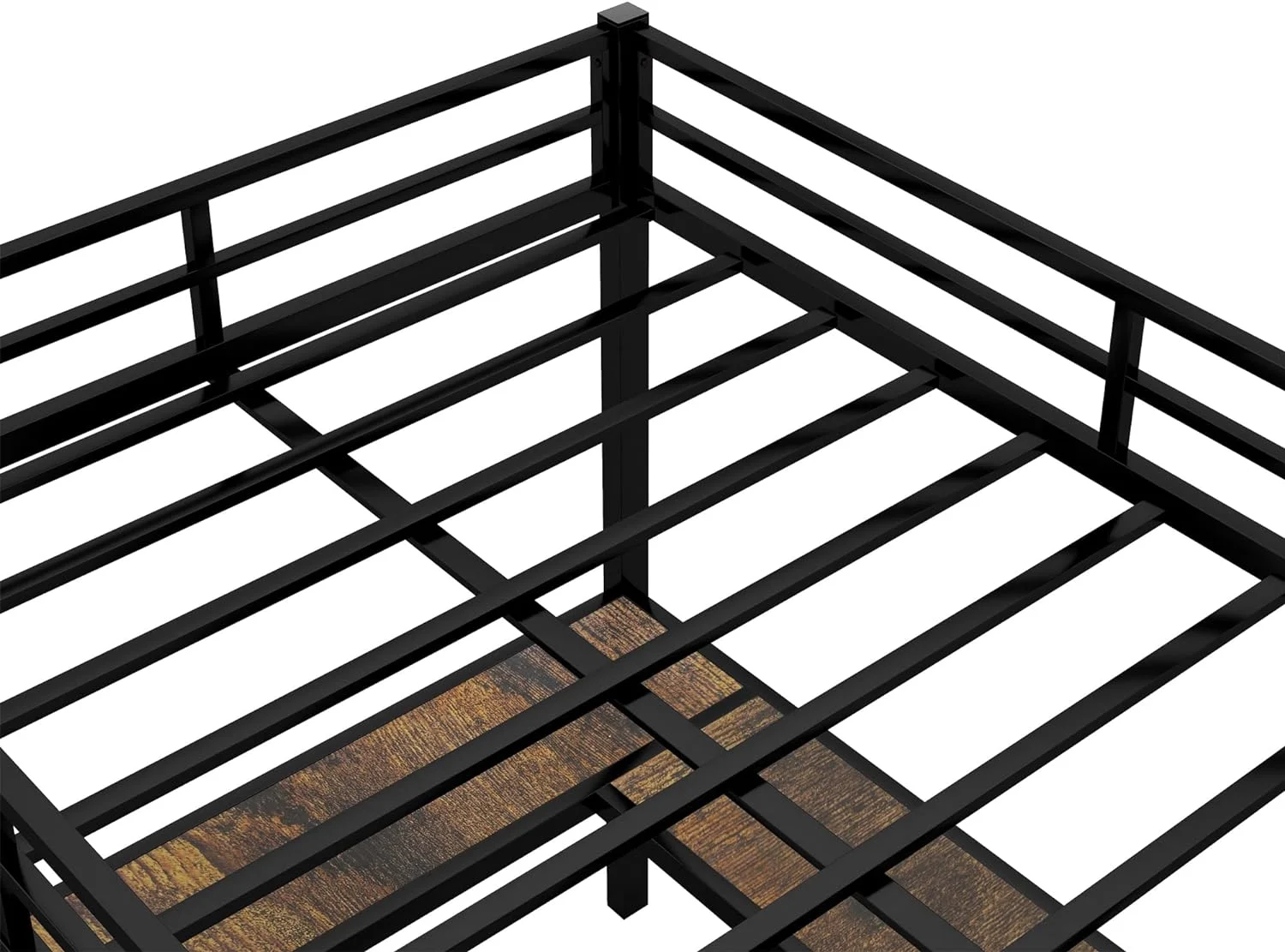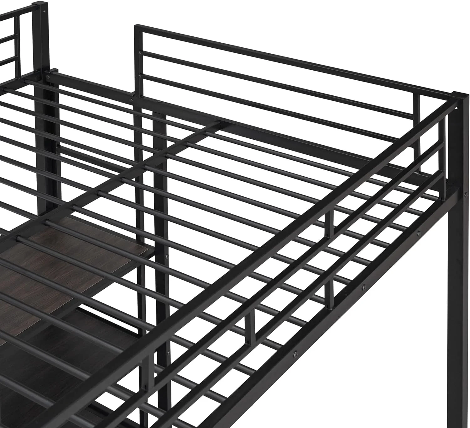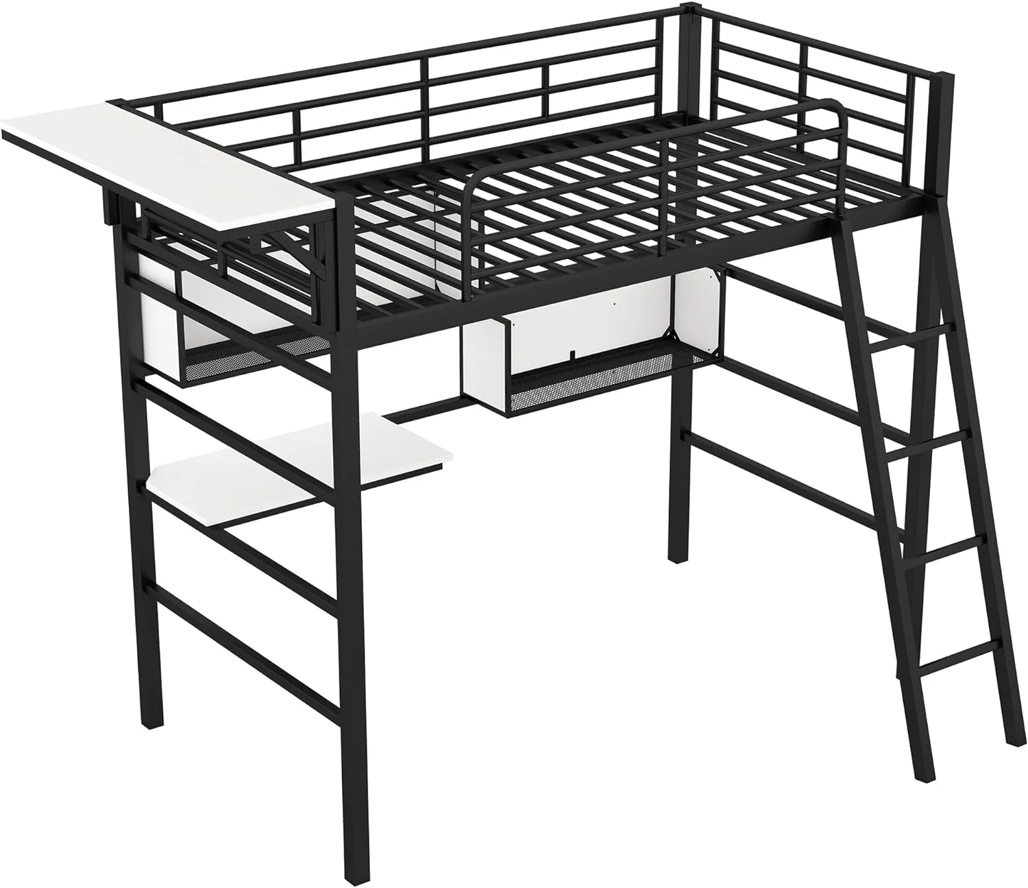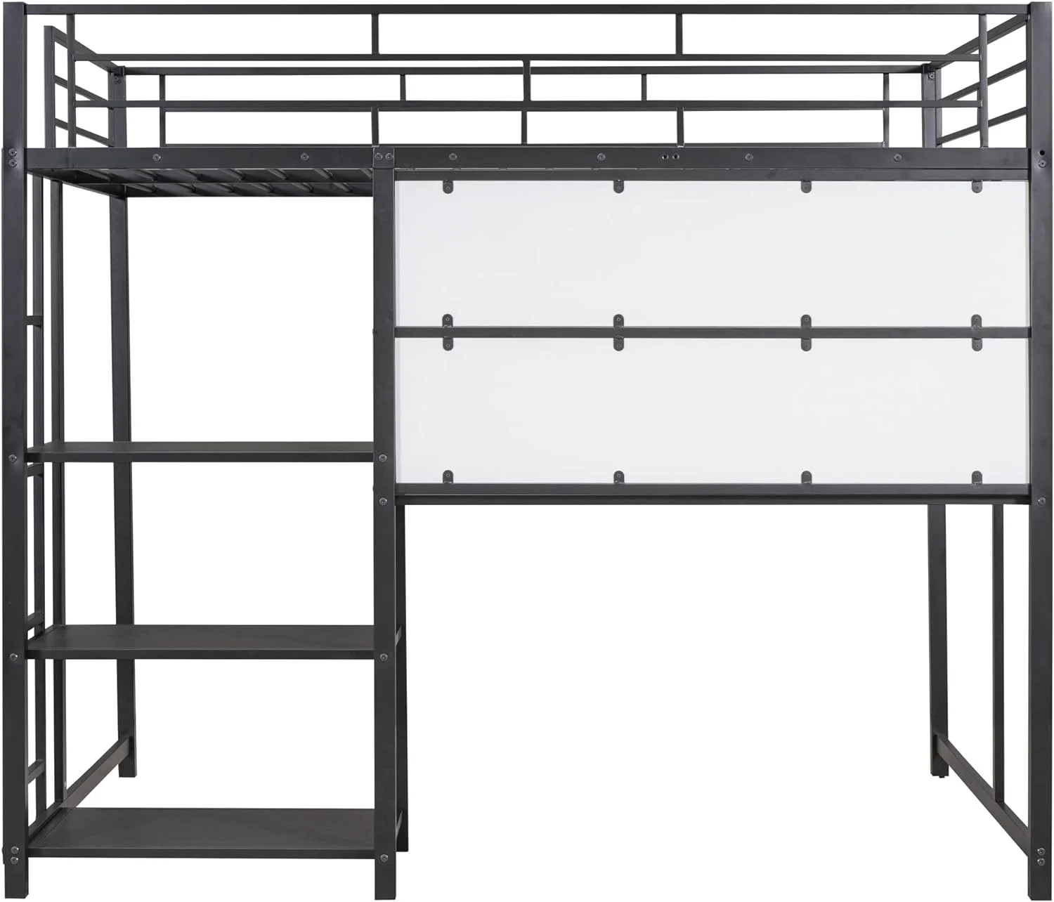 Emma + Oliver Twin Size Loft Bed Frame with Desk, Protective Guard Rails and Ladder in Gray Steel for Kids and Teens
