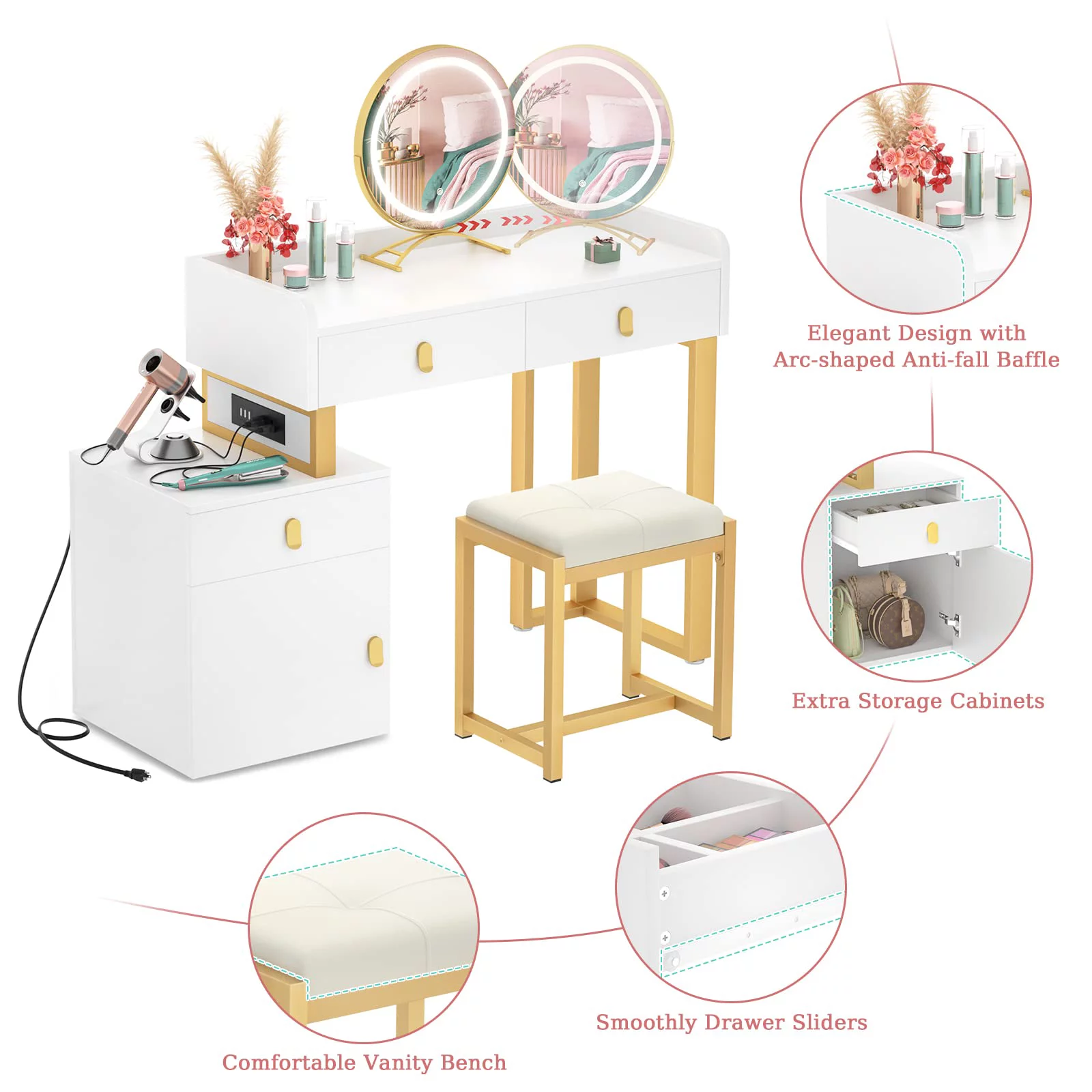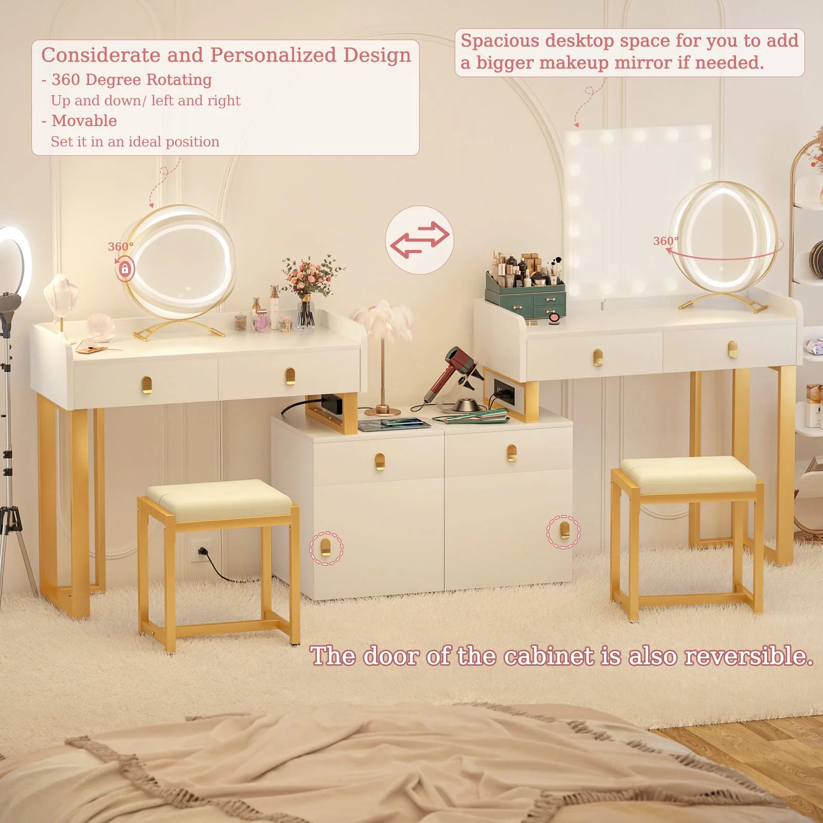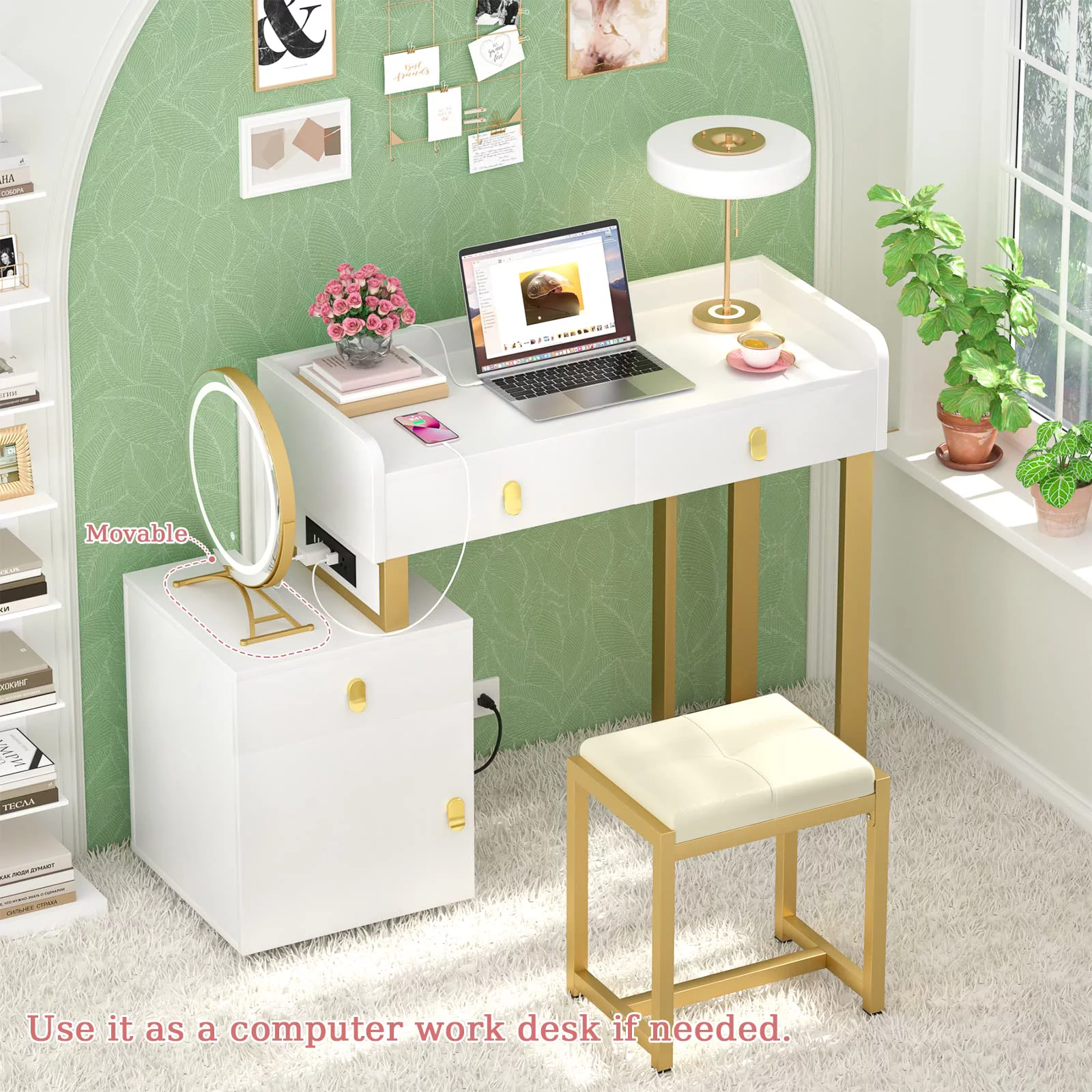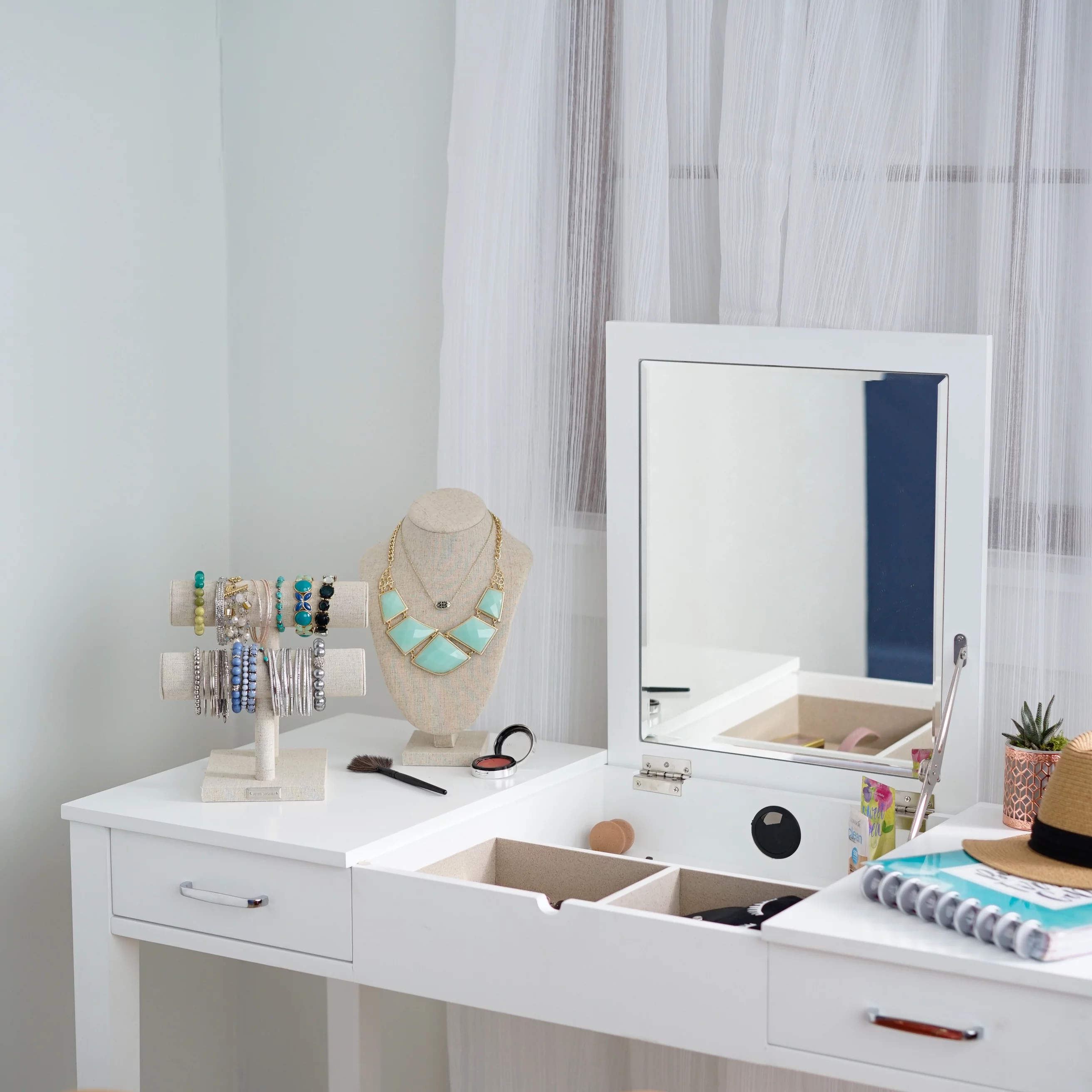 Hives and Honey Ainsley Vanity Desk with Make - Up organizer & integrated USB & power outlet, White