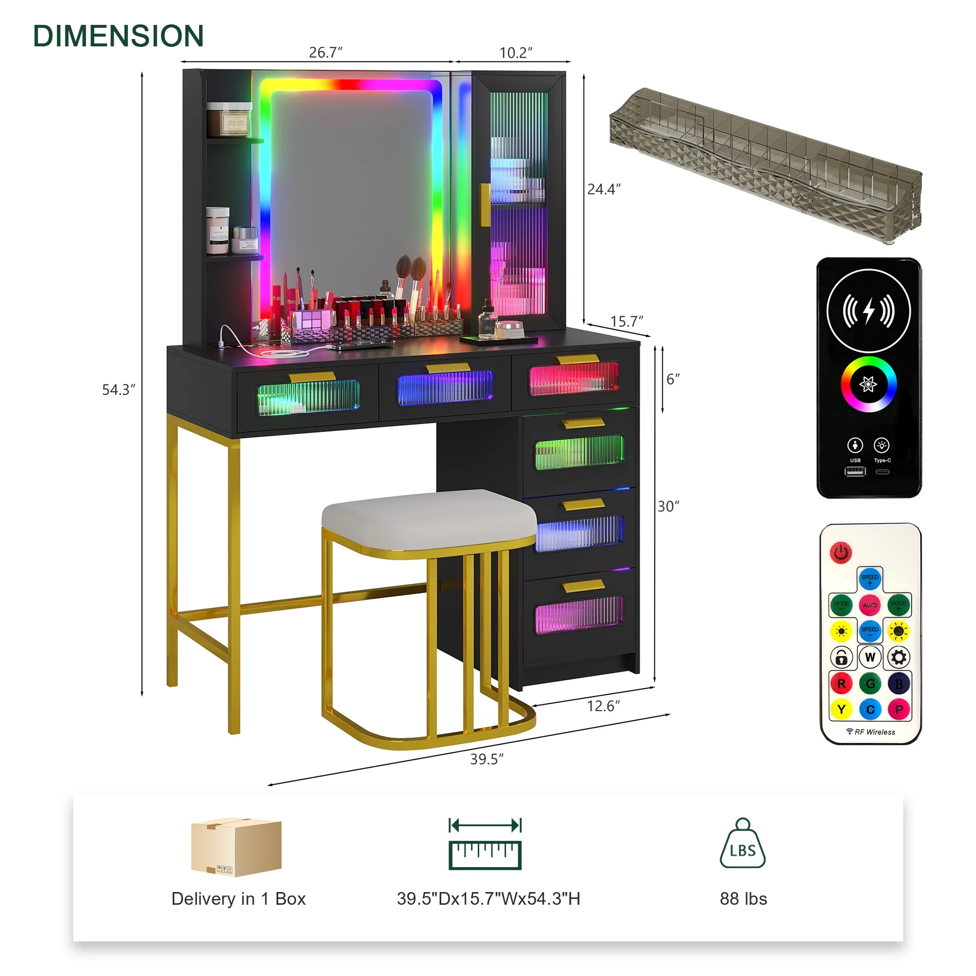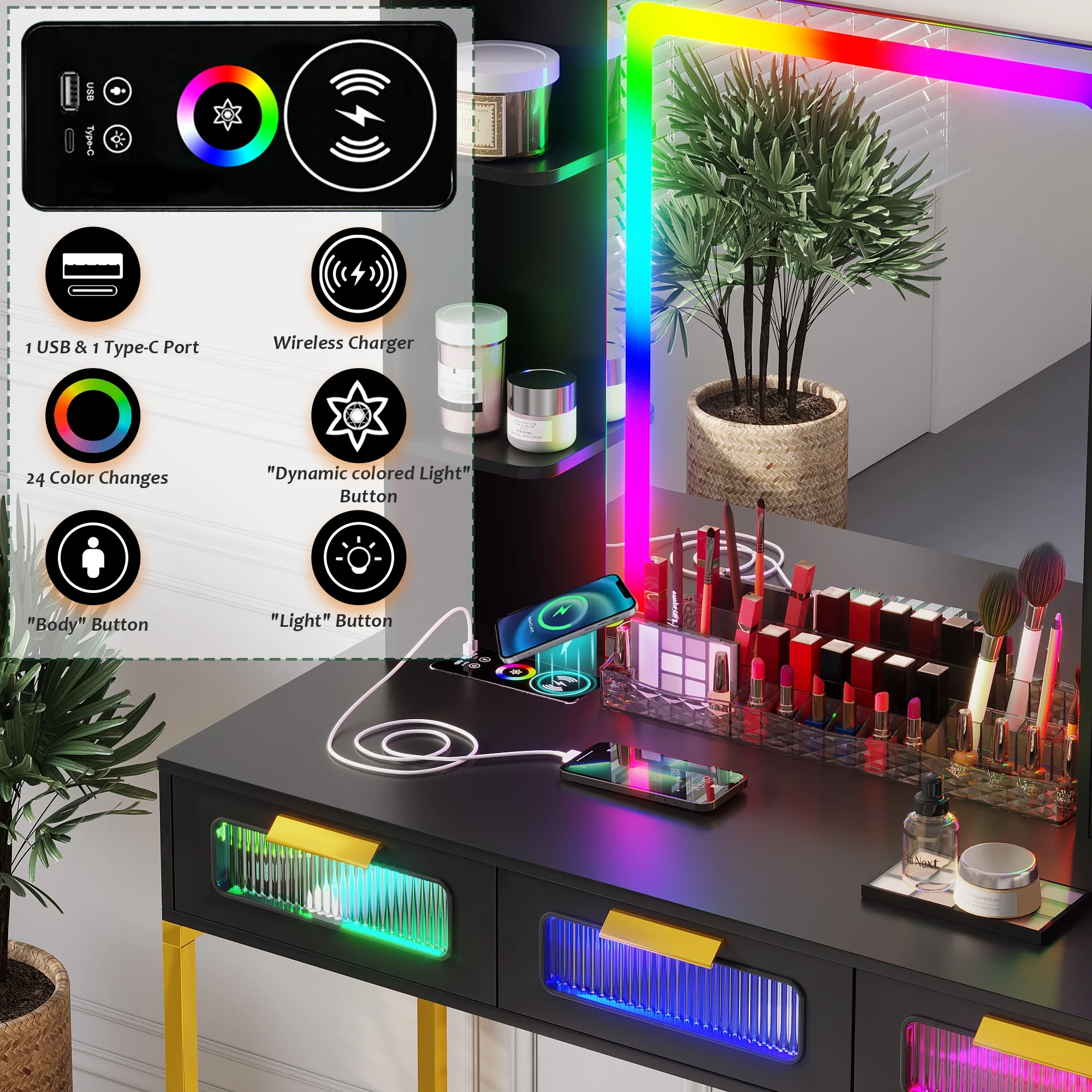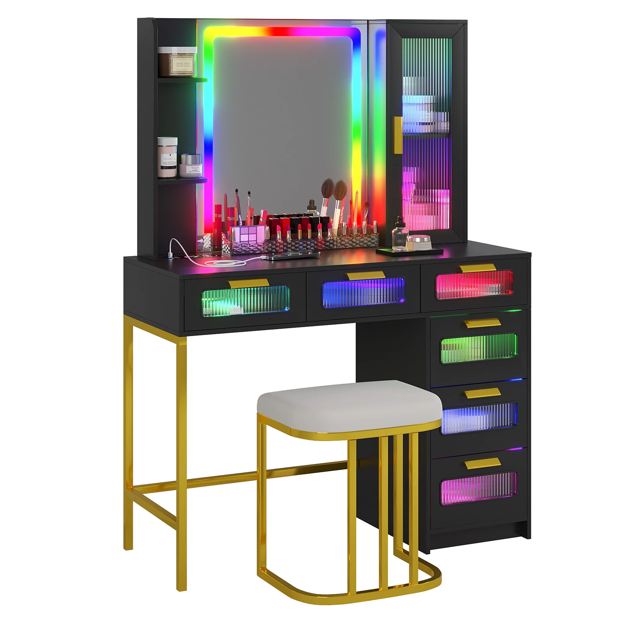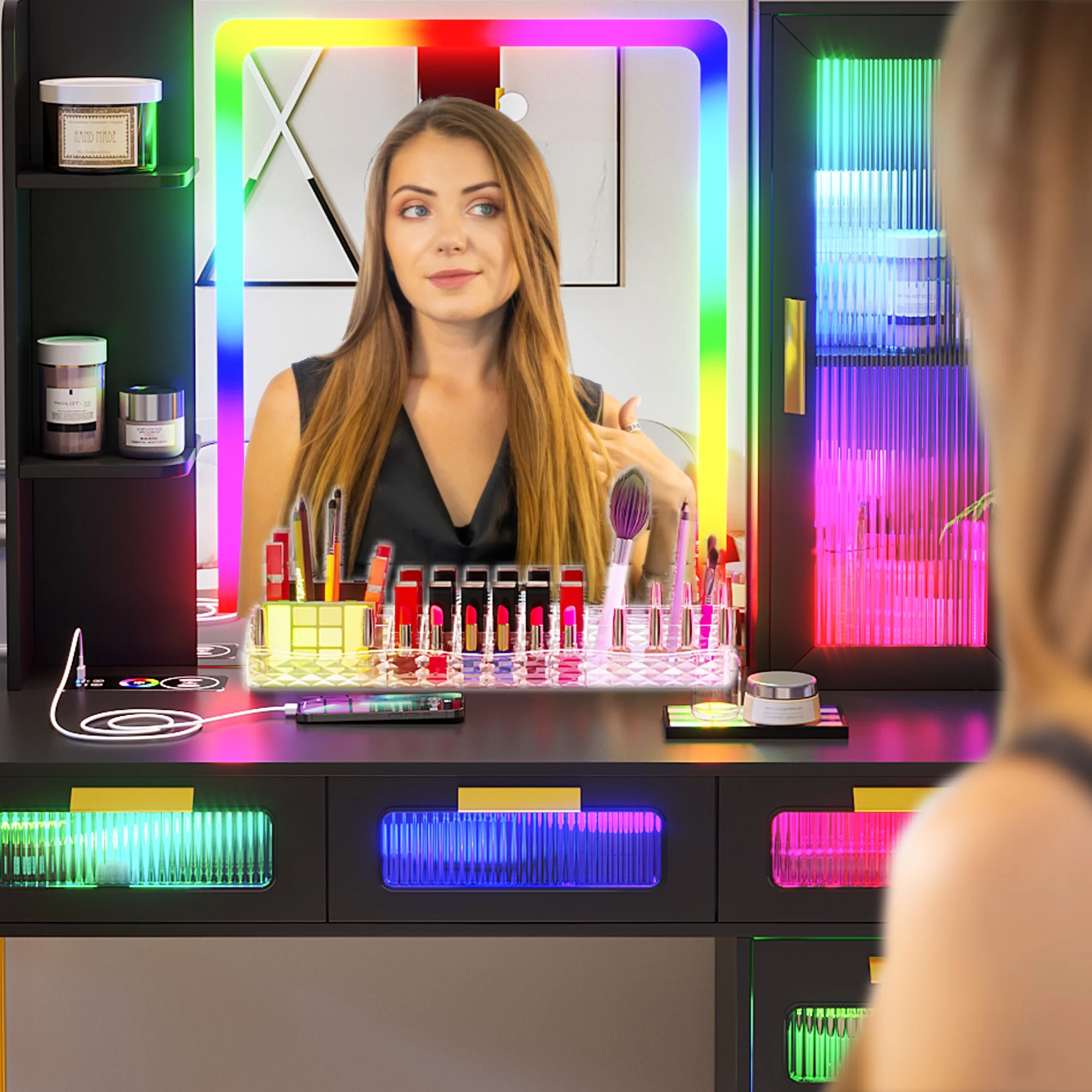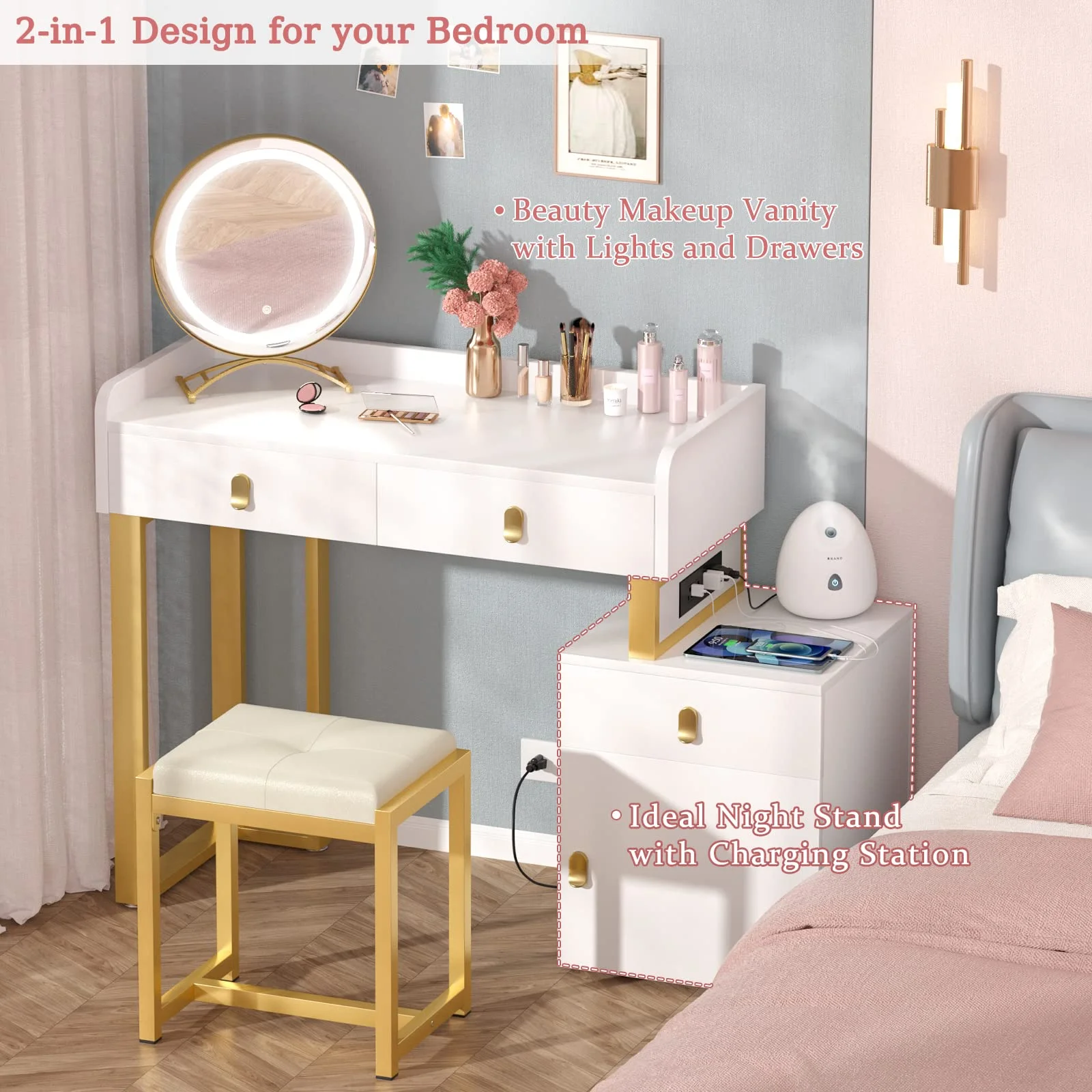 Hives and Honey Ainsley Vanity Desk with Make - Up organizer & integrated USB & power outlet, White
