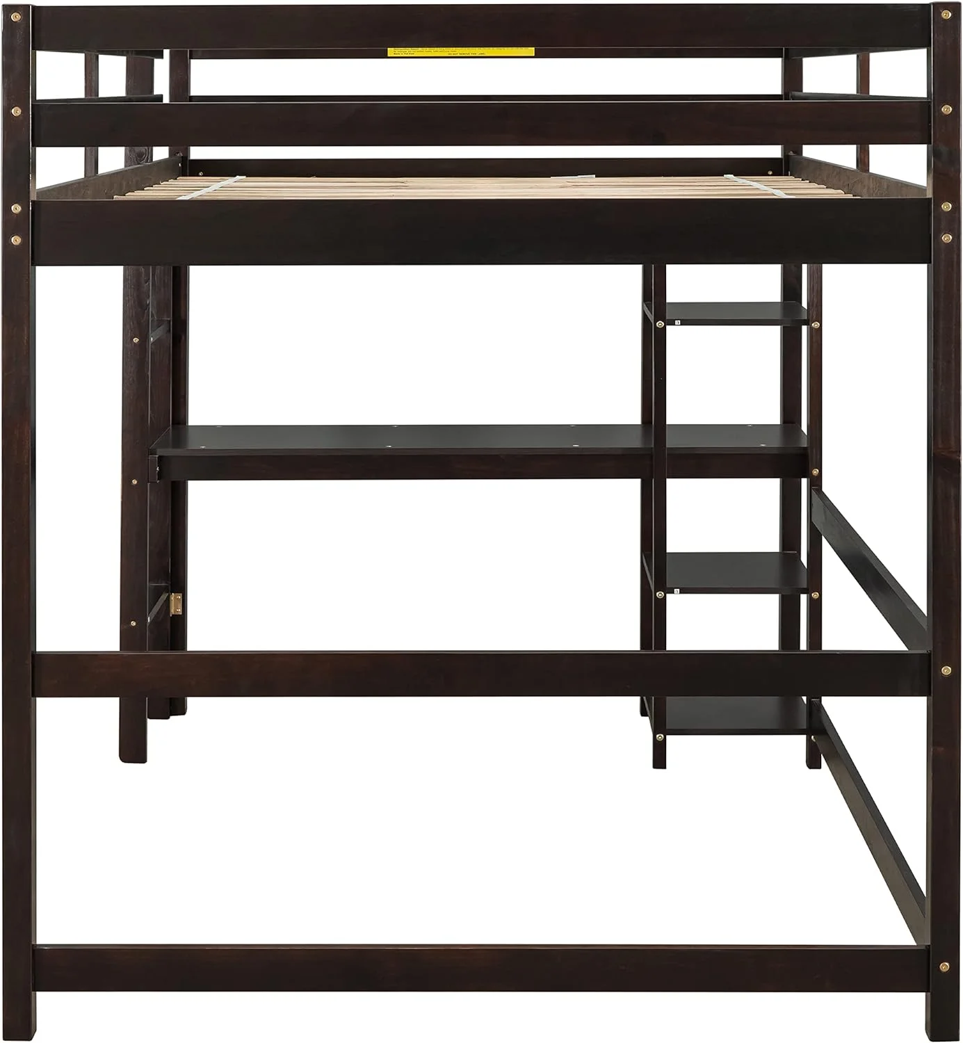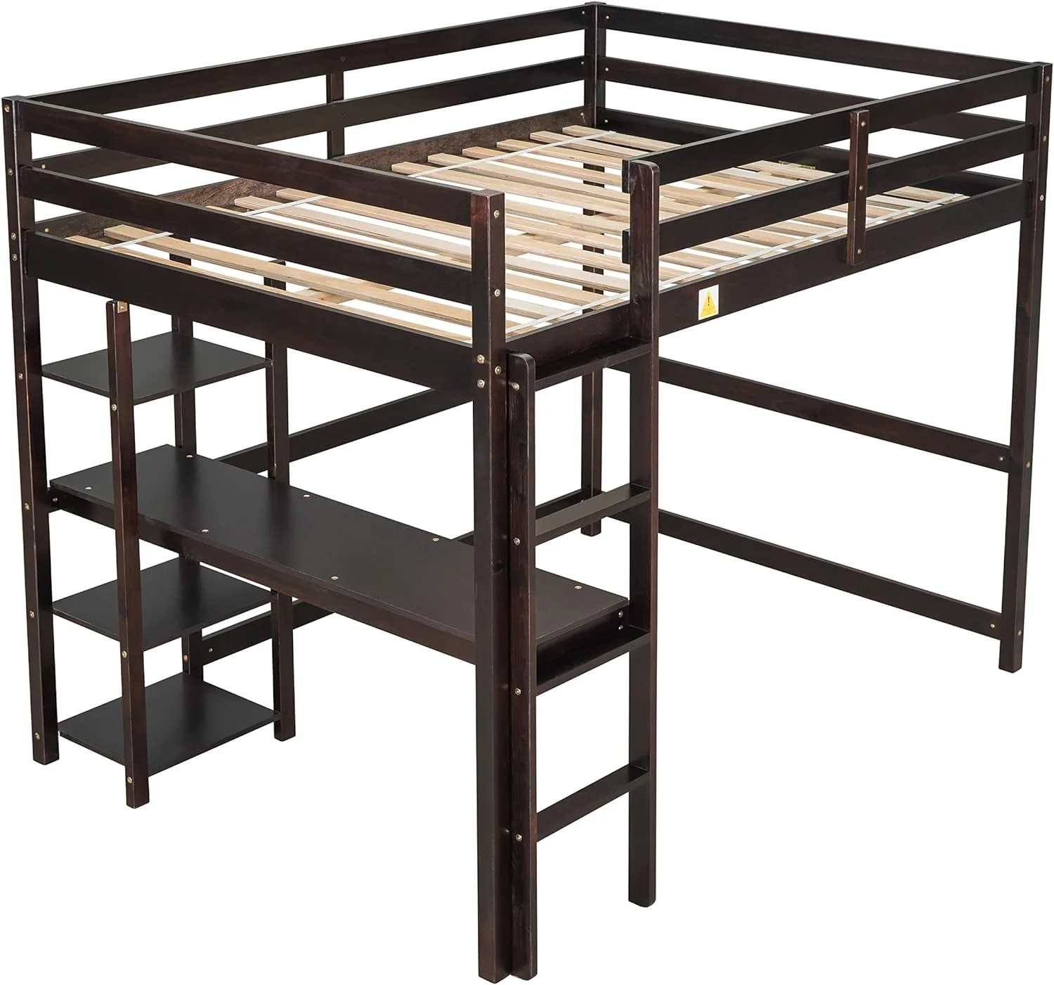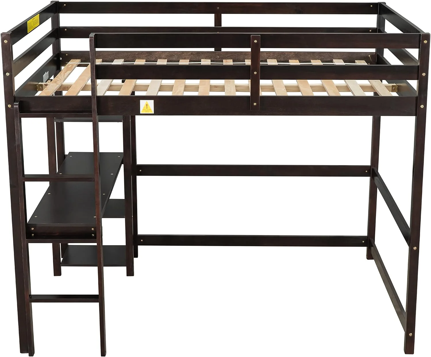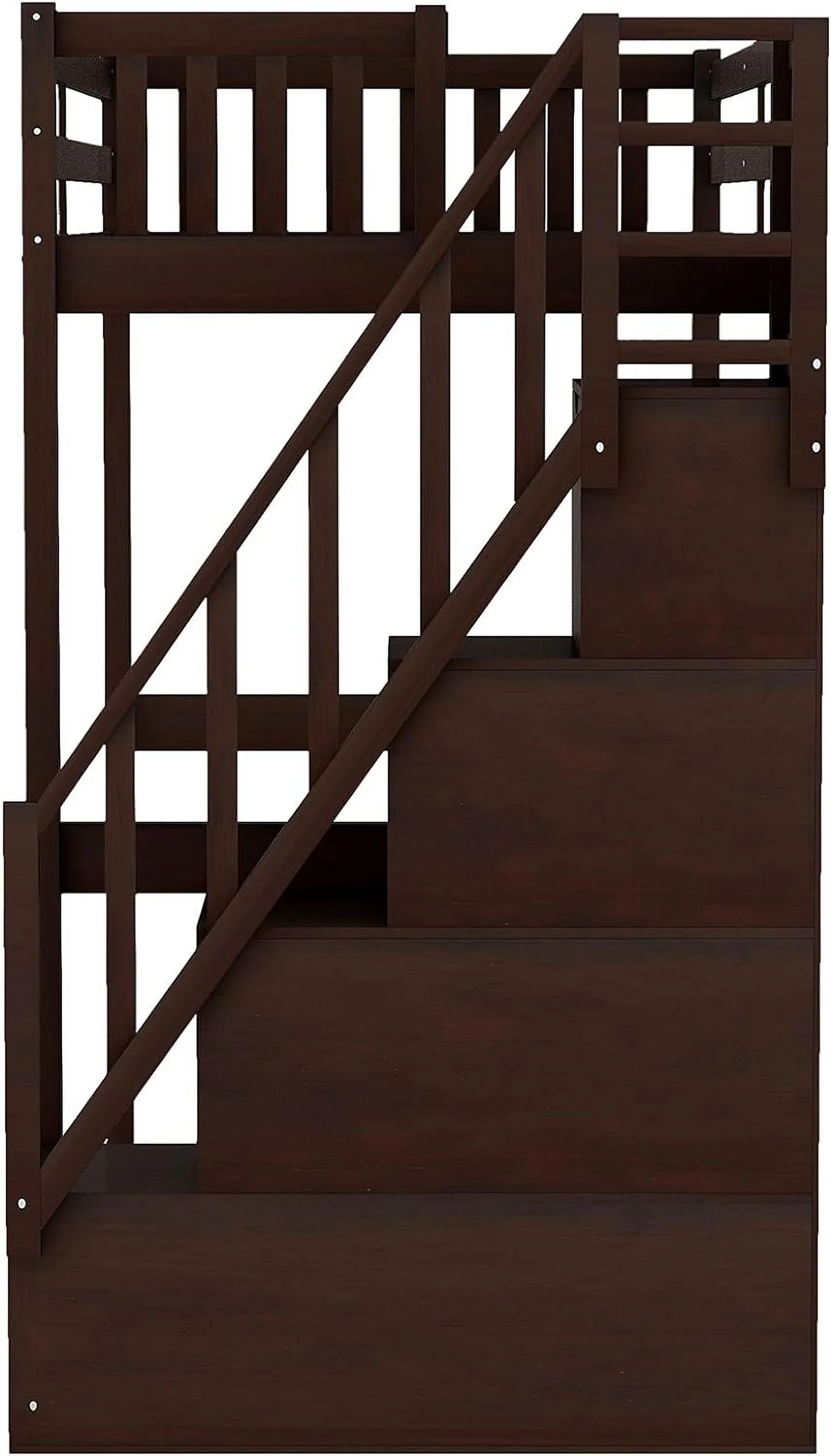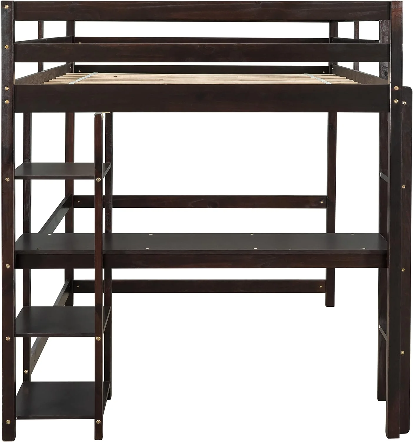 Loft Bed With Desk And Storage Wood Loft Bed Frame With Staircase Storage Loft Bed For Kids Boys Girls Teens, Espresso