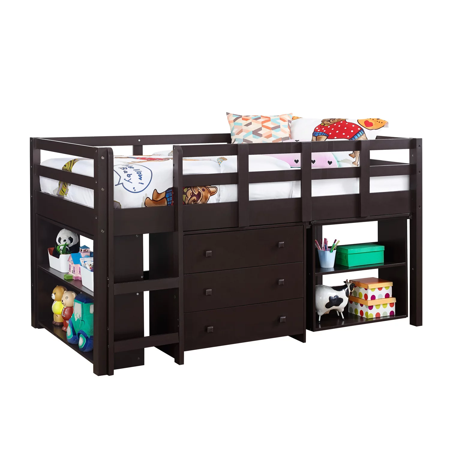 Twin Low Loft Bed with Desk for Kids, Low Study Loft Bed, Espresso - Twin - Finish: Espresso, Size: Twin