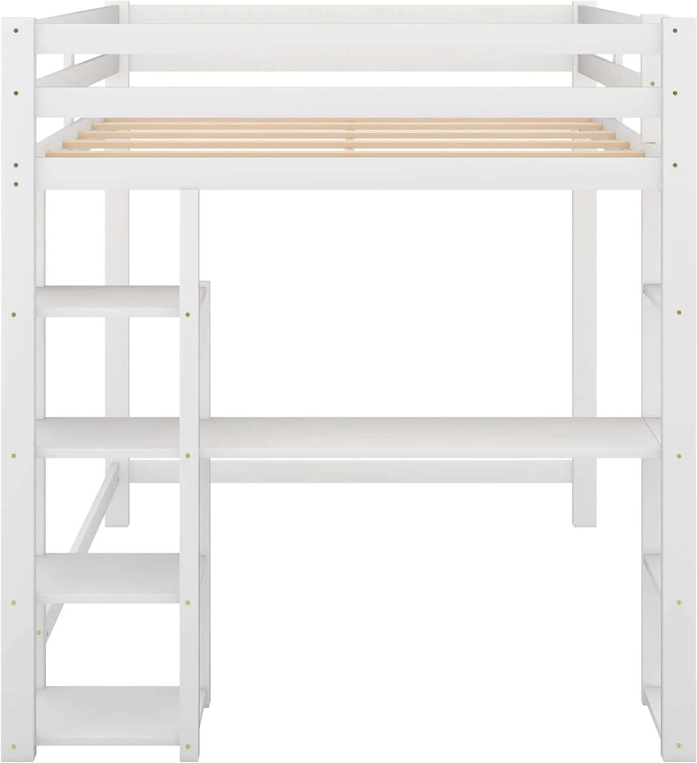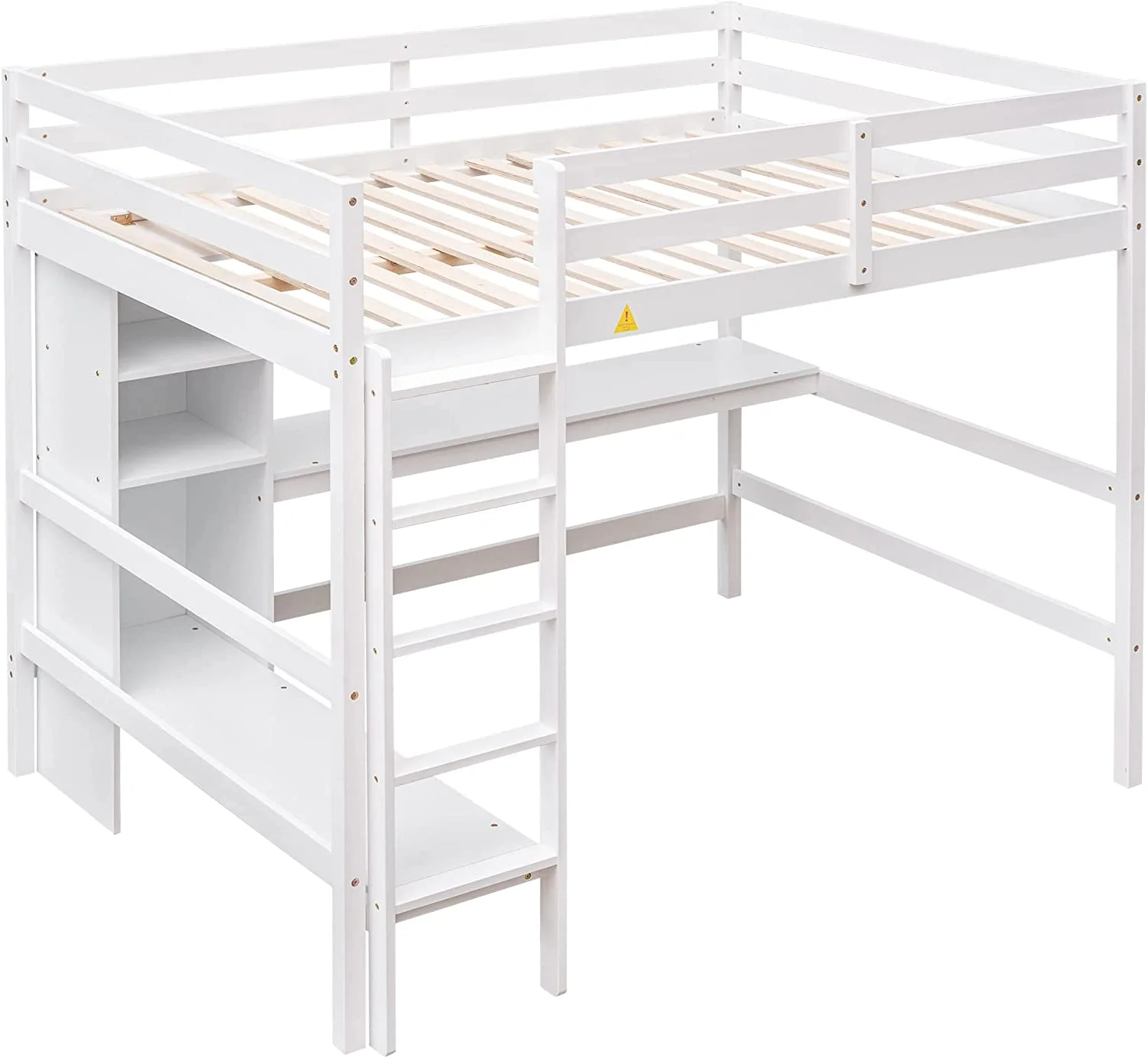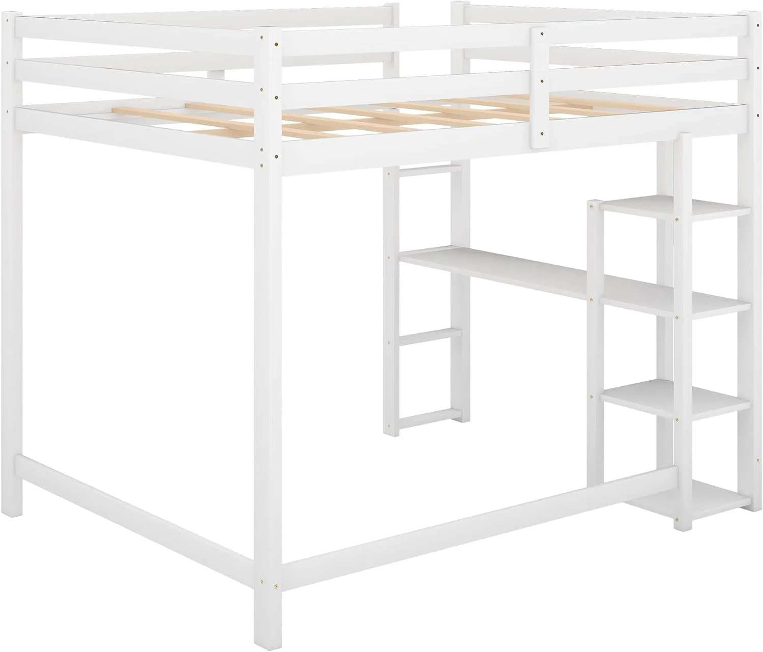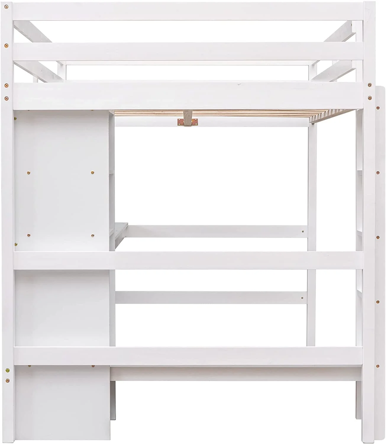 ElevateMax Full Size Loft Bed with Desk and Storage, in Elegant White