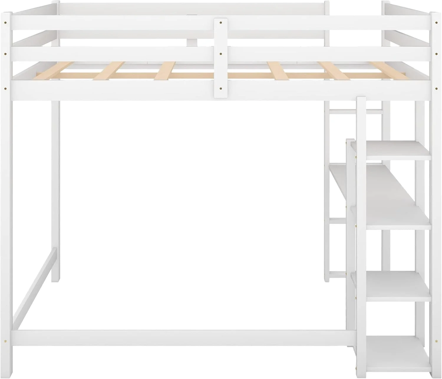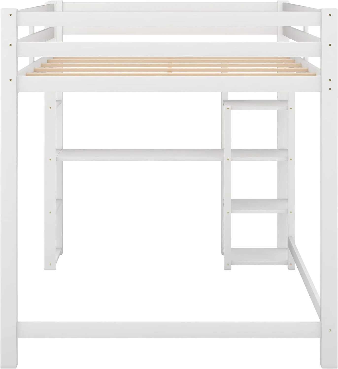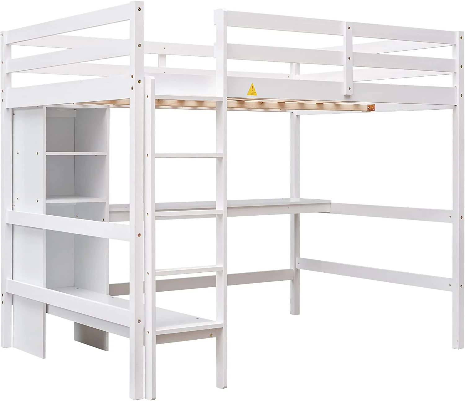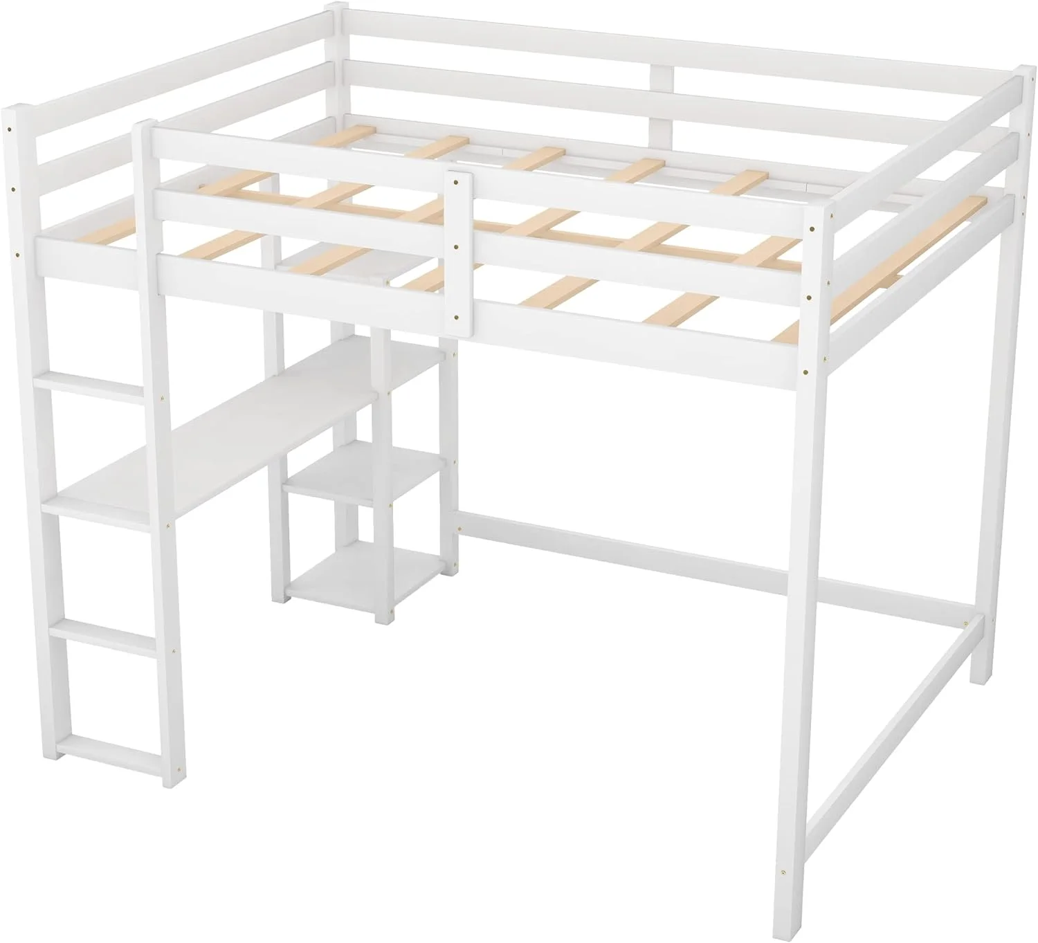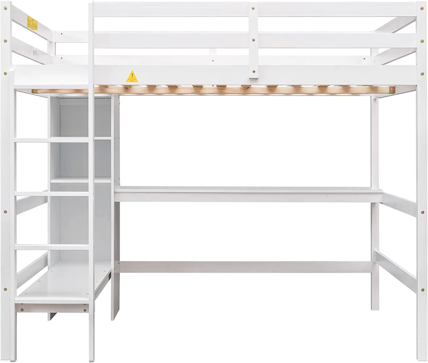 ElevateMax Full Size Loft Bed with Desk and Storage, in Elegant White
