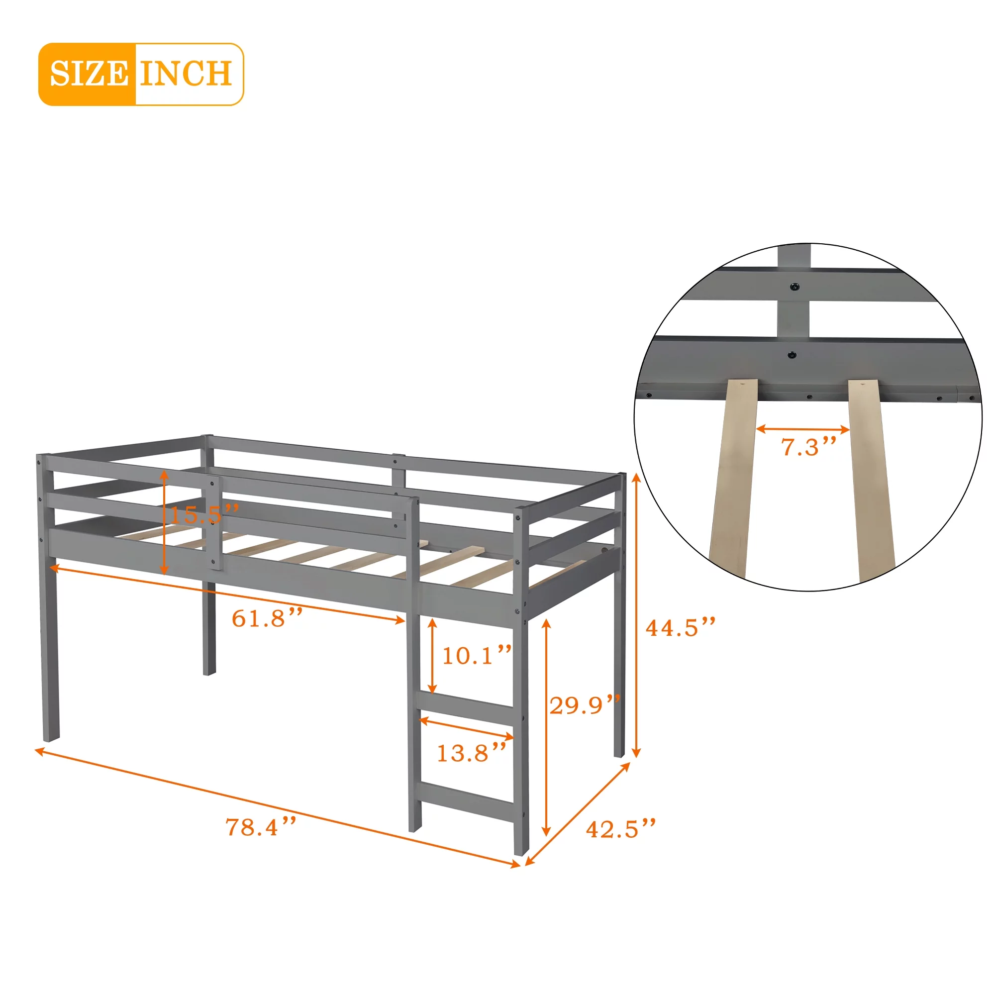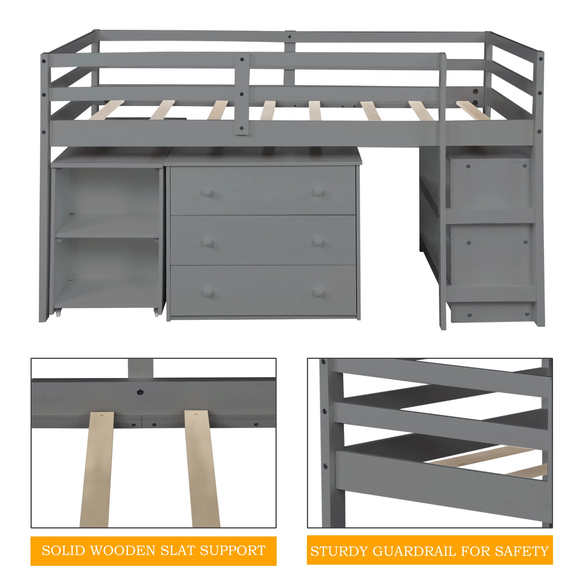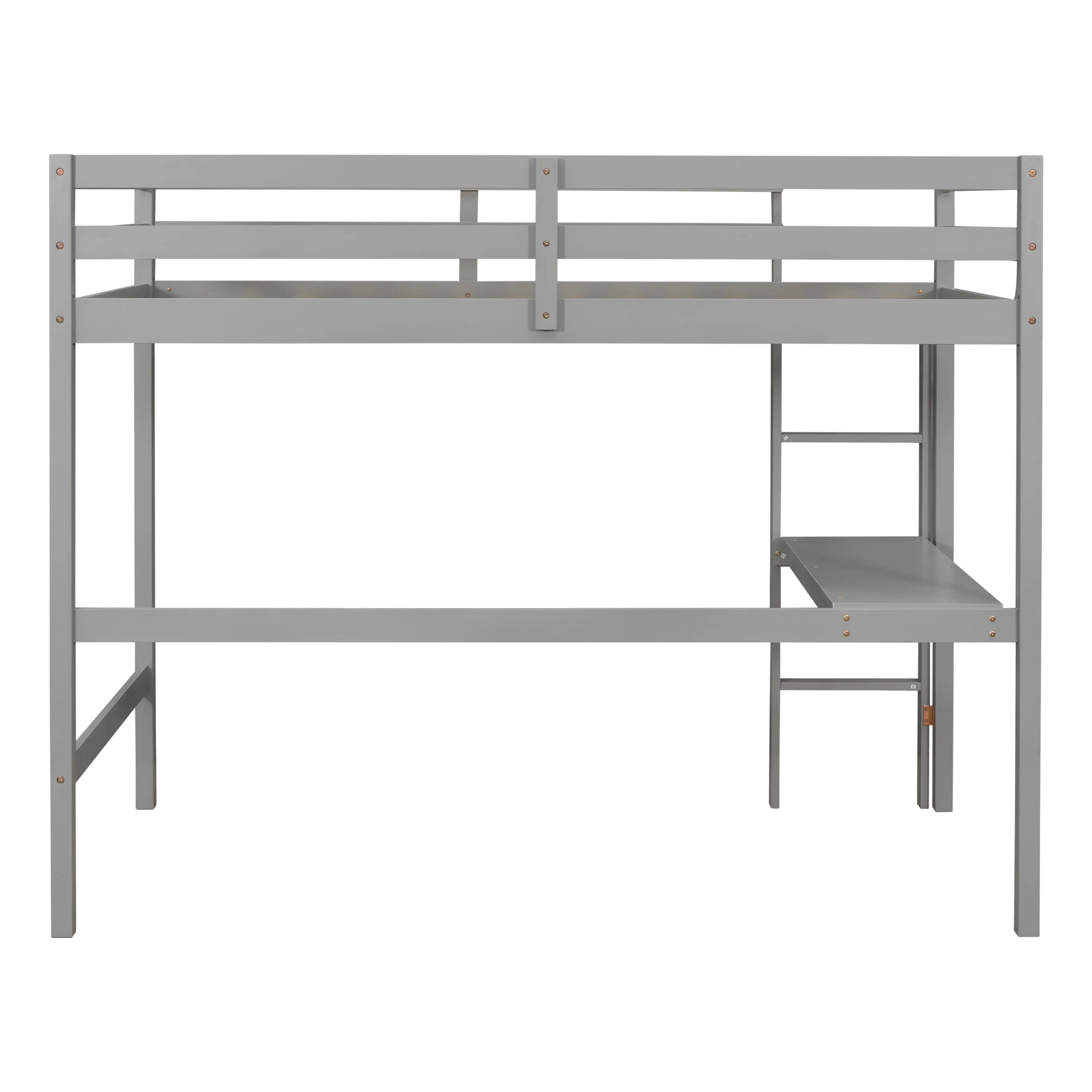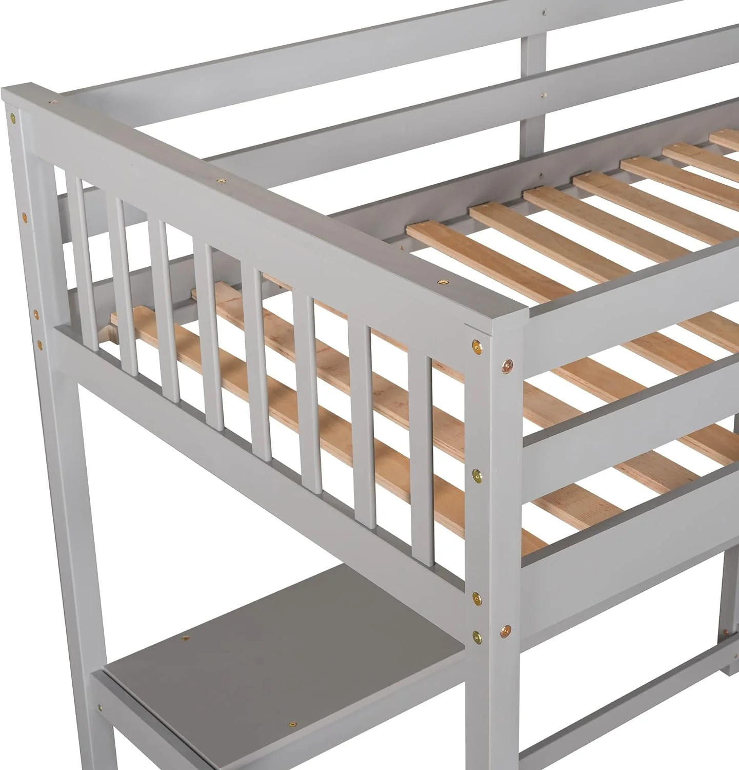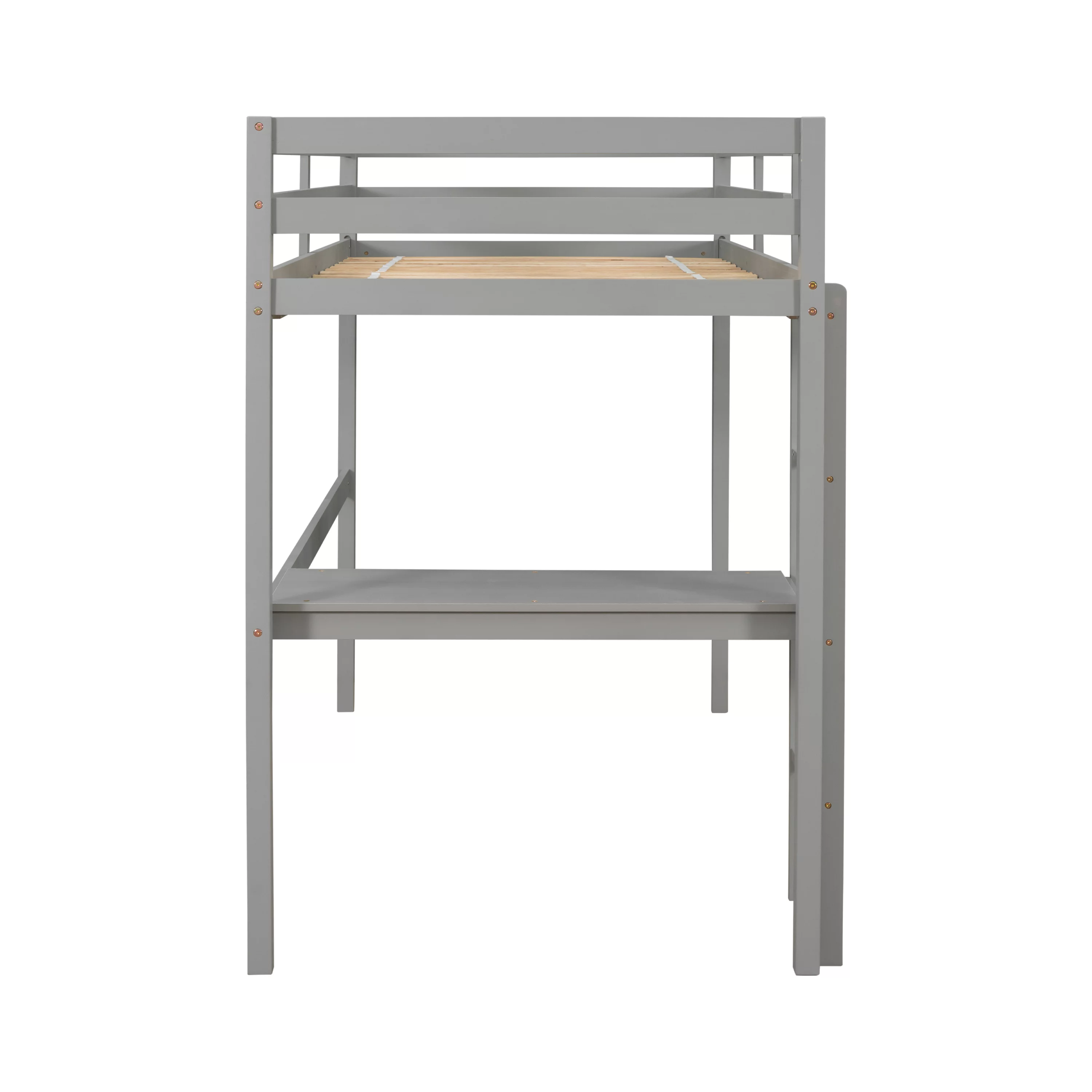 Size Loft Bed With Desk Ad Storage Shelves, Solid Wood Loft Bed Frame With Ladder Ad Guardrail For Kids Tees Adults - Gray