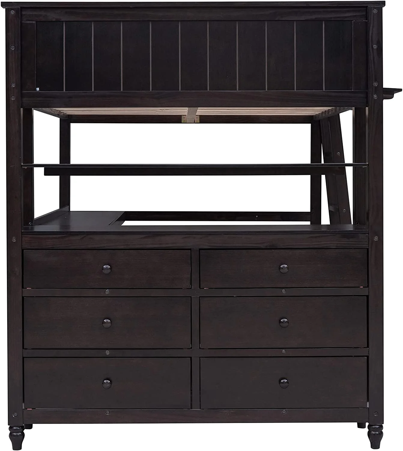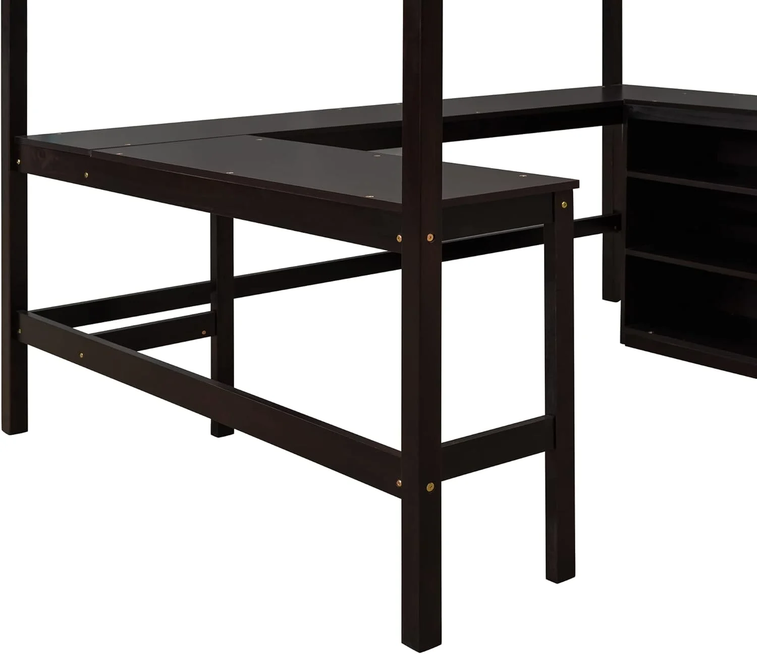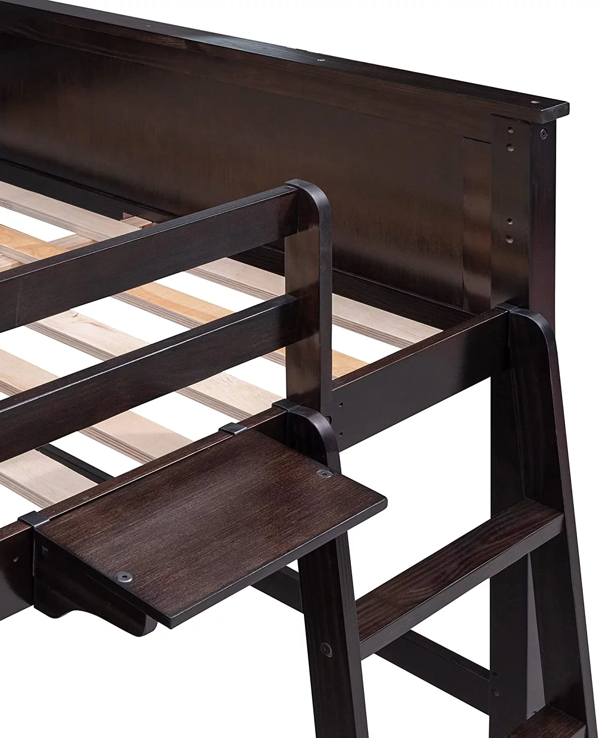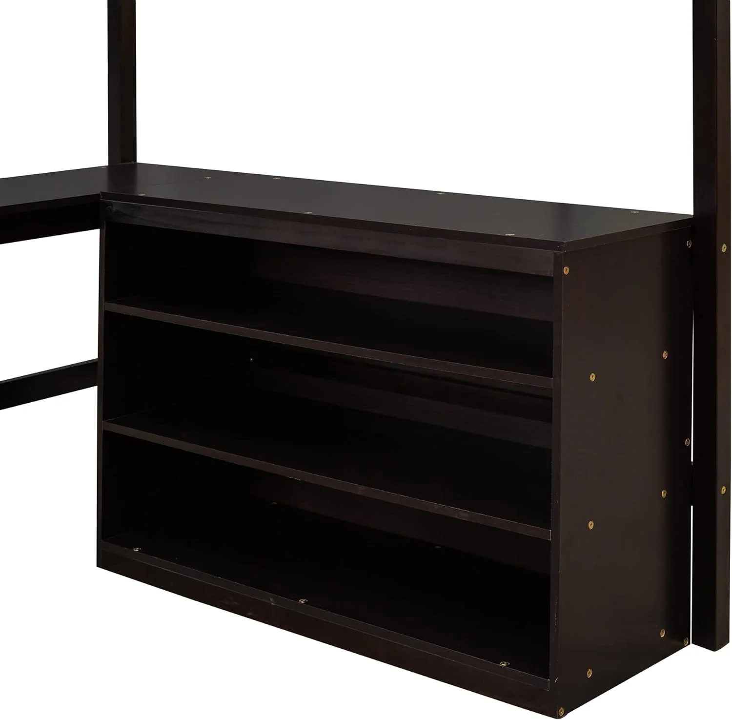 Full Size Loft Bed With Desk Ad Storage, Solid Wood Loft Bed Frame With Drawers Ad Shelves, For Kids Tees Adults - Espresso