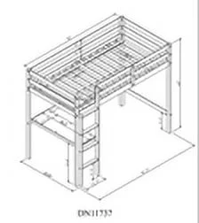 Livspace Metal Loft Bed Frame with Desk, No Box Spring Needed,Twin ,Black