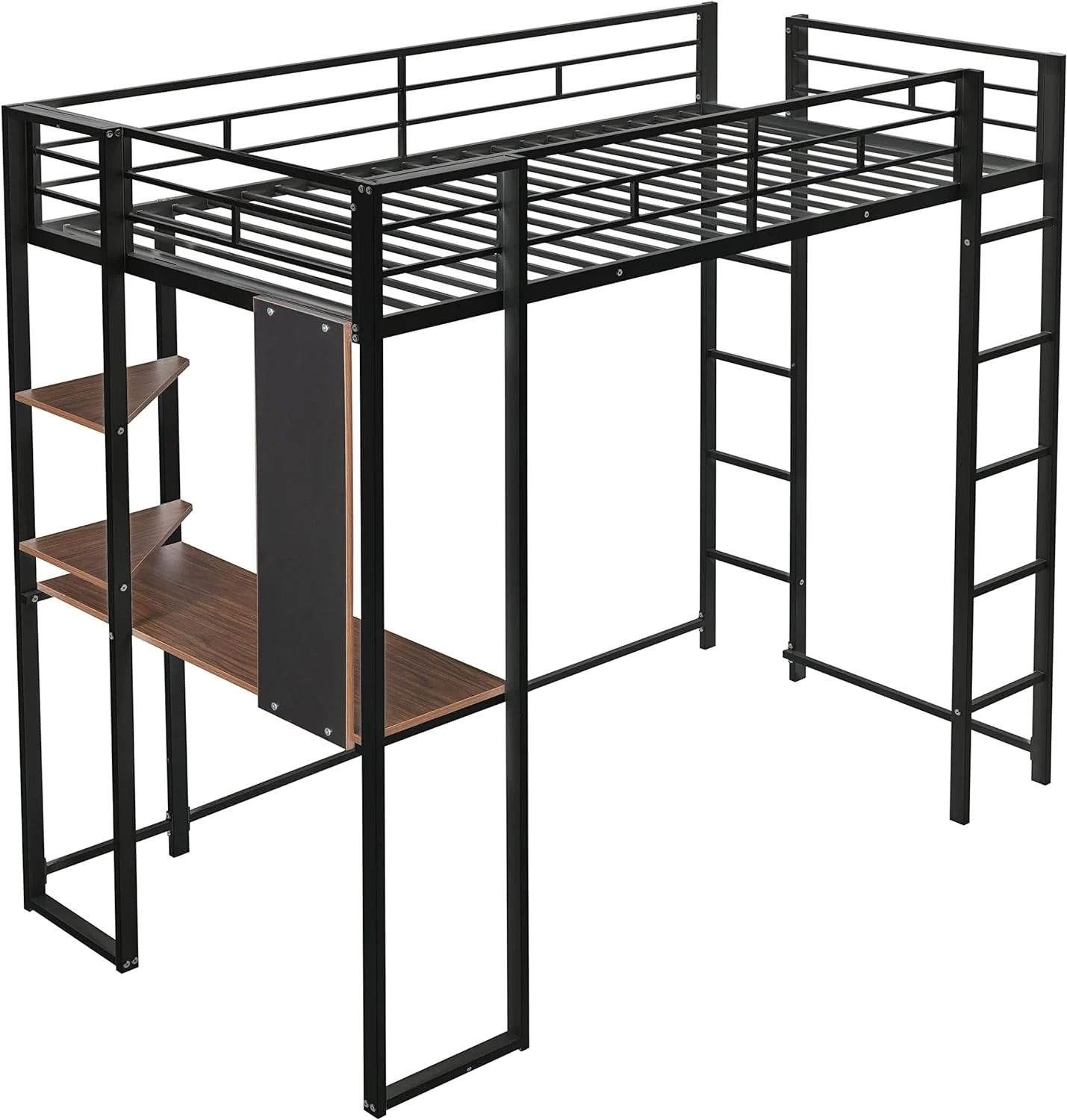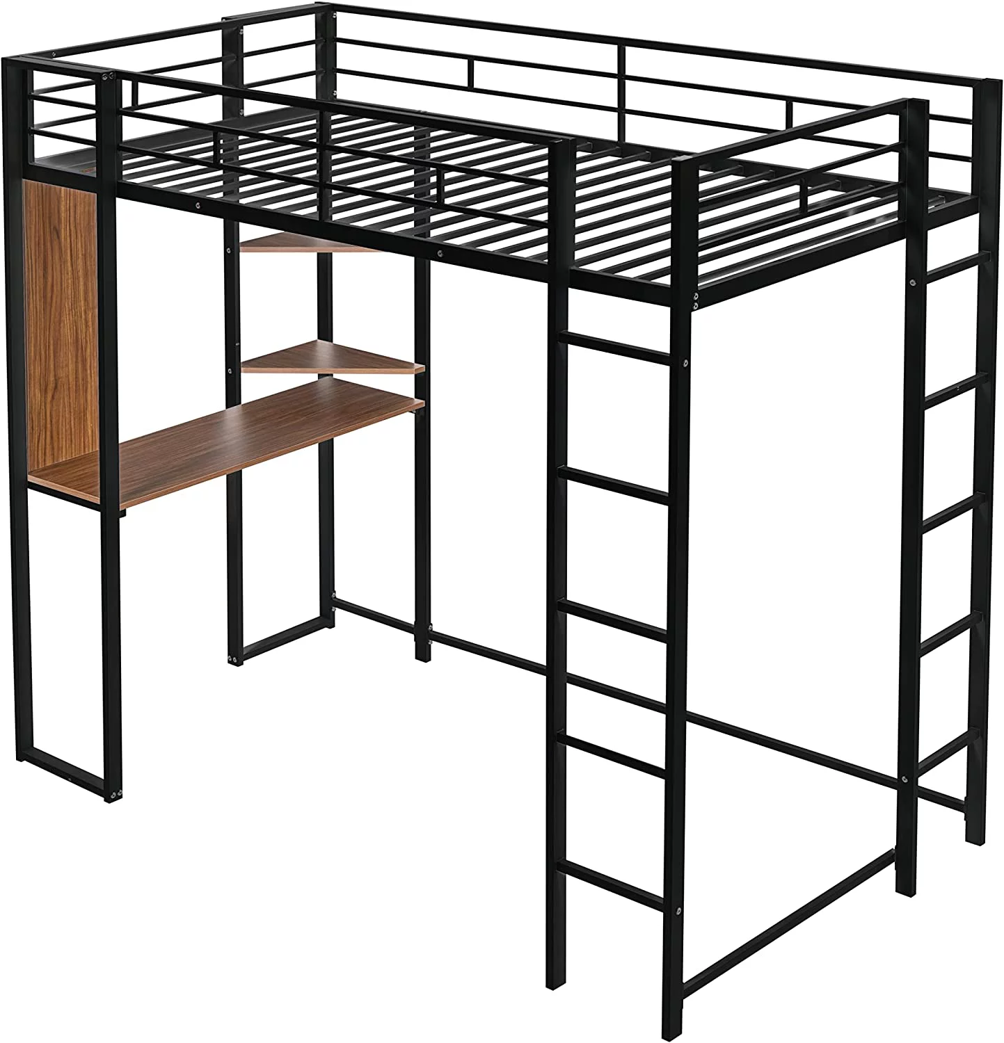 ikayaa Metal Loft Bed Frame with Desk, No Box Spring Needed,Twin ,Black