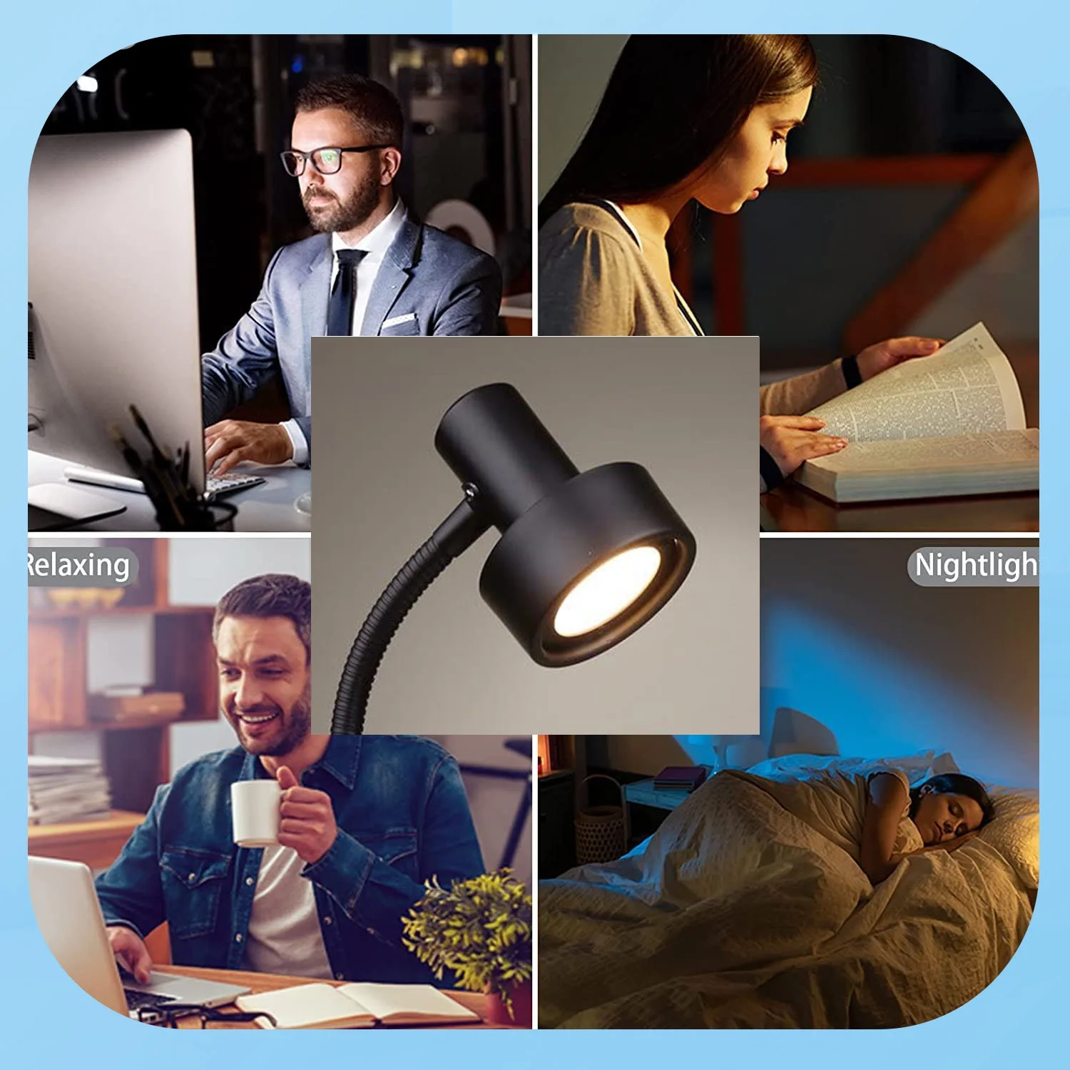 LED headboard/desk clip lamp, dimmable LED table lamp with metal clip, 5W LED, flexible gooseneck, adjustable brightness