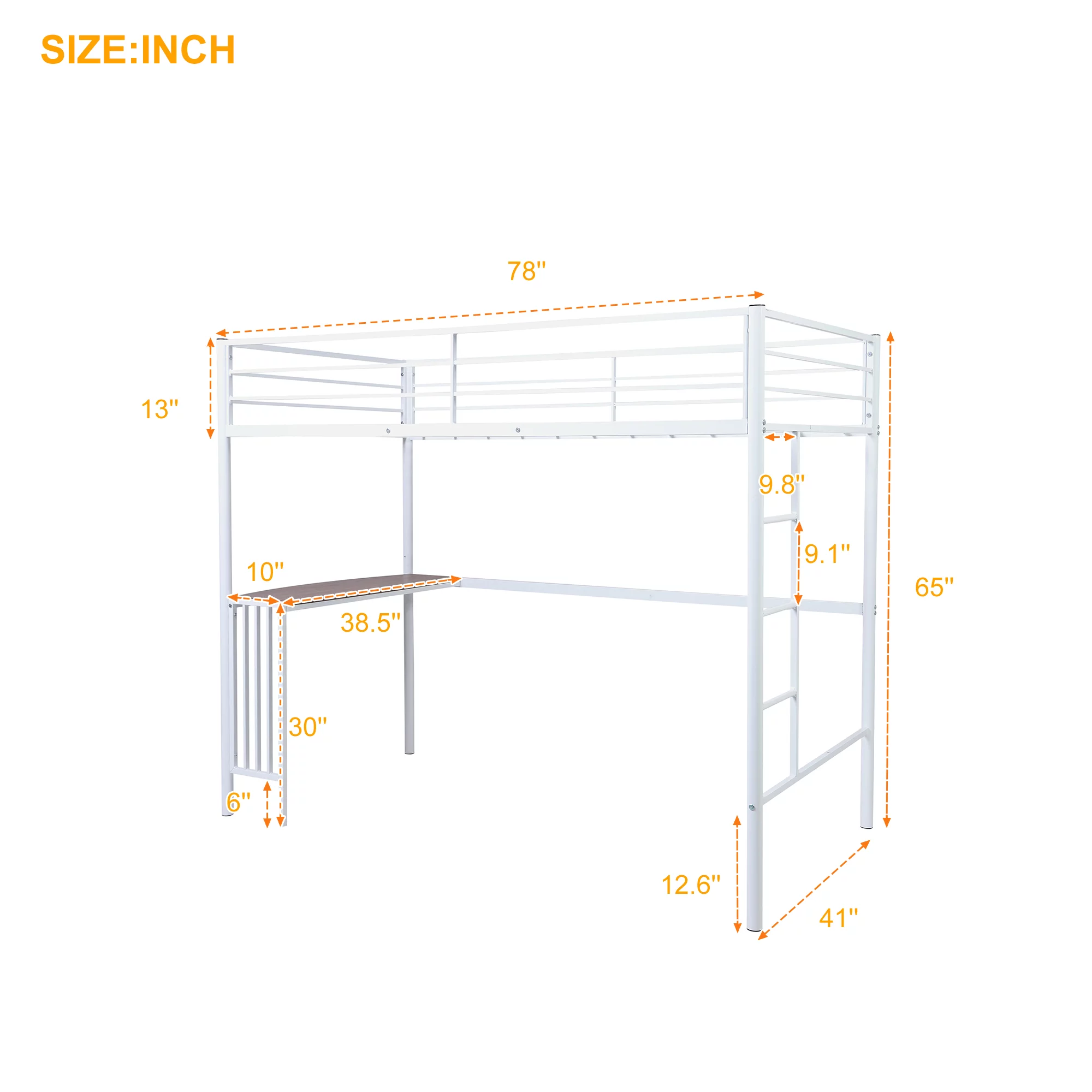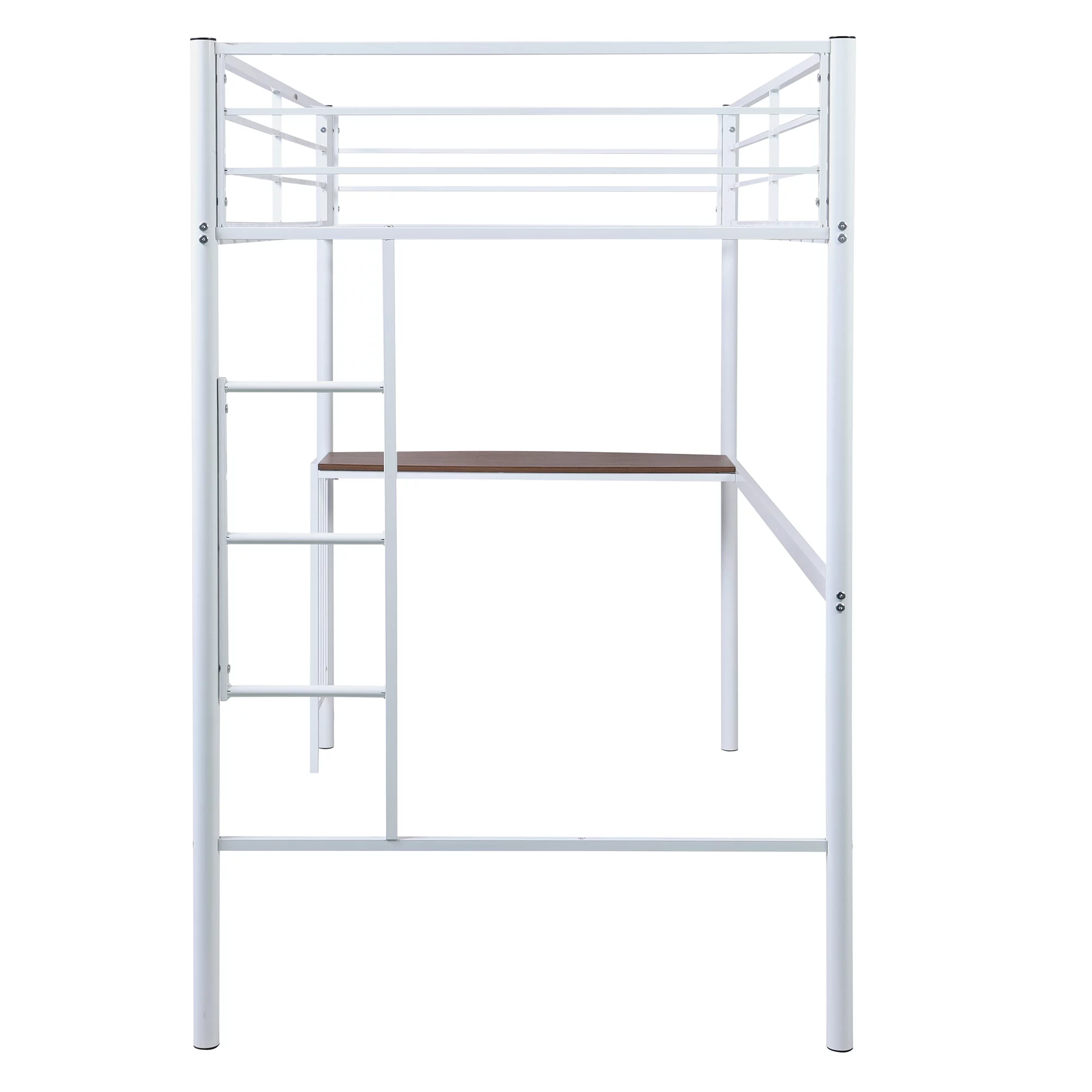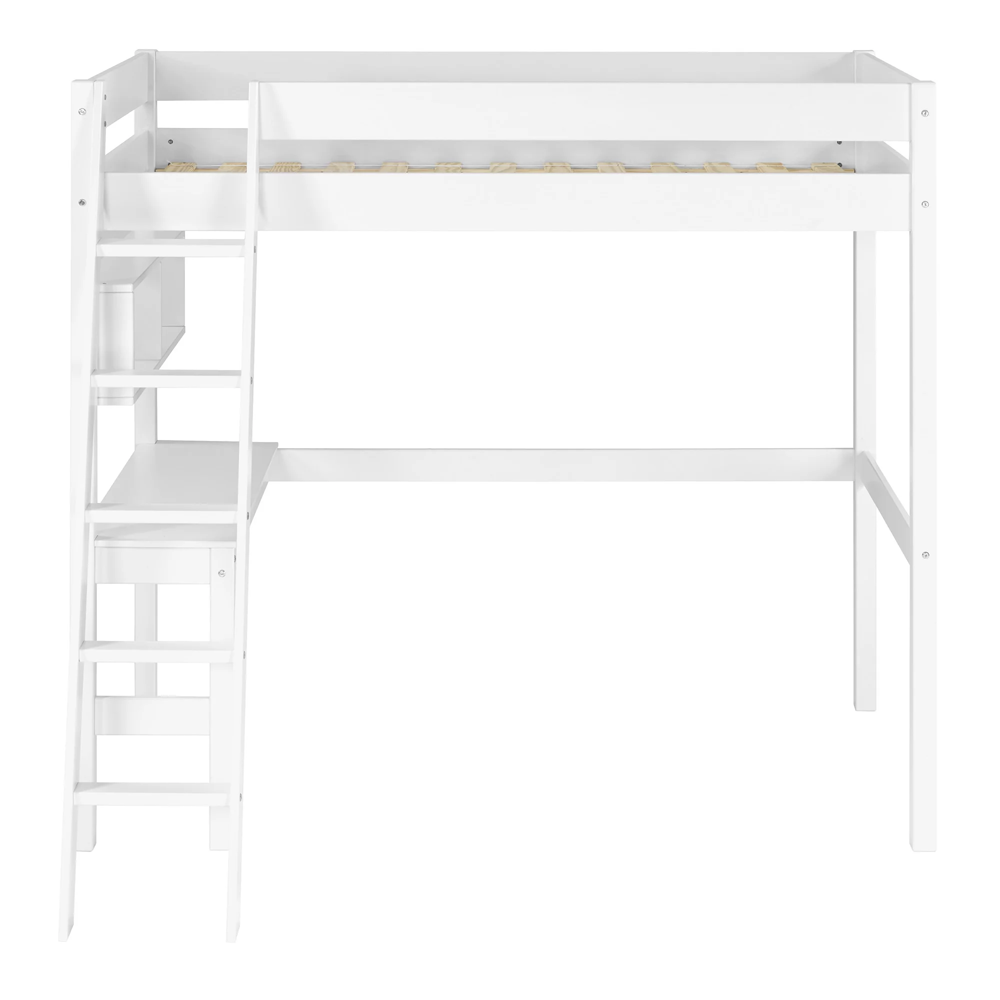 Twin Loft Bunk Bed with Desk White: Kids Loft Bed Wood Bed Frame with Ladder High Loft Beds for Teens