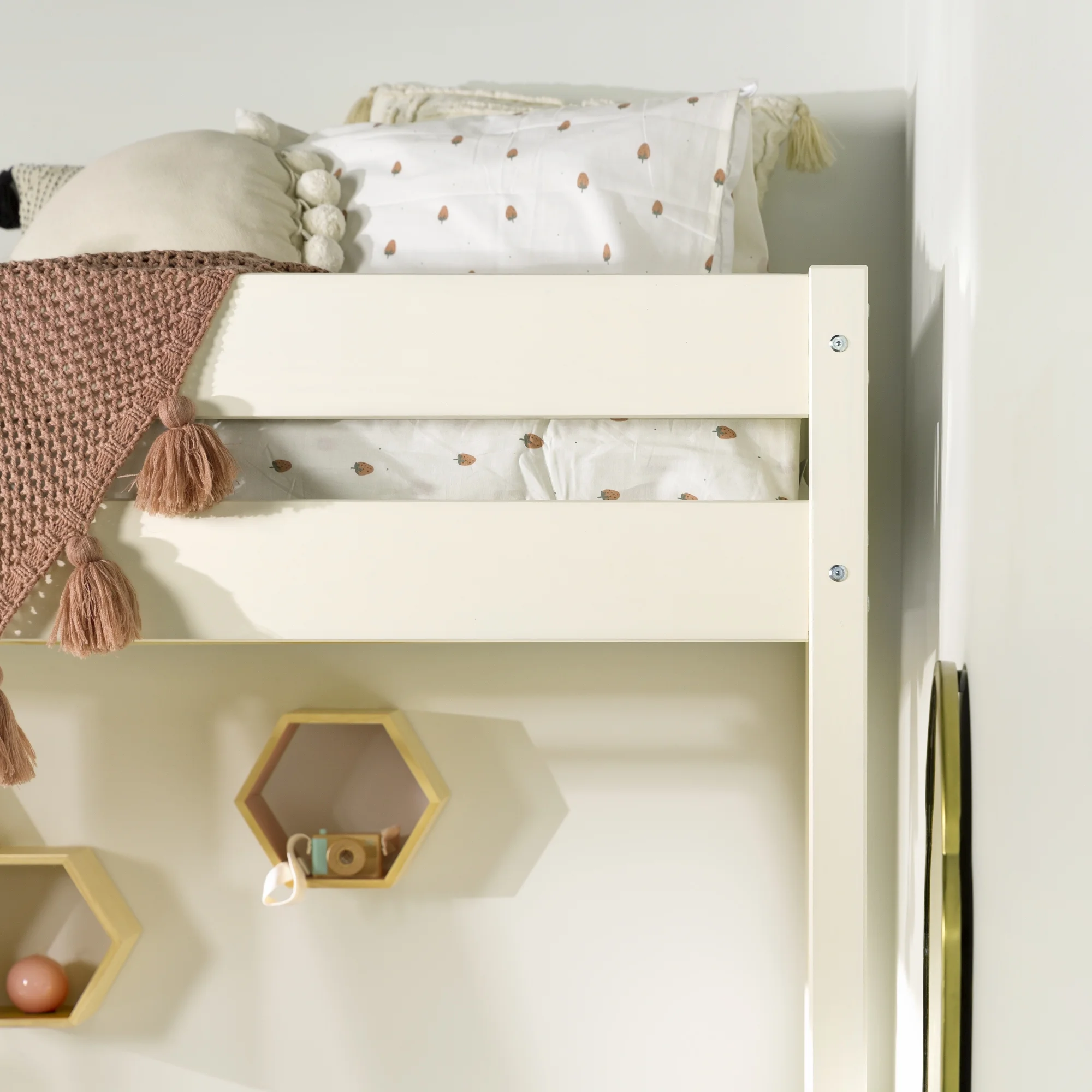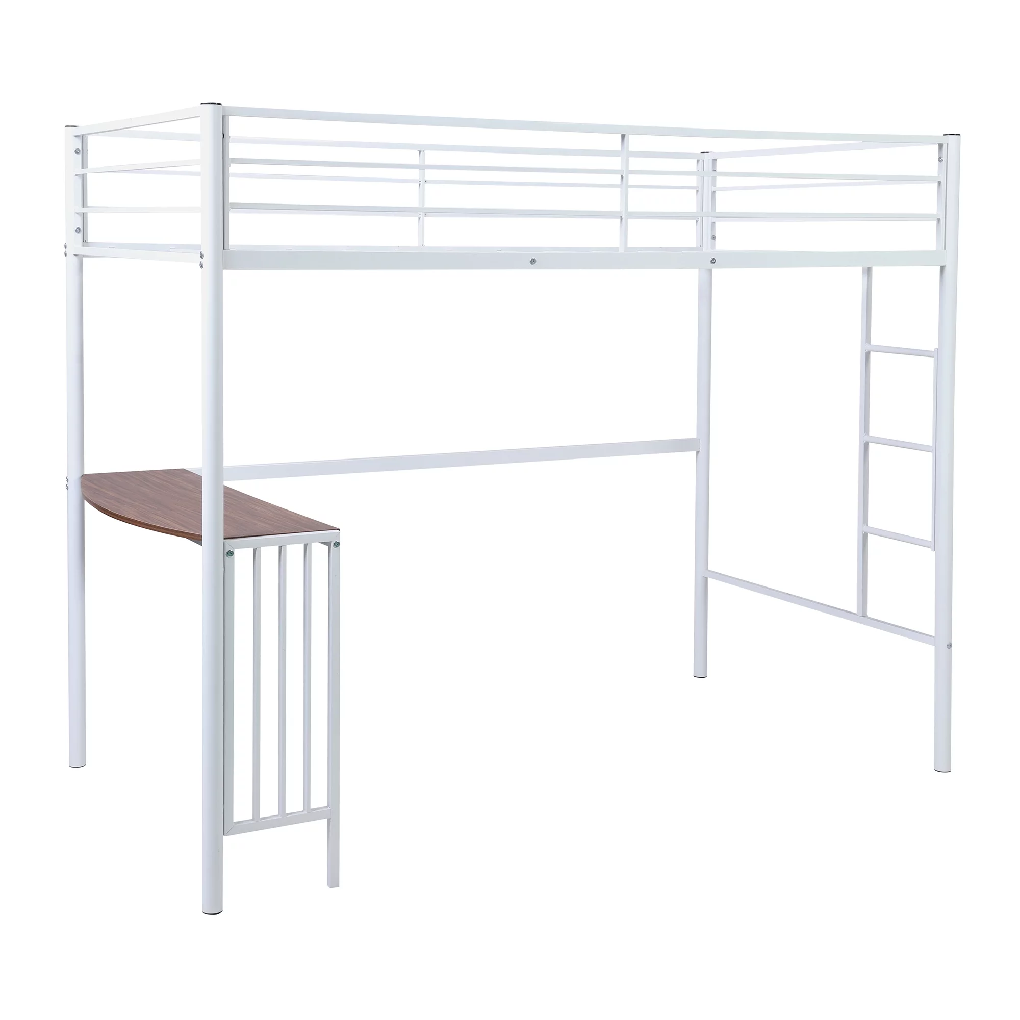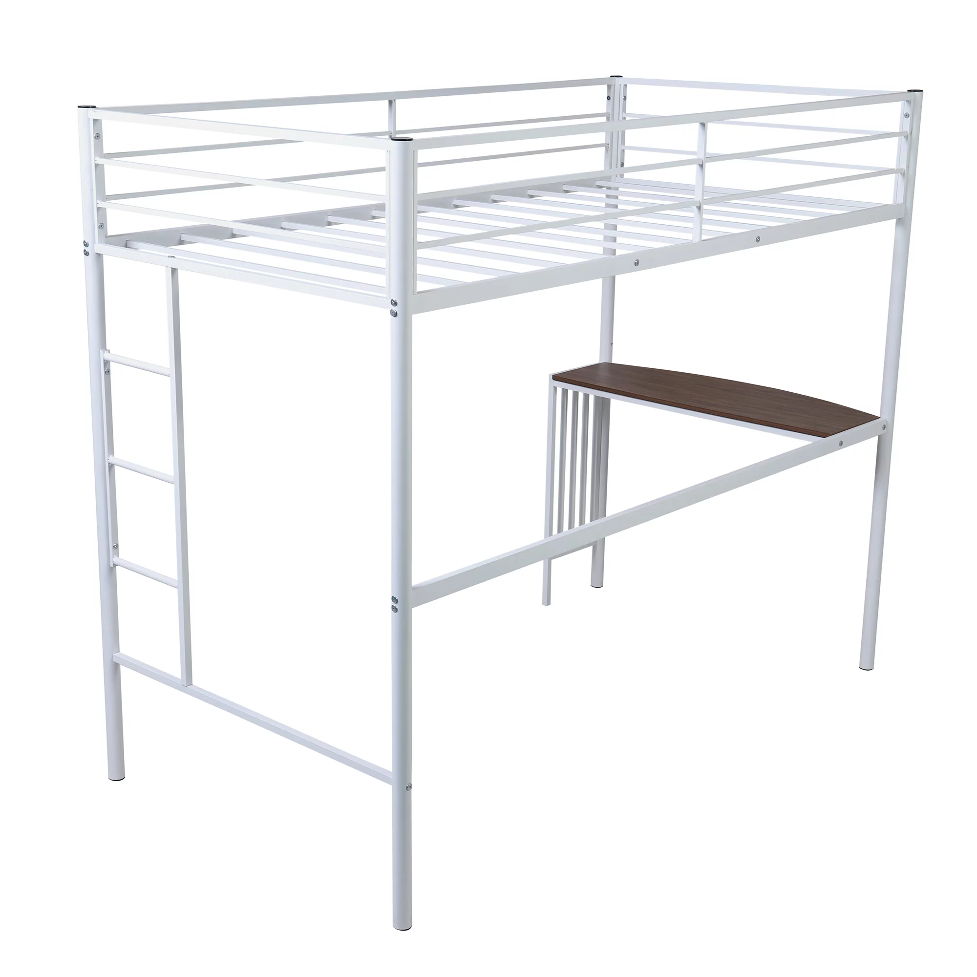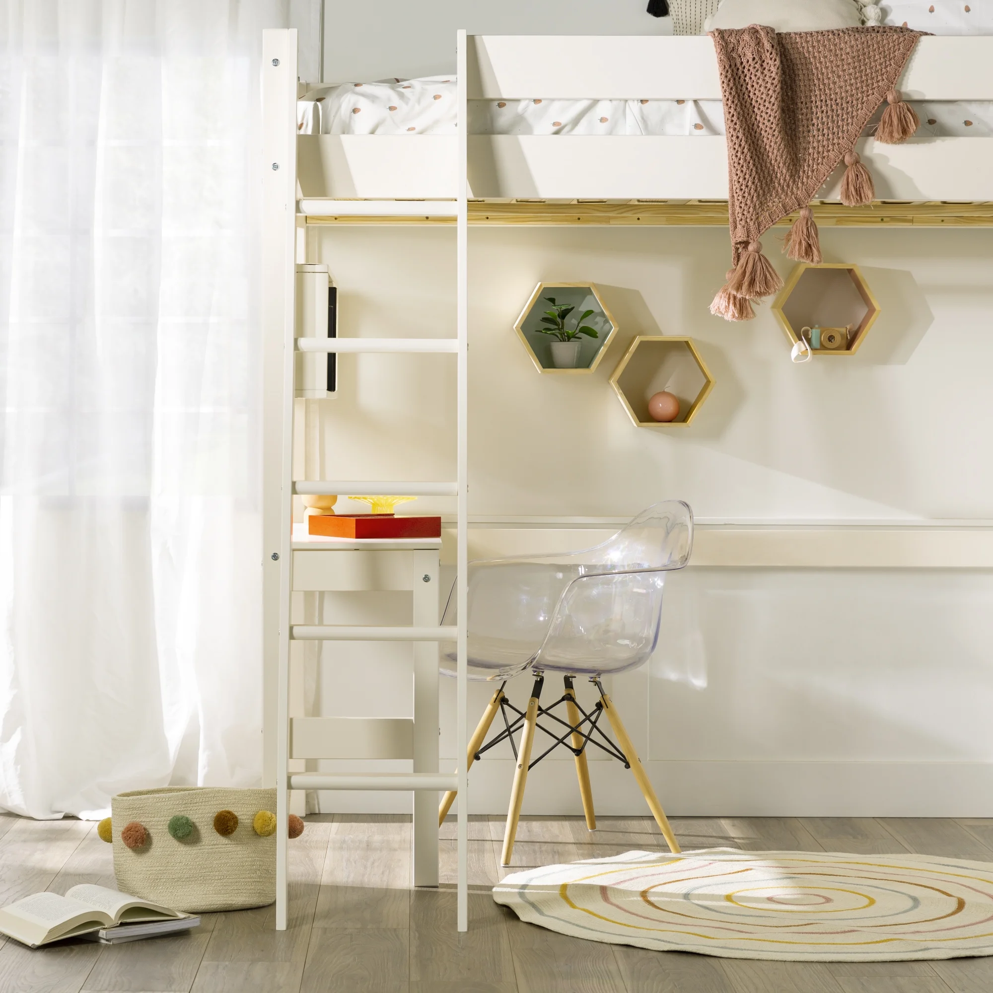 Twin Loft Bunk Bed with Desk White: Kids Loft Bed Wood Bed Frame with Ladder High Loft Beds for Teens