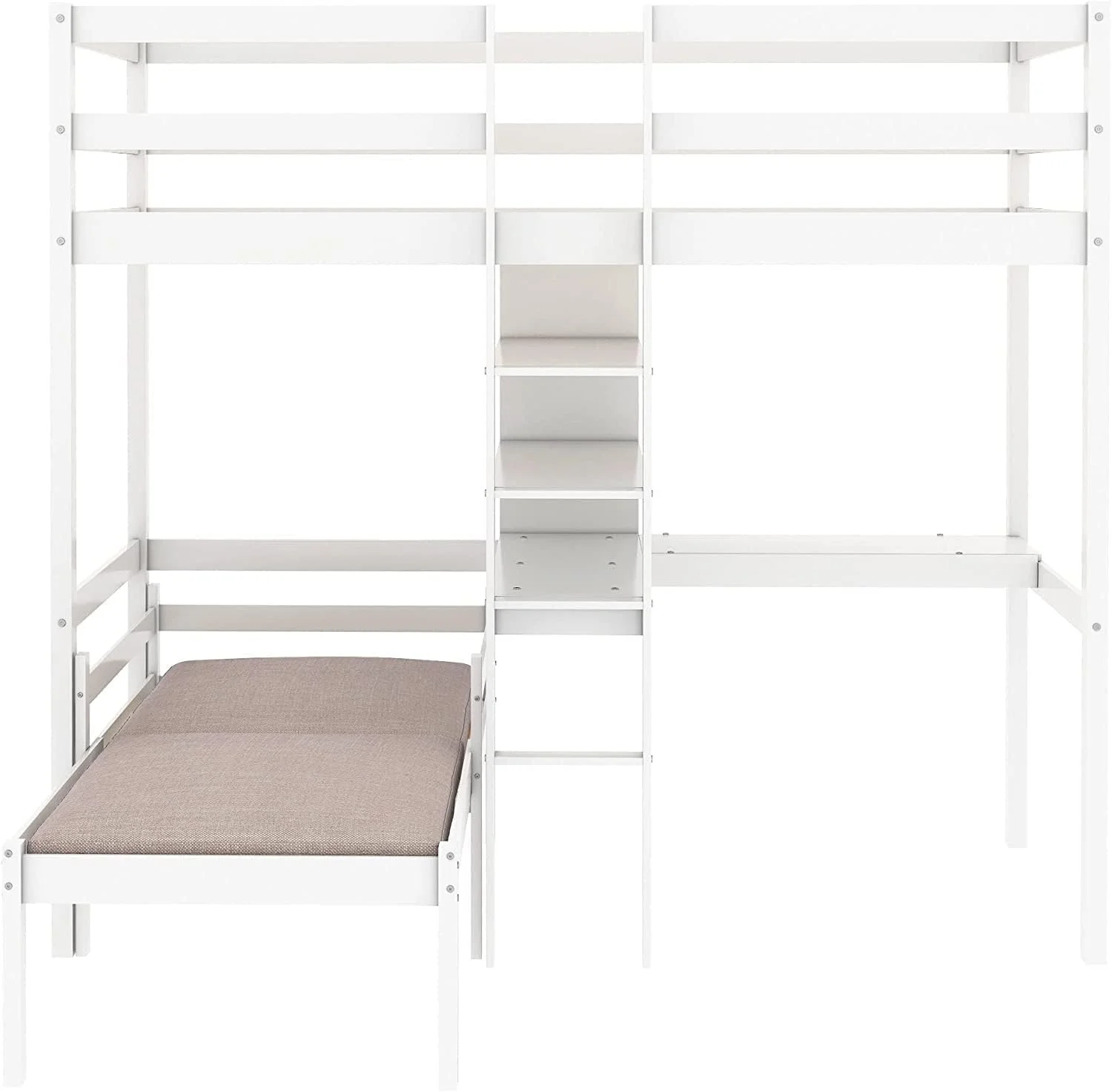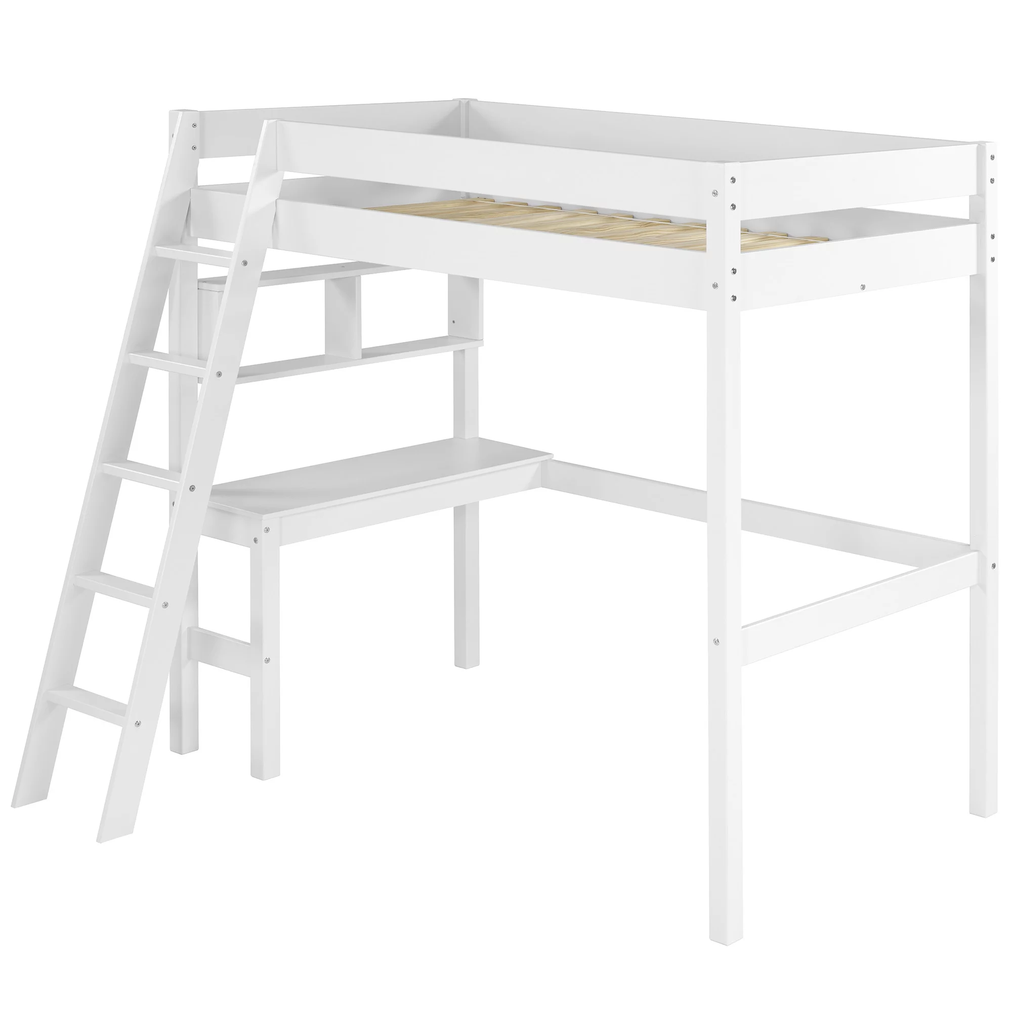 Euroco Twin Size Loft Bed with Built-in Desk and Shelves for Kids Teens Adults, White