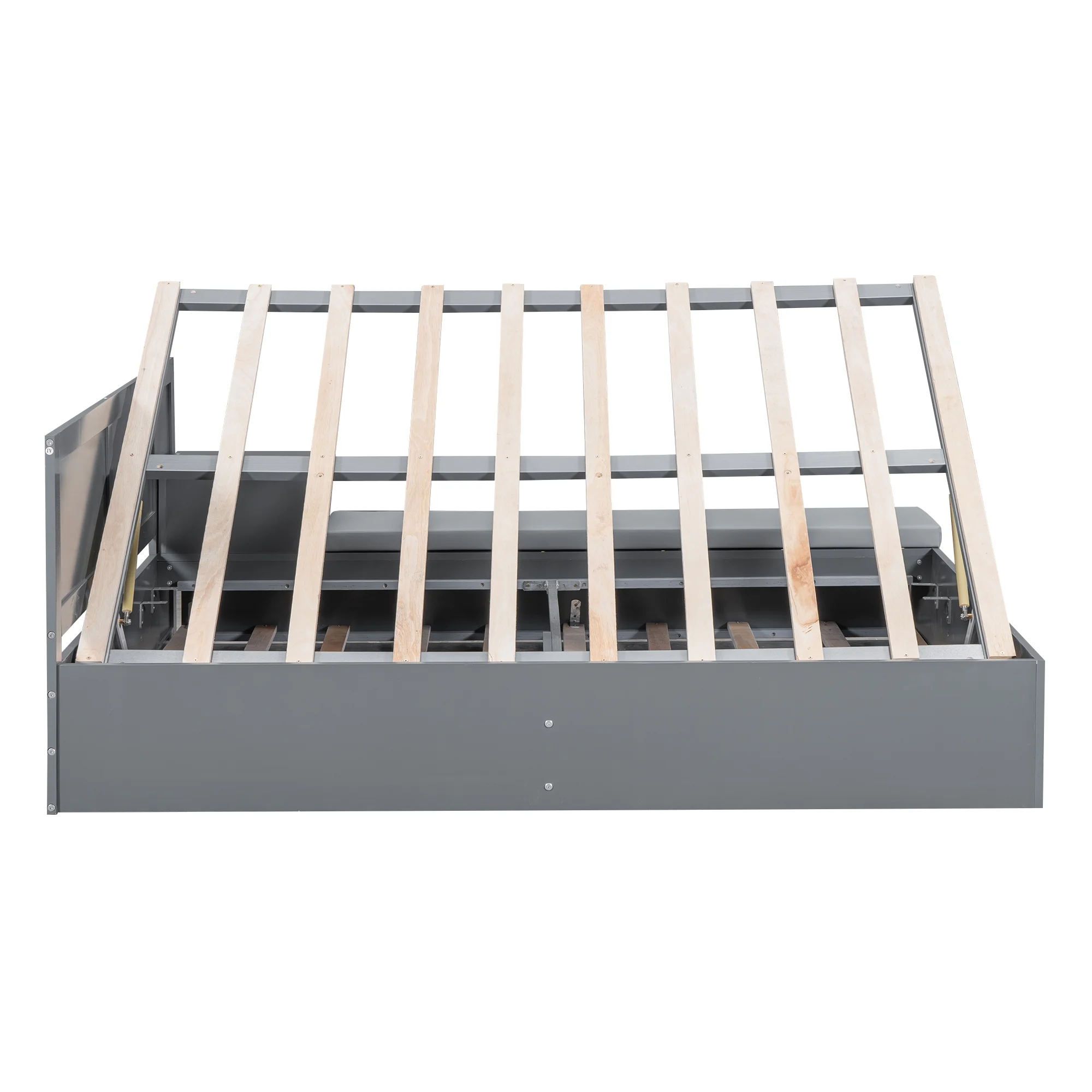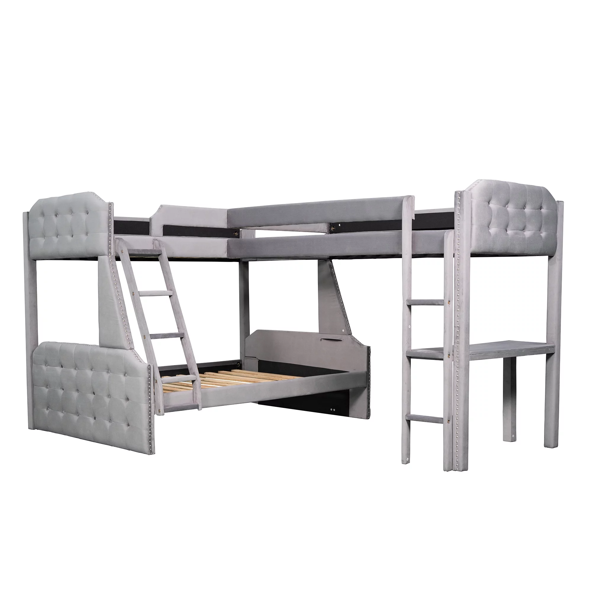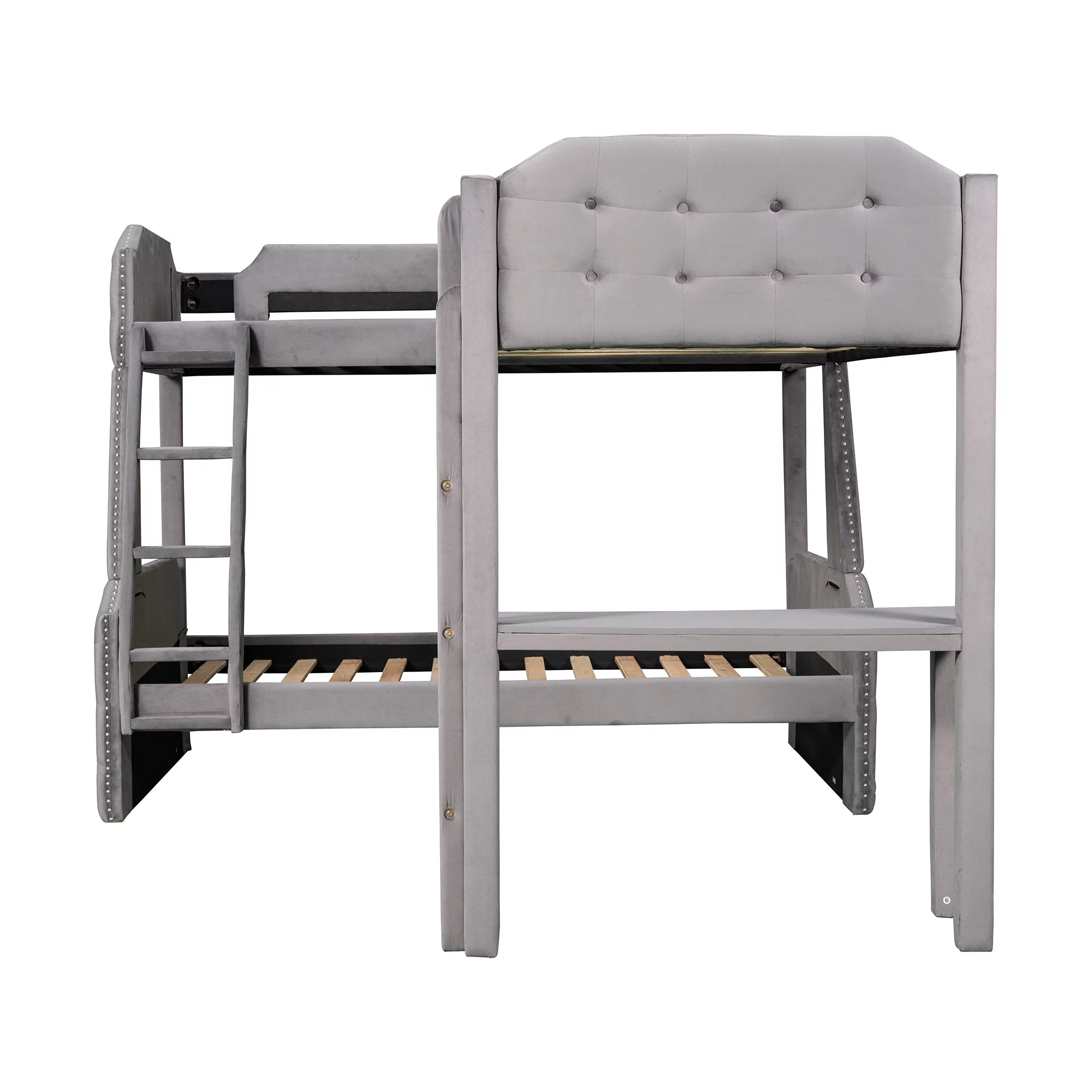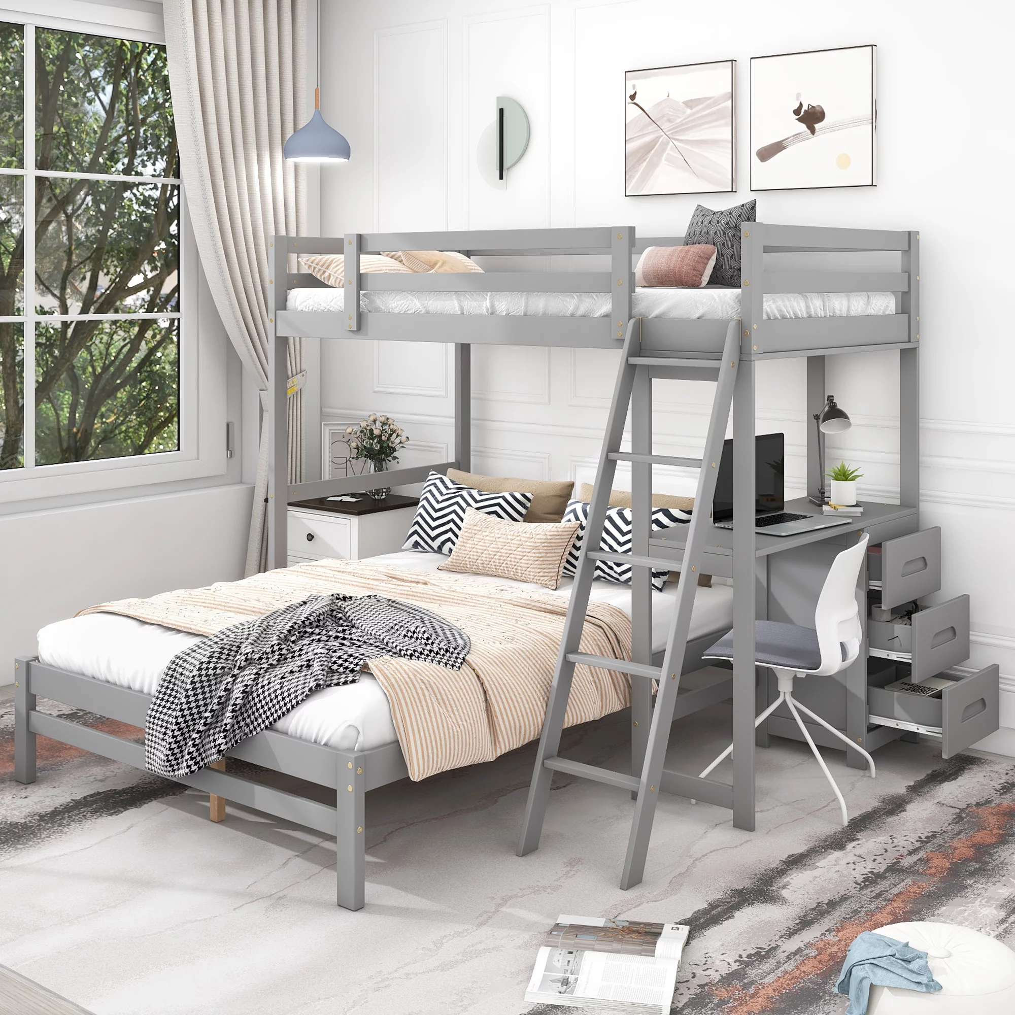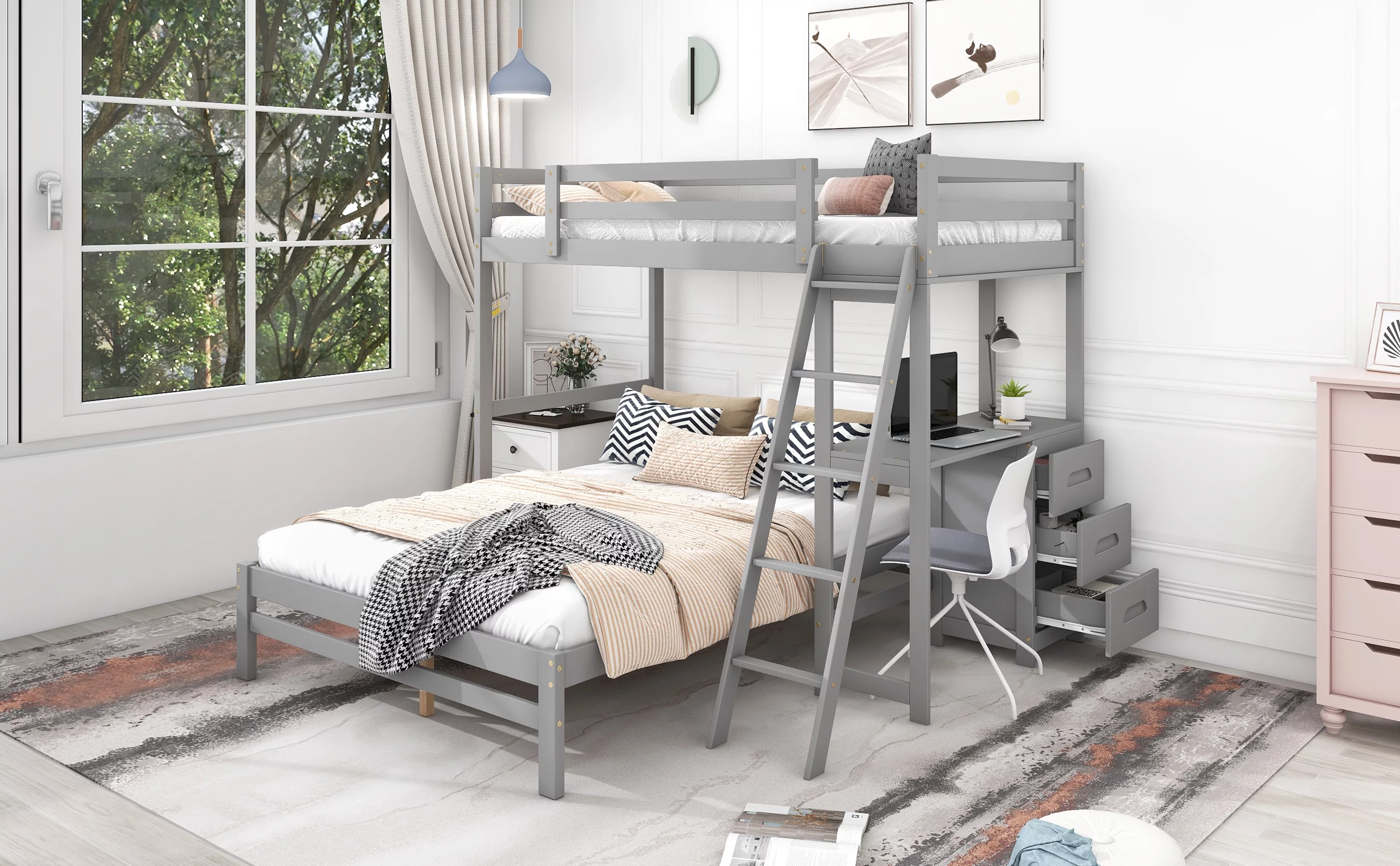 EUROCO Twin over Full Bunk Bed with Desk and Drawers for Kids Room, Gray