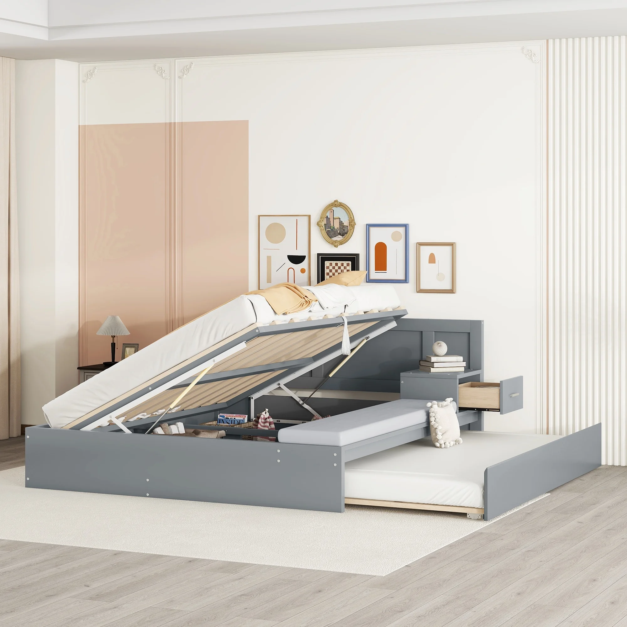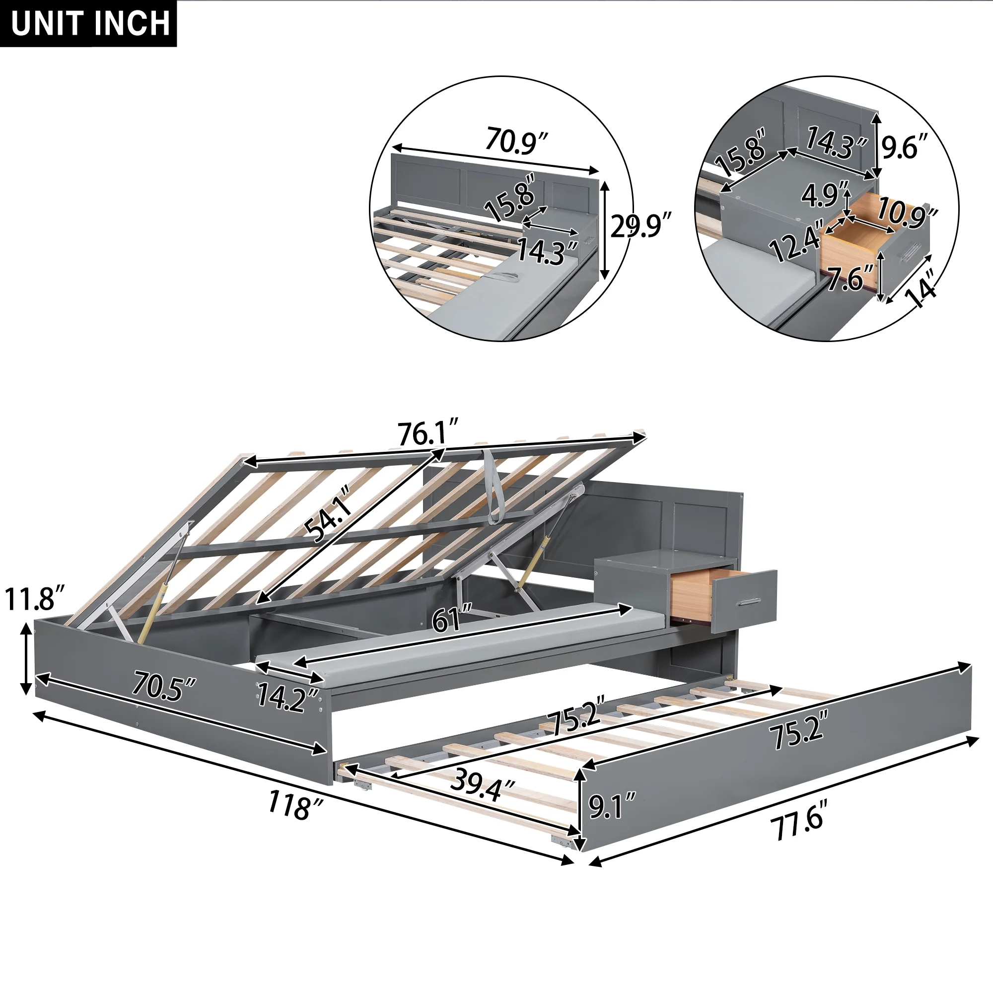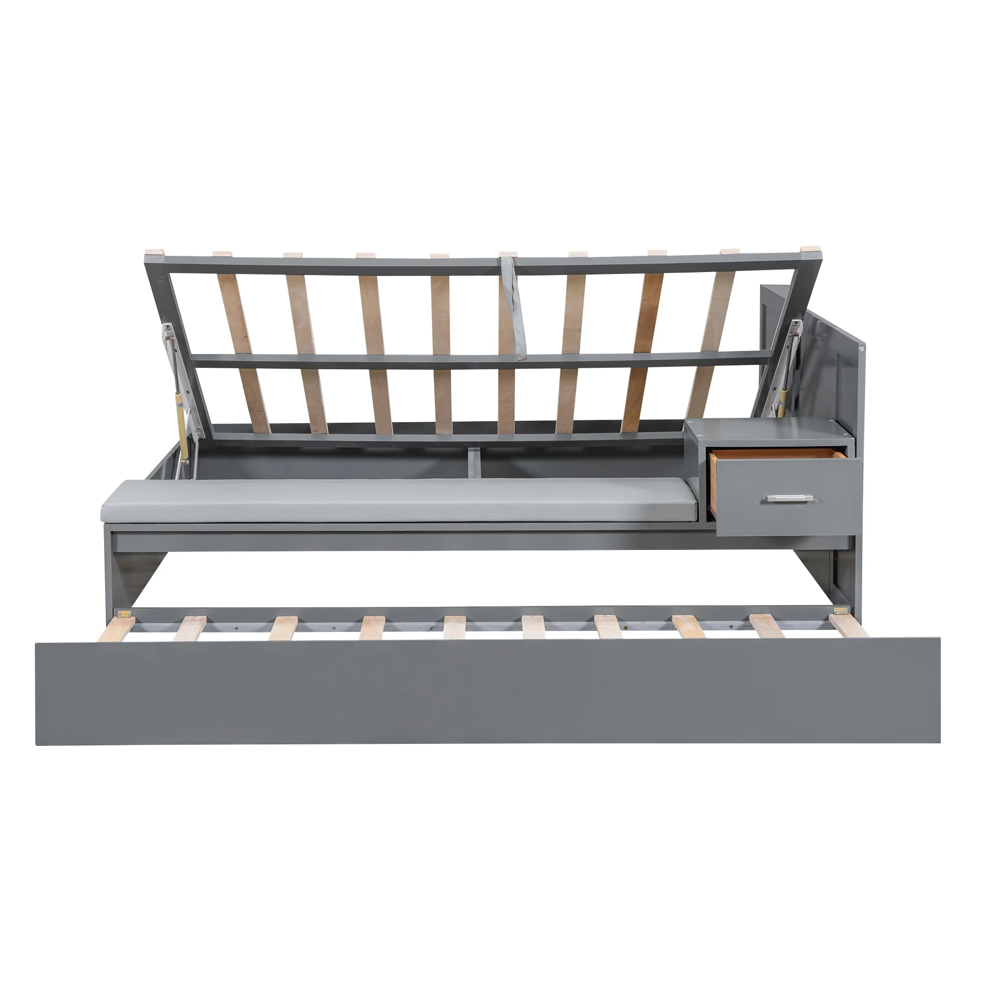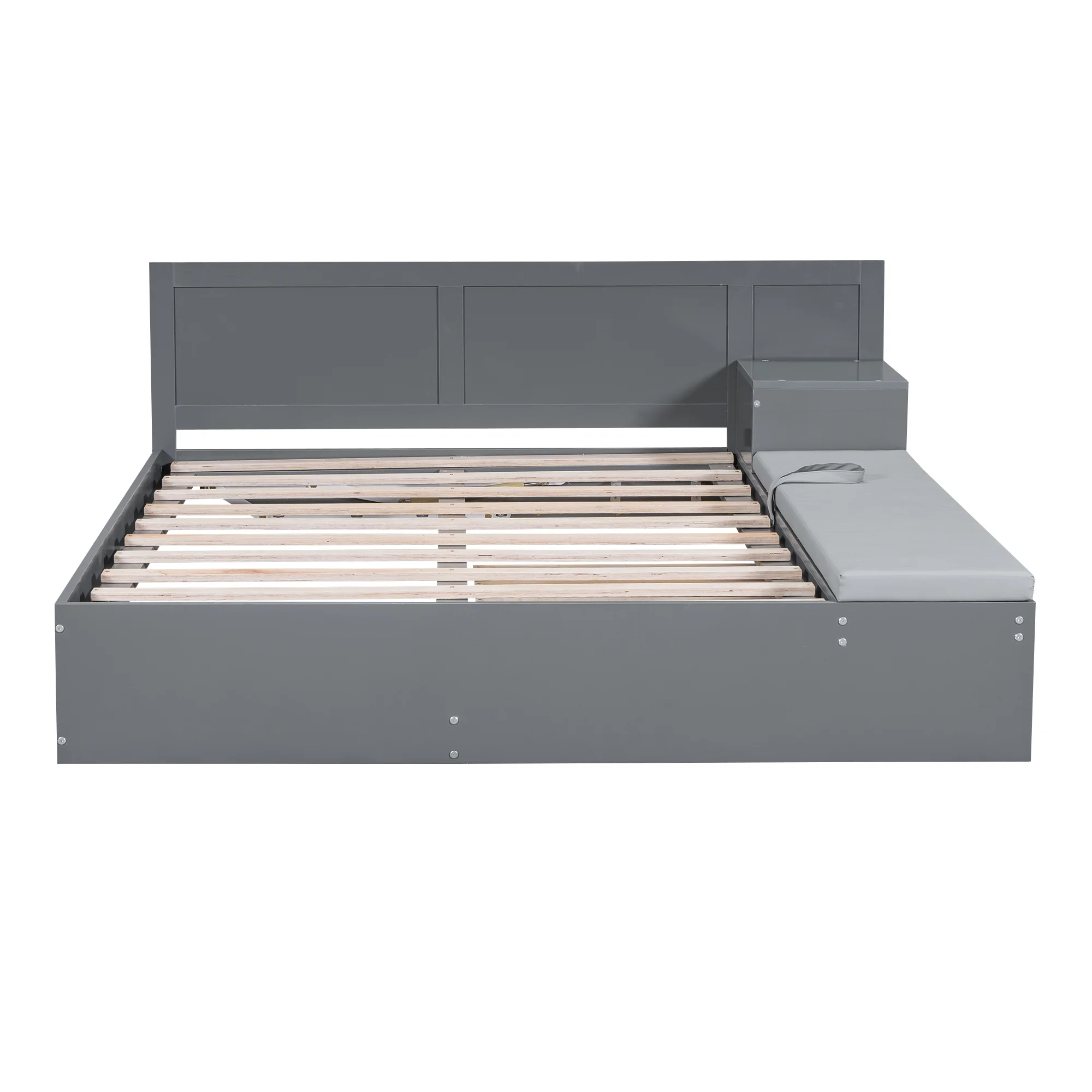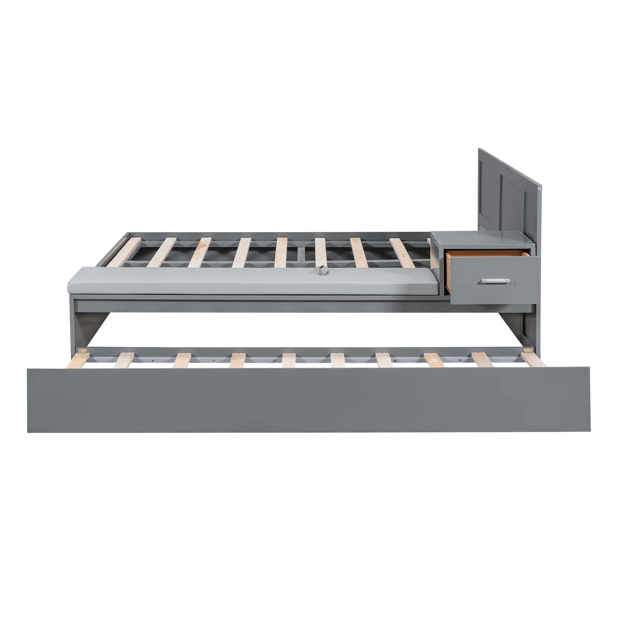 EUROCO Twin over Full Bunk Bed with Desk and Drawers for Kids Room, Gray