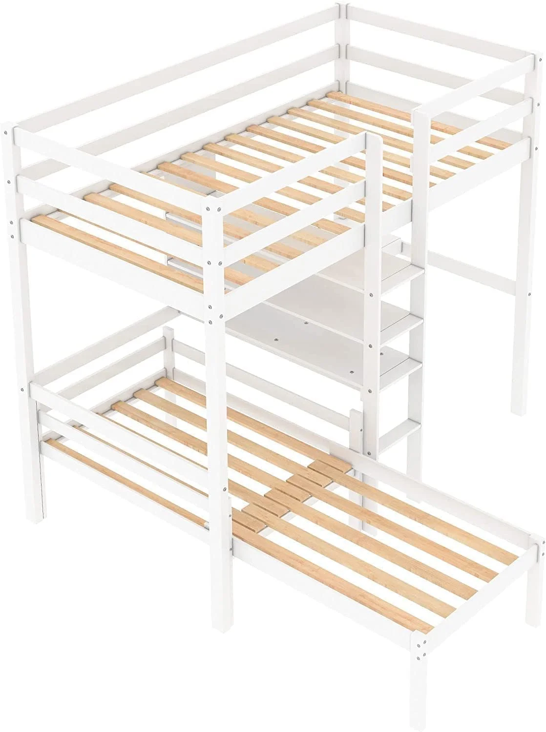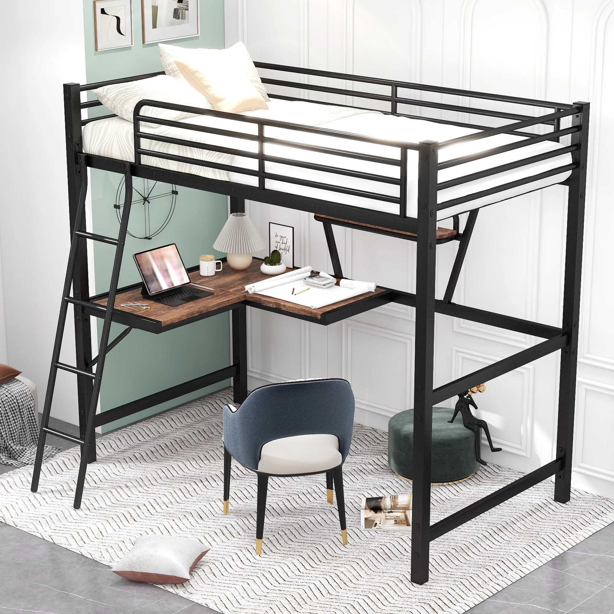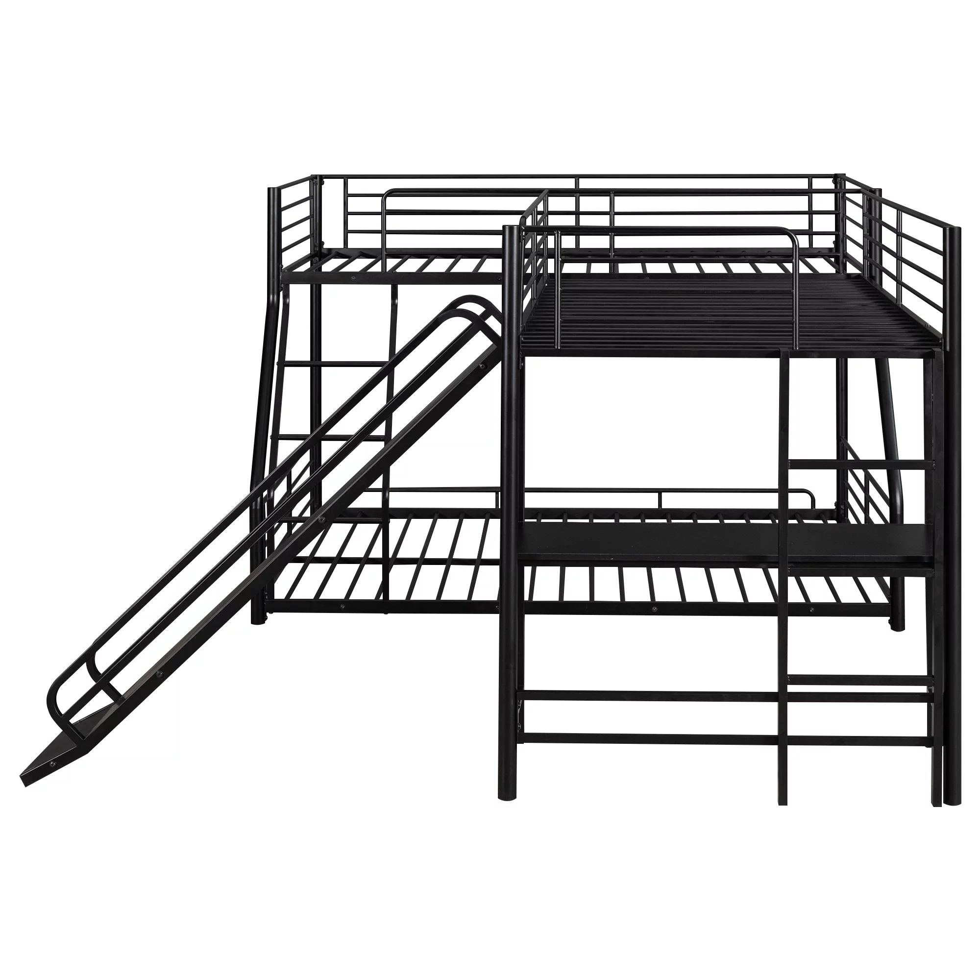 Euroco Metal L-Shaped Twin over Full Bunk and Twin Loft Bed with Desk and Slide for Kids Teens Adults, 3 Beds in 1, Black
