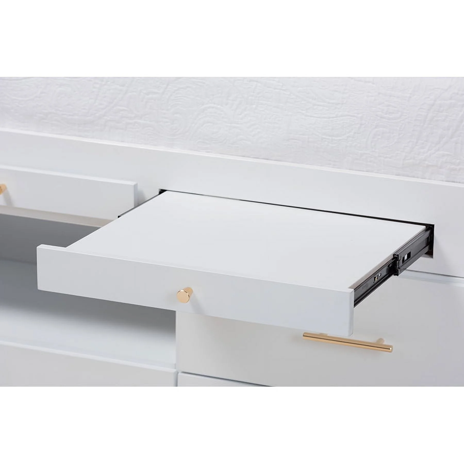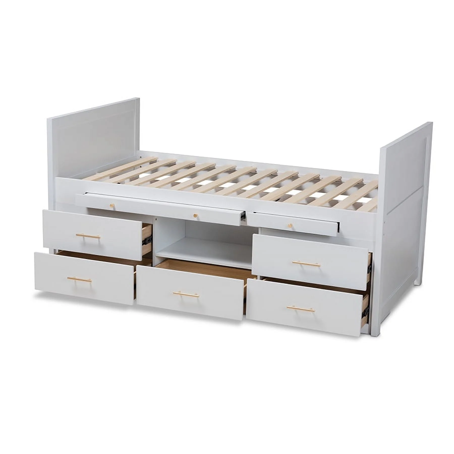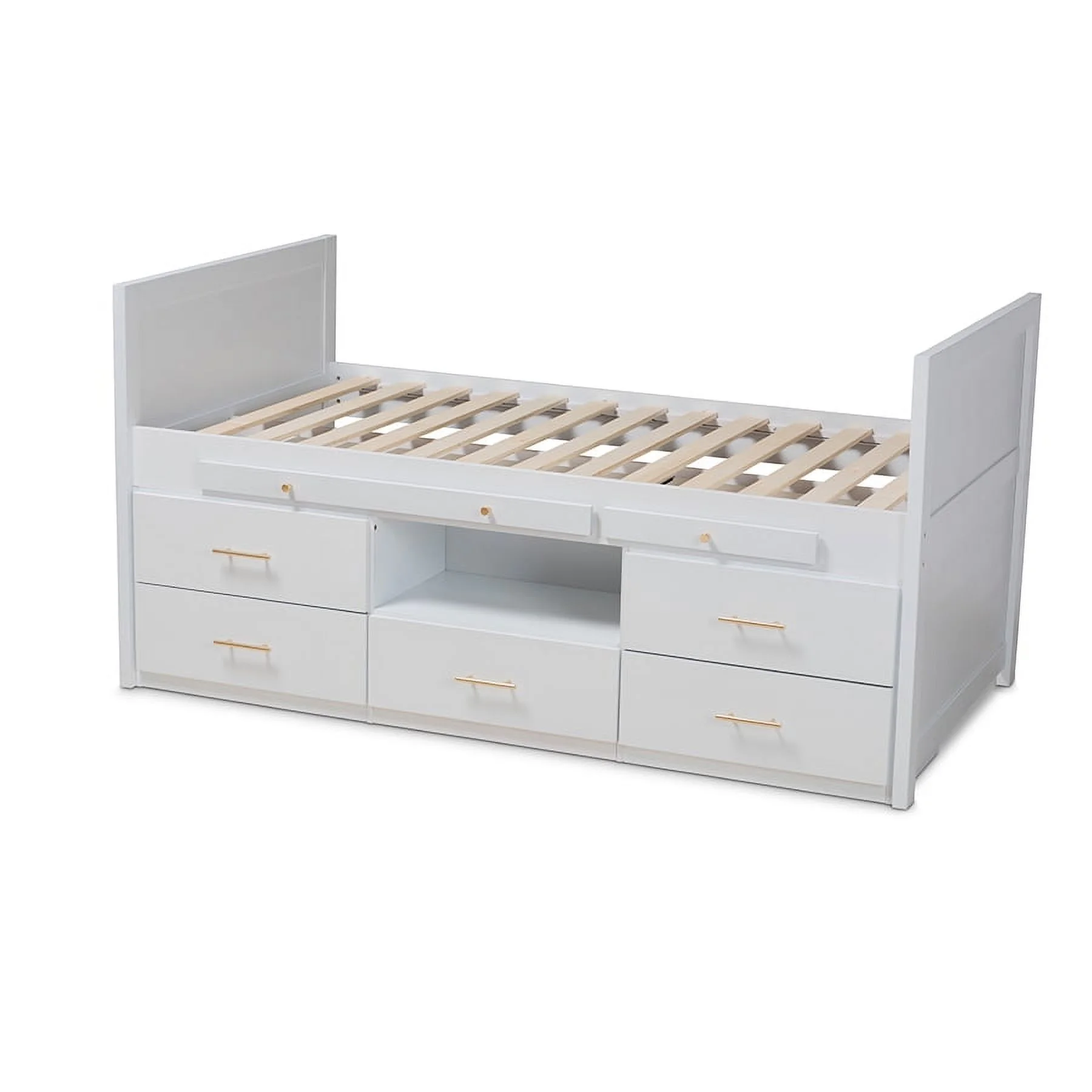 Baxton Studio Mirza Modern and Contemporary White Finished Wood 5-Drawer Twin Size Storage Bed with Pull-Out Desk
