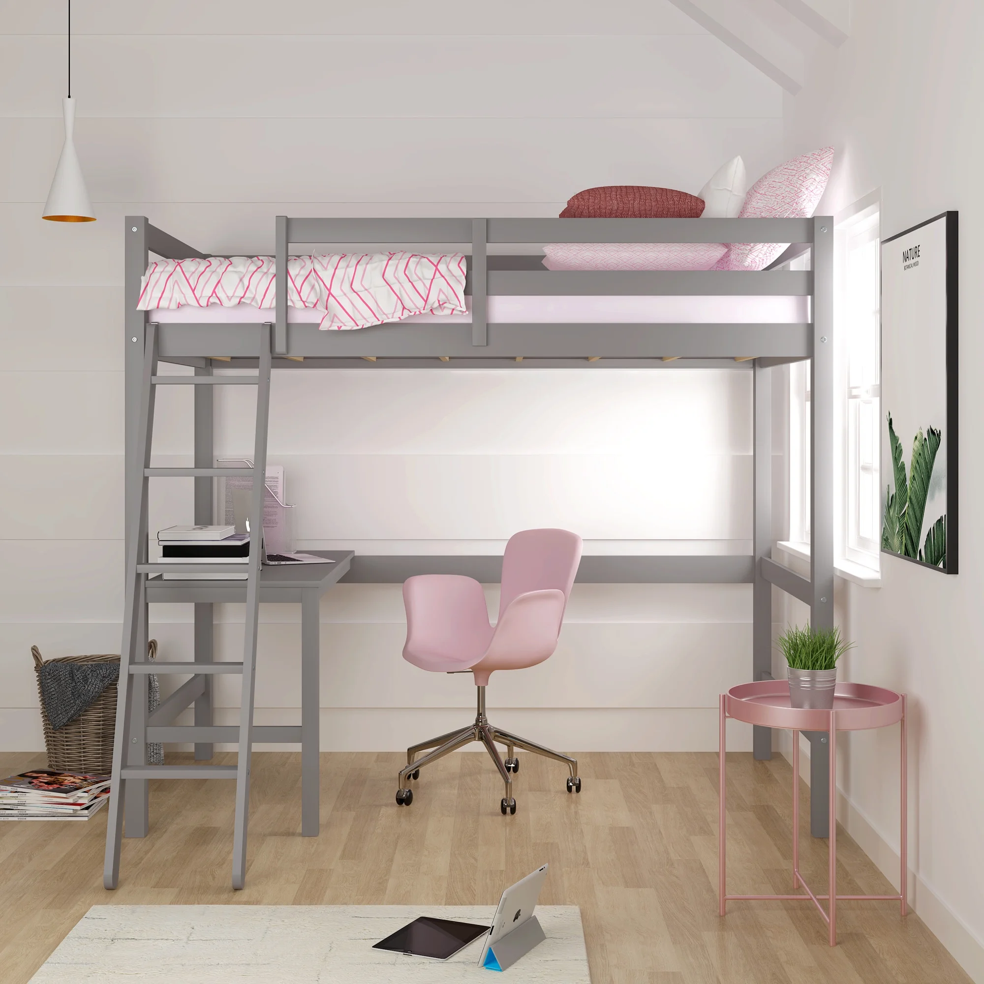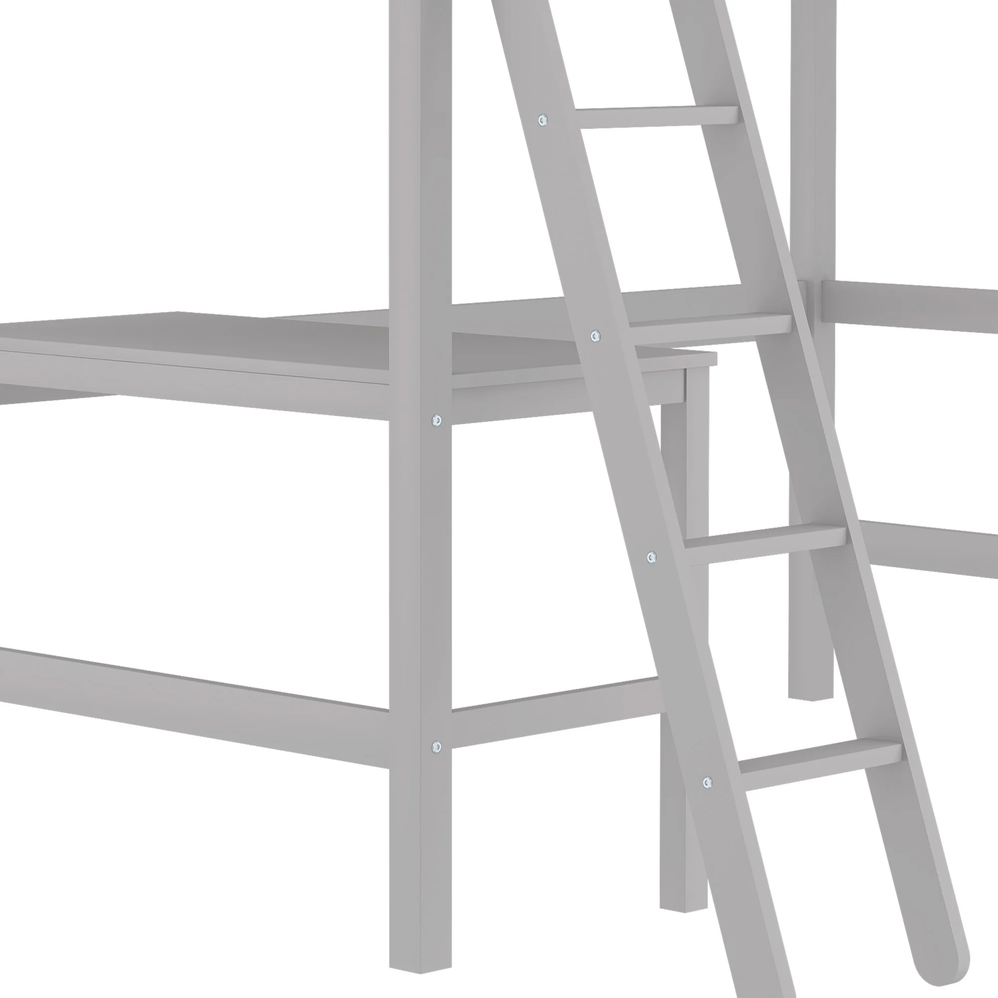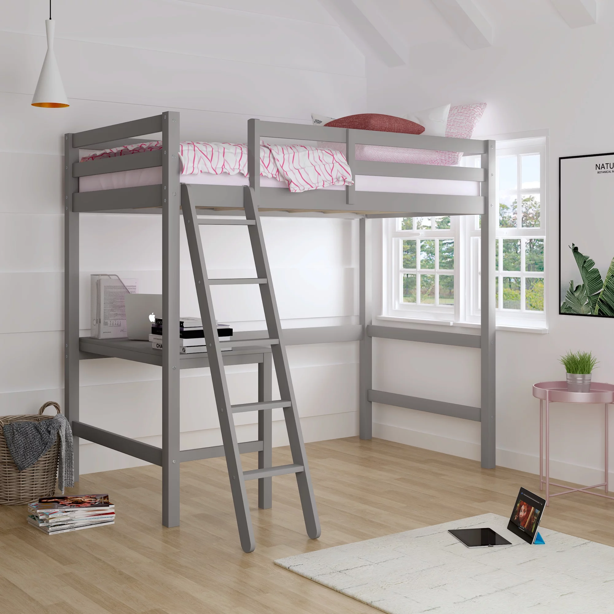 Living Essentials by Hillsdale Alexis Wood Arch Twin Loft Bed with Desk, Gray
