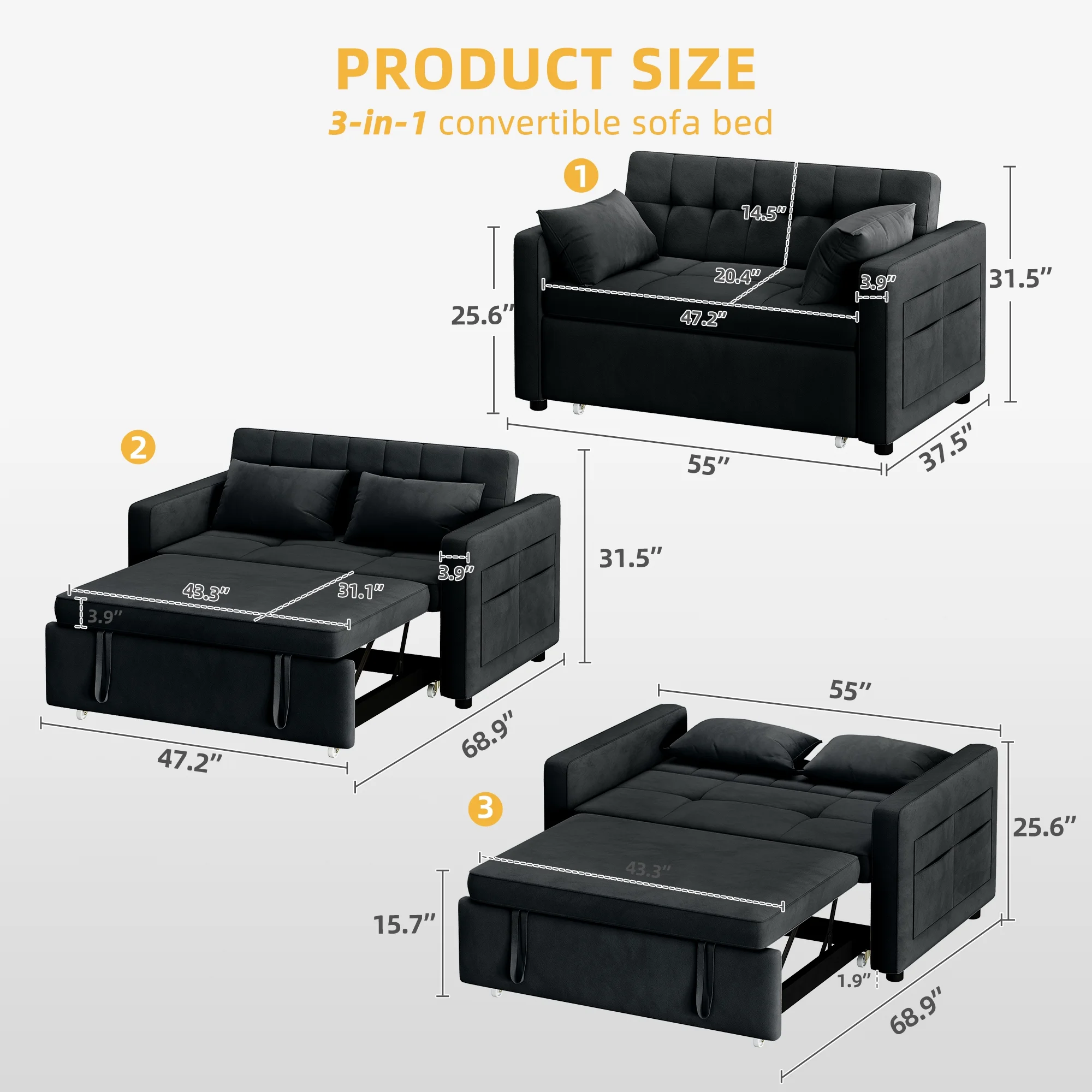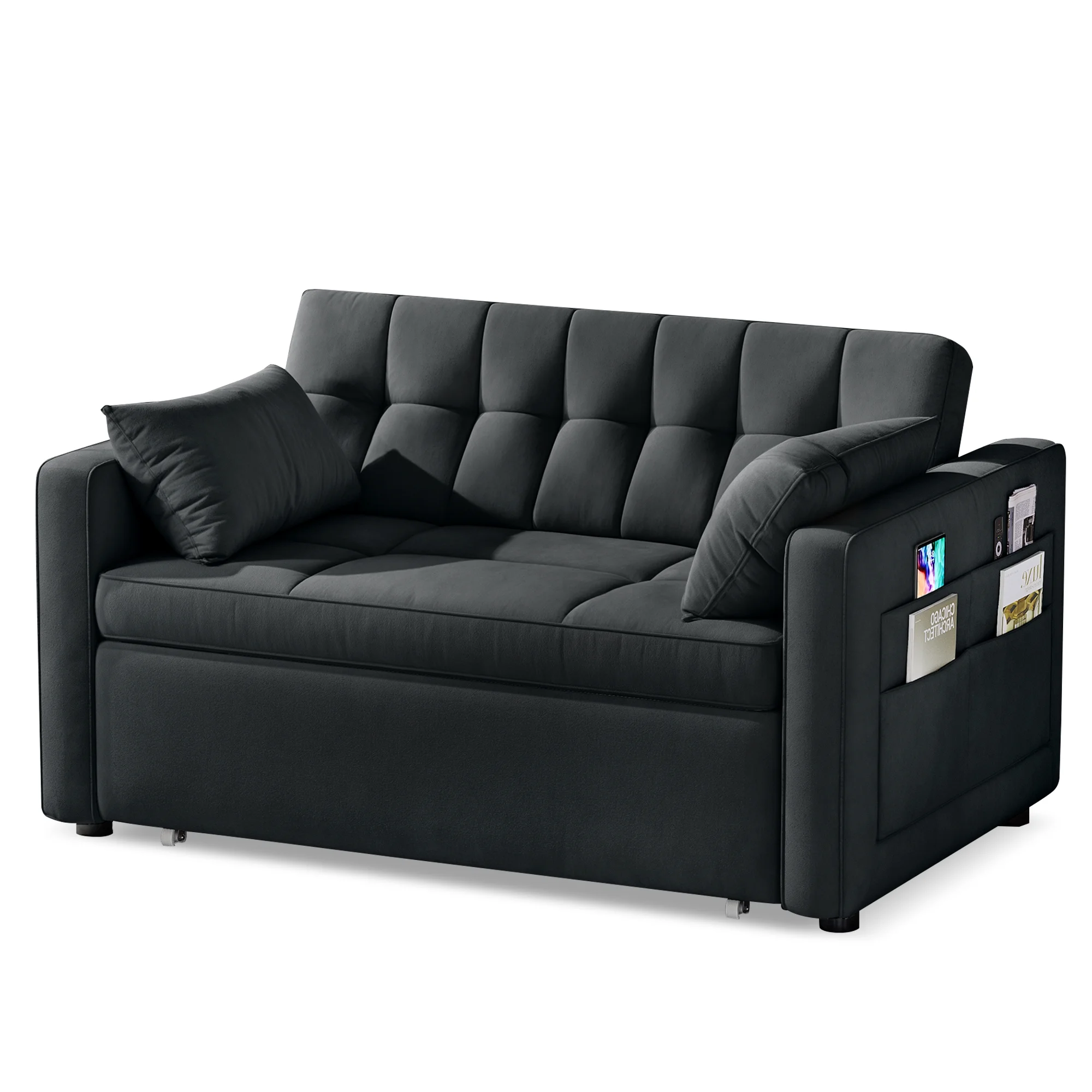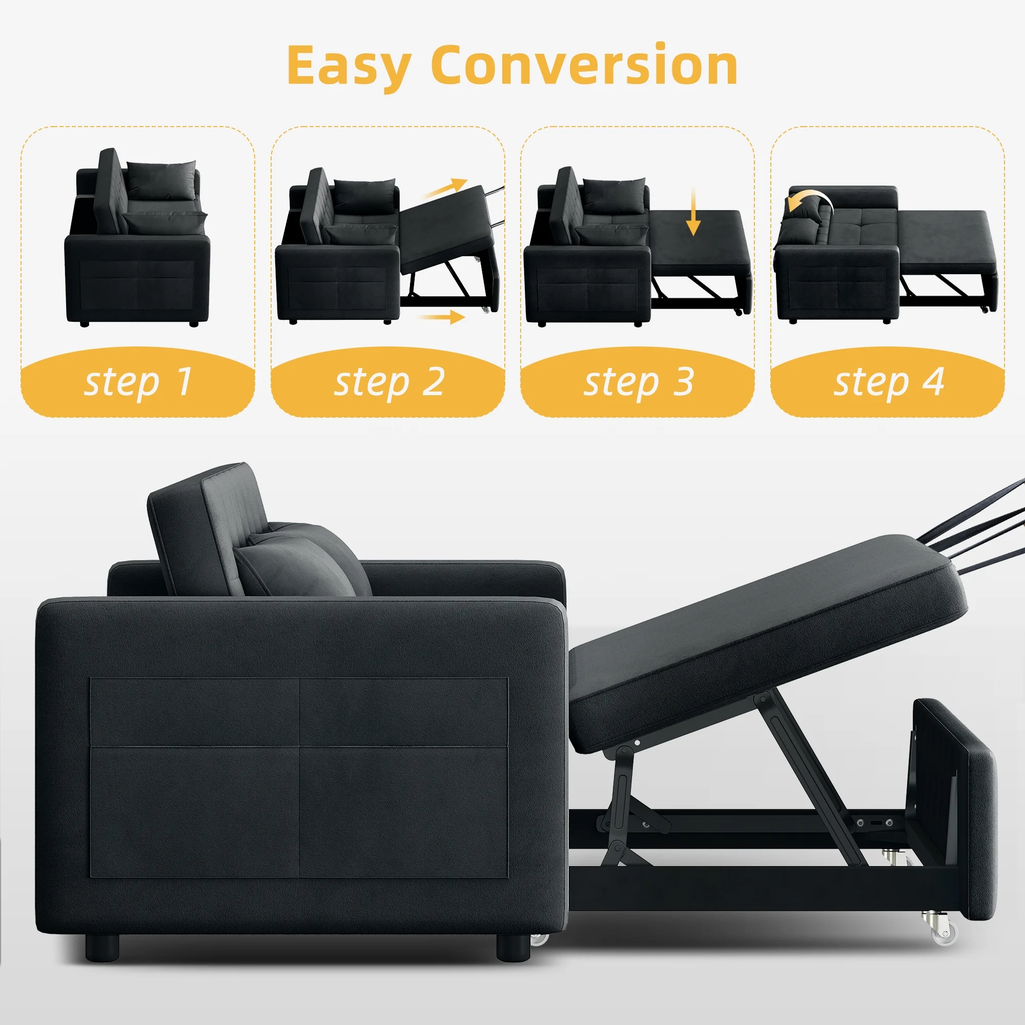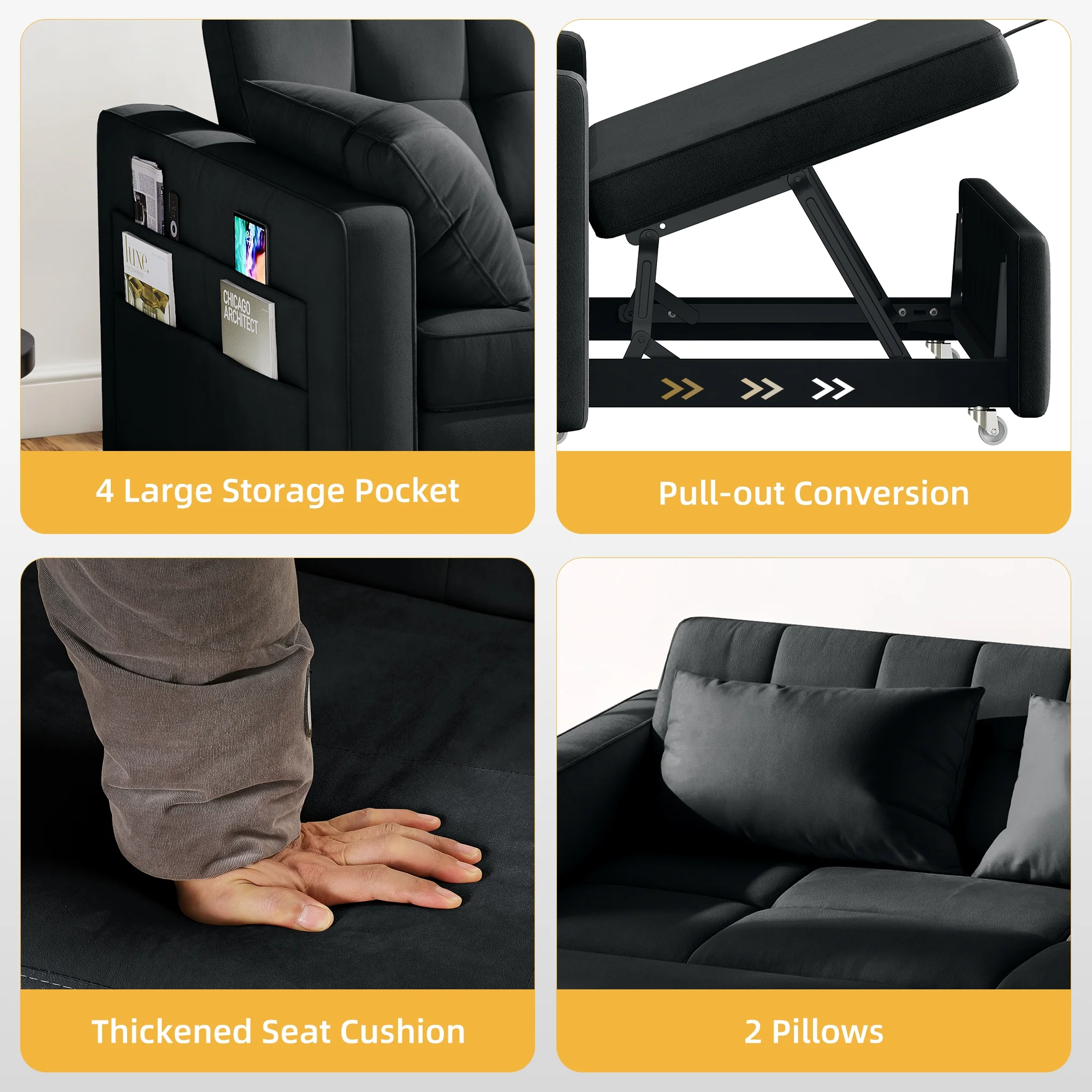 Vabches 3 in 1 Sofa Recliner with USB Port, Velvet, Convertible Bed and Chair, for Home or Office, Gray