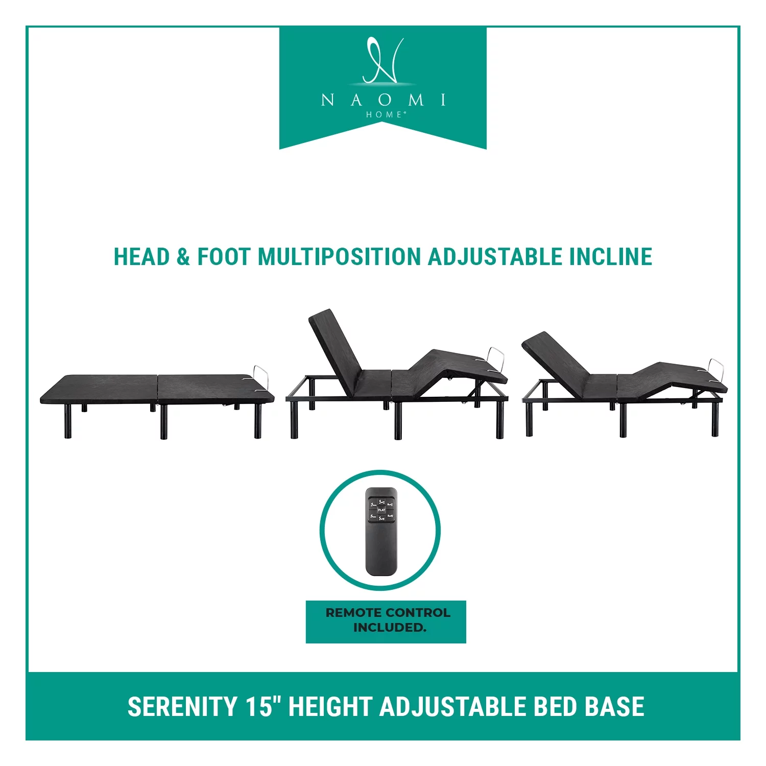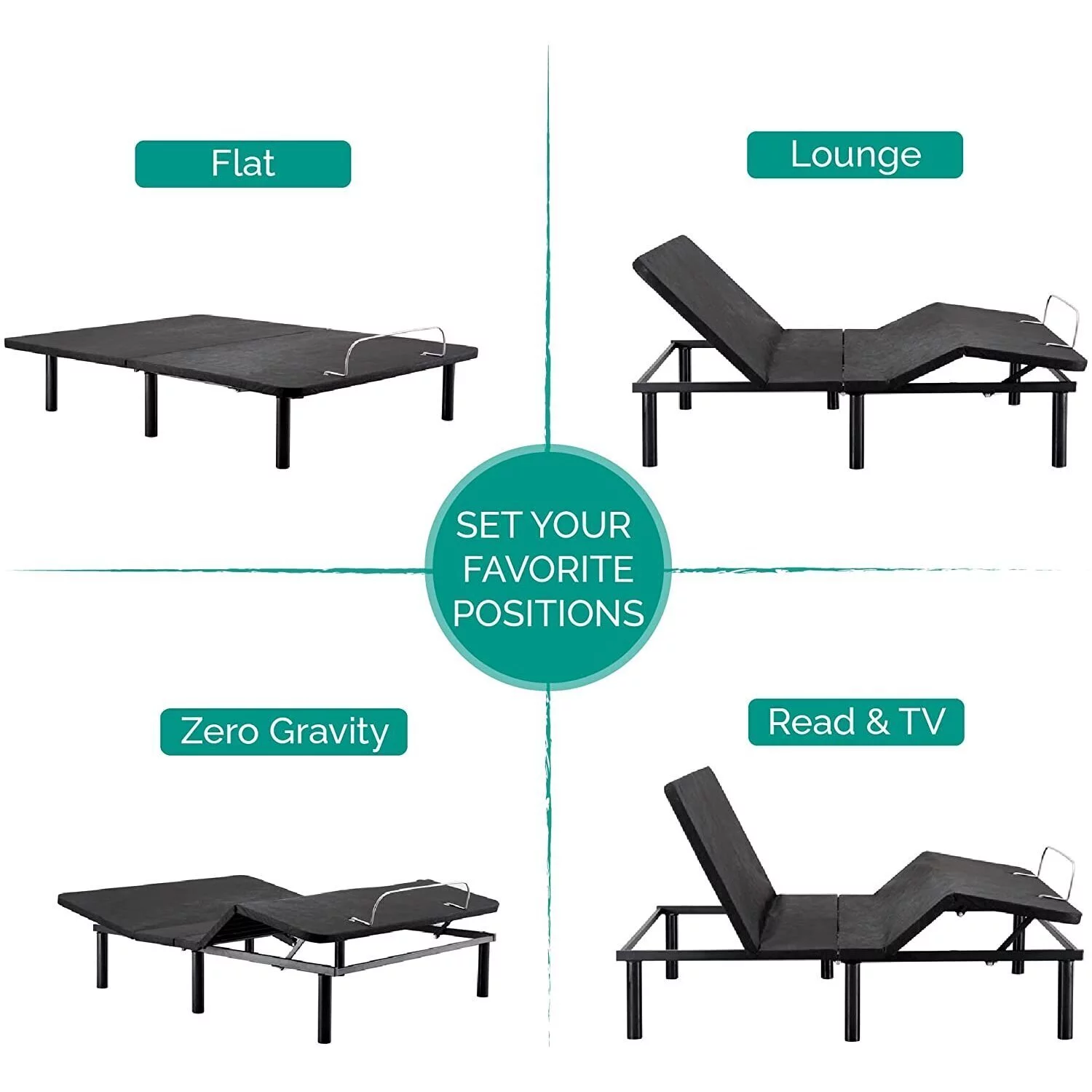15" Height Electric Adjustable Bed Frame Base With Wireless Remote Control - Color:Black, Size: Split King