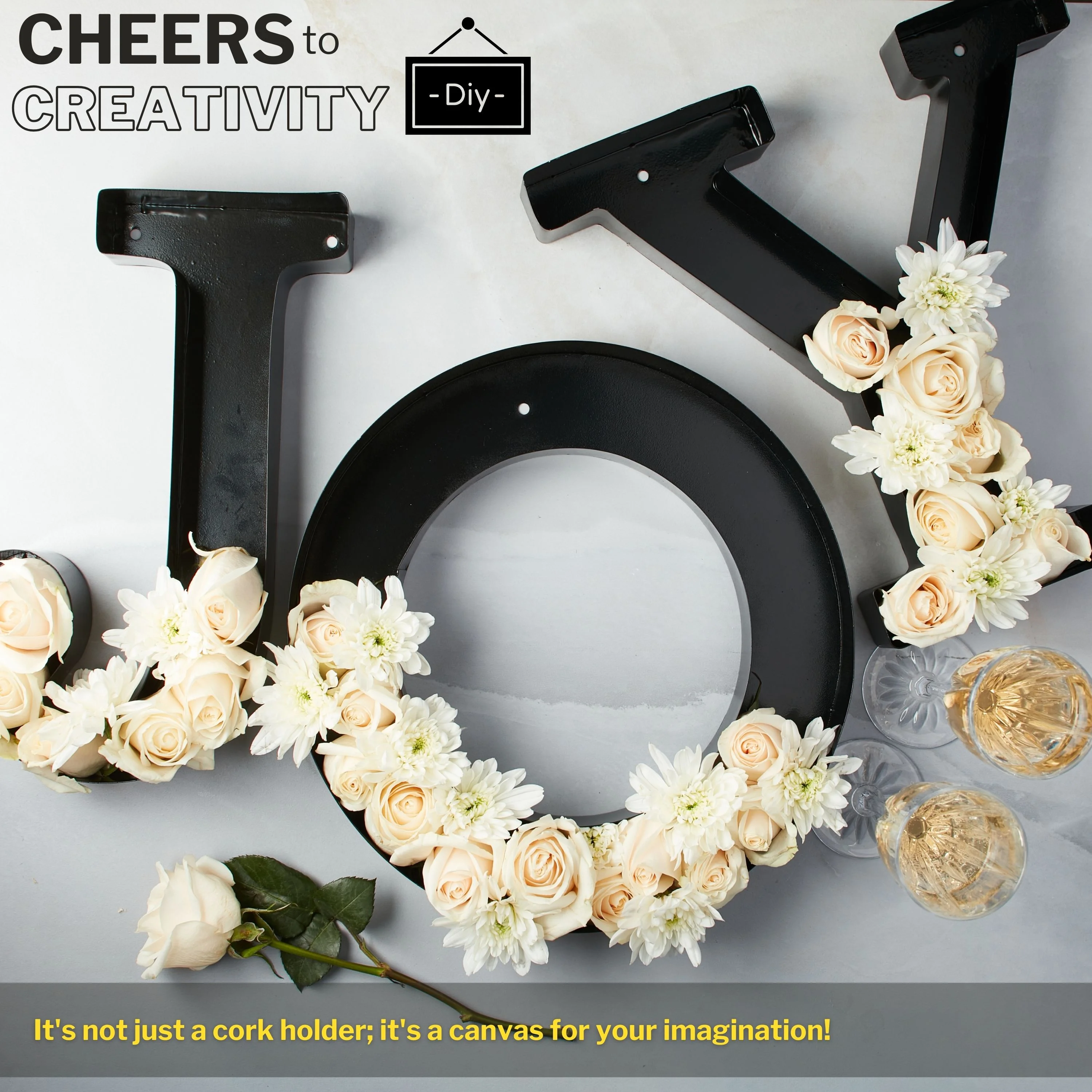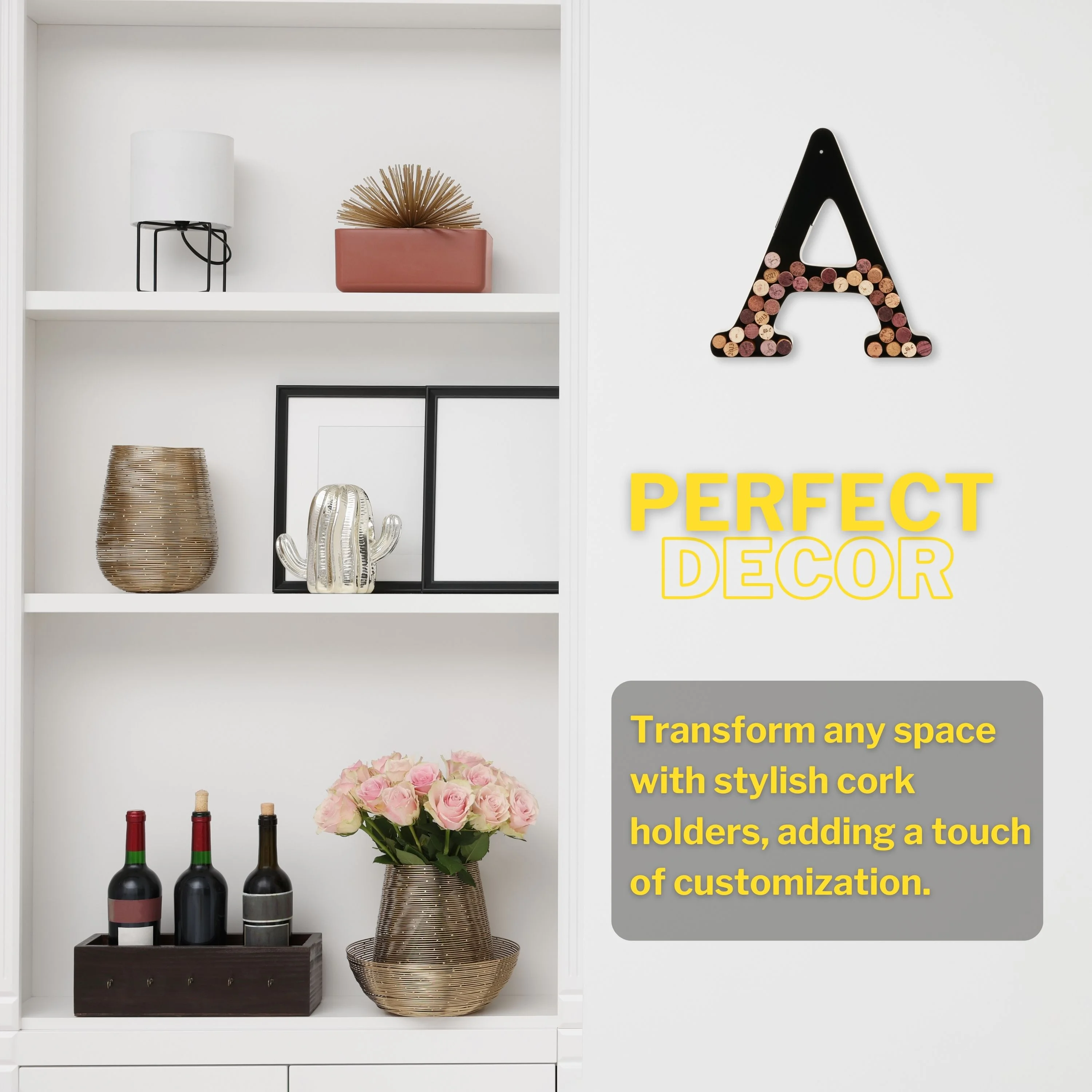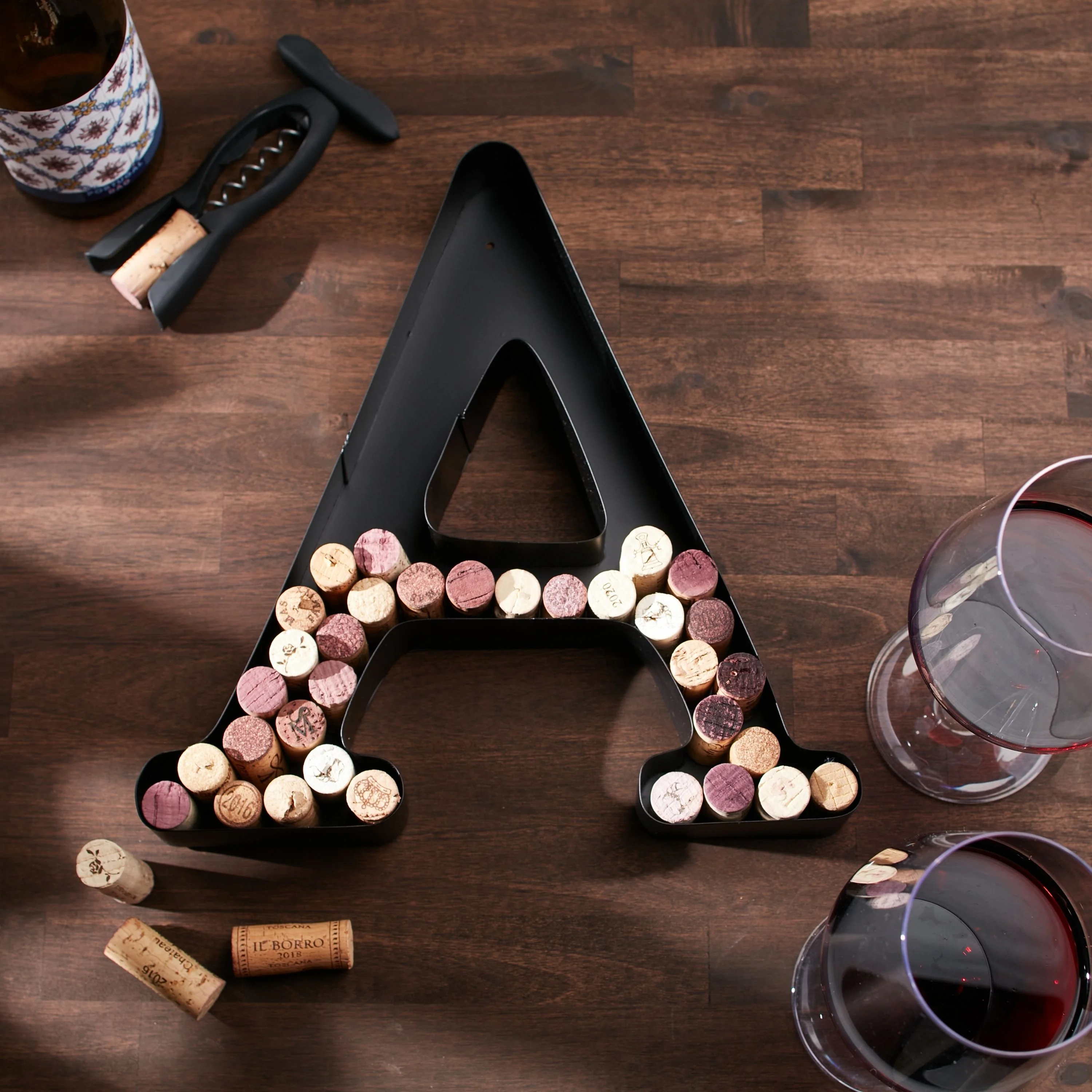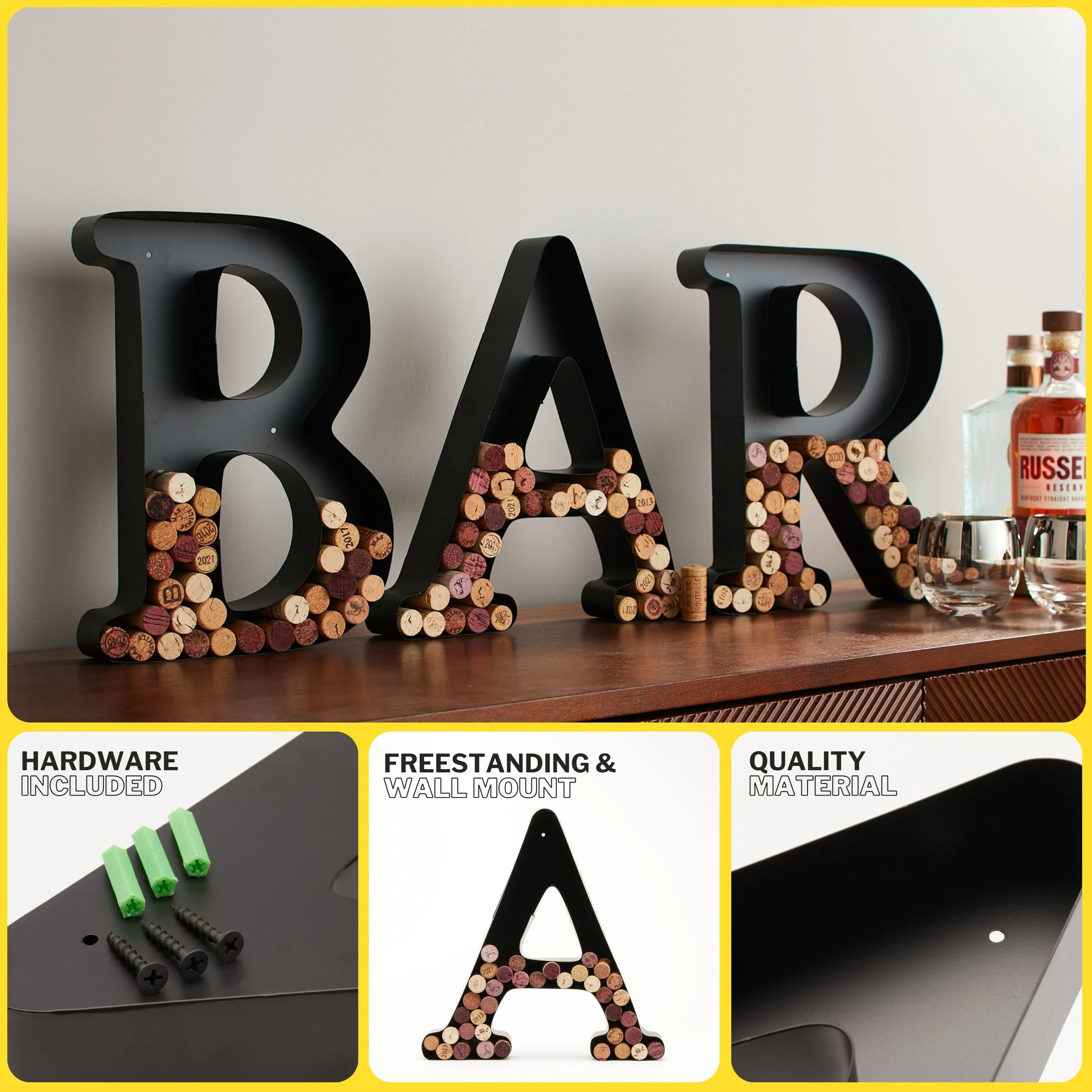 DECOMIL Wine Cork Holder, Black Decorative Letters for Corks, Freestanding and Wall Art, for DIY, 12”