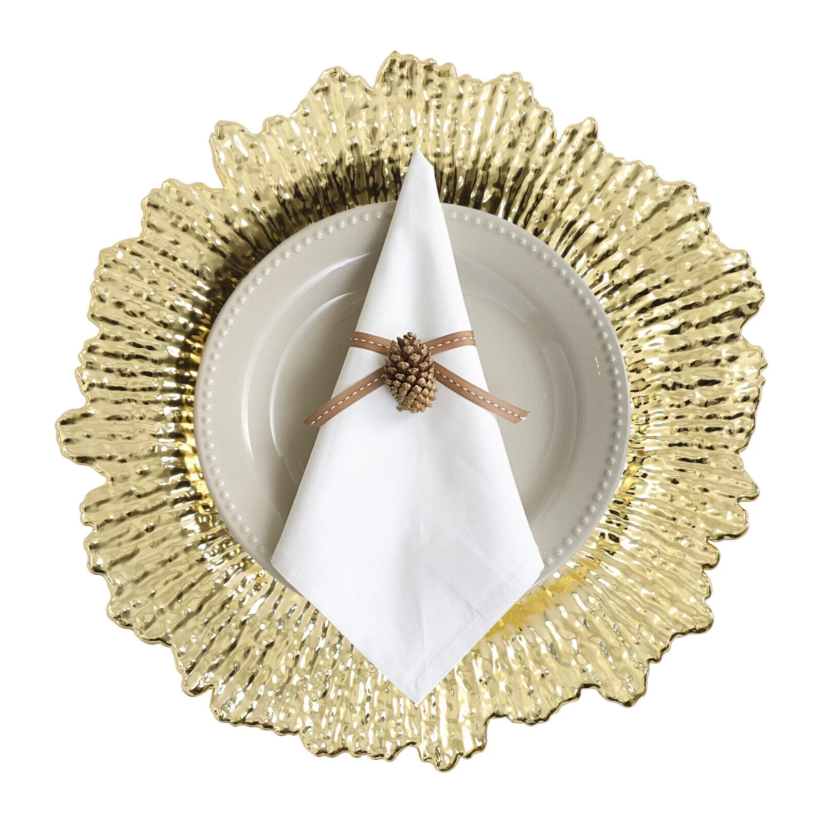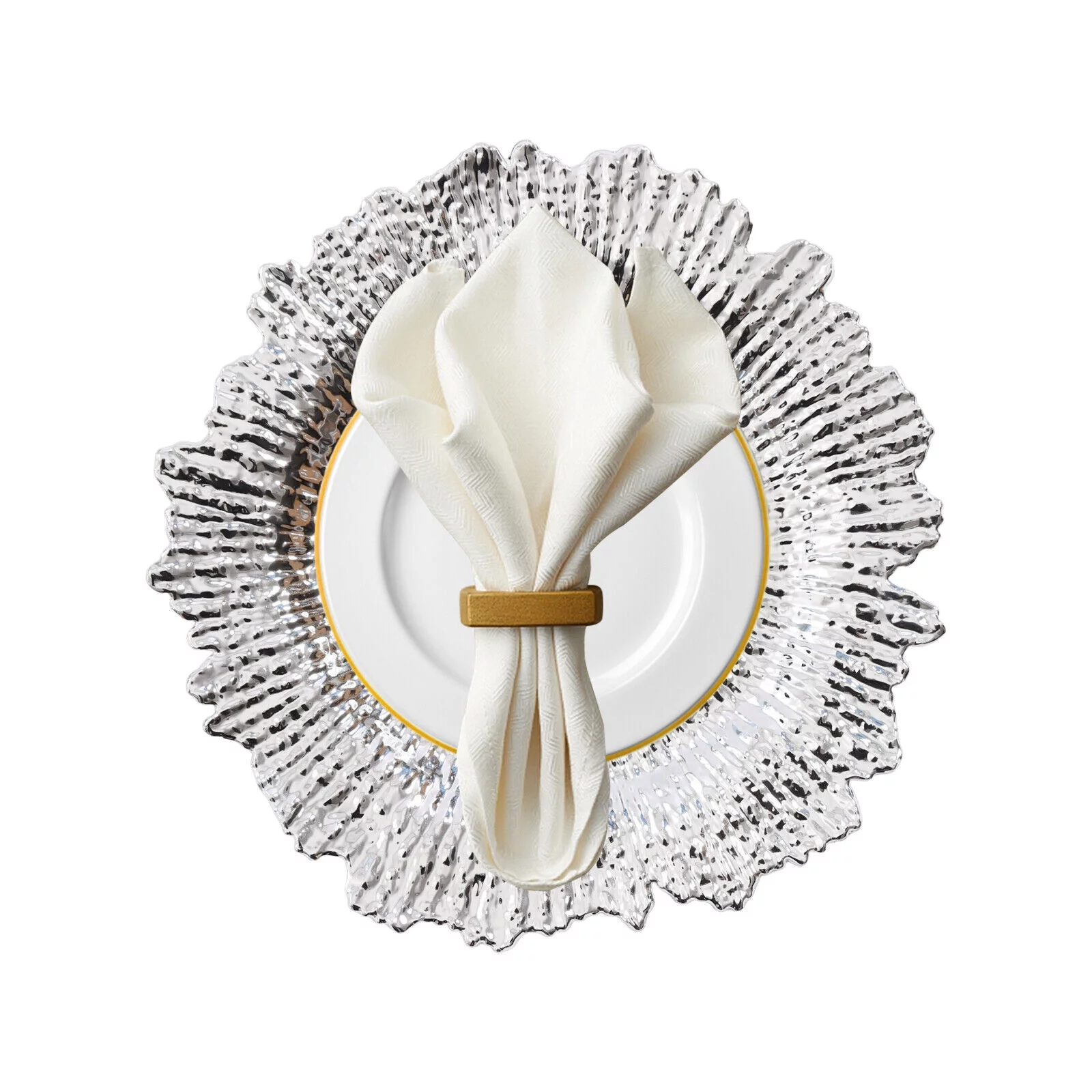 Clear Chargers with Gold Beaded Trim, Party Supplies, Wedding, 6 Pieces