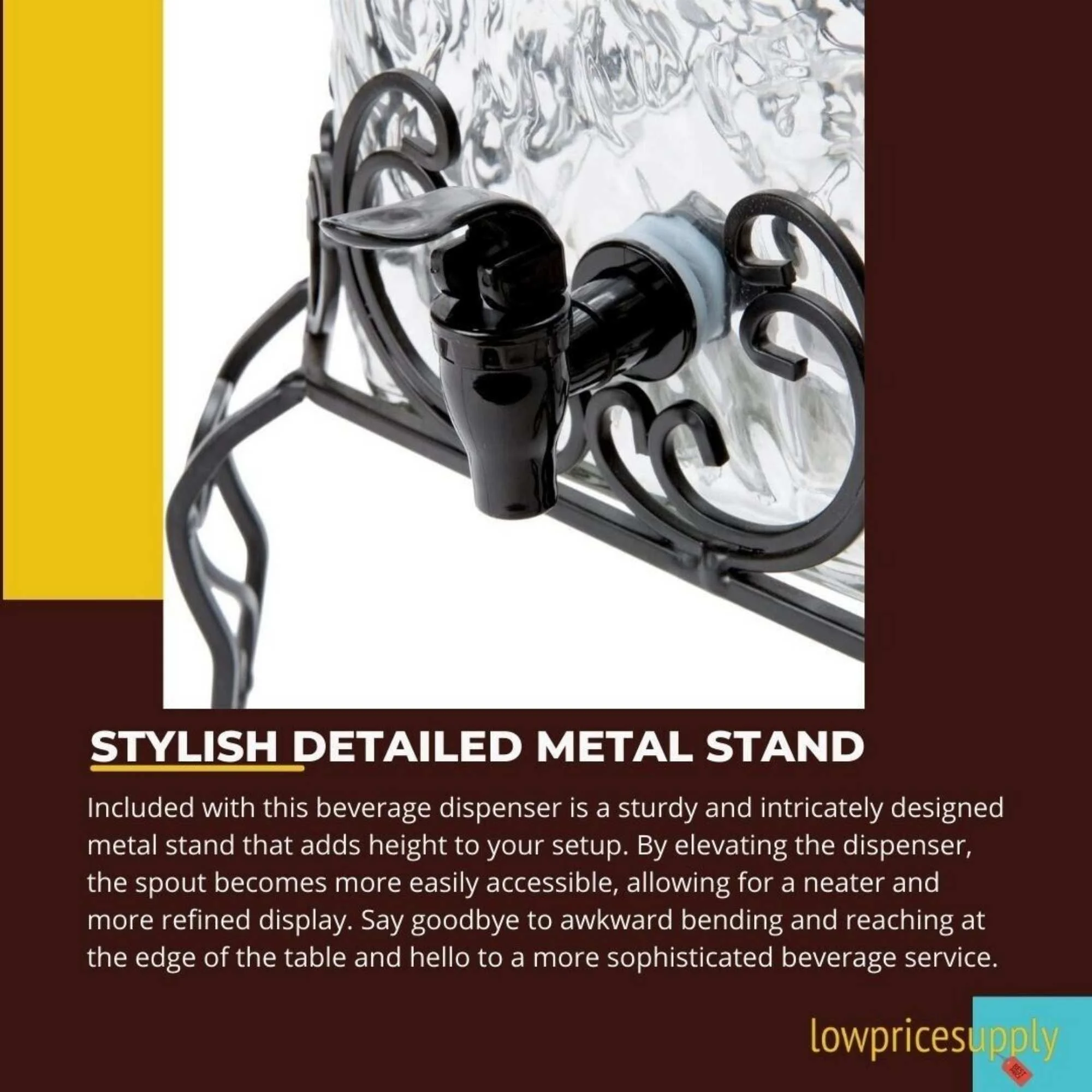 5 Gallon Hammered Glass Beverage Dispenser with Metal Stand - COMPLETE SET