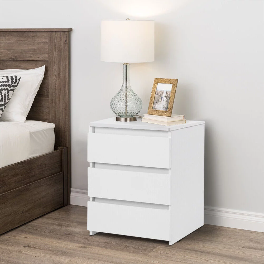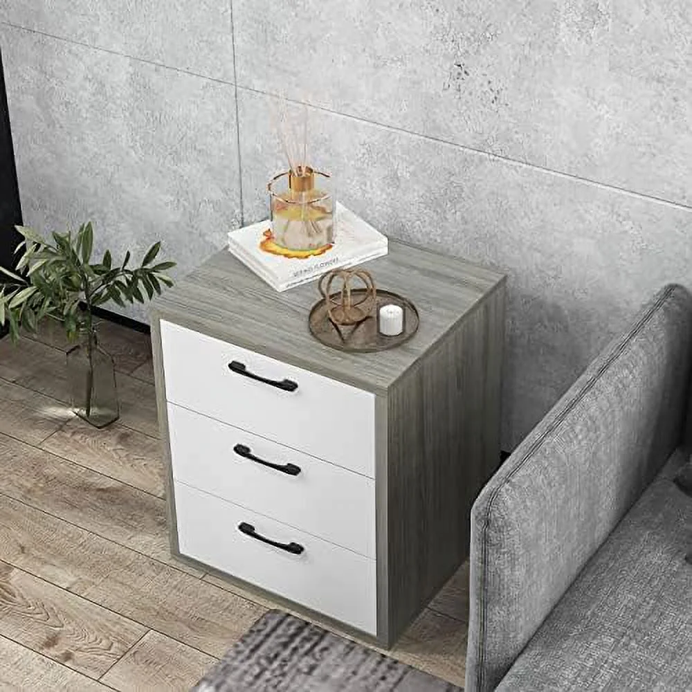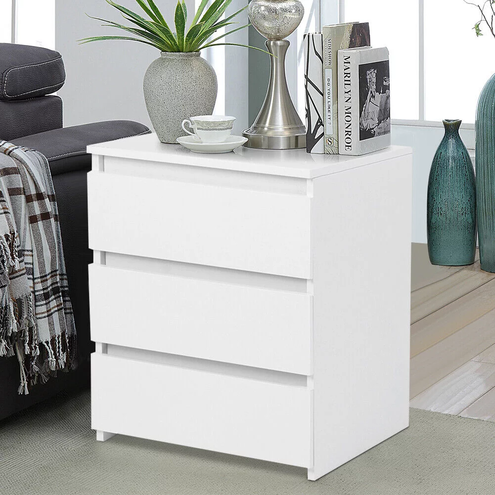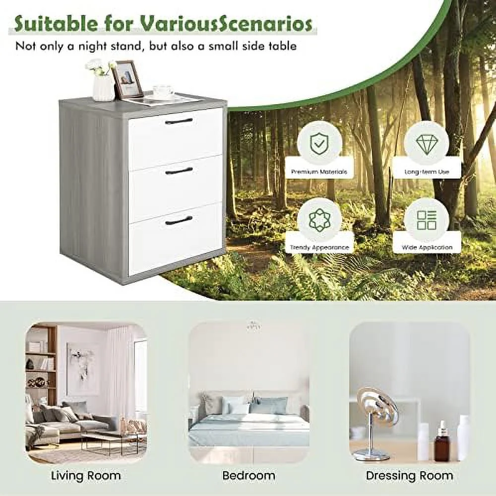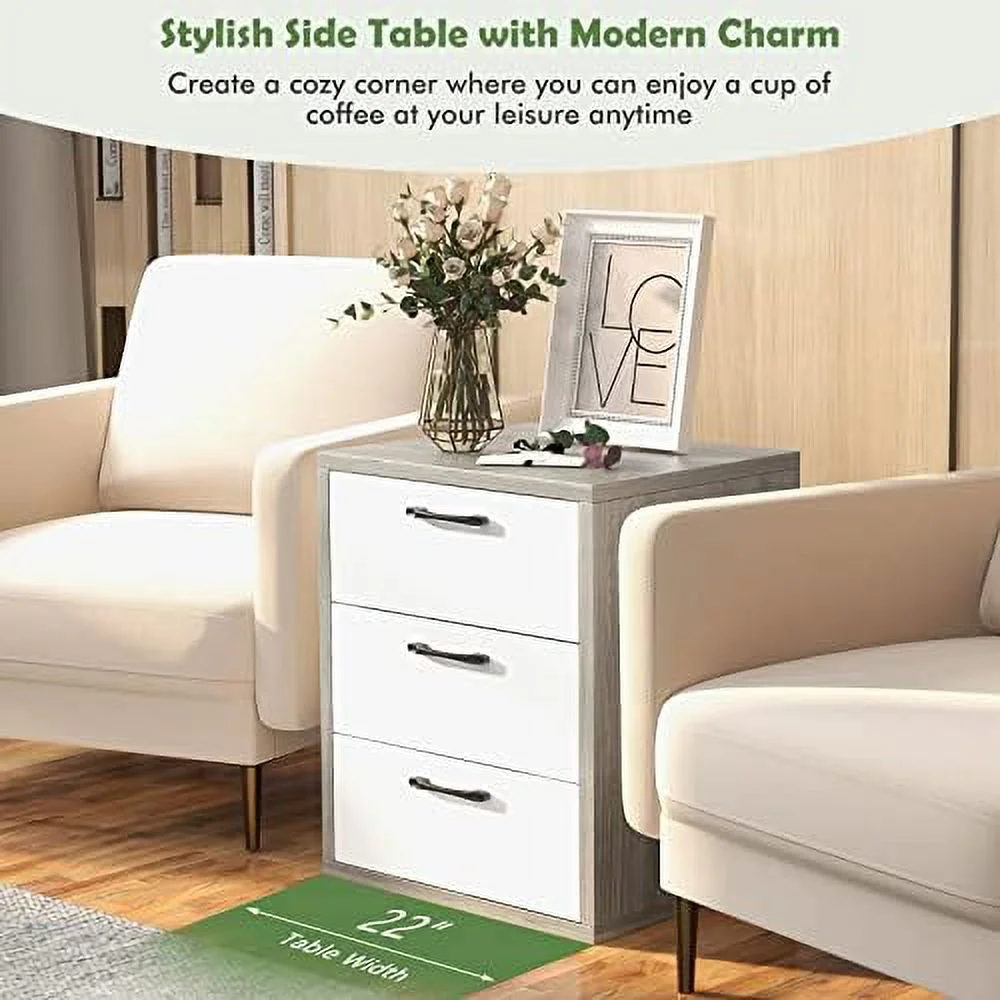 CNCEST 3 Drawer Wood Nightstand Sofa End Table Bedroom Tall Side Table Storage Cabinet 30kg