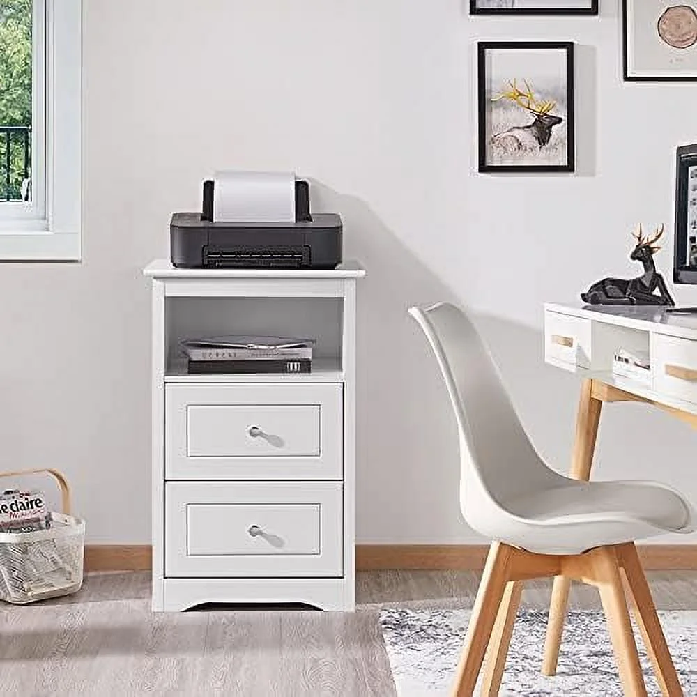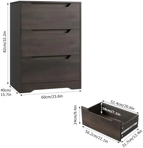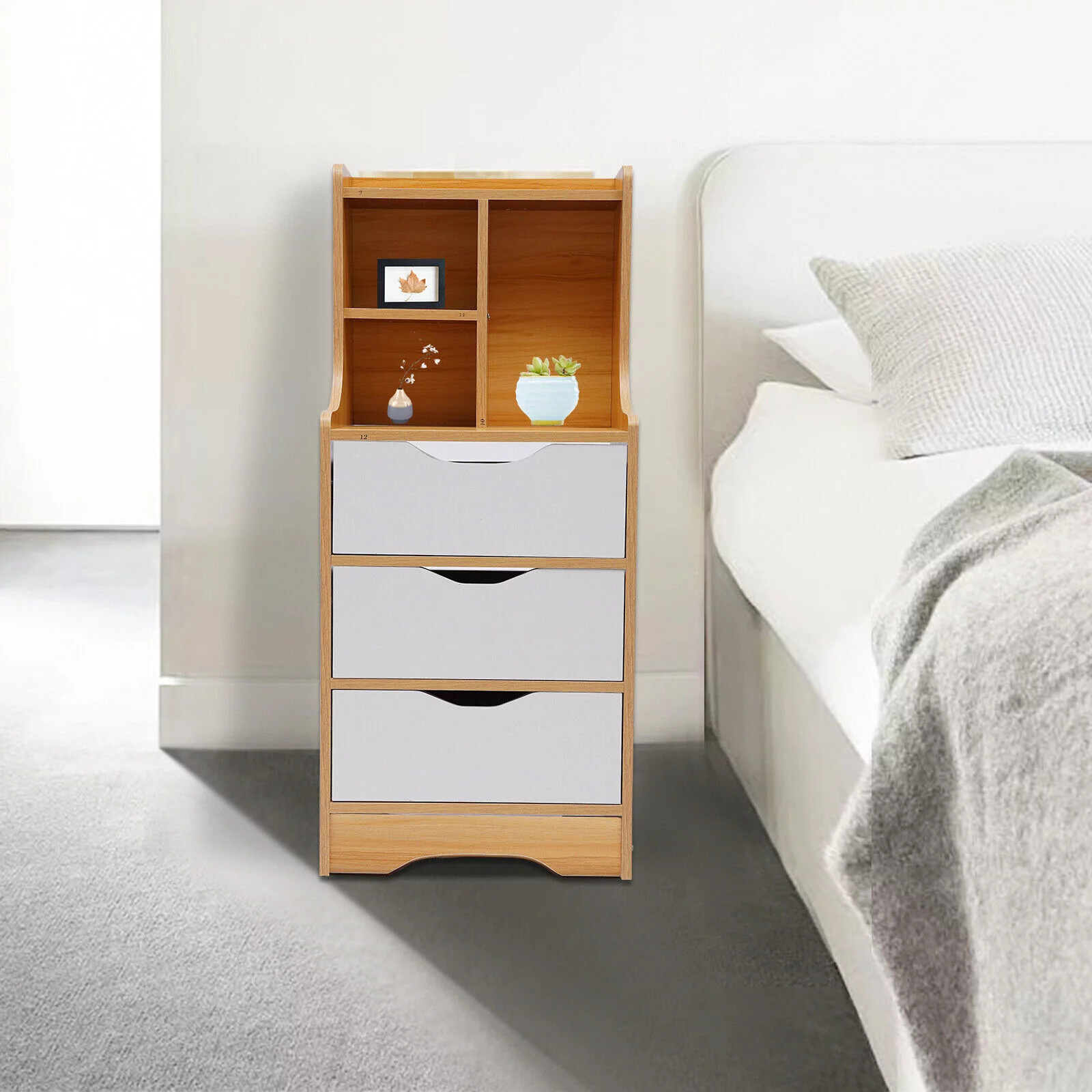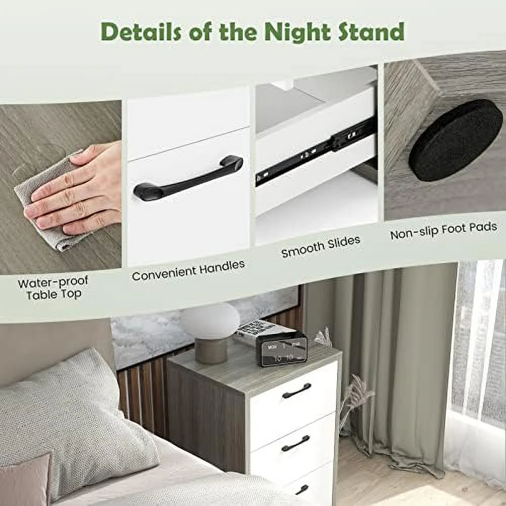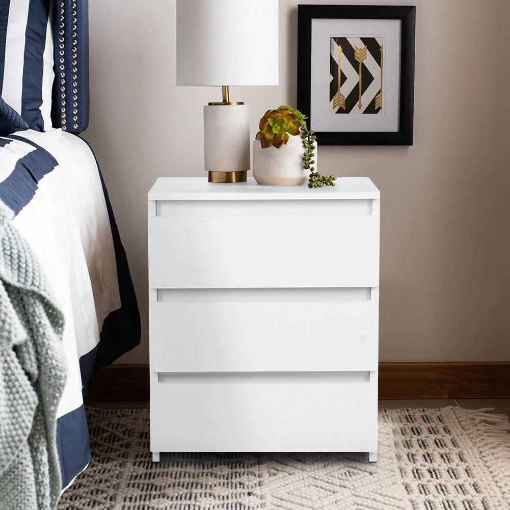CNCEST 3 Drawer Wood Nightstand Sofa End Table Bedroom Tall Side Table Storage Cabinet 30kg