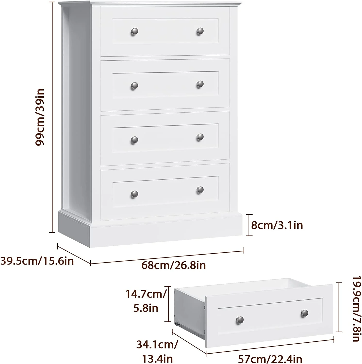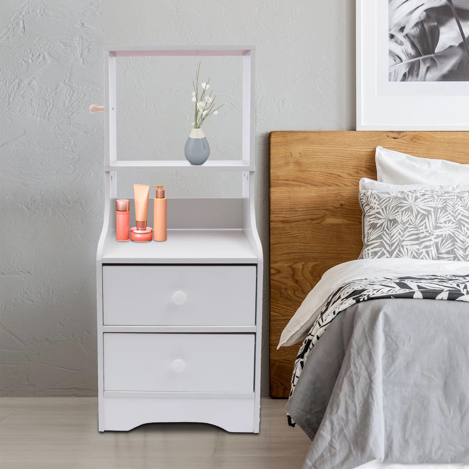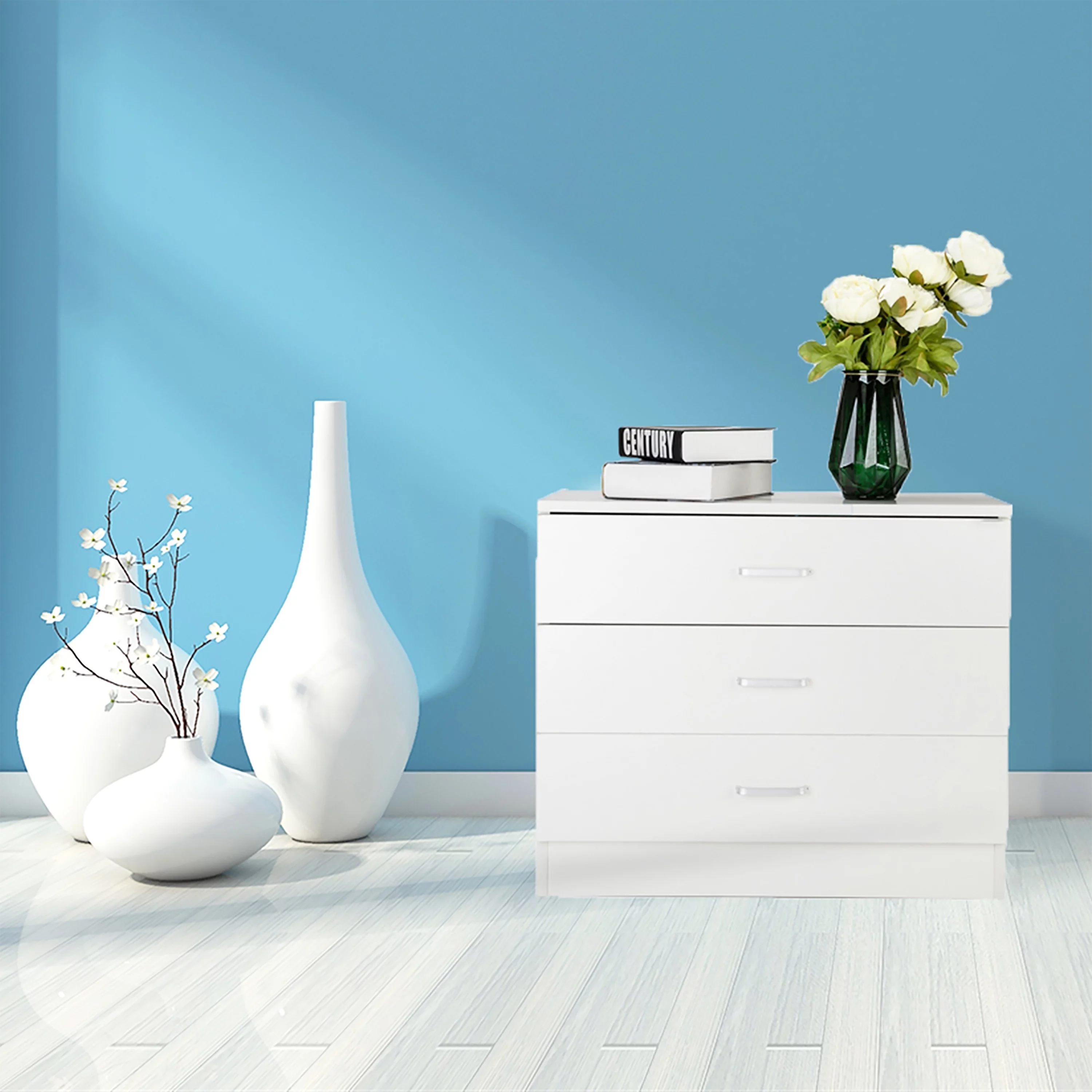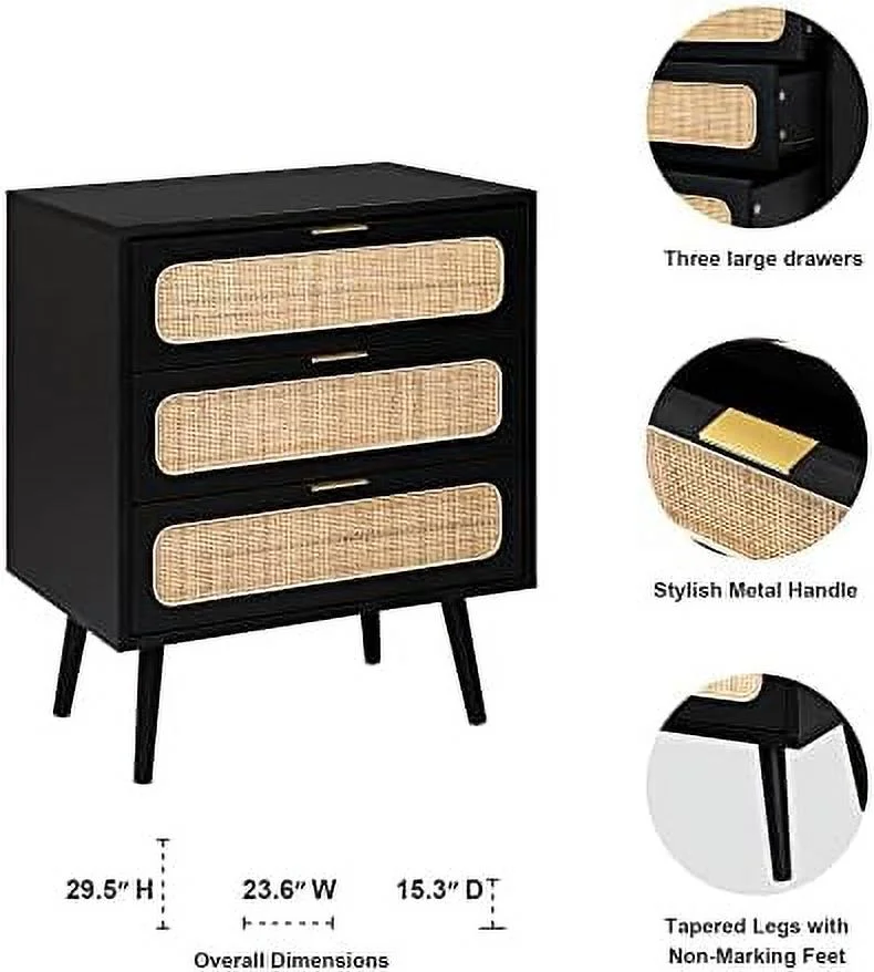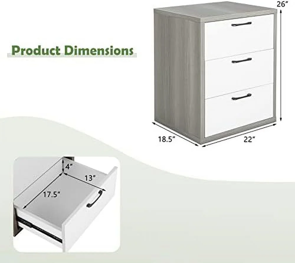 CNCEST 3 Drawer Wood Nightstand Sofa End Table Bedroom Tall Side Table Storage Cabinet 30kg
